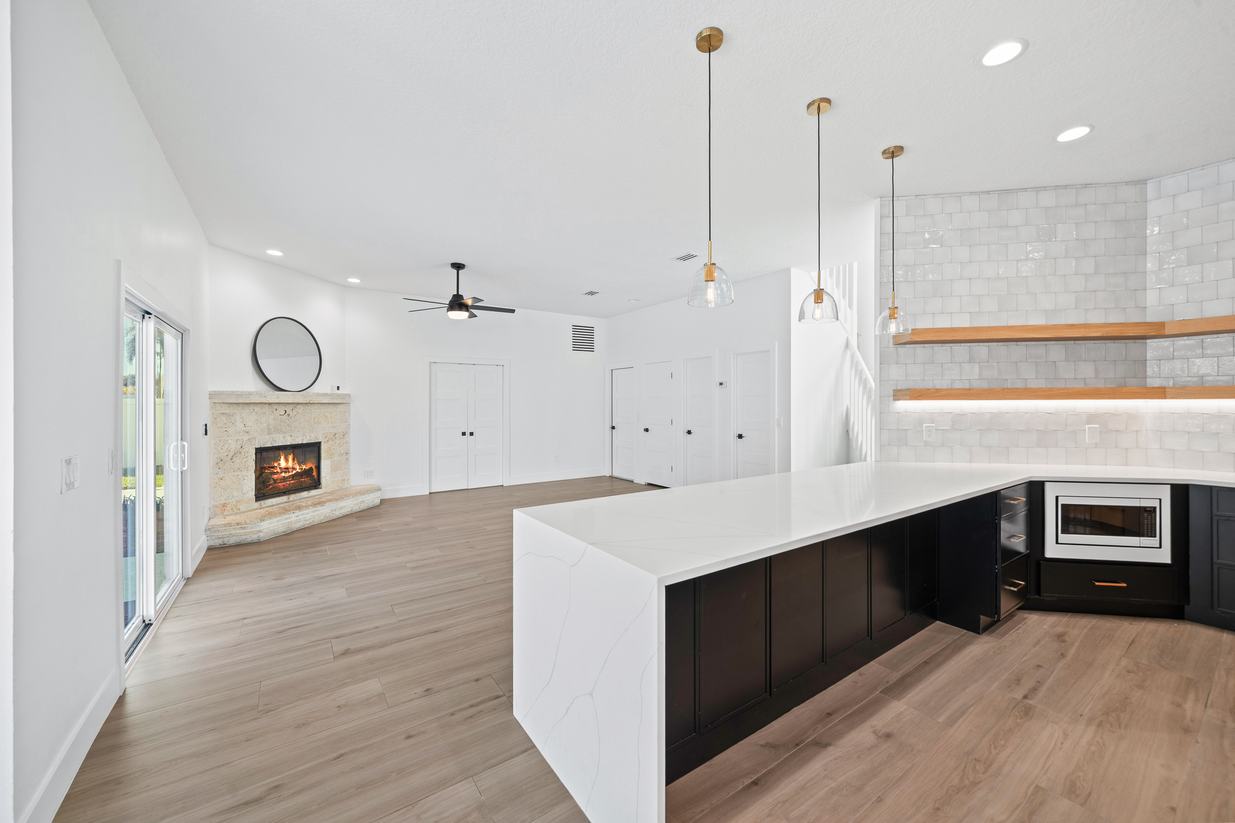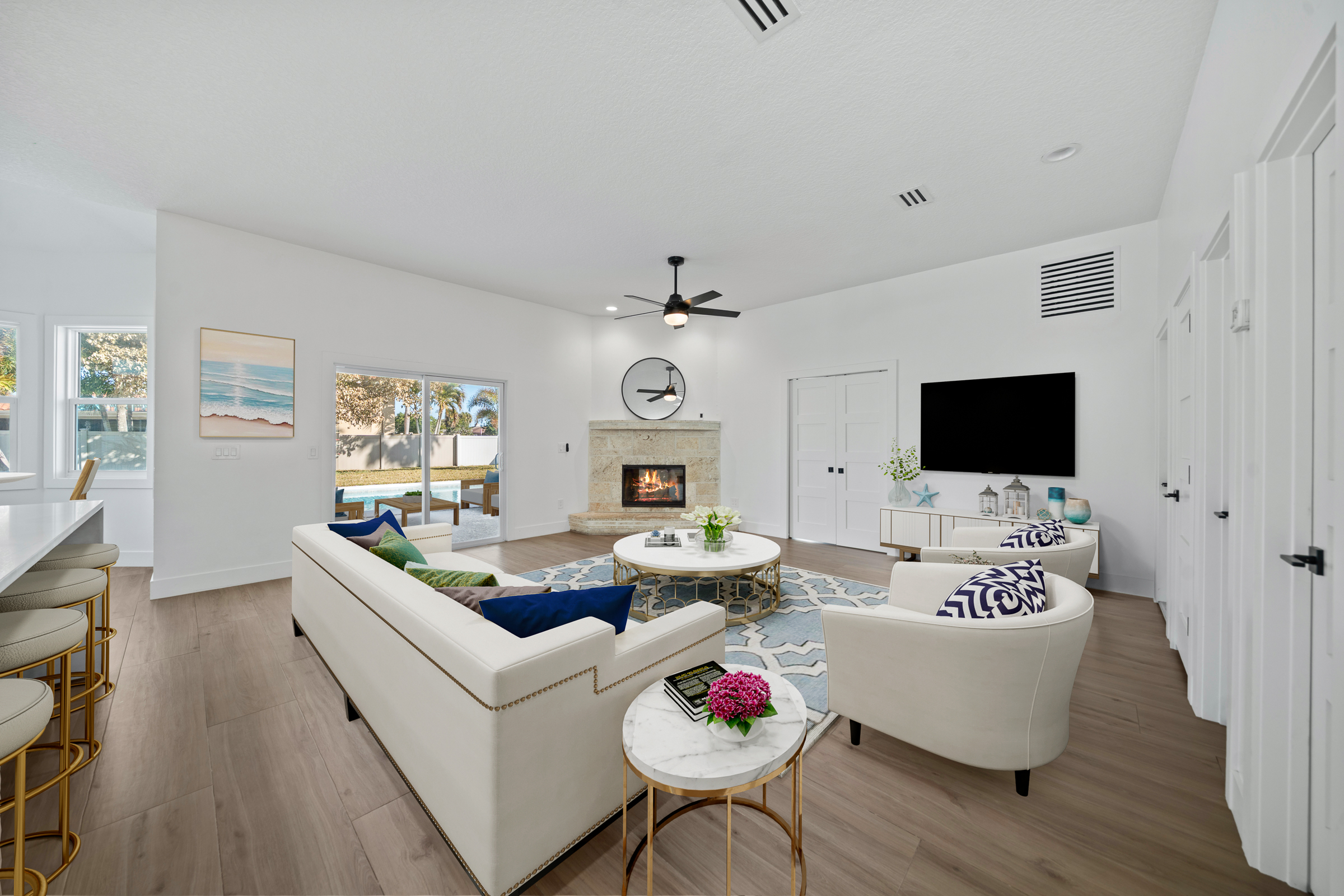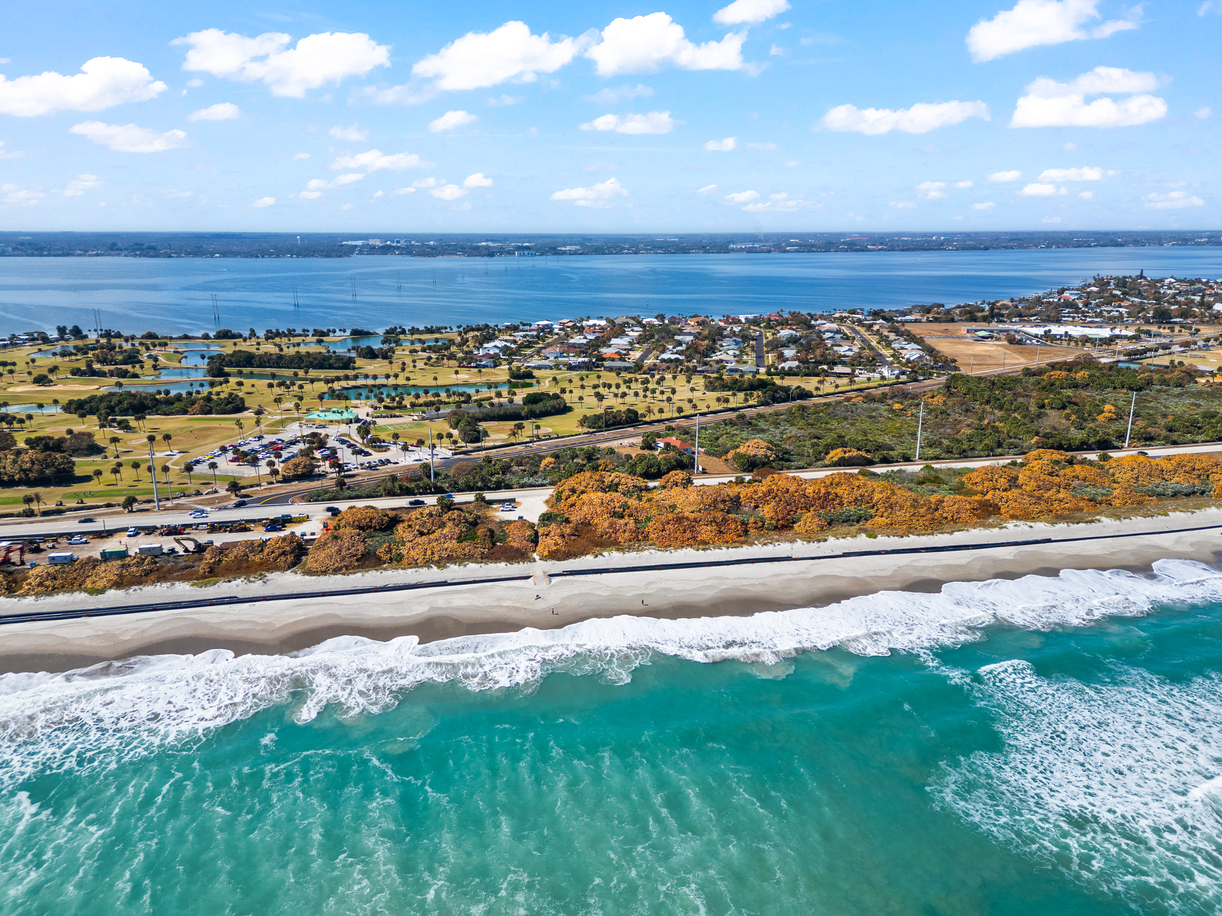 Tucked into a desirable coastal community this beautifully updated home offers the Florida lifestyle at its best. Conveniently located near the beach local parks and in close proximity to A-rated Gemini Elementary. The quiet neighborhood setting provides a relaxed and inviting atmosphere. The home features tall ceilings and has been freshly painted creating a bright open feel throughout.The remodeled kitchen showcases quartz countertops white appliances and stylish floating shelves ideal for both everyday living and entertaining. Hurricane-rated impact glass and doors provide added peace of mind along with a newer roof installed in 2021.Situated on an oversized corner lot the outdoor space is designed for enjoyment with fresh landscaping a vinyl fenced backyard and a pool with newly resurfaced finish. Enjoy scenic views of the golf course and lake offering a serene backdrop and enhanced privacy. Move-in ready and thoughtfully upgraded this home delivers comfort convenience and coastal living in one exceptional package.
