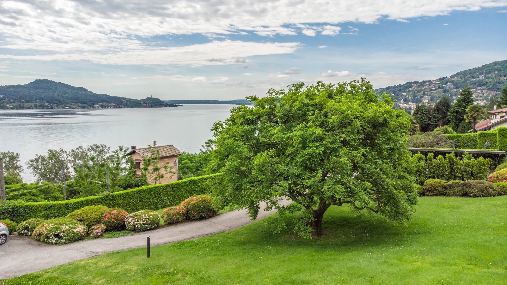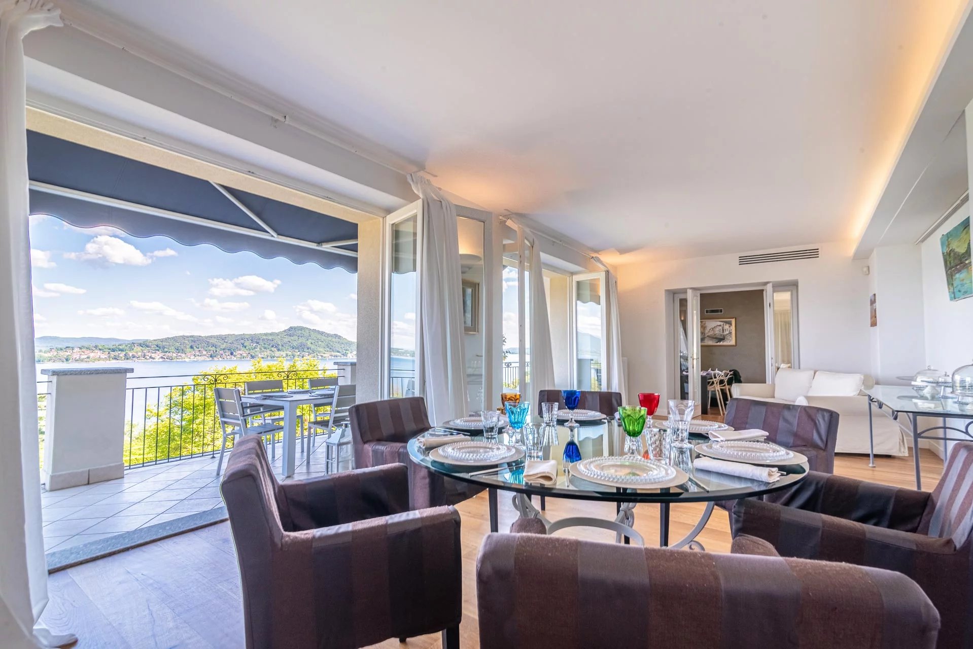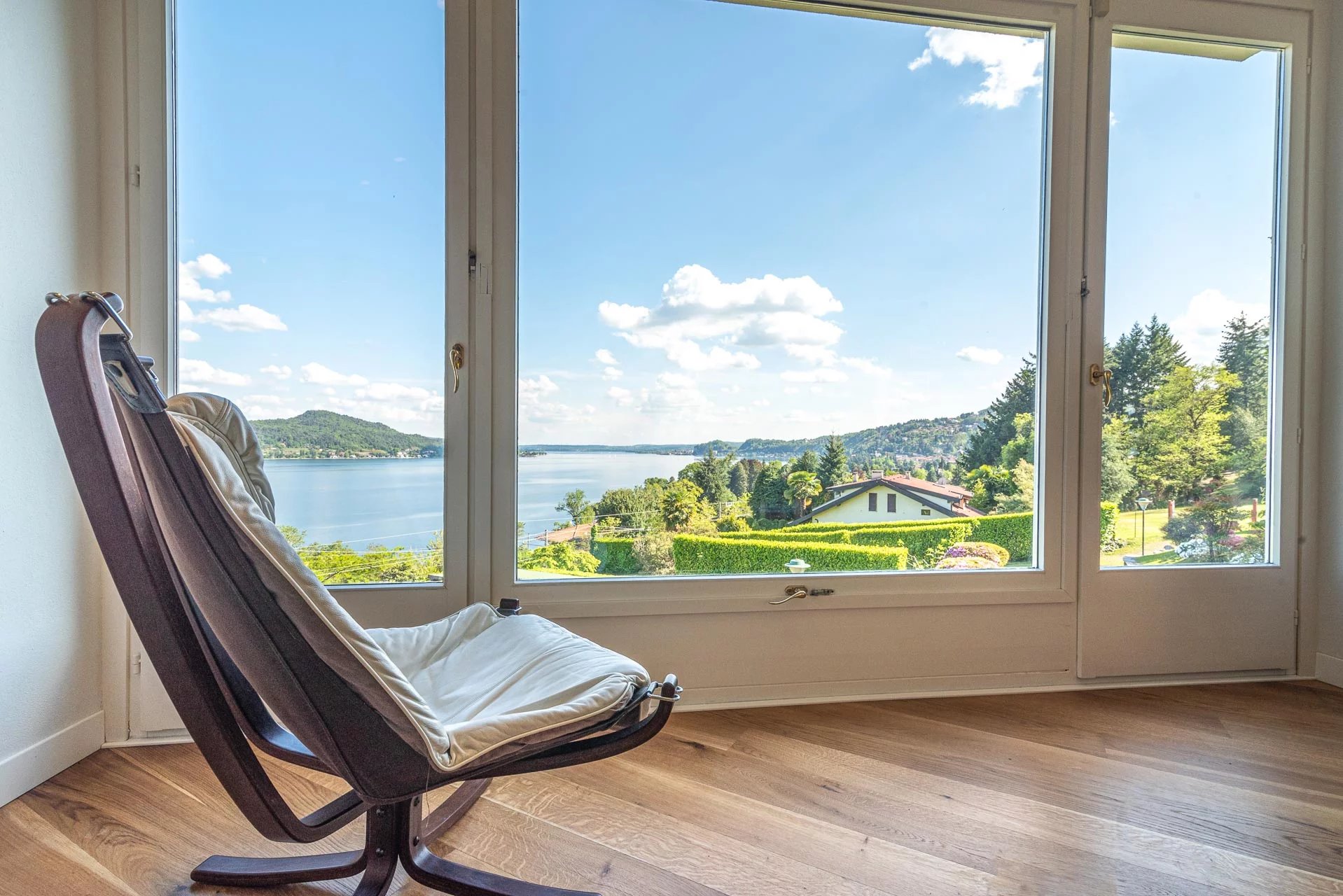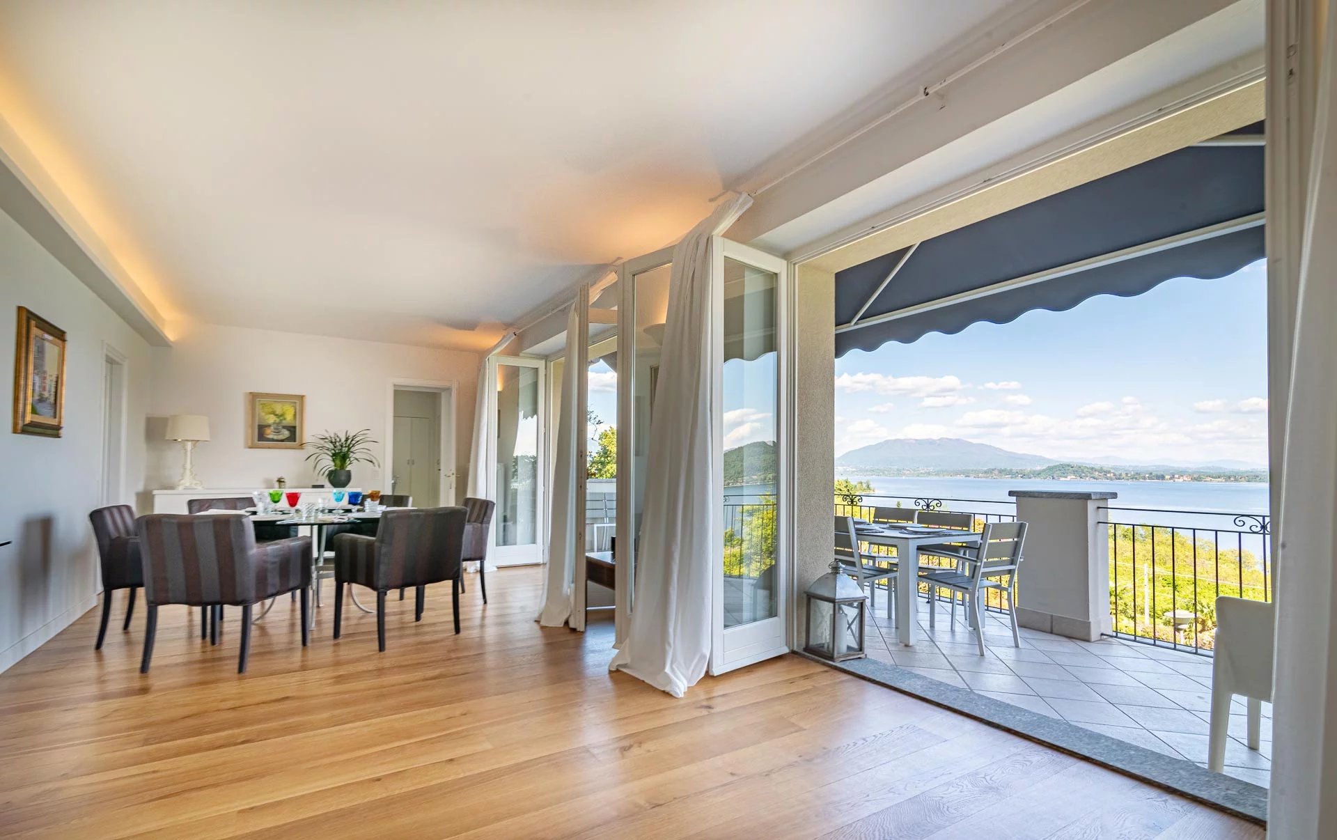 Experience the epitome of Italian lakeside living in this stunning first-floor apartment, set within a prestigiously renovated villa. Featuring a private elevator opening directly into the residence, this home blends historic charm with state-of-the-art technology. Highlights: Unrivaled Views: Floor-to-ceiling windows overlook Lake Maggiore and the iconic Rocca di Angera. Every room, except the bedrooms, offers a stunning lake vista. Sophisticated Design: Elegant oak parquet floors, a cozy fireplace, and restored vintage cast-iron radiators. Chef's Kitchen: A professional-grade kitchen equipped with induction hobs, double ovens, twin refrigerators, and a separate laundry zone. Outdoor Living: A massive terrace designed for entertaining, featuring an automated sun awning with wind sensors for effortless comfort. Prime Comfort: Fully insulated (15cm external cladding), 3-zone heating system, and full A/C. The sleeping quarters include three spacious bedrooms and three modern bathrooms (renovated 2018), including a master suite. The property includes two private covered parking spaces.