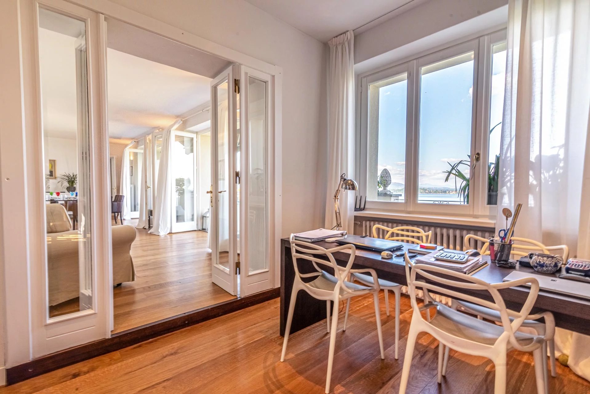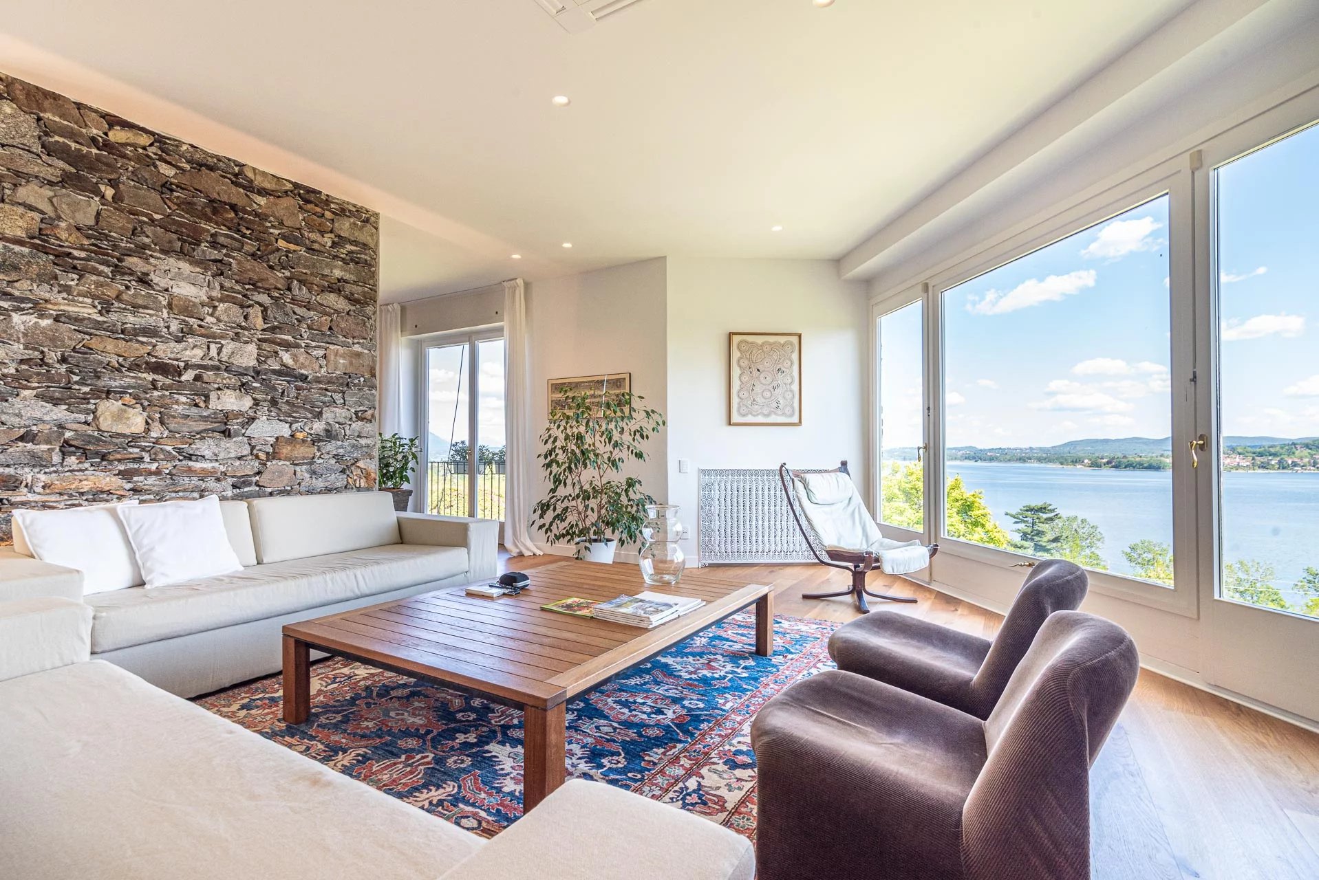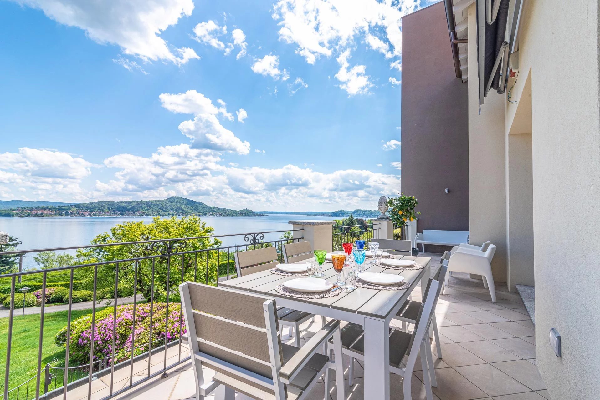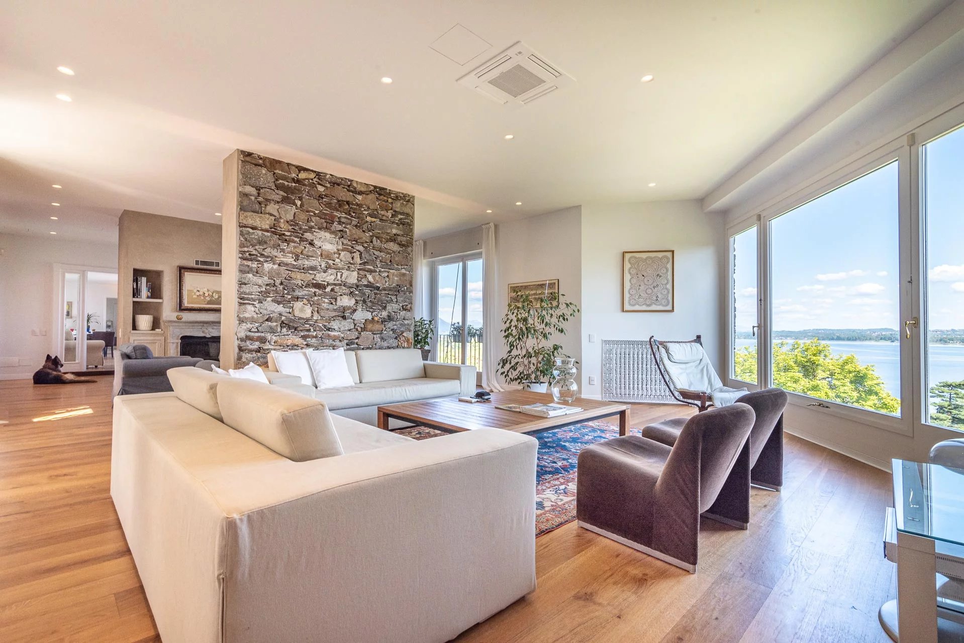 Experience the epitome of Italian lakeside living in this stunning first-floor apartment, set within a prestigiously renovated villa. Featuring a private elevator opening directly into the residence, this home blends historic charm with state-of-the-art technology. Highlights: Unrivaled Views: Floor-to-ceiling windows overlook Lake Maggiore and the iconic Rocca di Angera. Every room, except the bedrooms, offers a stunning lake vista. Sophisticated Design: Elegant oak parquet floors, a cozy fireplace, and restored vintage cast-iron radiators. Chef's Kitchen: A professional-grade kitchen equipped with induction hobs, double ovens, twin refrigerators, and a separate laundry zone. Outdoor Living: A massive terrace designed for entertaining, featuring an automated sun awning with wind sensors for effortless comfort. Prime Comfort: Fully insulated (15cm external cladding), 3-zone heating system, and full A/C. The sleeping quarters include three spacious bedrooms and three modern bathrooms (renovated 2018), including a master suite. The property includes two private covered parking spaces.