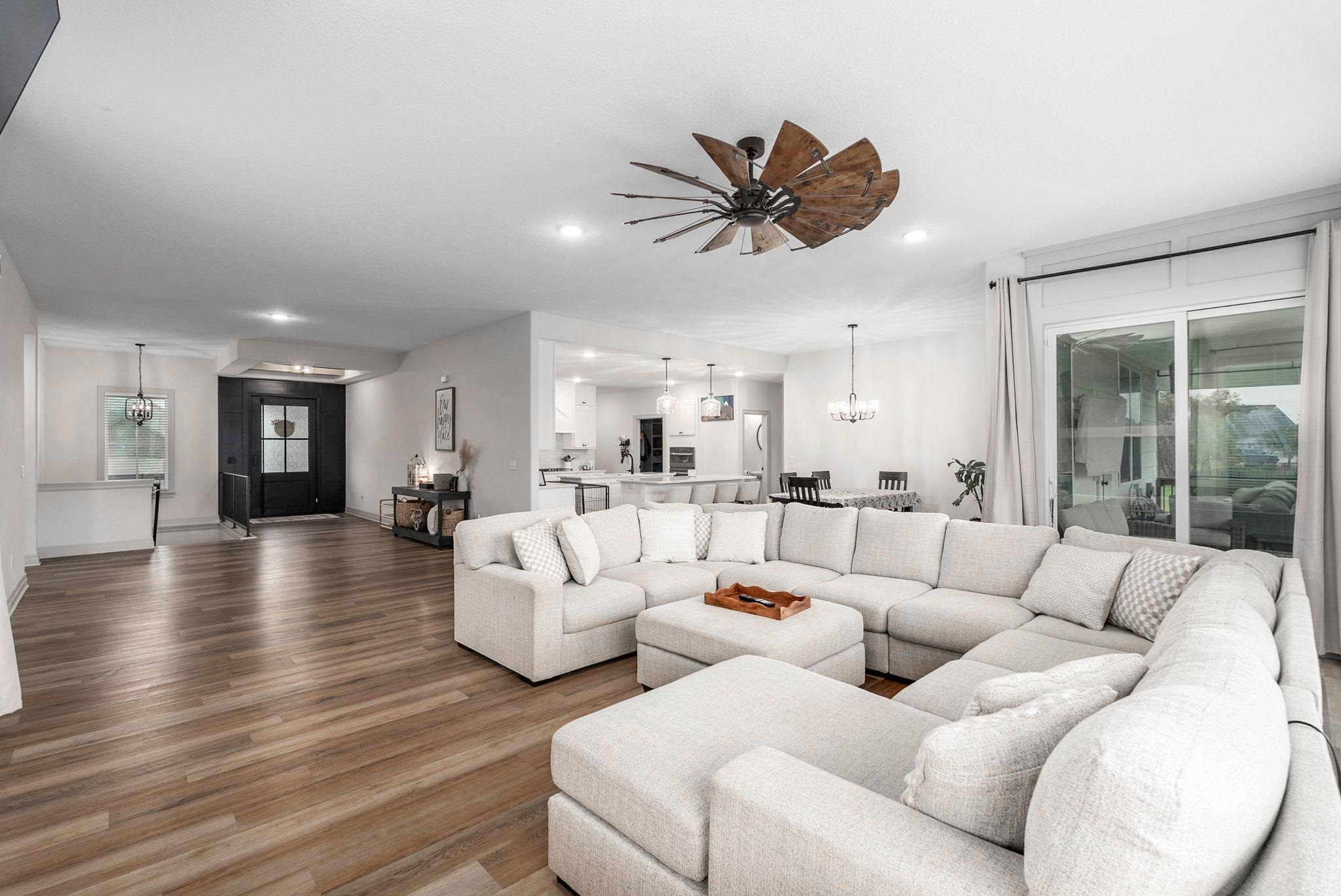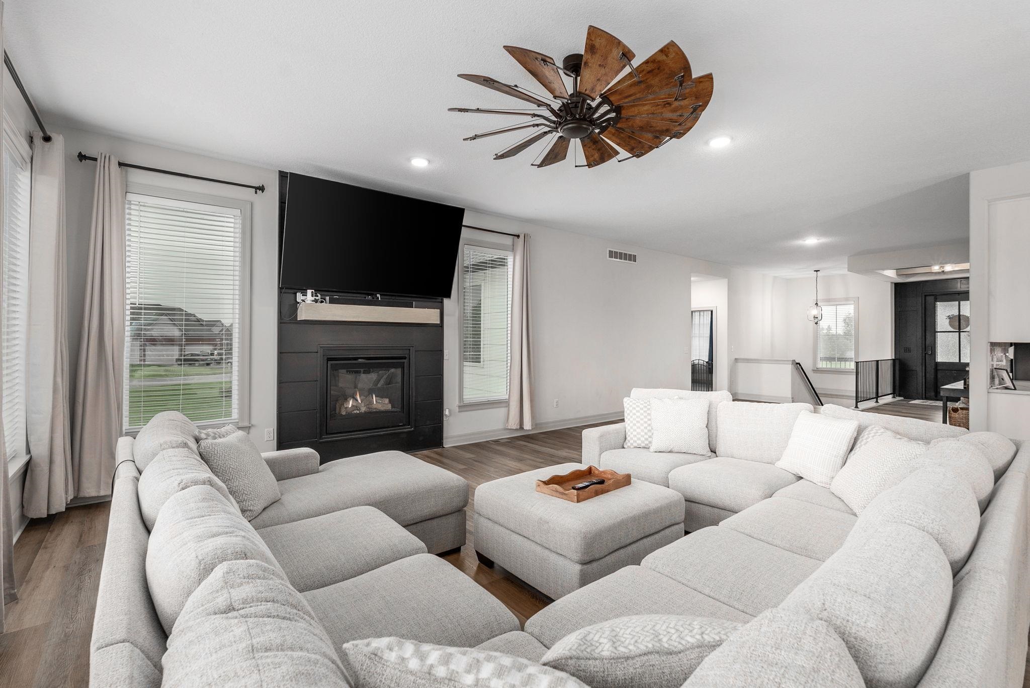 PAID SPECIALS!! Spacious 6-bedroom, 3.5-bathroom home in a well-established neighborhood designed for entertaining! This home features large open living areas, generously sized rooms, and a layout perfect for gatherings. The beautiful kitchen is the heart of the home, featuring double islands, abundant counter space, and an oversized walk-in pantry. The finished basement offers incredible recreational space including a theater room, plus plenty of room for games or relaxing. Step outside to enjoy the beautiful backyard with a large oversized deck and an outdoor fireplace, perfect for entertaining or quiet evenings at home. Complete with a 3-car garage and a large storage room, this home offers space, comfort, and functionality throughout.