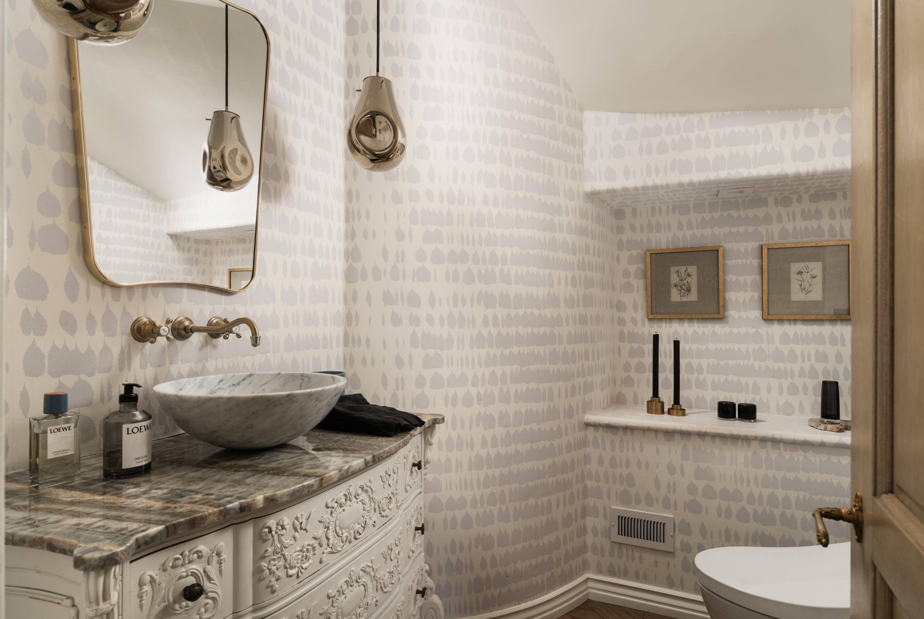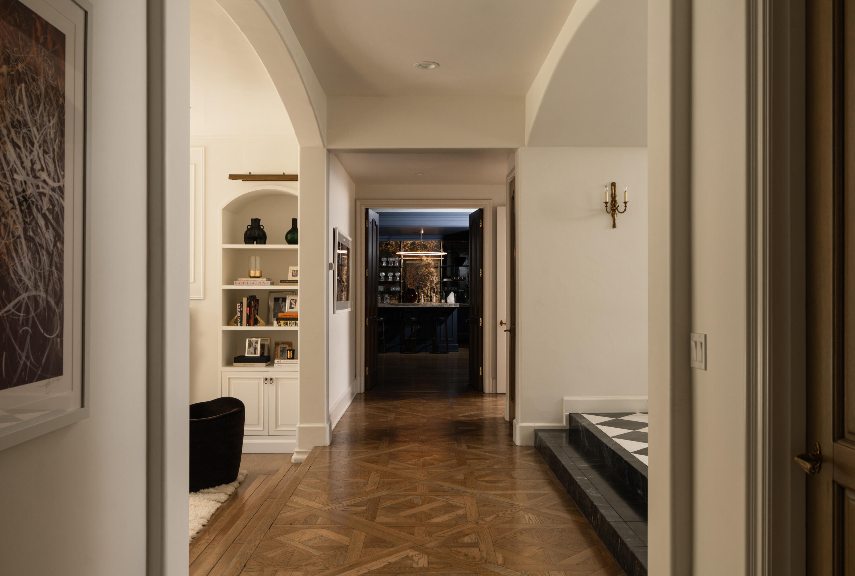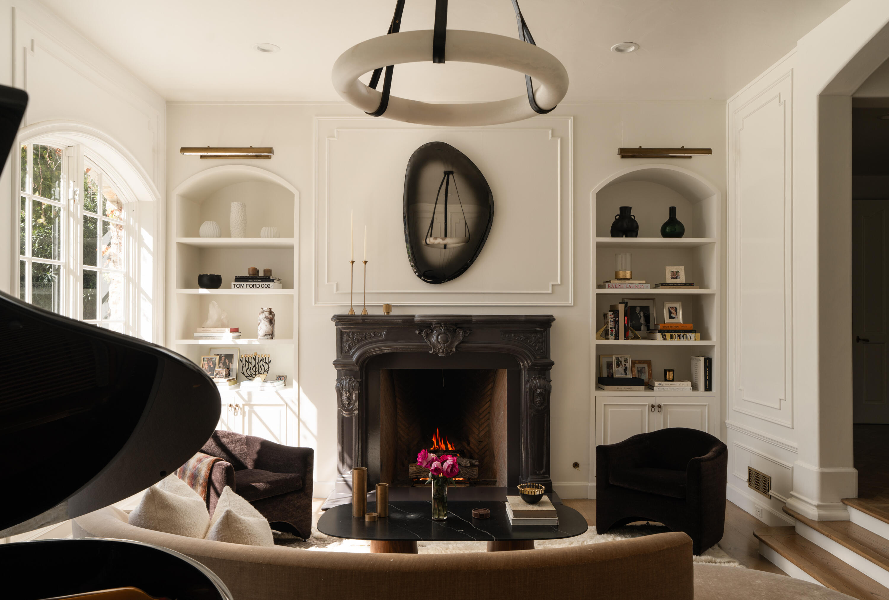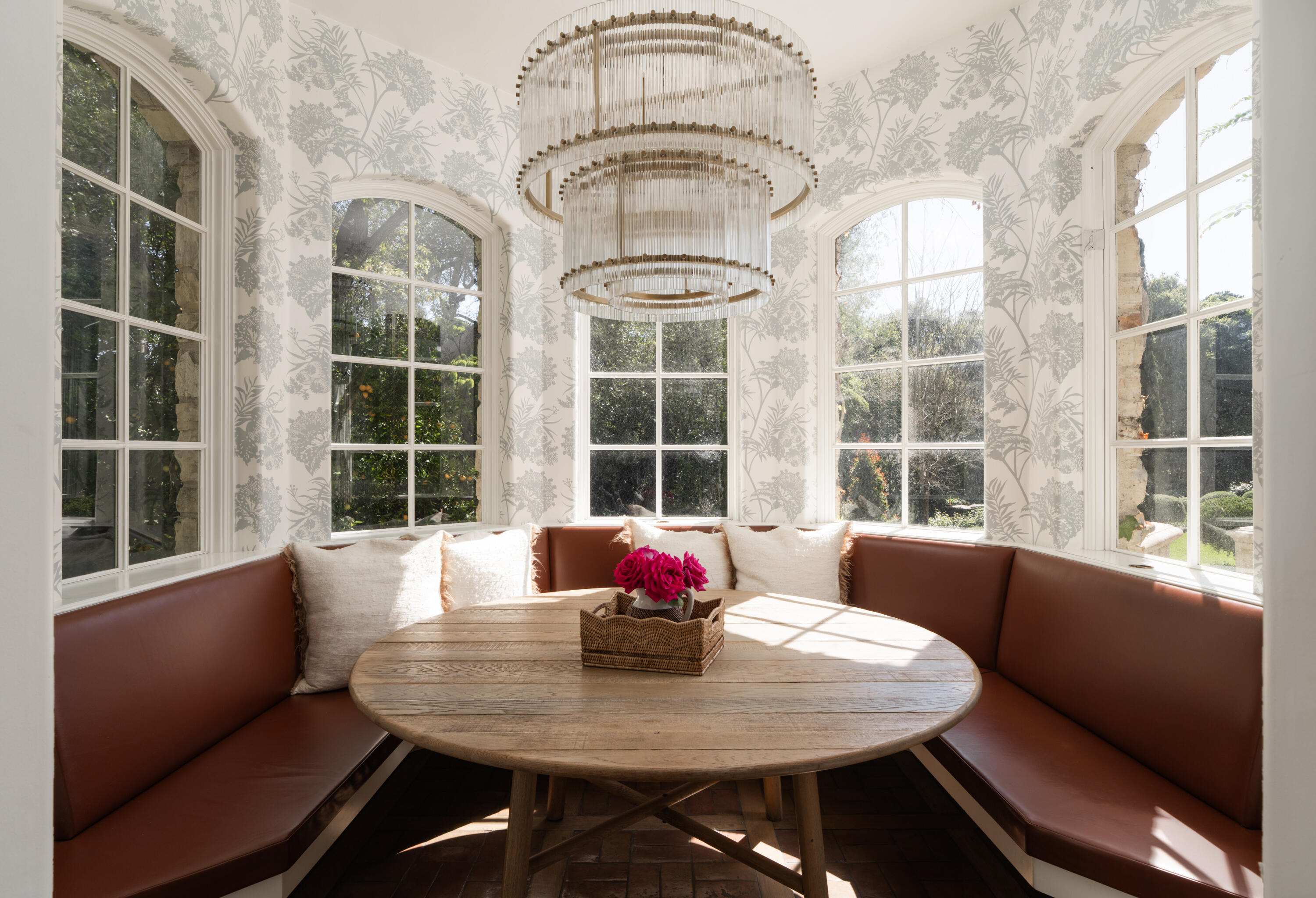 Moments from Montecito's Upper Village, return home to privacy behind gates. Set along a charming lane in a coveted trophy location, this gated estate offers the rare pairing of convenience and a quiet, private setting. The 8,372 sq. ft. residence features stone exteriors, slate rooflines, cathedral ceilings, custom millwork, and multiple fireplaces. In the kitchen, hand-hewn beams reclaimed from a 300-year-old European barn add warmth and character. Five bedroom suites are arranged on one level, while a top-floor media lounge provides a retreat for movie nights and gatherings. The 1.49-acre grounds feature citrus and mature elm trees, expansive lawns, and a bocce court, with approved plans for a future pool and cabana near the heart of the Upper Village.