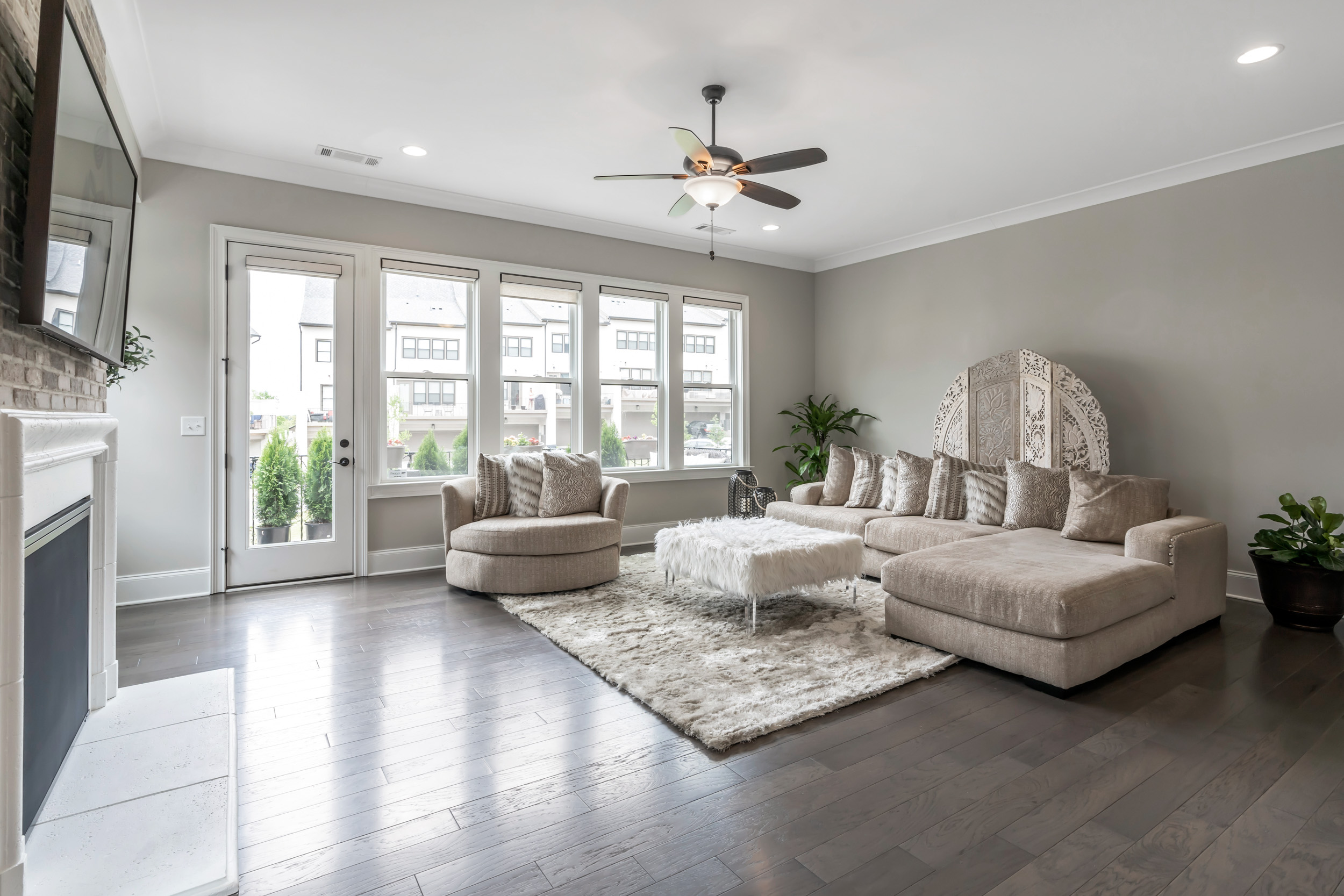 This elegant four-story end-unit townhome in the sought-after Aria North neighborhood offers refined living with exceptional comfort and convenience and will be offered fully furnished. Meticulously maintained and thoughtfully upgraded, the home includes custom blinds throughout and a private elevator servicing all four levels—an exceptional highlight that provides effortless access from the terrace level to the top floor. The main level is centered around the kitchen and flows seamlessly into both the dining room and living room, creating a bright and welcoming space ideal for everyday living and entertaining. The entire top floor is dedicated to a luxurious primary suite retreat, complete with a lounge area, wine fridge, and a covered rooftop patio perfect for relaxing or enjoying quiet evenings outdoors. The daylight terrace level offers exterior access, a wet bar, an entertainment area, and a full bath, making it ideal for guests or additional living space. Located in the vibrant Aria North community, residents enjoy access to two resort-style pools, a clubhouse, and scenic walking trails, all within a prime location close to premier dining, shopping, and major highways.