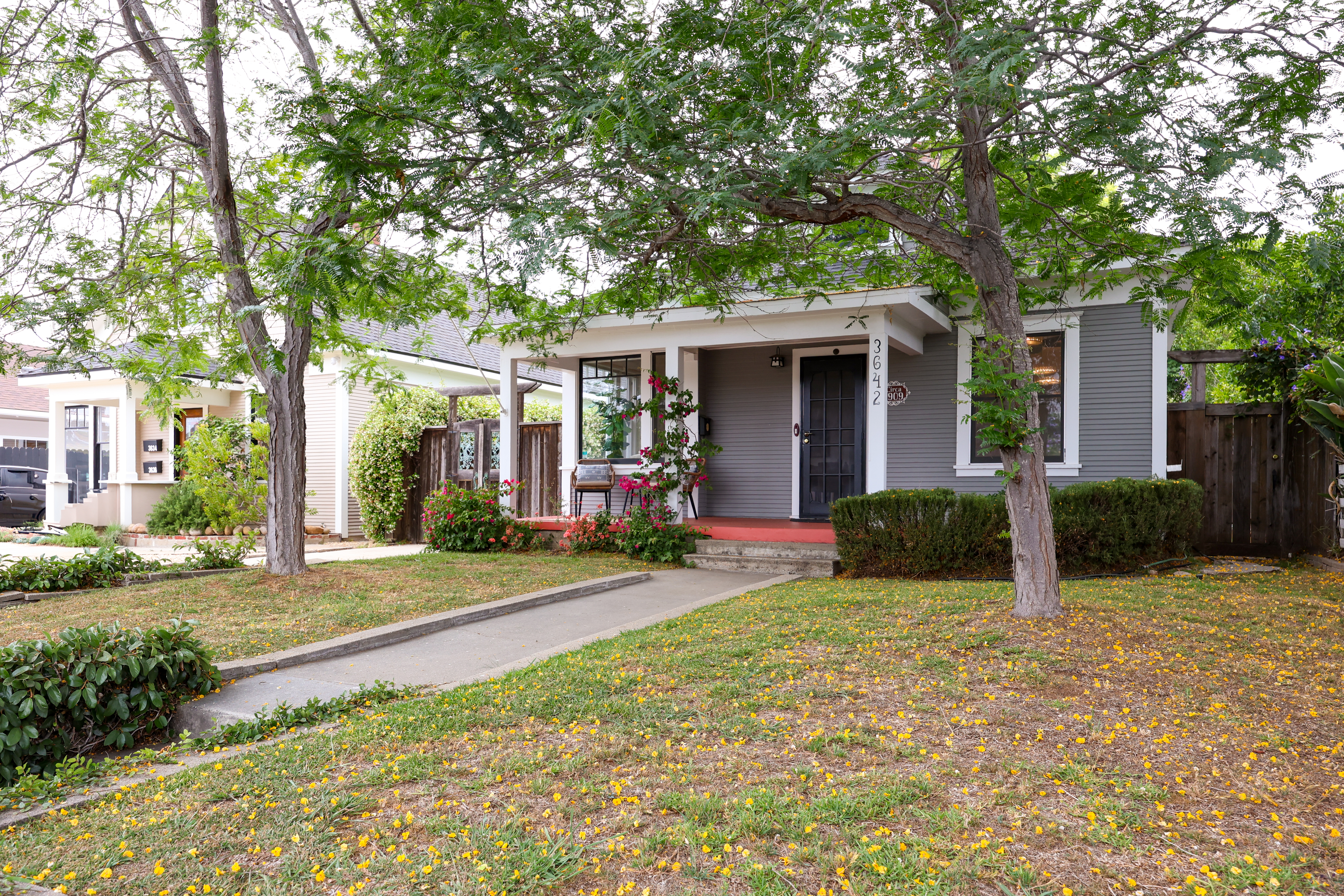 Historic North Park Craftsman with Storybook Charm. Welcome to 3642 Arizona Street, a beautifully preserved 1909 Craftsman home in the heart of North Park, believed to be among the neighborhood’s earliest residences. This 3 bedroom, 2 bathroom historic San Diego home blends timeless architectural character with thoughtful modern updates, creating a warm and inviting living experience in one of the city’s most beloved neighborhoods. Inside, classic Craftsman details shine through with high ceilings, rich hardwood floors, and abundant natural light, enhanced by multiple skylights throughout the home. The spacious kitchen features granite countertops, a gas range, and updated finishes that complement the home’s vintage charm while providing modern functionality. The formal dining room with a wood-burning fireplace creates an inviting setting for gatherings, cozy evenings, and everyday living, while the home’s thoughtful layout balances historic character with comfortable living spaces.Step outside to discover a private outdoor retreat rarely found in urban North Park homes. The oversized backyard features lush landscaping, garden areas, and a wood-burning outdoor fireplace, perfect for year-round entertaining and indoor-outdoor living. The welcoming front porch and spacious front yard provide classic Craftsman curb appeal and a peaceful place to relax and enjoy the neighborhood atmosphere.A detached garage offers additional flexibility and potential, for a creative space or future ADU, while the property’s location places you just moments from North Park’s vibrant University Avenue corridor, known for its award-winning restaurants, cafés, breweries, boutiques, and local shops. Located in one of San Diego’s most walkable and culturally vibrant neighborhoods, the home offers easy access to parks, dining, nightlife, and everyday conveniences while maintaining the charm of a quiet residential street. This is a rare opportunity to own a historic early-1900s Craftsman home in North Park San Diego, combining architectural history, walkable urban lifestyle, and timeless character in one exceptional property.