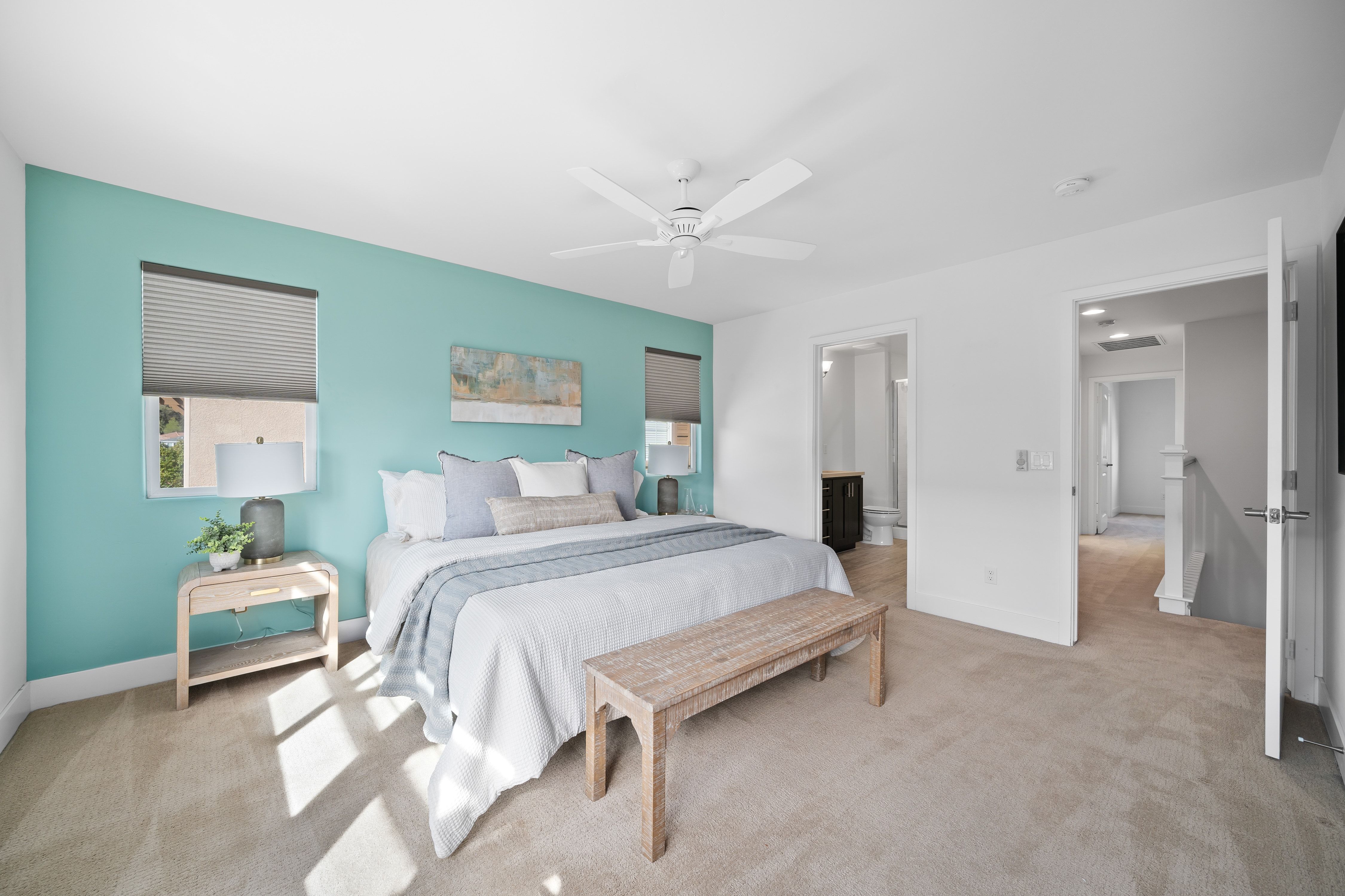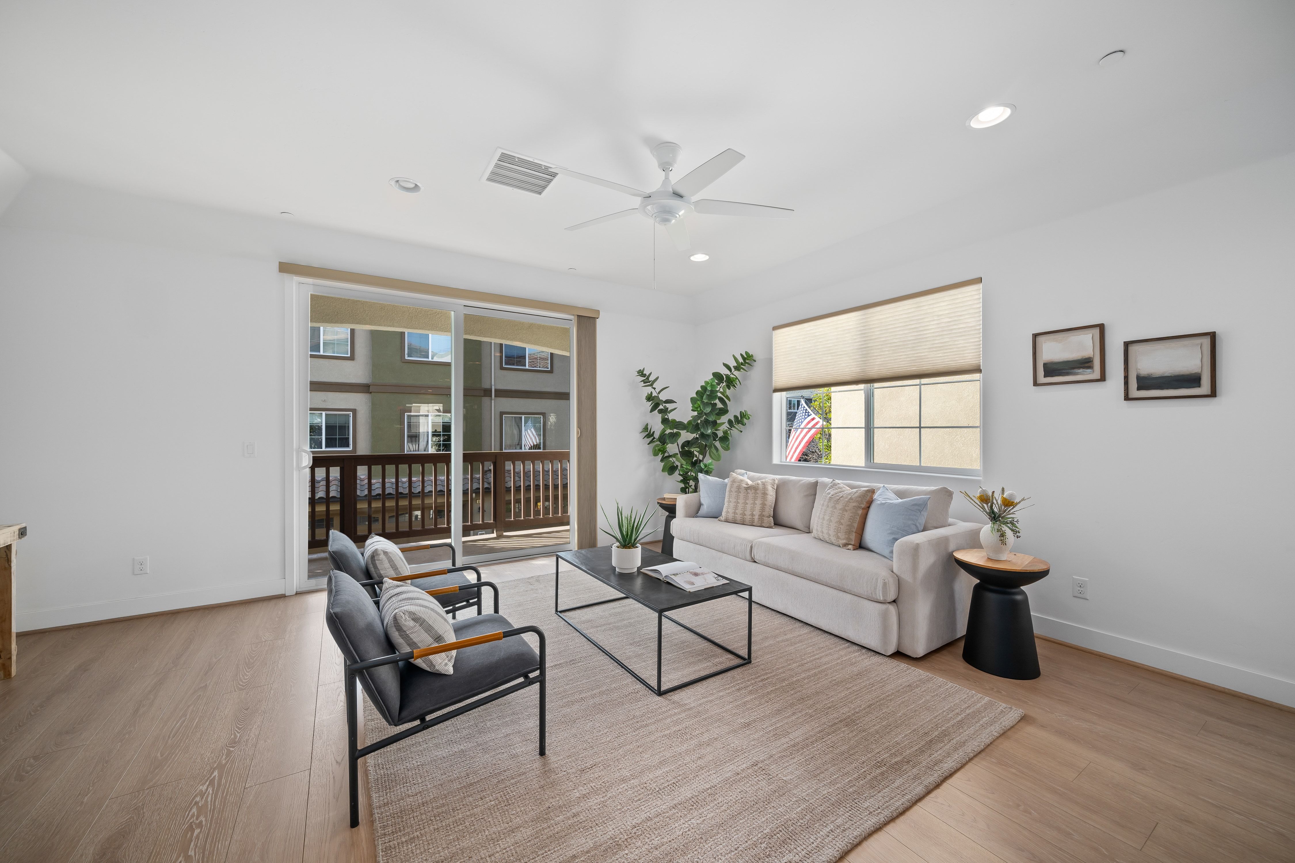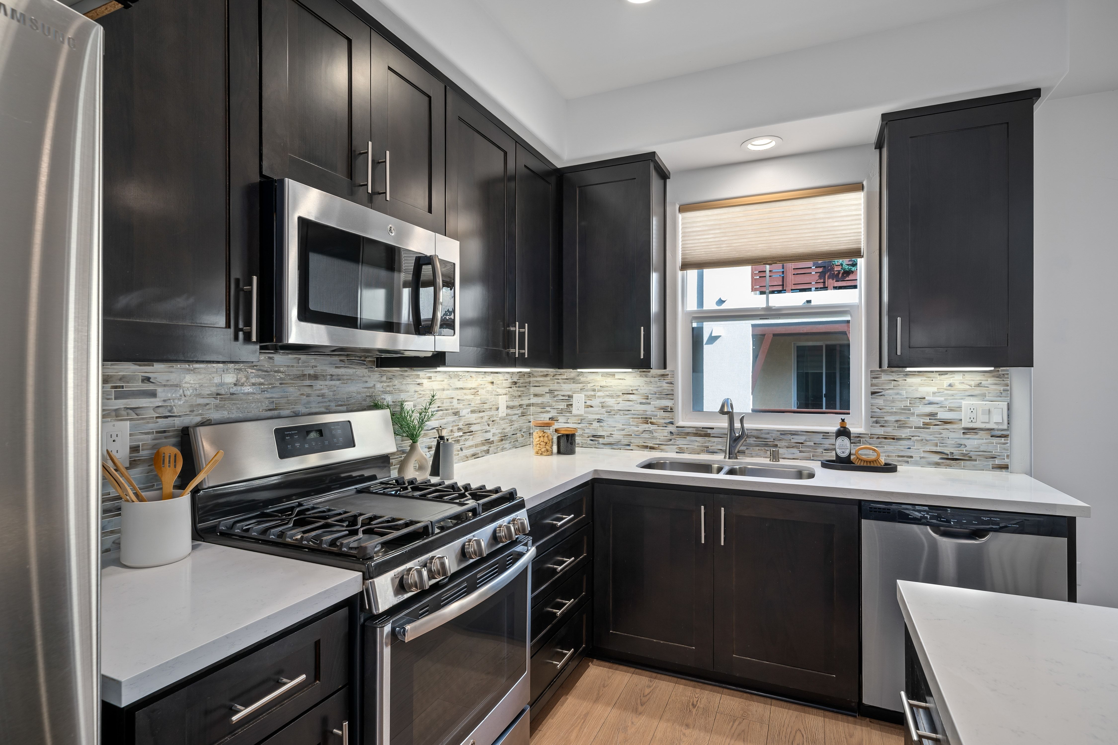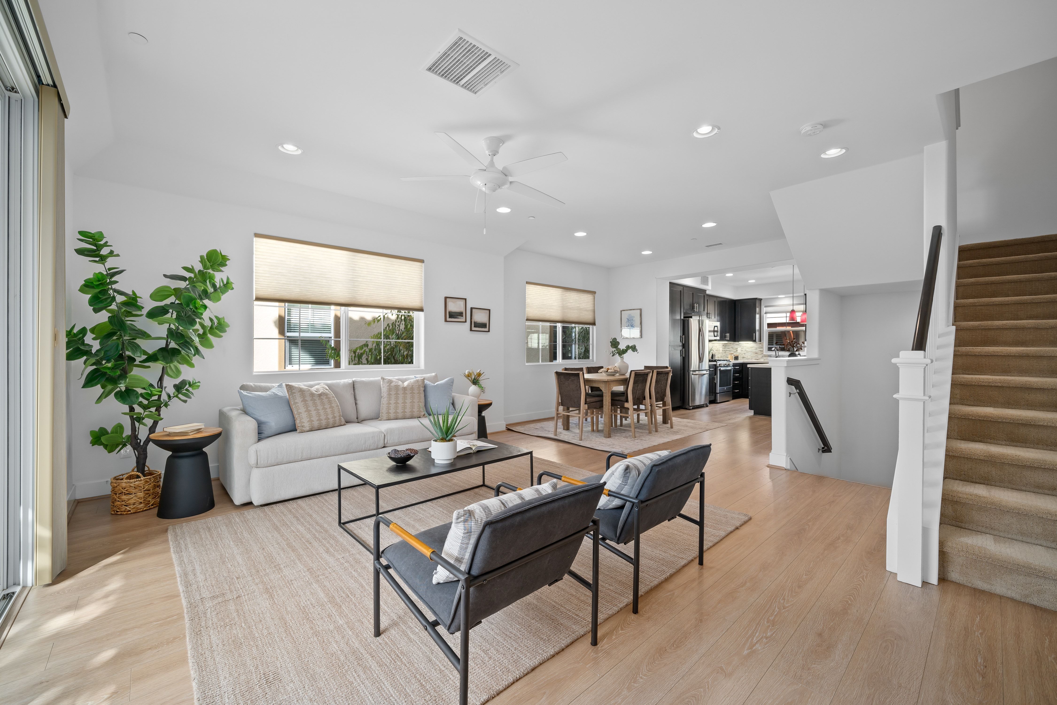 Meticulously maintained 3-bedroom, 3.5-bath townhome featuring warm, modern finishes and a comfortable, functional layout. The entry-level bedroom and full bath offer a private retreat for guests, extended family, or a versatile home office.The main living level features an open-concept great room that flows seamlessly into a beautifully appointed kitchen with rich espresso cabinetry, quartz countertops, and a custom tile backsplash. The kitchen includes a charming breakfast nook for casual meals, while a designated formal dining area offers the perfect space for hosting and gatherings. Spacious balcony, ideal for relaxing and enjoying the hill views.Upstairs, the spacious primary suite offers a large walk-in closet and a large bath with dual sinks and a distinctive river rock shower. The secondary upstairs bedroom includes its own ensuite bath, providing a comfortable and private space for family, guests, or hobbies.Additional highlights include stylish window coverings, a laundry room, and a two-car garage with extra guest parking nearby.Enjoy a relaxed, low-maintenance lifestyle in a charming community featuring creekside walking trails, gardens, a fire pit, BBQ area, and outdoor games like bocce and horseshoes. Ideally located just minutes from local cafés, breweries, restaurants, shopping, hiking trails, and more, while still offering easy access to downtown and nearby parks and beaches.