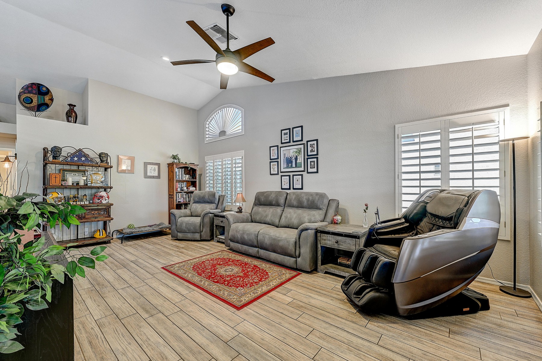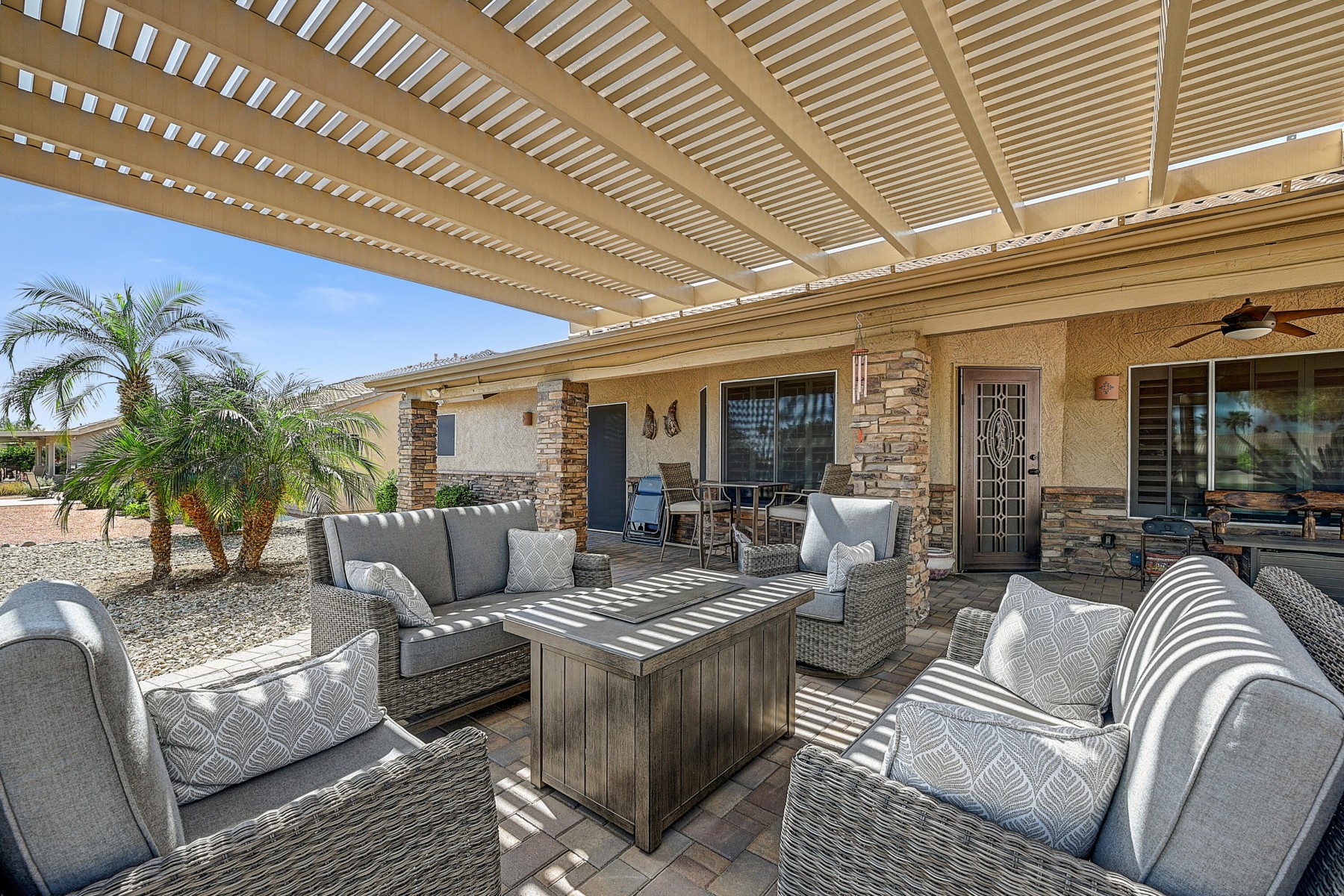 Everything about this home is simply NICE. As you approach, the curb appeal is outstanding with ledgestone & a paver driveway. LOCATION on the Vistas #8 fairway w/ a desirable E facing patio, paver covered, & pergola perfect for outdoor living. inside a neutral palette awaits with tile plank flooring & classy plantation shutters thruout. Kitchen & bathrooms in these king-sized bedrooms on a split layout are nicely updated. Milguard Windows 2021; HVAC, mini split & Security Doors 2023; Irrigation System 2024; Outside painted & gas water heater 2025; Security cameras 2026. NOTHING TO DO BUT MOVE IN & enjoy the amenity-rich WBV lifestyle w/ 2 champ golf courses, pickleball, tennis, social, art, card clubs to enrich your life PLUS the proximity to Loop 101 & P-83, Welcome Home!! MORE Virtually all landscape vegetation has been replaced or added and rock in front and back replaced since our homeownership began.2018Upon purchase, new kitchen appliances, washer & dryer were installed.Kitchen counter tops replaced with quartz and backsplash was added.R/O System installed.Replaced and/or added new light fixtures.Flooring replaced with tile plank throughout.Murphy bed added to secondary bedroom.20 ft flagpole installed in front yard.In 2021 the following improvements were made:Windows were replaced with Milgard white aluminum sun-coat low-E max. Sunscreens added at that time.Pergola added to the back patio.Secondary bathroom remodeled with walk-in shower.Trash/recycle enclosure built along south side of the home.2022 the water softener was added.2023 New HVAC. Air purifier added to the system.Mini split added to the primary bedroom.Primary bathroom was remodeled with walk-in shower and a soaking tub.New security doors of strengthened mesh were added front and back.2024Irrigation system replaced.Driveway covered with pavers.Paver walkway along south side of home connecting driveway to patio was added. 2905Painted exterior of house.New gas water heater installed.2026Security cameras installed.Protection Termite Warranty in place since homeownership through 3/11/2027.