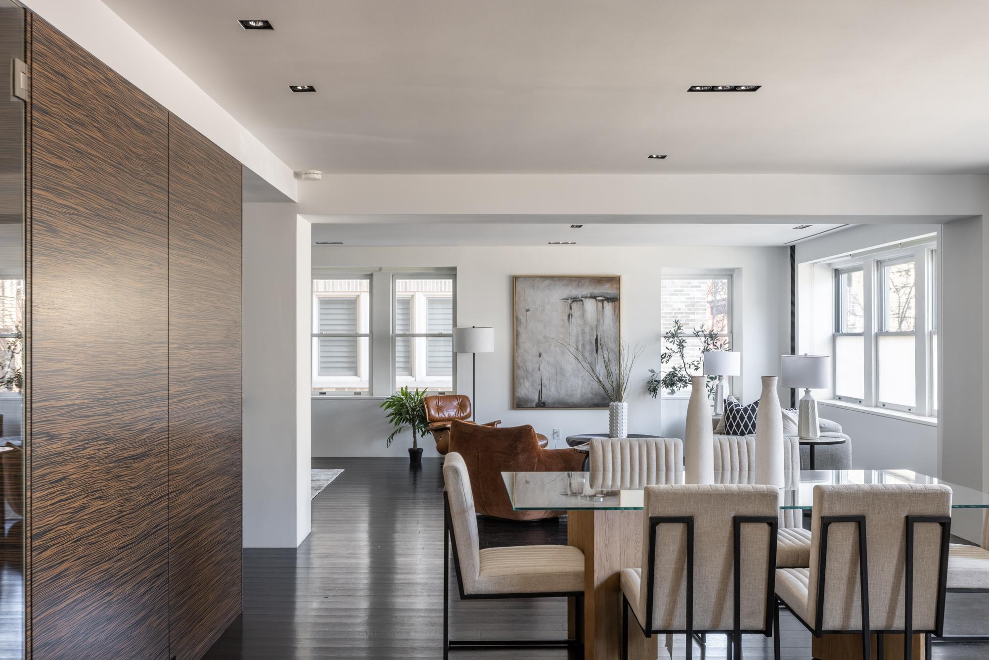 Inside the 1928 Spanish Colonial landmark at 2101 Connecticut Avenue, this three bedroom, three bath residence is a complete architectural reordering by Robert Gurney, FAIA. Awarded by AIA Northern Virginia and AIA Virginia, Apartment 24 is not a renovation layered onto history, it is a disciplined insertion within it.The interior was fully restructured within the original concrete column grid. A central gallery establishes a clear axis from entry to far wall, extending sightlines and light through the length of the apartment. Traditional compartmentalization was removed in favor of interconnected living, dining, and kitchen spaces positioned along the primary solar exposure. Private rooms are set inward for discretion and calm.Millwork is architectural. Cabinetry, paneling, and storage operate as a unified system, layering horizontally and vertically to define circulation and hierarchy without excess. Materials are restrained and deliberate: dark stained oak flooring, white oak cabinetry and paneling, zebrawood, glass, venetian plaster, and aluminum. Translucent panels temper light and create depth beyond each plane. Detailing is crisp, minimal, and exacting, heightening the contrast with the building’s ornate historic envelope.Integrated Miele appliances and Dornbracht fixtures align with the architectural rigor. Dual zone HVAC, recessed in ceiling audio, and a dedicated media and network closet are fully concealed within the millwork framework. A complete materials and specifications dossier is available.2101 Connecticut Avenue offers full service living with 24 hour concierge and doorman, fitness center, meeting room, shared wine storage, expansive roof terrace with monument views, and secure garage parking. One space conveys.