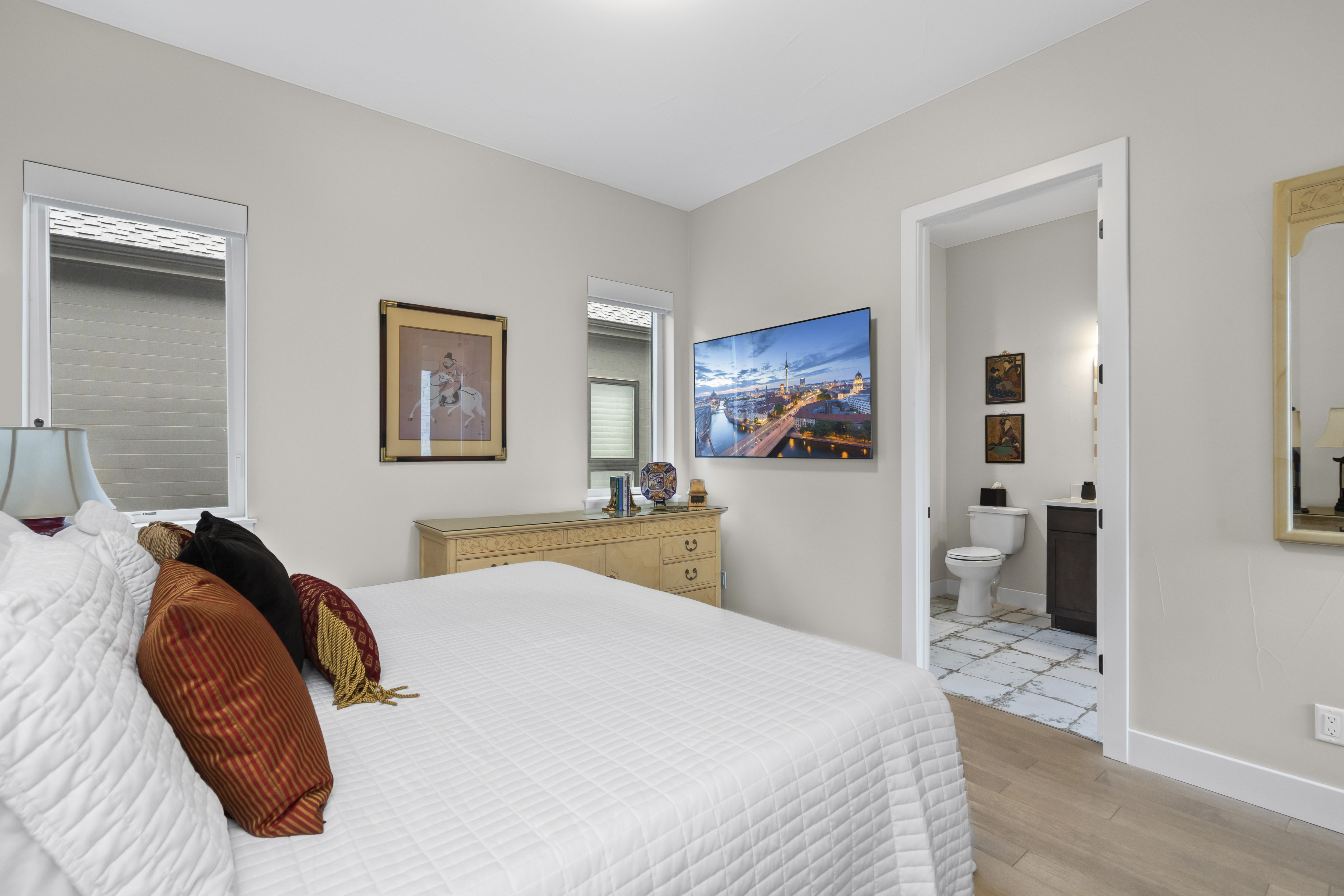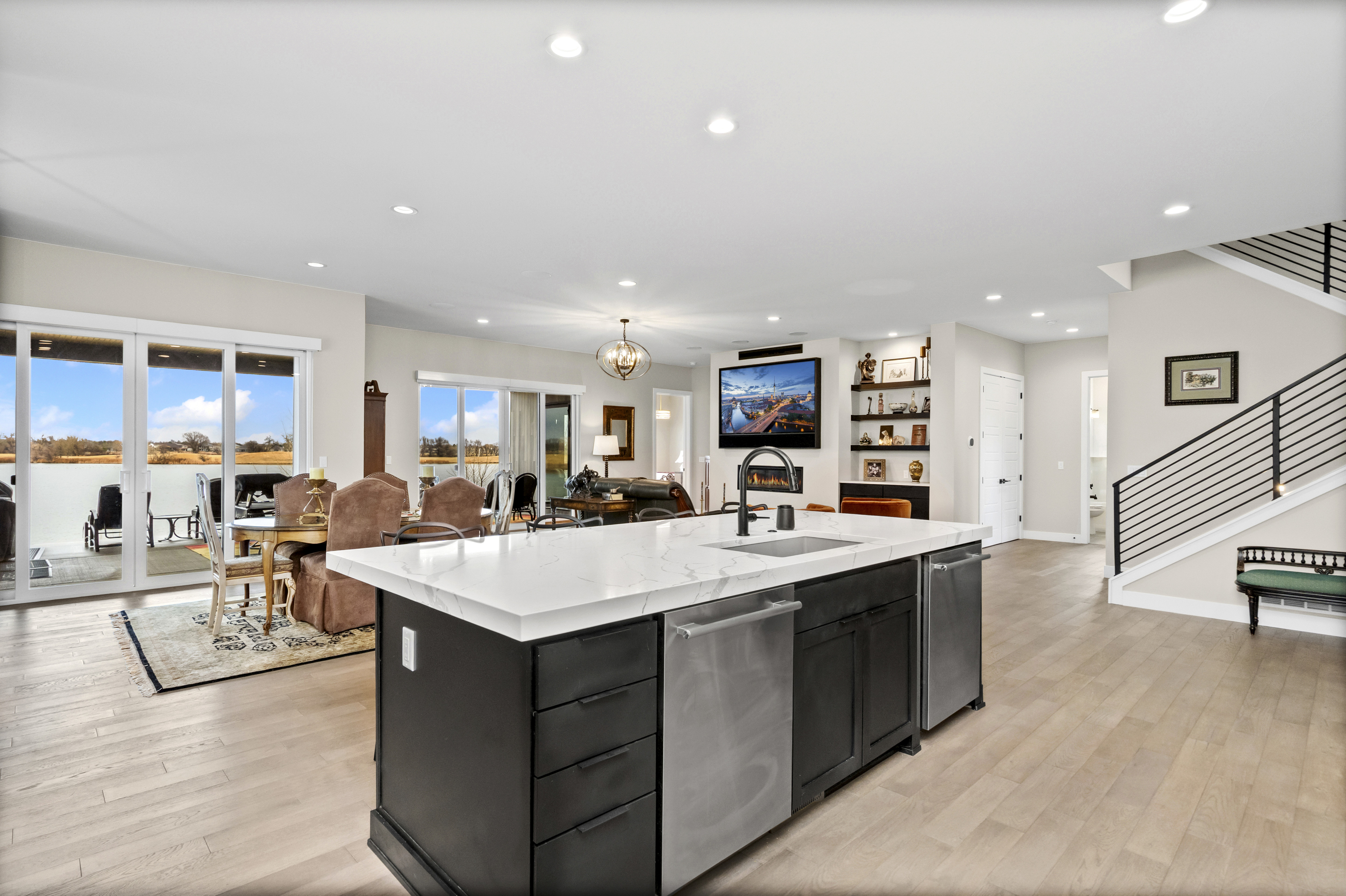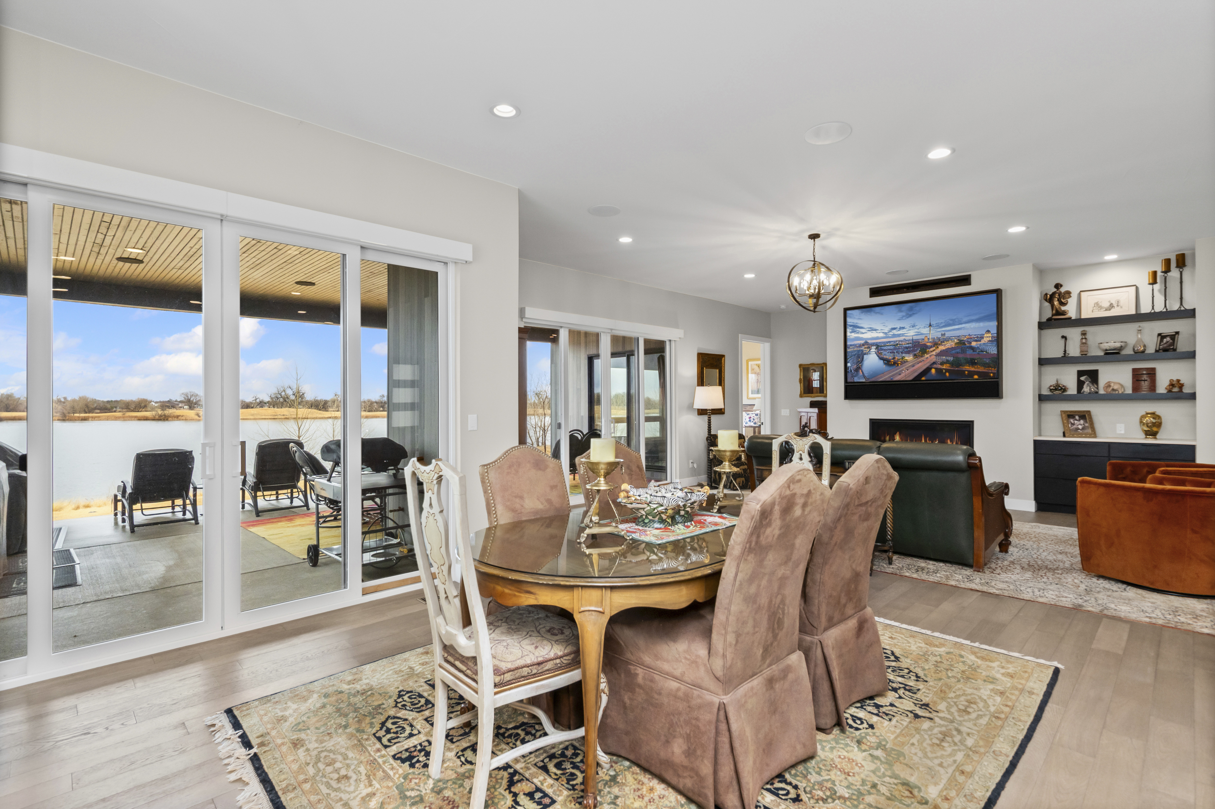 Welcome home!! to Water Valley lakefront living located on one of the best lots, with views of the lake and holes 14, 15, 16 and 17 at Pelican Lakes. This home was purchased and had 200k in upgrades throughout. This 4-bedroom, 4 bath has a very open floor plan with lake views from the kitchen, dining, living, loft, primary and bedrooms 2 and 3. Kitchen has gas cooktop, large island, built in refrigerator, double wine fridges. Solid core black, 5 panel doors throughout the home. Hardwood throughout main level. Insulated ceiling/floor between first and second level for quiet, peaceful living space between main floor and upper-level game room. Step out to enjoy a glass of wine on your oversized covered private patio on those beautiful crisp Colorado summer nights as you bask in the beauty of the lake and golf course as you watch the pelicans peacefully drift by. Upstairs is its own separate living space all together with its private bedroom, 3/4 bath and oversized Rec Room. Lutron electric window coverings throughout, oversized 2 car garage with built in storage shelves. Professional, AV setup.