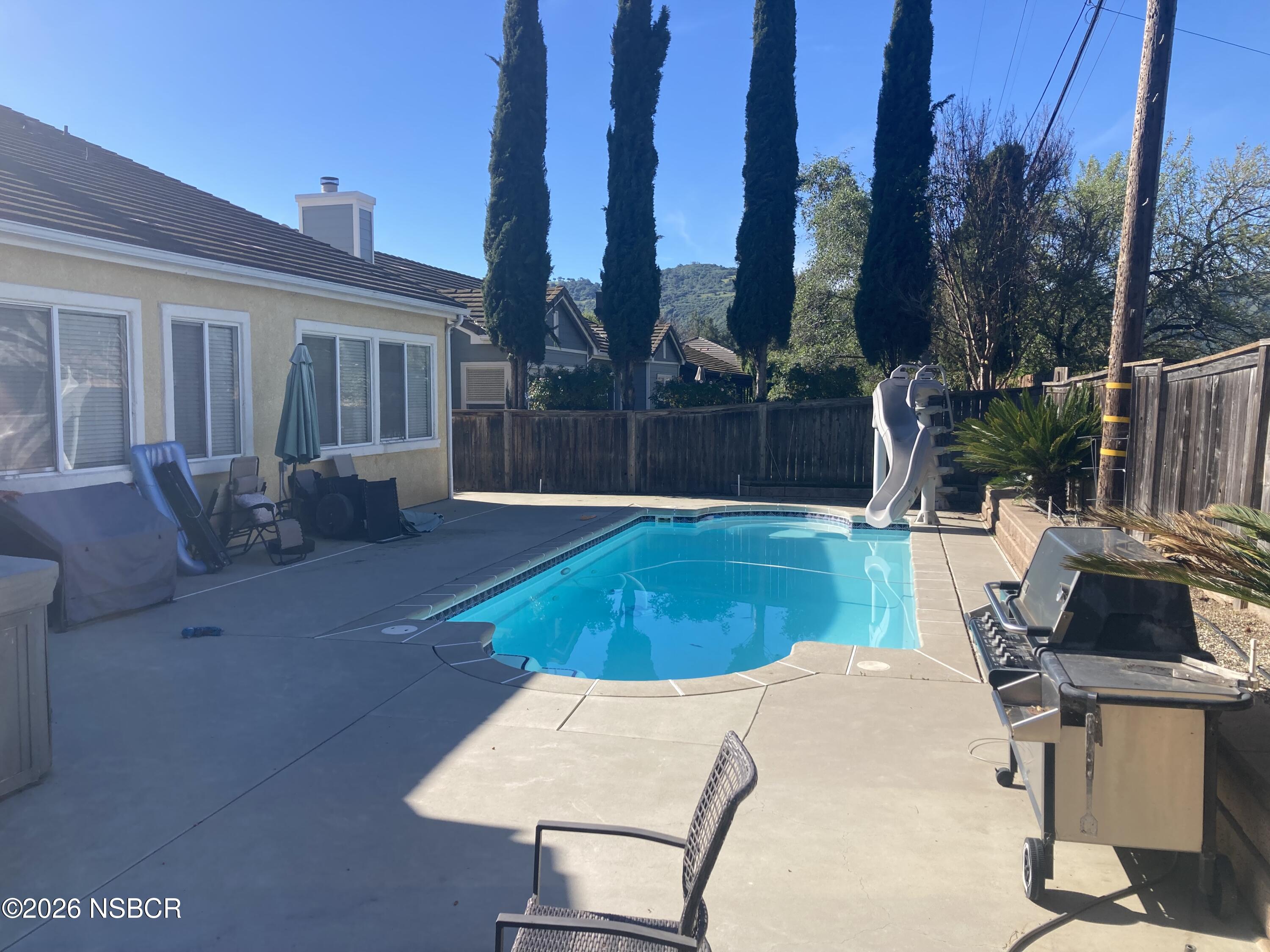Buellton Country Home - Built with many upgrades and improvements, this 4 Bedroom, 3 Bath residence features large open rooms with high ceilings, lots of windows for bright interior spaces, formal living and dining rooms, gourmet kitchen with center island and adjacent family room. The primary suite includes backyard views, luxurious bathroom with separate shower and bathtub plus walk in closet. The large backyard includes patio area, swimming pool and above ground spa. Existing mature landscaping includes fruit trees, trellised grape vines, vibrant roses and fenced front lawn area. An attached garage offers extra living space and storage areas. One owner and the first time on the market since being built in 2003. Located in the Homes at Ballard Canyon, this property is close to all services and conveniences in the city of Buellton within close proximity to all that the Santa Ynez Valley has to offer.