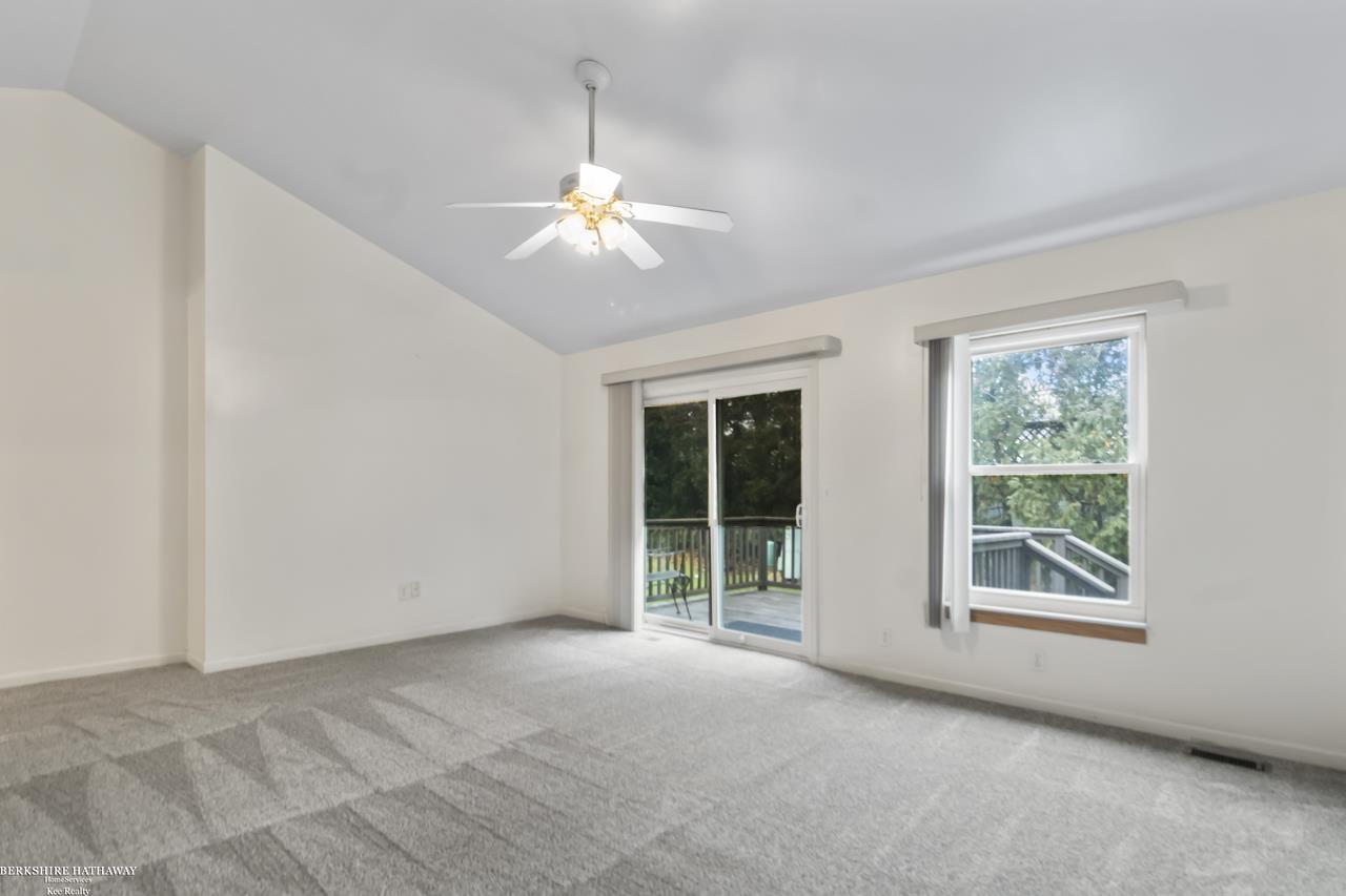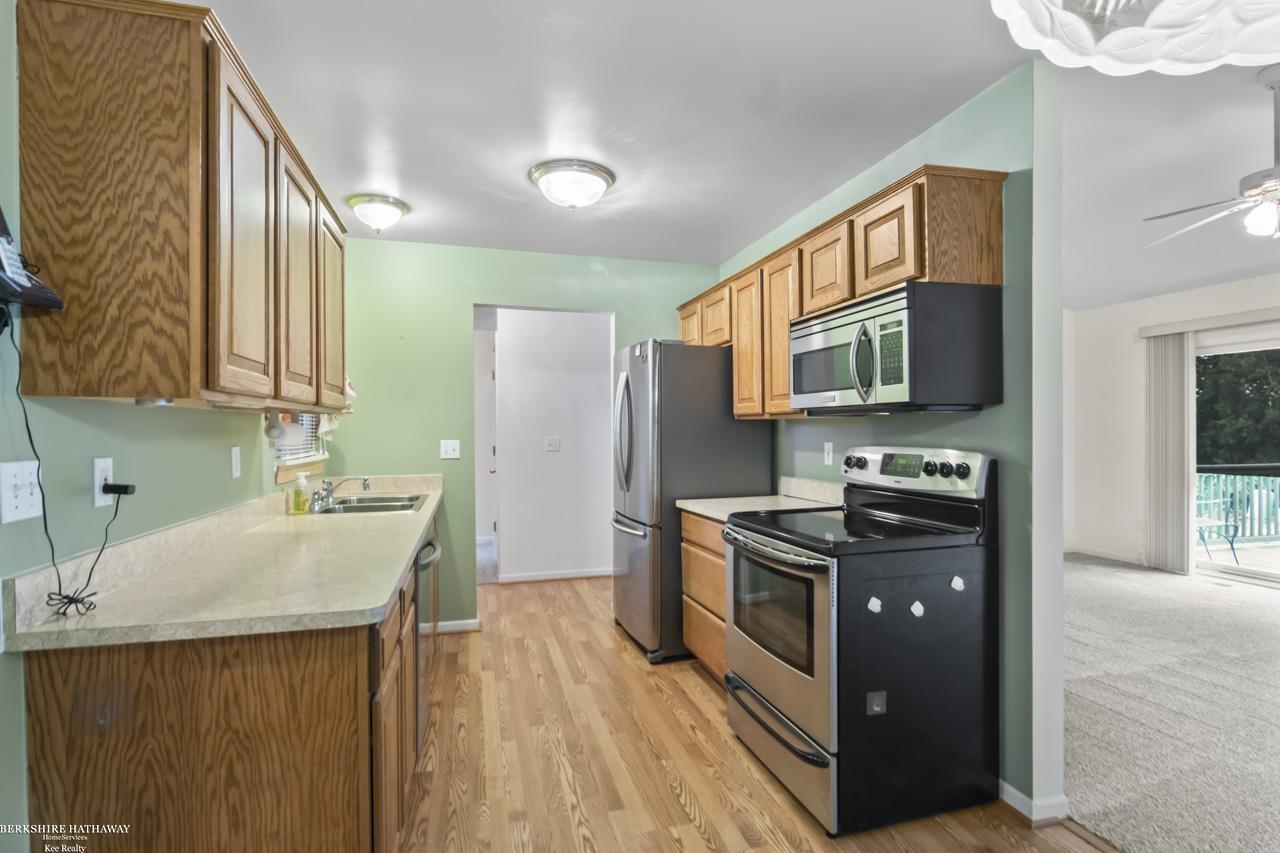 Move-in ready 2-bedroom condo with cathedral ceilings, new carpet, private deck, attached garage, and full basement in a desirable community. Welcome to this clean and comfortable 2-bedroom, 1.5-bath condo offering 1,006 sq ft of easy living. The spacious living area features cathedral ceilings and a sliding door wall that opens to a private deck-perfect for relaxing or entertaining. New carpet throughout makes this home truly turnkey. The kitchen includes all appliances, and the washer and dryer are also included for added convenience. The pantry area features a water hookup that offers the potential for a first-floor laundry conversion. Additional highlights include a 1-car attached garage and a full basement providing excellent storage or potential future finished living space. Conveniently located near shopping, dining, and major roadways, this home offers low-maintenance living in a prime location. Schedule your showing today!