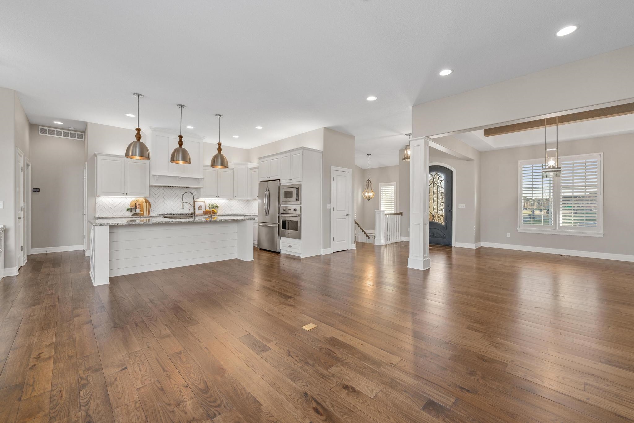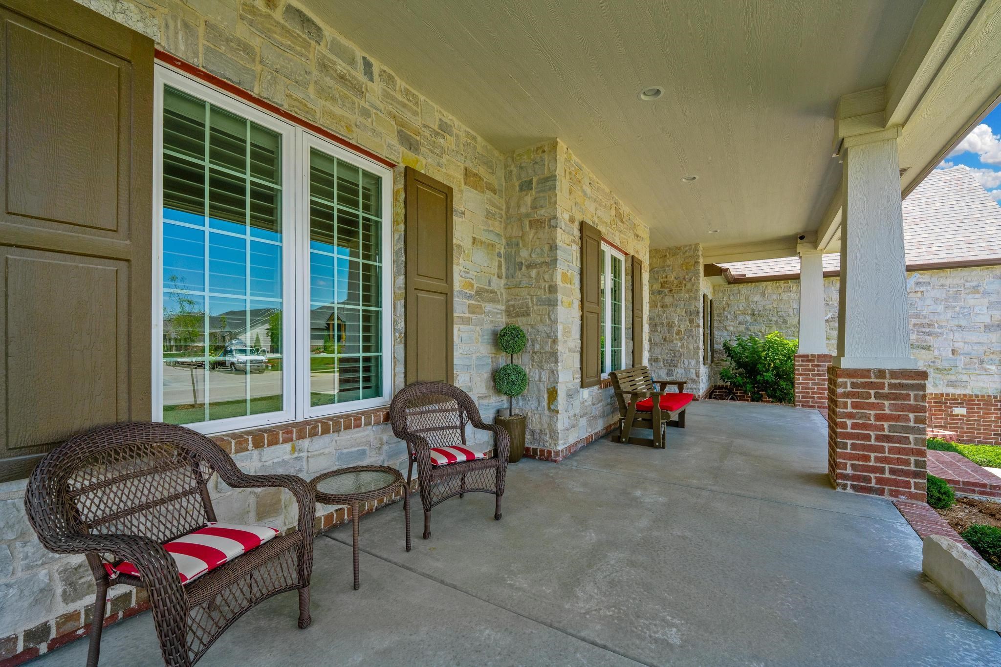 THIS HOME IS TRULY SET APART FROM ITS COMPETITION. STANDOUT FEATURES INCLUDE AN ADDITIONAL 6000 SF LOT BEHIND THE HOME, UPGRADED VIKING APPLIANCES THAT REMAIN, A HUGE ALL-CONCRETE STORM SHELTER, REAL HARDWOOD FLOORS AND INCREDIBLE LAYOUT. Welcome to this impeccably maintained, one-owner home that truly offers more than meets the eye. Sitting on an expanded lot - thanks to the additional land the sellers purchased behind the property - the backyard provides rare space, privacy, and endless possibilities, all paired with an unbeatable view. Inside, the 2100 SF main floor features a bright living room, stunning kitchen with upgraded appliances, a formal dining room, and a charming kitchen eating nook. The main level also includes three spacious above-ground bedrooms for easy everyday living and the impressive laundry room is both beautiful and functional, with convenient access from both the hallway and the master bedroom closet. Downstairs, the finished walkout basement is designed for entertaining with a full bar, fully equipped with everything an entertainer's heart could desire. It's truly complete with a large family/rec room, two additional bedrooms, and a full bath while a massive all-concrete storm shelter beneath the front porch offers exceptional peace of mind and added storage. Outdoors, enjoy the incredible covered back deck, additional uncovered grilling deck, or relax on the expansive, welcoming front porch. With nearly 4000 SF, five total bedrooms, 3.5 bathrooms, a three-car garage, walk-in pantry, real hardwood floors, and immaculate condition throughout, this home looks and feels as if it has never been lived in. Truly a must-see!