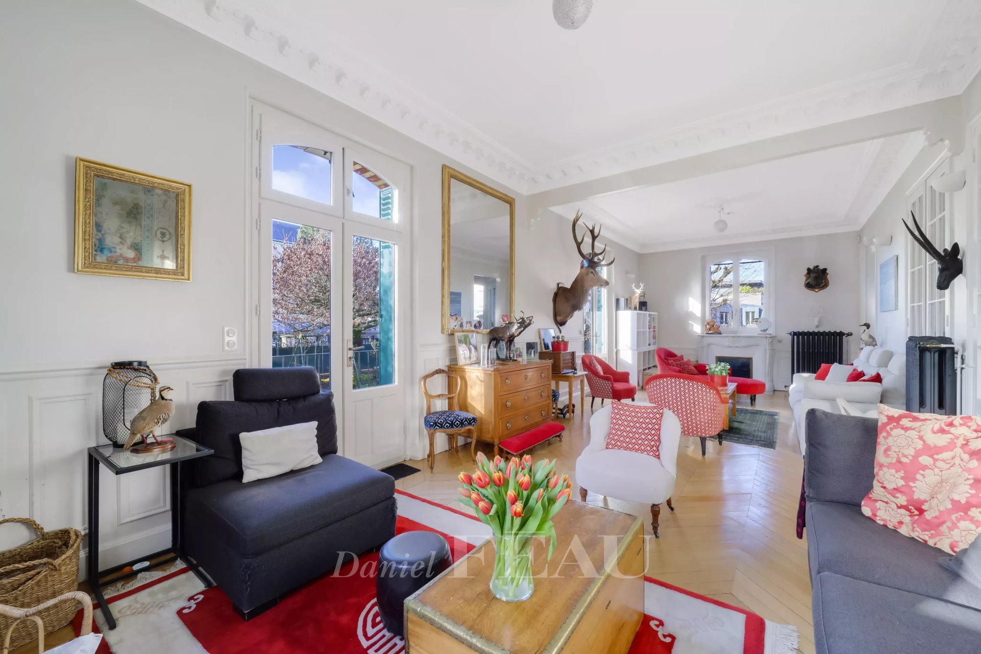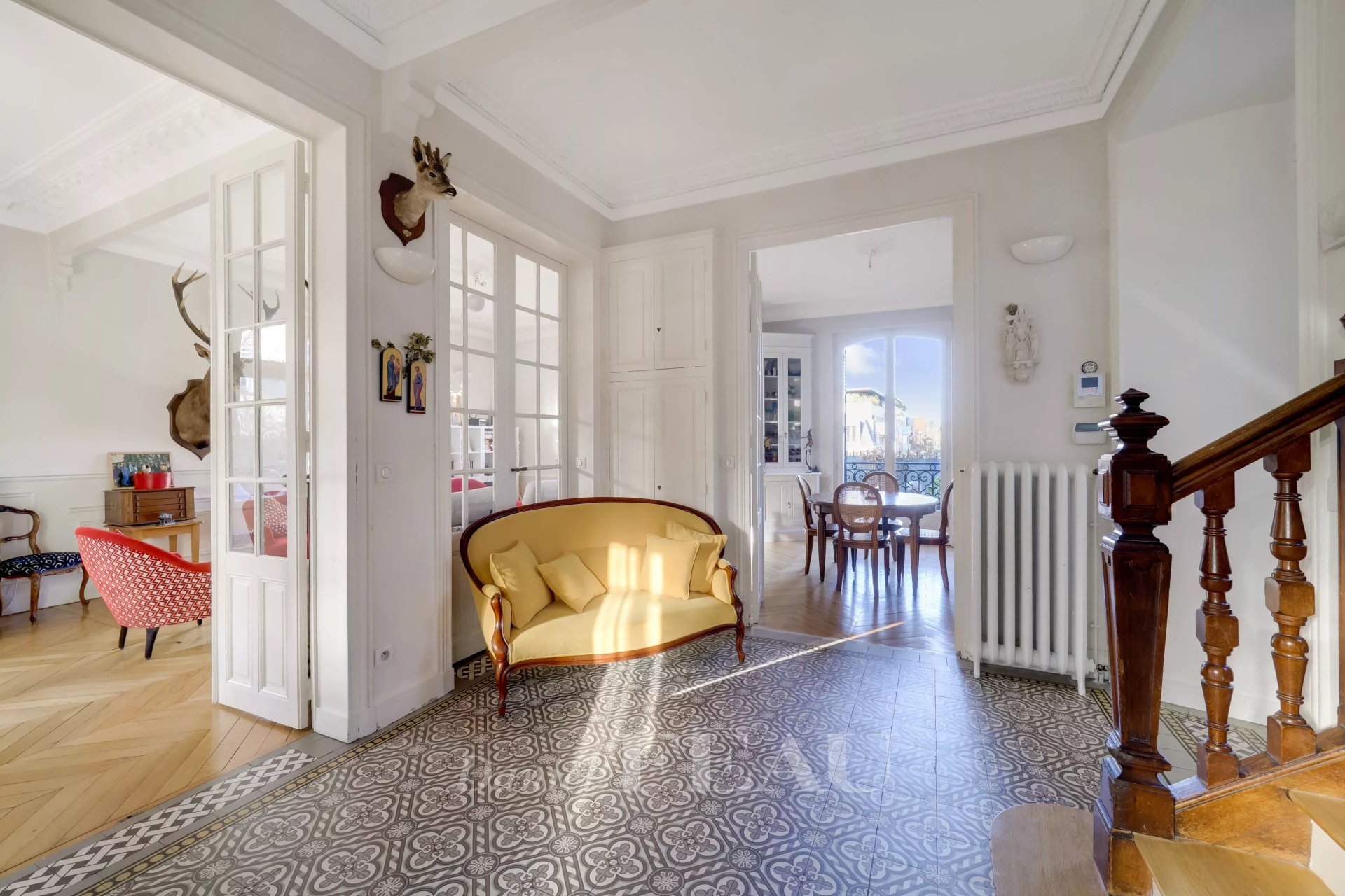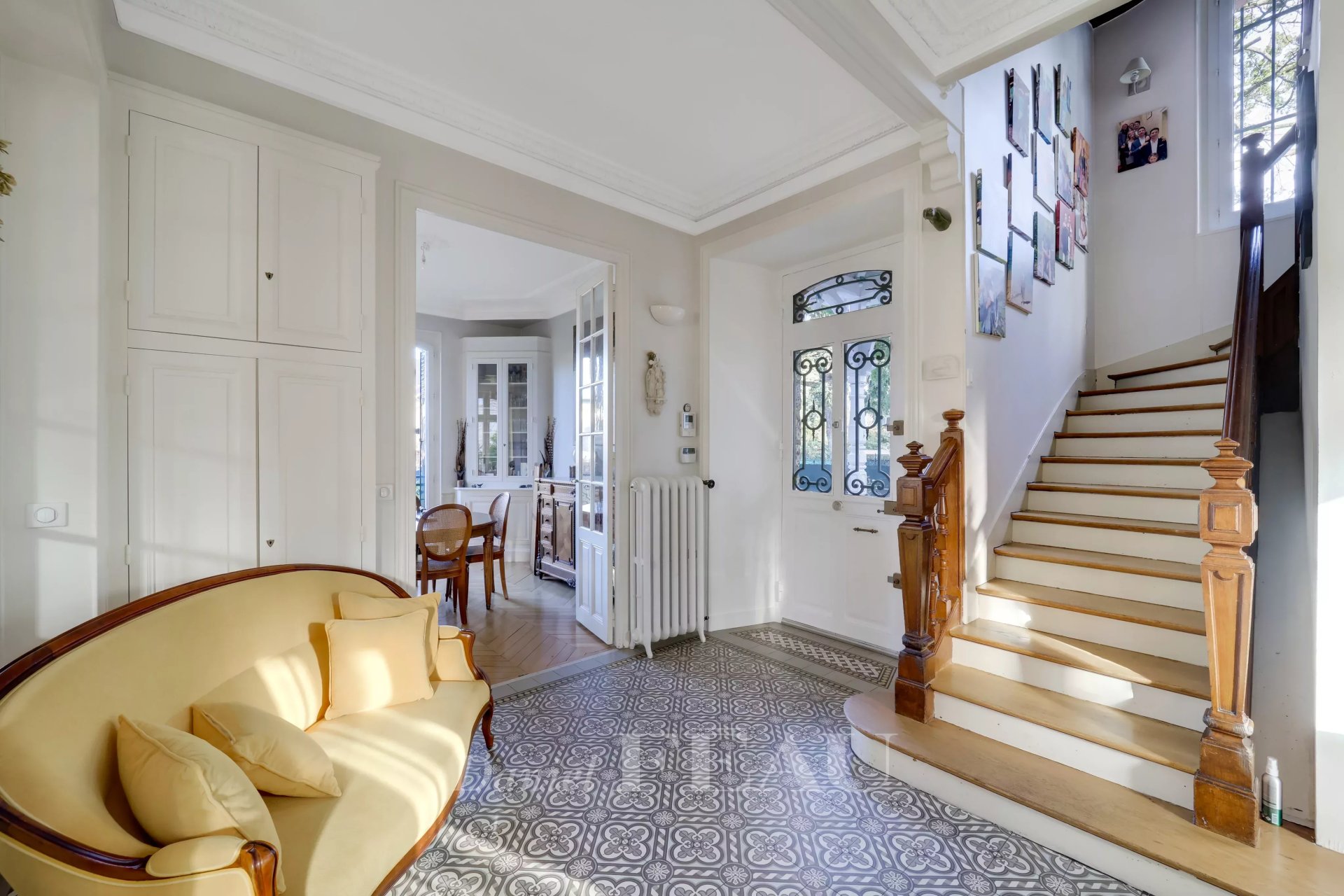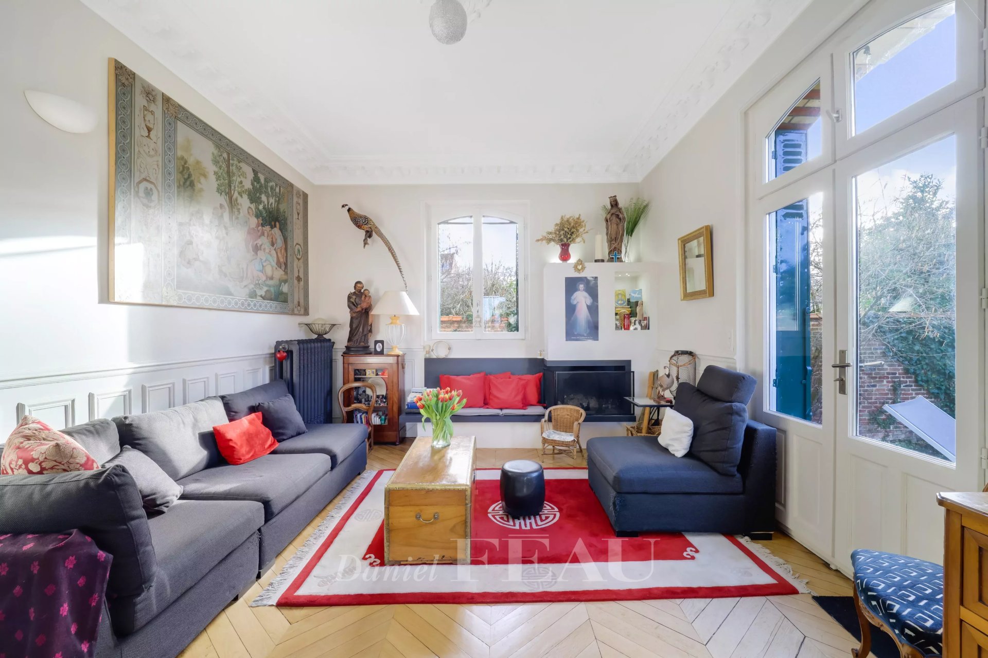 Sole Agent. This elegant millstone-built property dating from the early 20th century is set in a sunny 700 sqm plot. Offering over 400 sqm of floor space and 300 sqm of living space, it includes a near 40 sqm triple-facing living/reception room featuring Herringbone parquet flooring and two working fireplaces opening onto a terrace and the south-facing garden, a dining room, and a spacious equipped kitchen with dining facilities, and a guest wc.