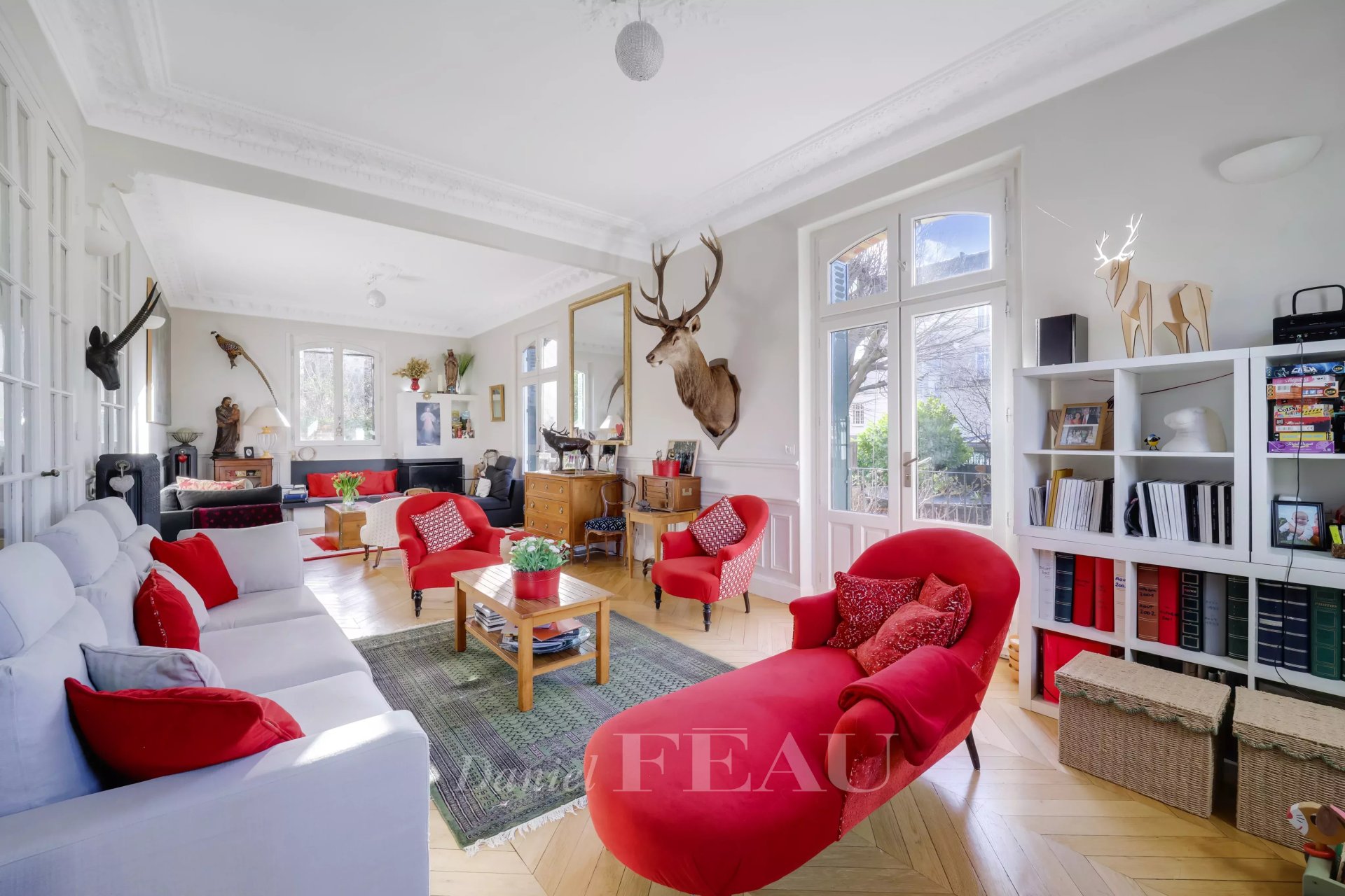 Beautiful period features include parquet flooring, mouldings, fireplaces and sculptured iron radiators.