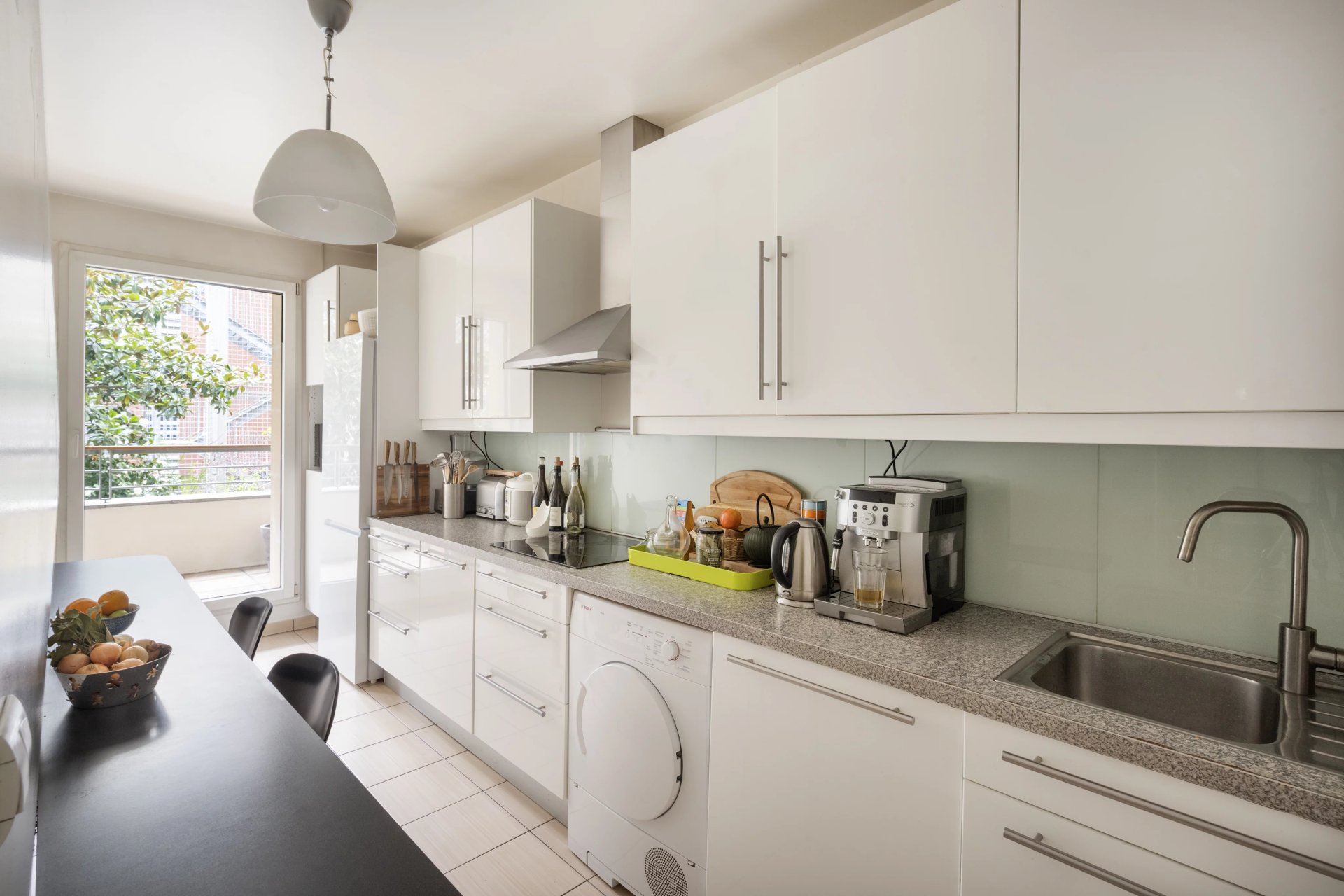 On the 1st floor of a well-maintained, modern building, this 94.69 sq m (990 sq ft) east-west facing apartment features a terrace overlooking a landscaped garden. The property comprises an entrance hall, a large 28 sq m (301 sq ft) living room, a fitted kitchen, three bedrooms, a bathroom, a shower room, and a separate toilet. Bathed in natural light thanks to its dual aspect, the apartment offers generous living spaces and absolute tranquility overlooking the garden. A 6.80 sq m (74 sq ft) terrace provides a rare outdoor space in the heart of the 9th arrondissement. Ideally located on Rue Rodier, it is within easy reach of shops, public transport, and schools. A private parking space and a cellar complete this desirable property.