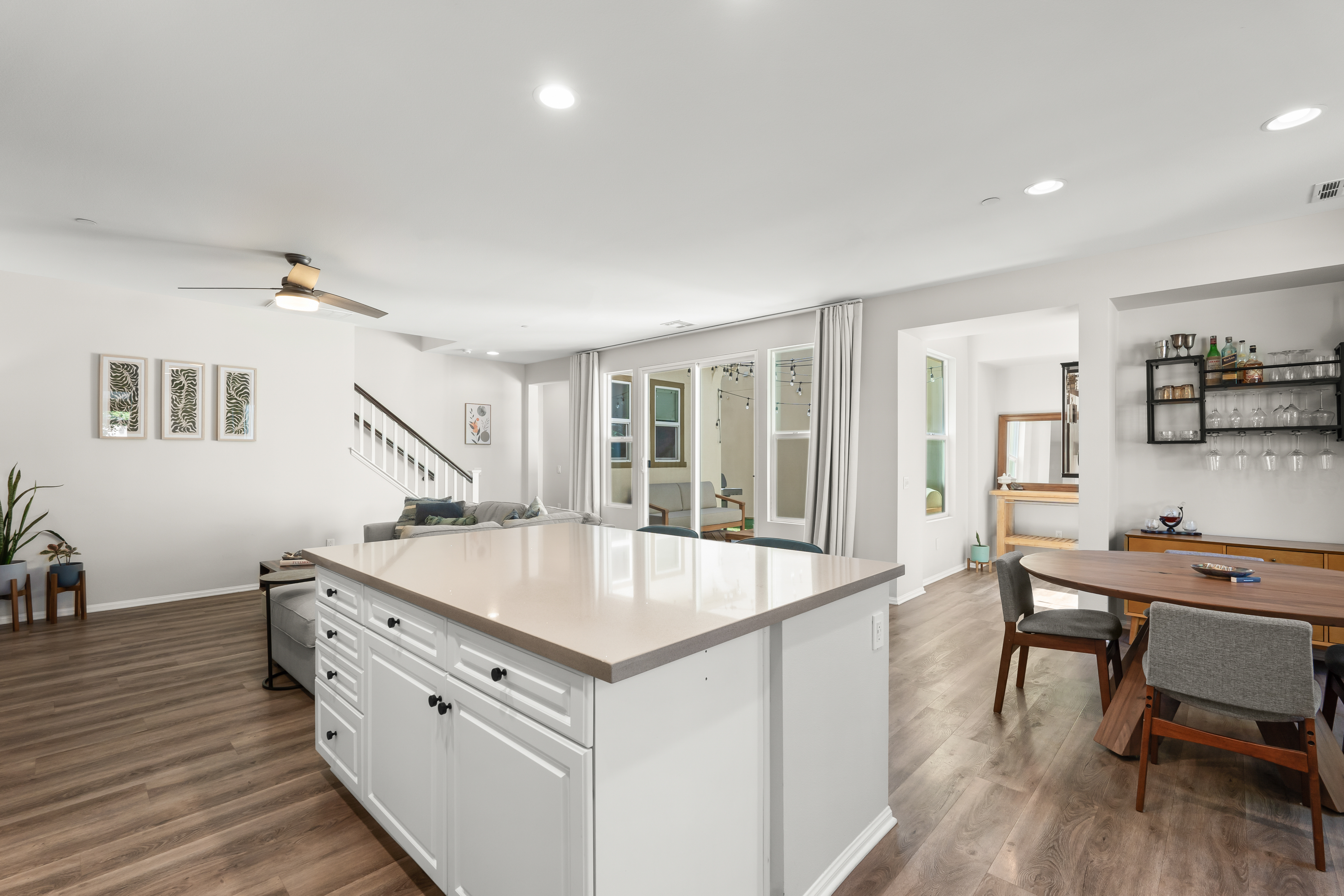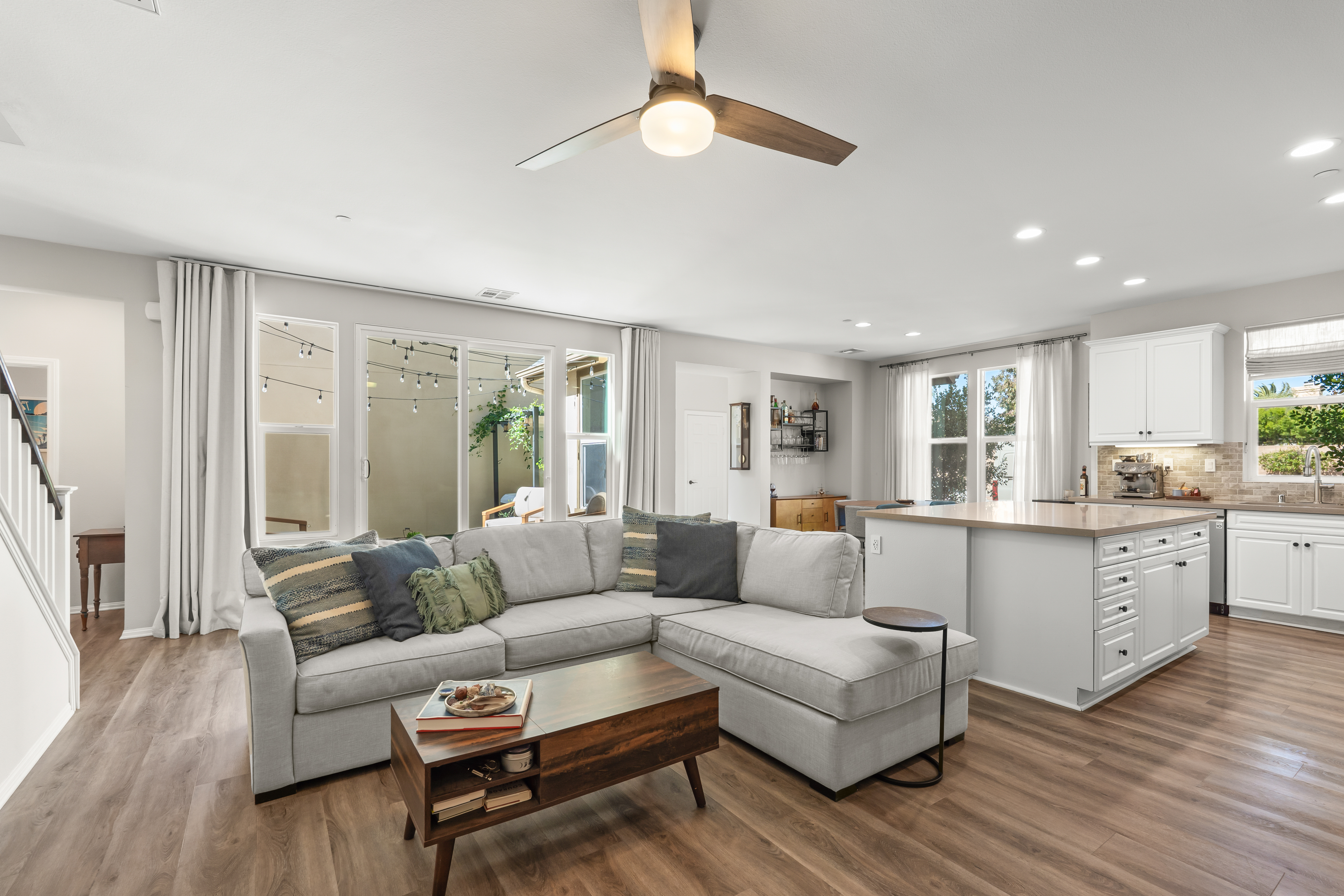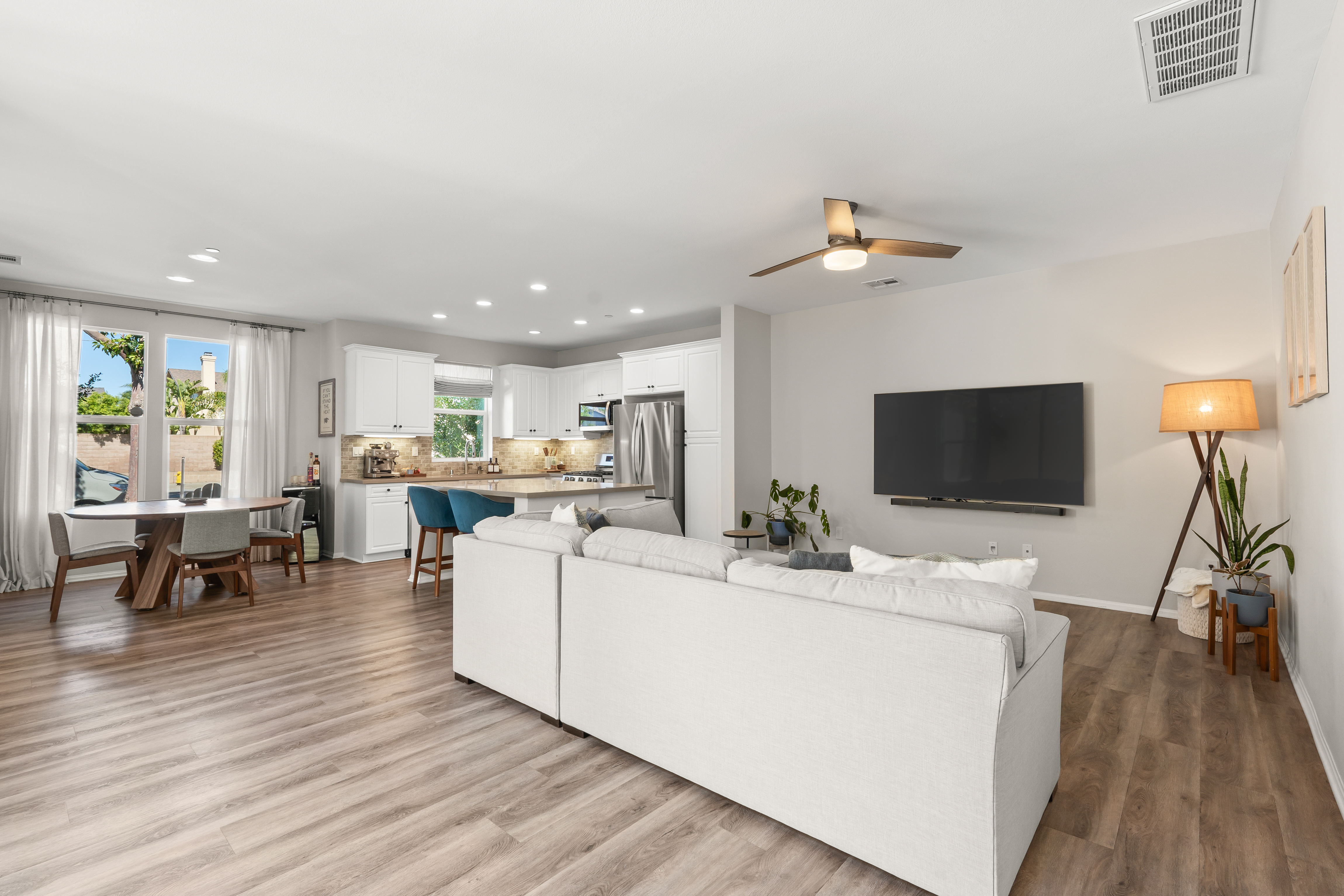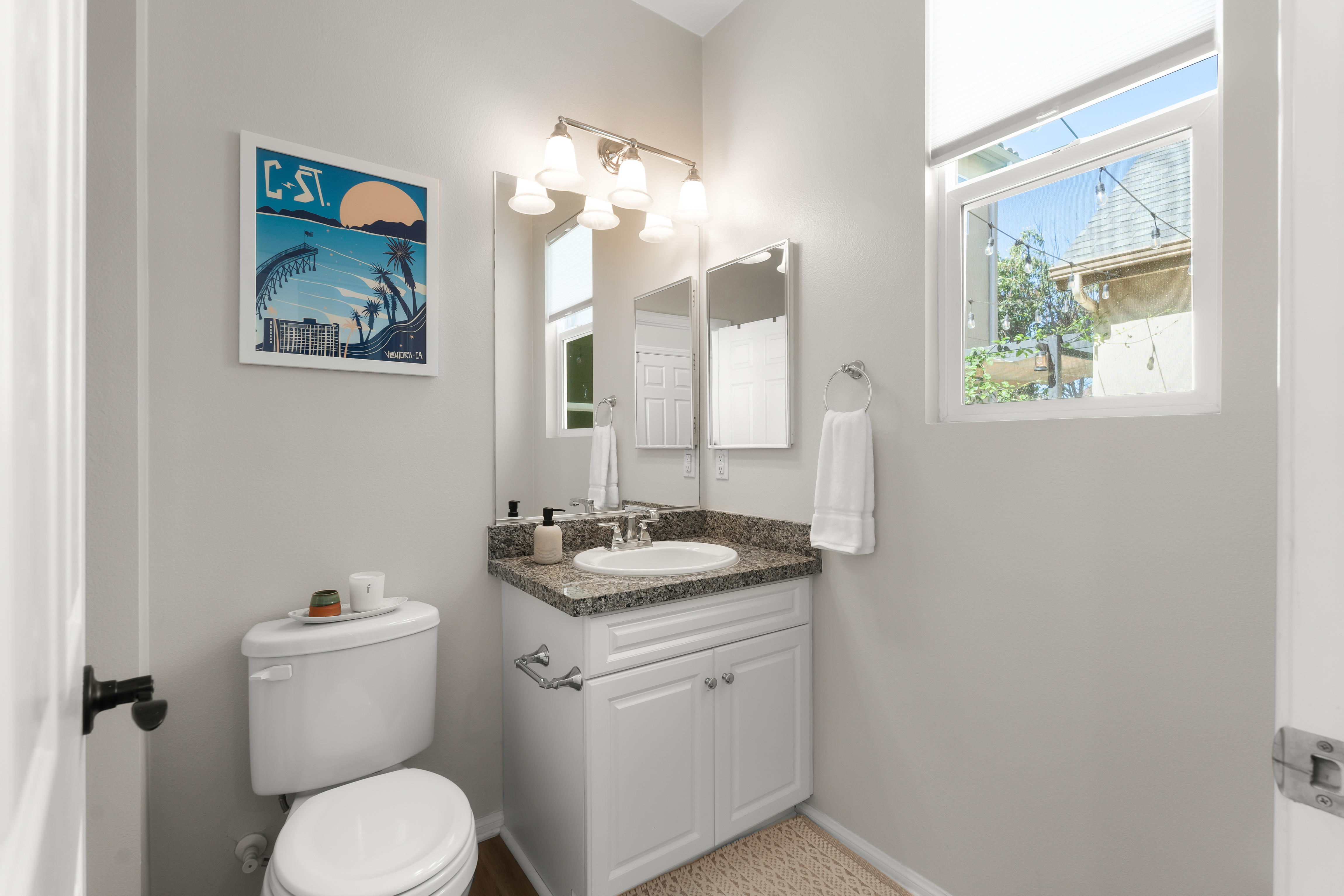 Modern East Ventura living at its finest! Built in 2018, this beautifully maintained 4 bedroom, 3 bathroom home offers 2,189 sq ft of bright, open living space designed for comfort and entertaining.Step inside to a light-filled open concept layout featuring newer flooring, recessed lighting, and a spacious living area that flows seamlessly into the dining space and chef’s kitchen. The stunning kitchen showcases white shaker cabinetry, quartz countertops, INCLUDED stainless steel appliances, Water Drop Tankless Reverse Osmosis water filtration system, a stylish tile backsplash, and a large center island perfect for gathering.A convenient downstairs bedroom and full bath provide ideal flexibility for guests, multigenerational living, or a home office.Upstairs, the expansive primary suite offers a peaceful retreat with a walk-in closet and a spa-inspired en suite bathroom featuring dual vanities and generous storage. Two additional bedrooms share a Jack-and-Jill bathroom, and a dedicated laundry room with storage adds everyday convenience.The backyard is designed for relaxing and entertaining with low-maintenance turf, a beautiful wood deck patio with café lighting, and a private spa — perfect for enjoying Ventura’s coastal evenings.Additional highlights include an epoxied garage with built-in storage cabinets, exterior Ring system, Nest Thermostat, and SpringWell Water filtration System. Located in a desirable East Ventura neighborhood with nearby parks, a dog park, and scenic walking paths, this home offers the perfect blend of modern living and outdoor lifestyle.No HOA. No Mello-Roos. This Turn-key property is ready and waiting for you.