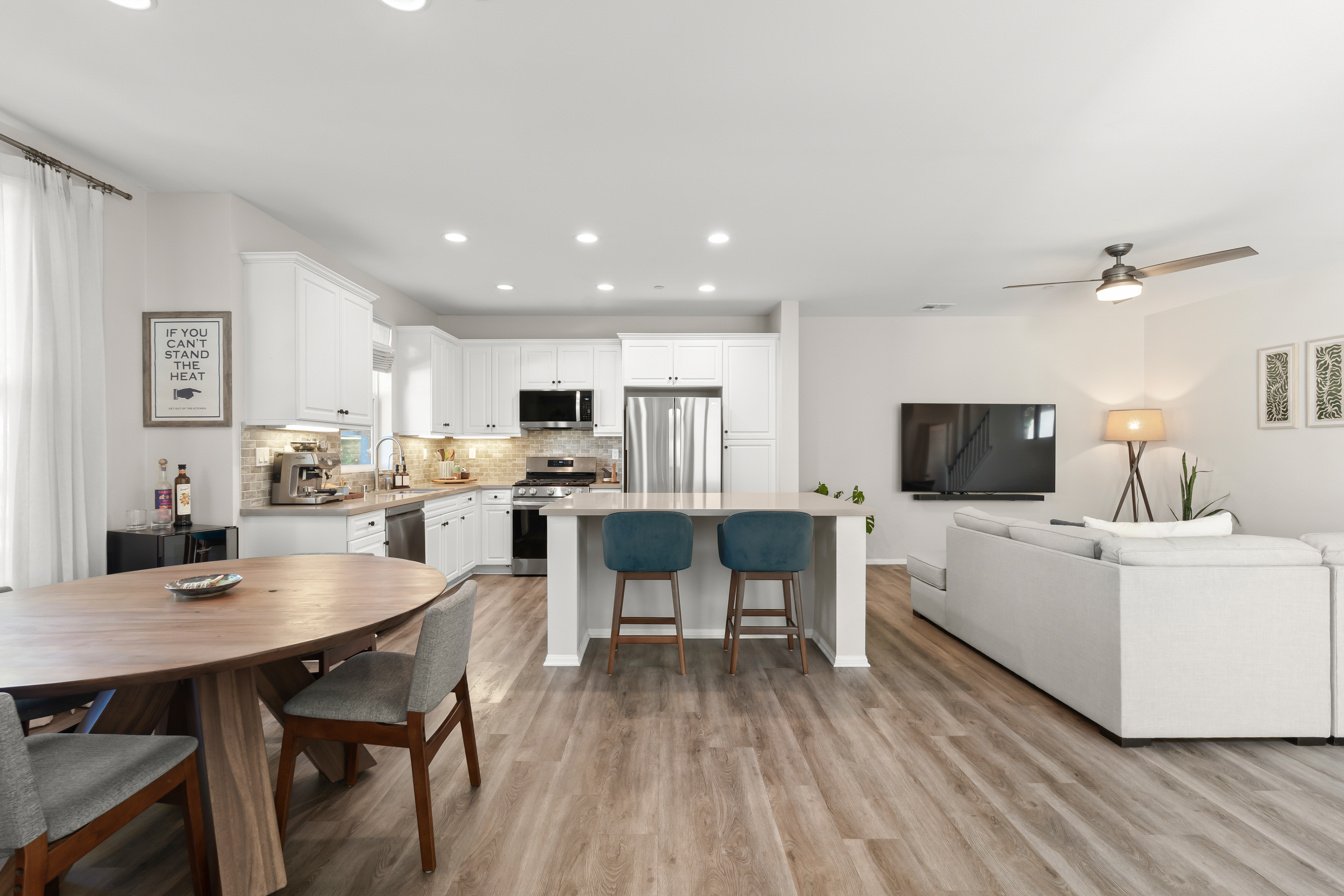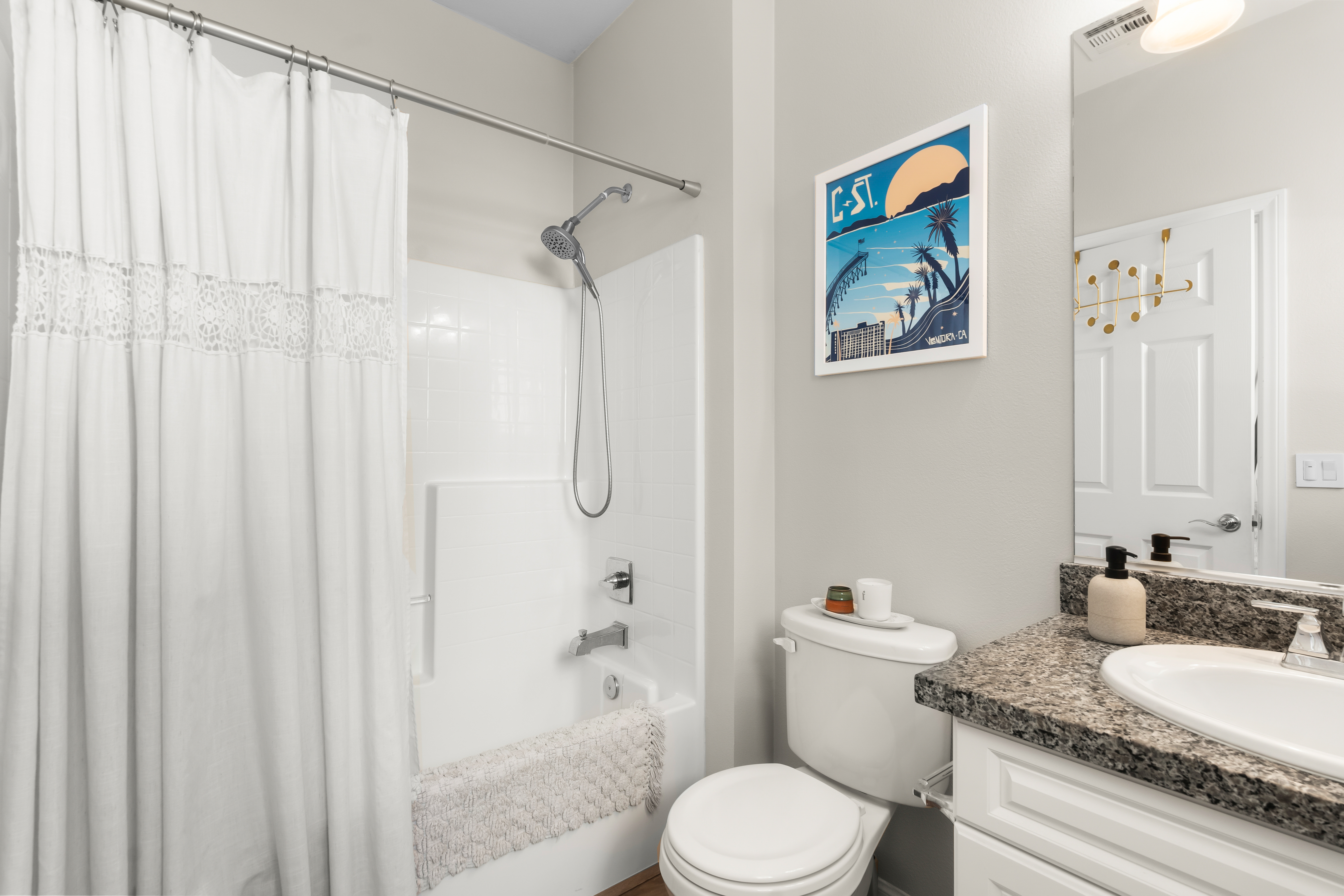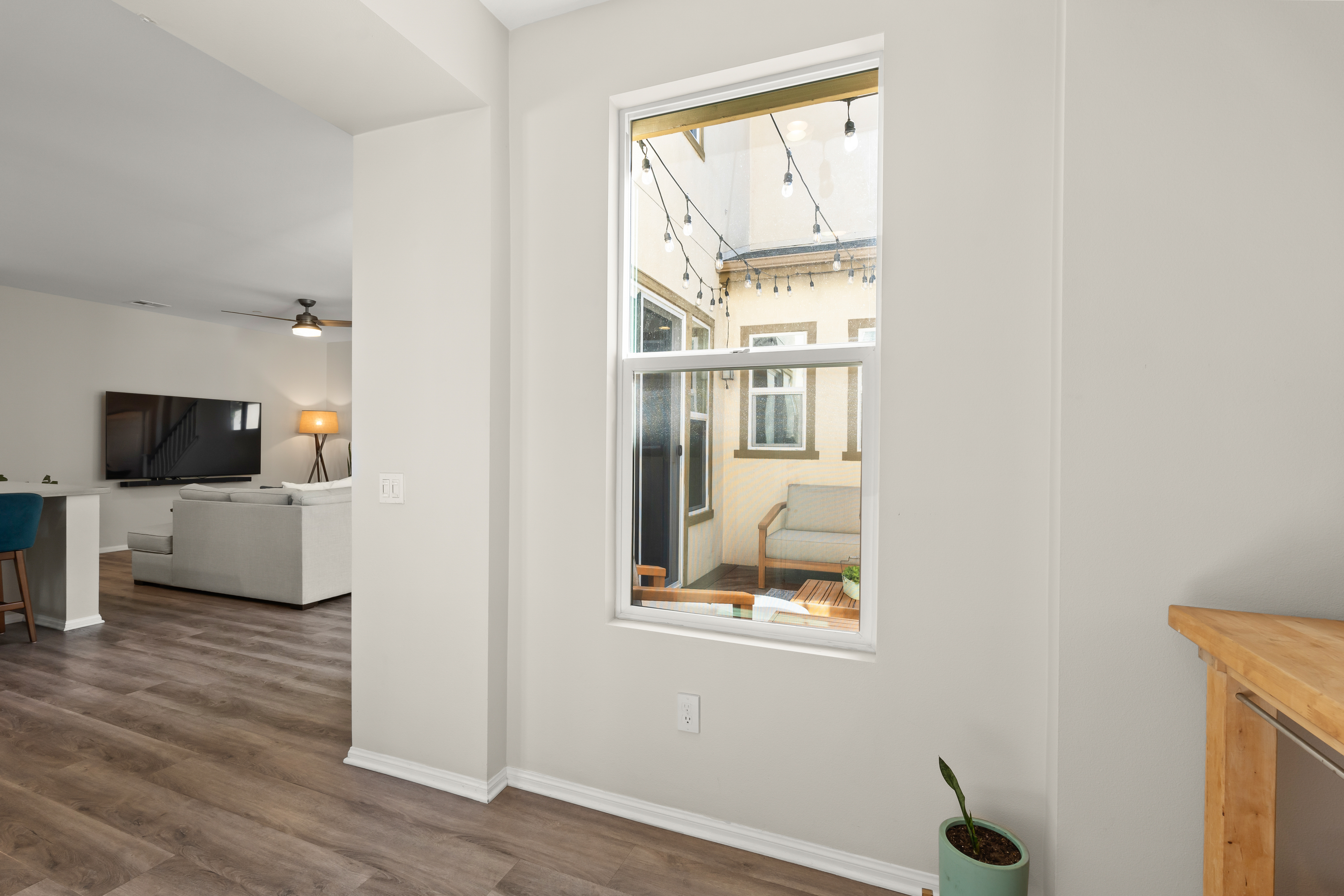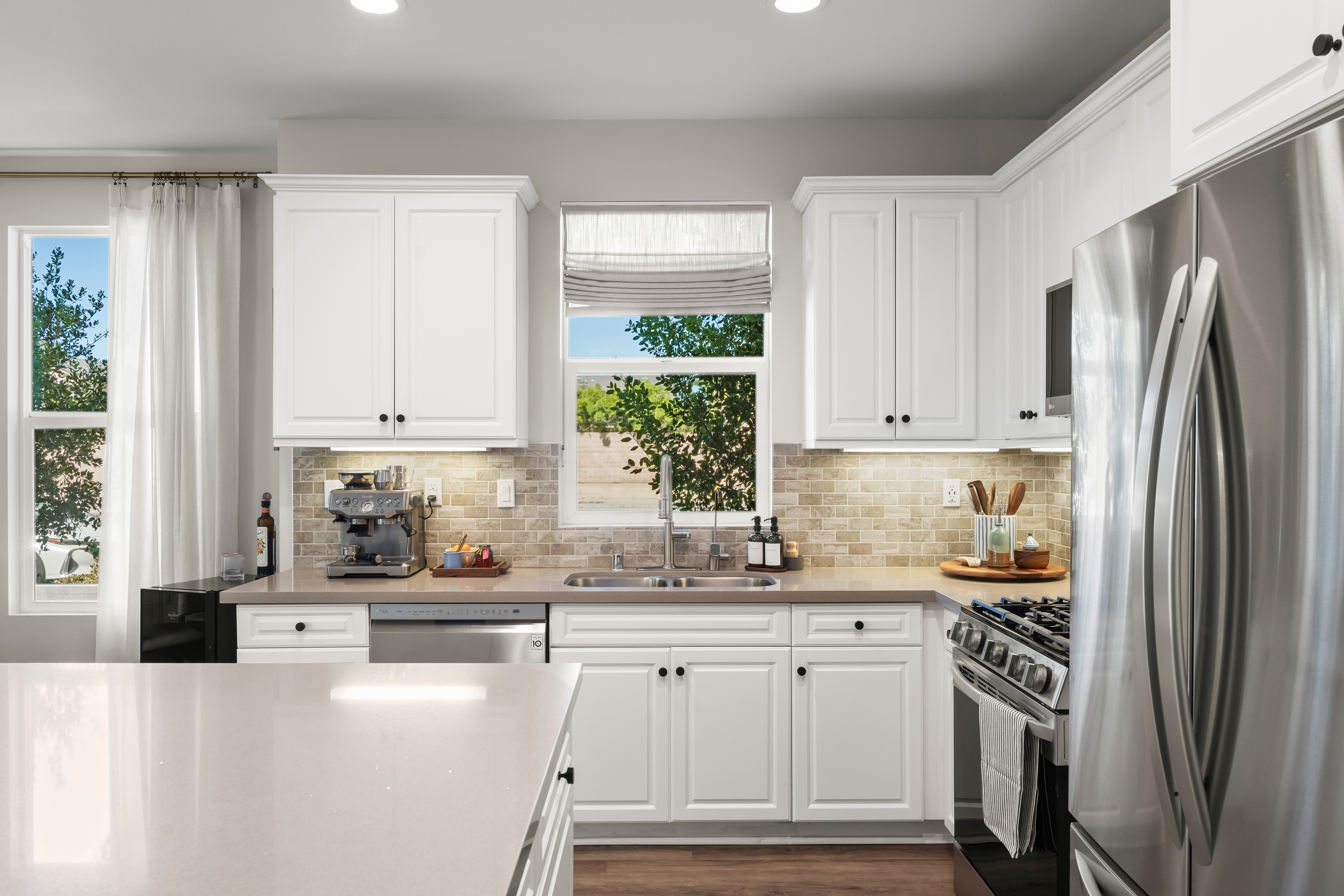 Modern East Ventura living at its finest! Built in 2018, this beautifully maintained 4 bedroom, 3 bathroom home offers 2,189 sq ft of bright, open living space designed for comfort and entertaining.Step inside to a light-filled open concept layout featuring newer flooring, recessed lighting, and a spacious living area that flows seamlessly into the dining space and chef’s kitchen. The stunning kitchen showcases white shaker cabinetry, quartz countertops, INCLUDED stainless steel appliances, Water Drop Tankless Reverse Osmosis water filtration system, a stylish tile backsplash, and a large center island perfect for gathering.A convenient downstairs bedroom and full bath provide ideal flexibility for guests, multigenerational living, or a home office.Upstairs, the expansive primary suite offers a peaceful retreat with a walk-in closet and a spa-inspired en suite bathroom featuring dual vanities and generous storage. Two additional bedrooms share a Jack-and-Jill bathroom, and a dedicated laundry room with storage adds everyday convenience.The backyard is designed for relaxing and entertaining with low-maintenance turf, a beautiful wood deck patio with café lighting, and a private spa — perfect for enjoying Ventura’s coastal evenings.Additional highlights include an epoxied garage with built-in storage cabinets, exterior Ring system, Nest Thermostat, and SpringWell Water filtration System. Located in a desirable East Ventura neighborhood with nearby parks, a dog park, and scenic walking paths, this home offers the perfect blend of modern living and outdoor lifestyle.No HOA. No Mello-Roos. This Turn-key property is ready and waiting for you.