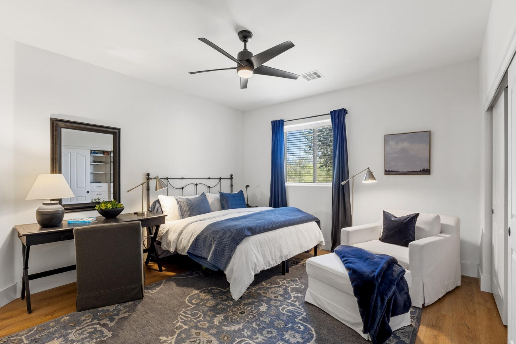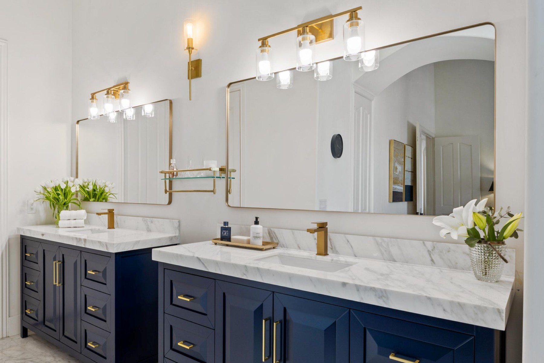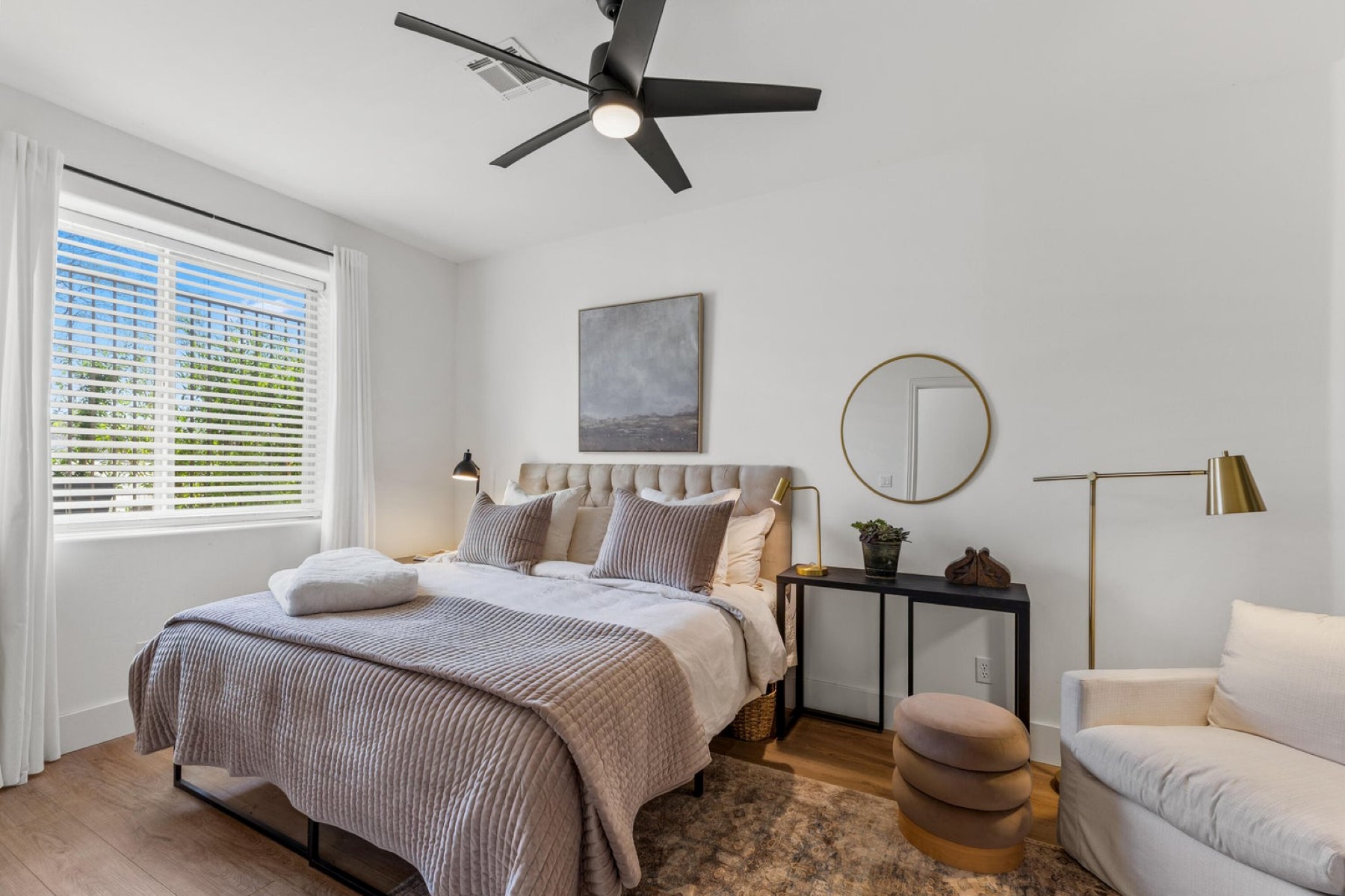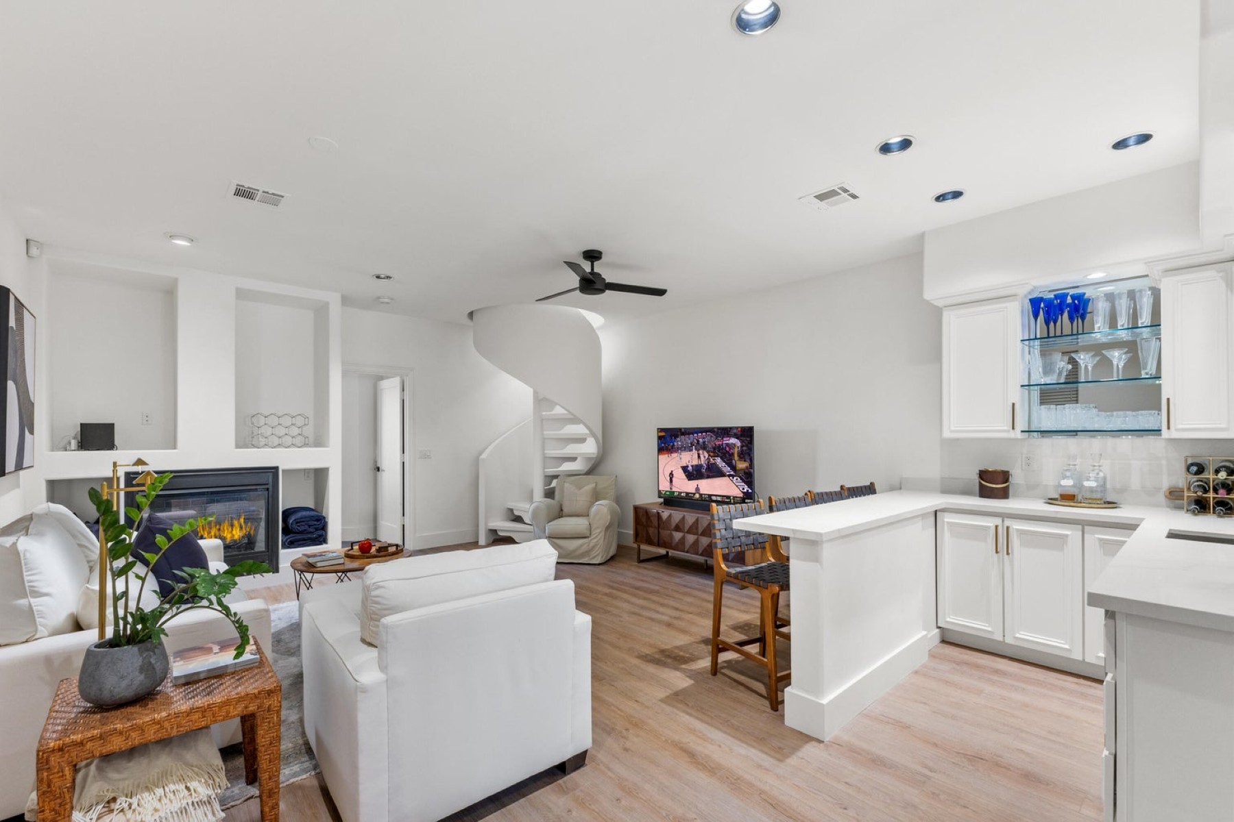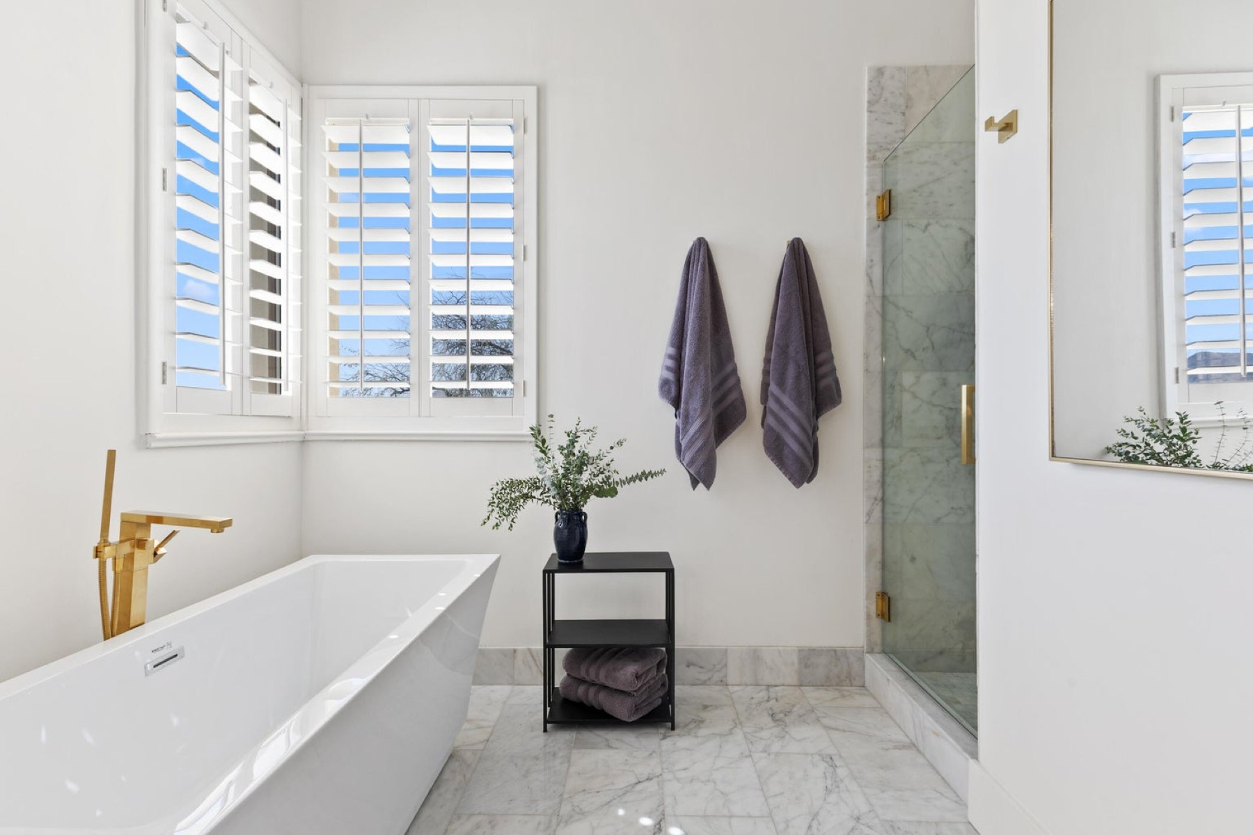 Experience breathtaking, panoramic views from every room on the main level of this masterfully renovated residence. Spanning over 4,600 sq ft, the home impresses with soaring cathedral ceilings and 10.5' minimum heights on the main floor. The heart of the home features a dramatic see-through fireplace connecting the elegant living and family rooms, both framed by captivating vistas. The kitchen serves as a culinary hub, featuring a center island and stunning quartzite slab counters. It is thoughtfully equipped with a beverage fridge and a dedicated coffee bar, making it as functional for morning routines as it is for evening entertaining. The main-level master suite is a true retreat, featuring a sitting area, fireplace, access to the balcony, dual walk-in closets, and a spa-like bath finished in exquisite Carrera marble. A dedicated den and guest bedroom complete the main level. The lower level maintains a spacious feel with 9' ceilings and includes two additional bedrooms, a full bath, and two entertainment spaces; one featuring a TV room with a full bar, and fireplace; while the other space creates a game room environment. Whether you are hosting on the expansive upstairs balcony or lounging by the pool--accessible from both levels--the indoor-outdoor transition is effortless. This home is a rare blend of scale, sophisticated designer finishes, and tranquil scenery. From the Carrera tile to the quartzite surfaces, every detail has been curated for a turnkey luxury lifestyle.