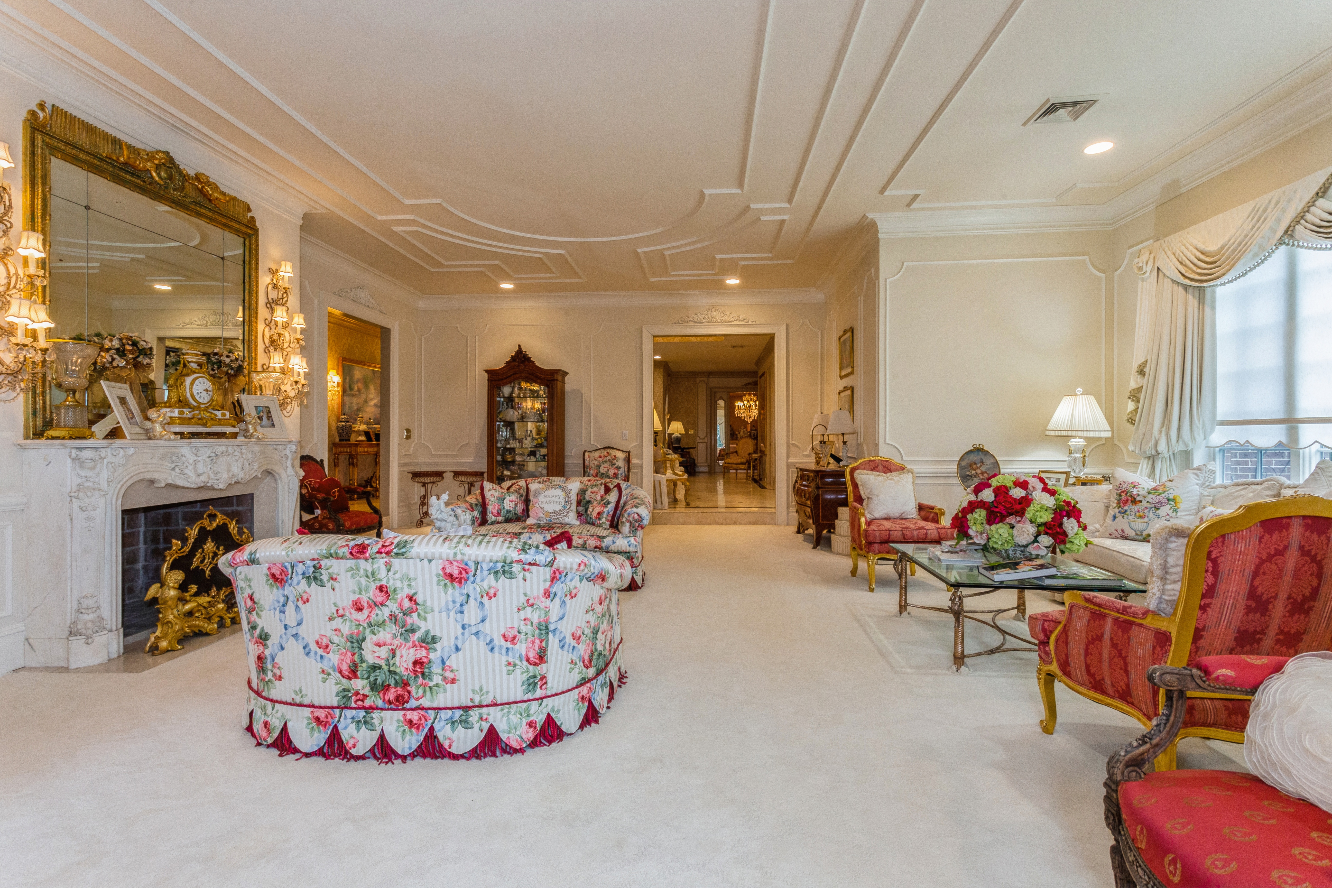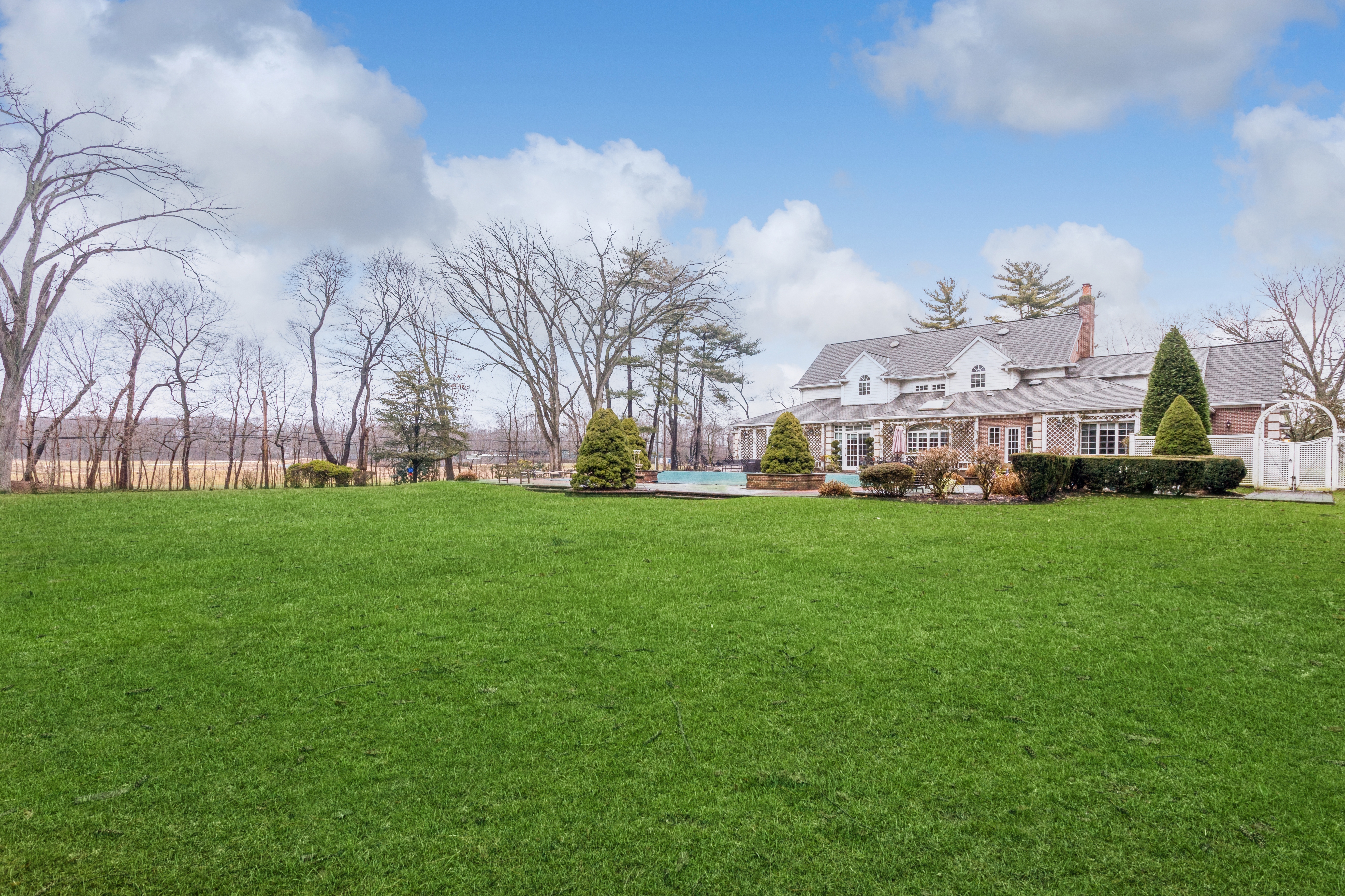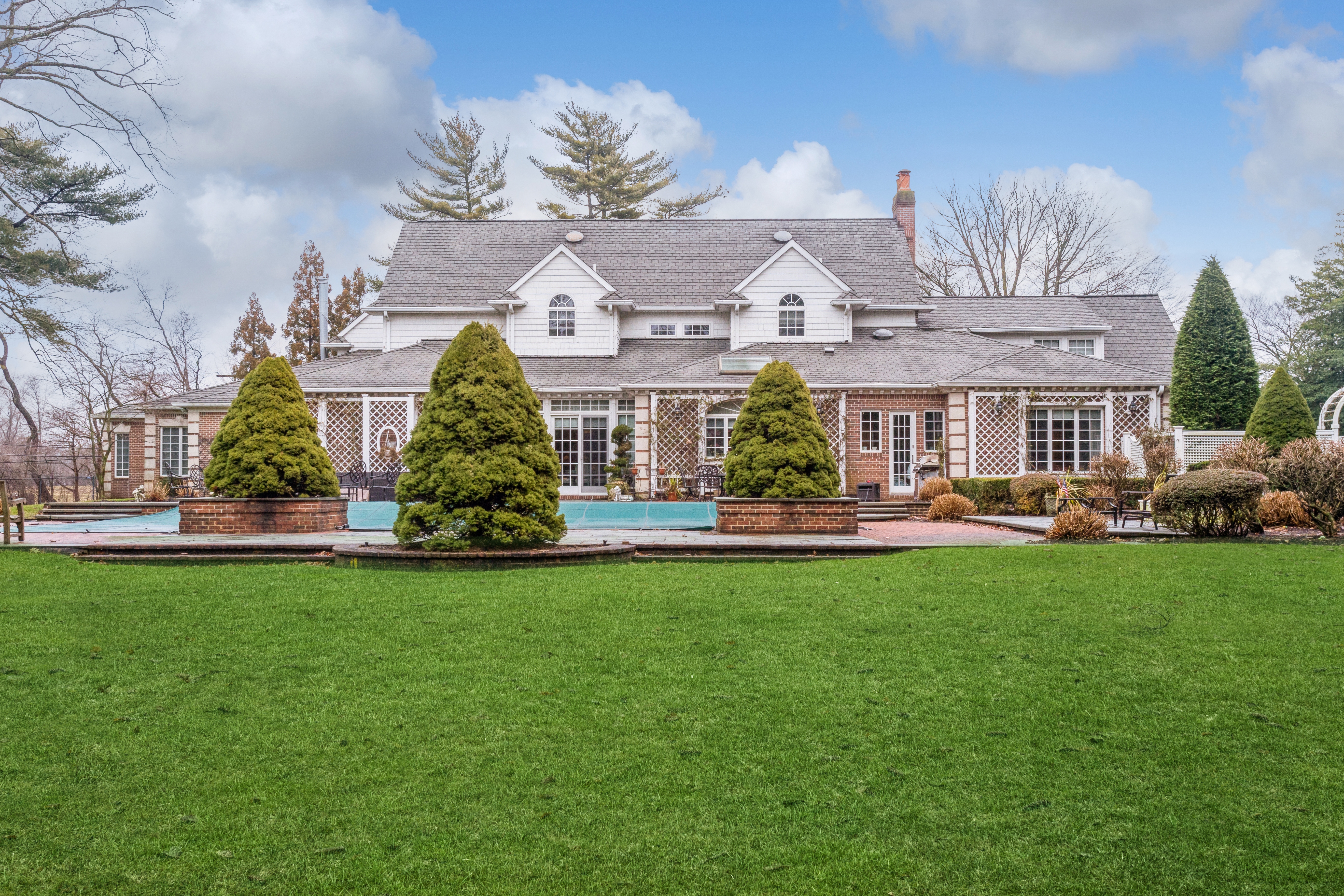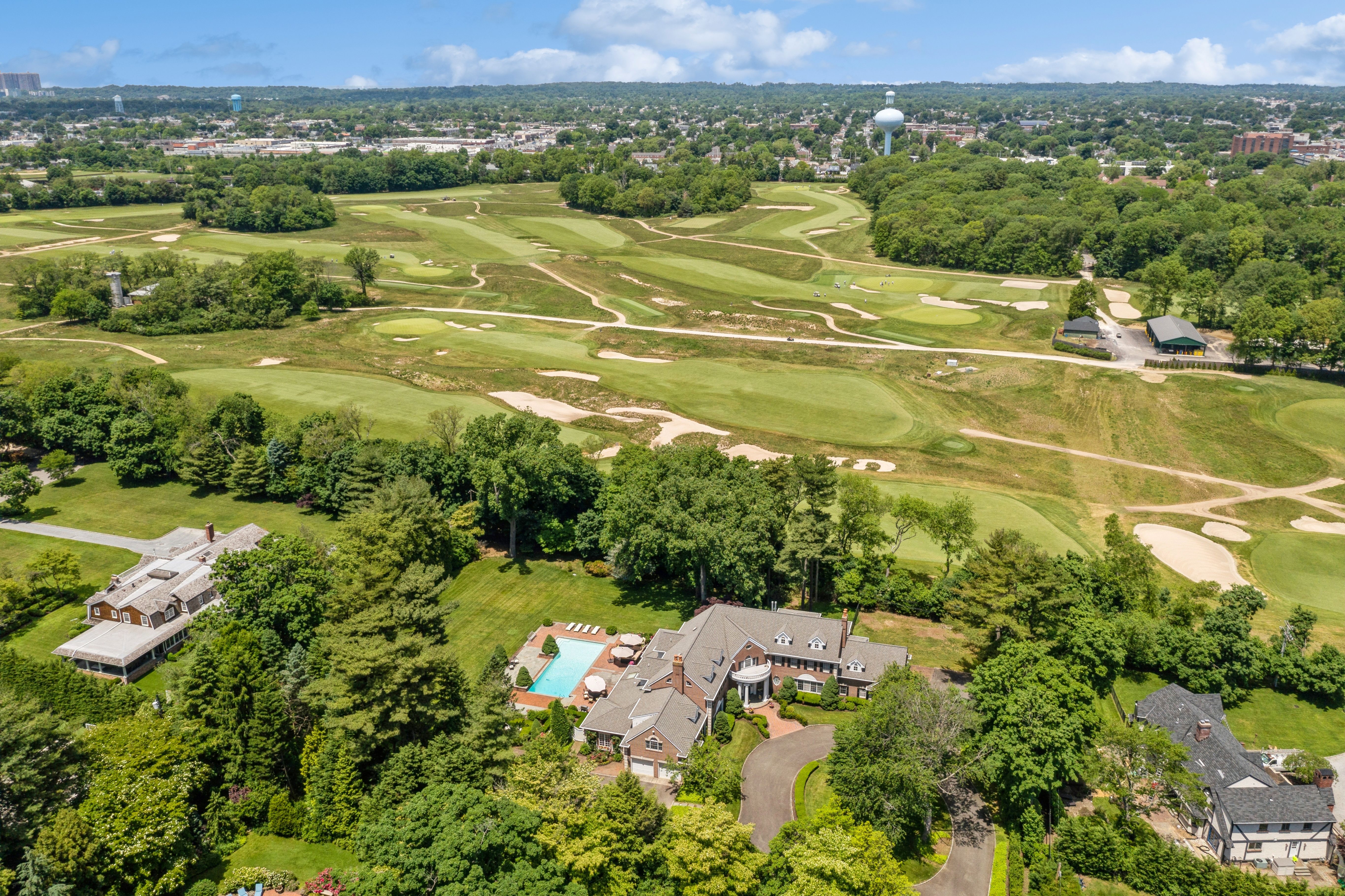 Built to Perfection with 314 Feet Frontage of Stunning Golf Course Views - This majestic brick Georgian Colonial on 2+ beautifully landscaped acres is a masterpiece of opulent design and luxury living. This sophisticated home is located in the most desired private location "on the hill" with breath-taking sunsets and rolling golf course views. Offering 10,000+ square feet of luxurious living space, this manor includes seven bedrooms, six full baths, and three powder rooms. Every detail was thoughtfully selected and quality crafted, from the tile, carpeting, and inlaid wood floors to the exquisite ceiling trim work and three ornate fireplaces. Upon entry you will find a dramatic 2-story grand entrance with circular staircase, a spacious family room appointed with rich woodwork and detail evident with the built-ins, custom coffered ceiling and fireplace enhancing it's warm and inviting ambiance. Adjoining is a banquet-size formal dining room, and an elegant formal living room with fireplace that has fairway views as long as the eye can see. The gourmet kitchen has a large center island that opens to a welcoming breakfast room. The north wing hosts the lavish primary en suite with fireplace, 2 separate full baths and 3 spacious walk-in closets. An additional large en suite bedroom, gym, laundry/mud room with full-sized refrigerator and freezer, and 2-car garage complete the north wing. The south wing hosts 2 powder rooms, a serene family room, back staircase to the second floor, and an additional two-car garage. The second floor brings you to 2 en suite bedrooms, 3 additional bedrooms, a hall full bath, and vast storage space. The basement level includes a second laundry room, storage space, and limitless possibilities. Outside features a 60x20 heated in-ground pool, expansive blue-stone patio and breathtaking fairway views making this ideal for relaxing and entertaining. Just twenty miles east of Manhattan, this magnificent home is mere minutes from golf courses, schools, stores, restaurants, and parks.