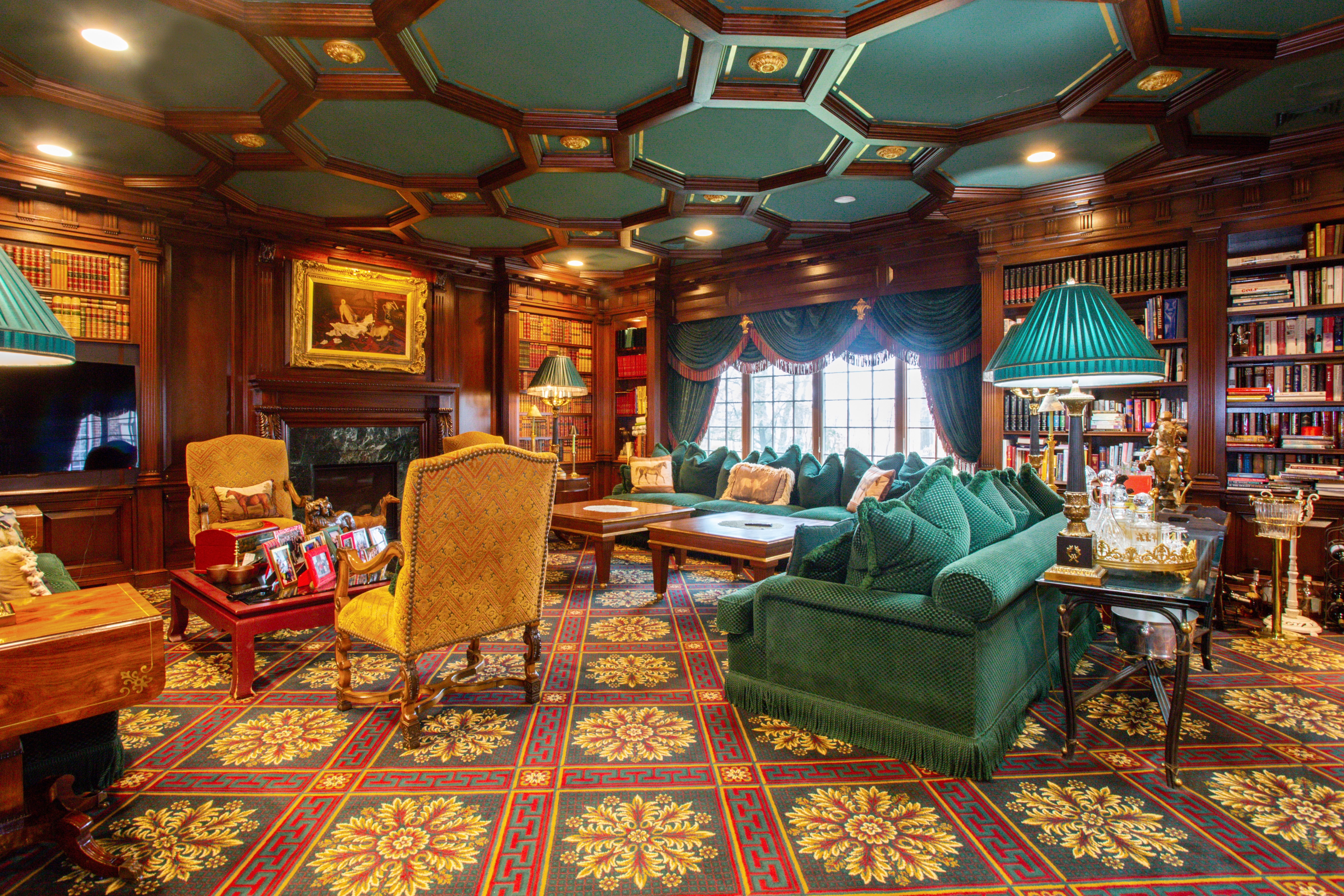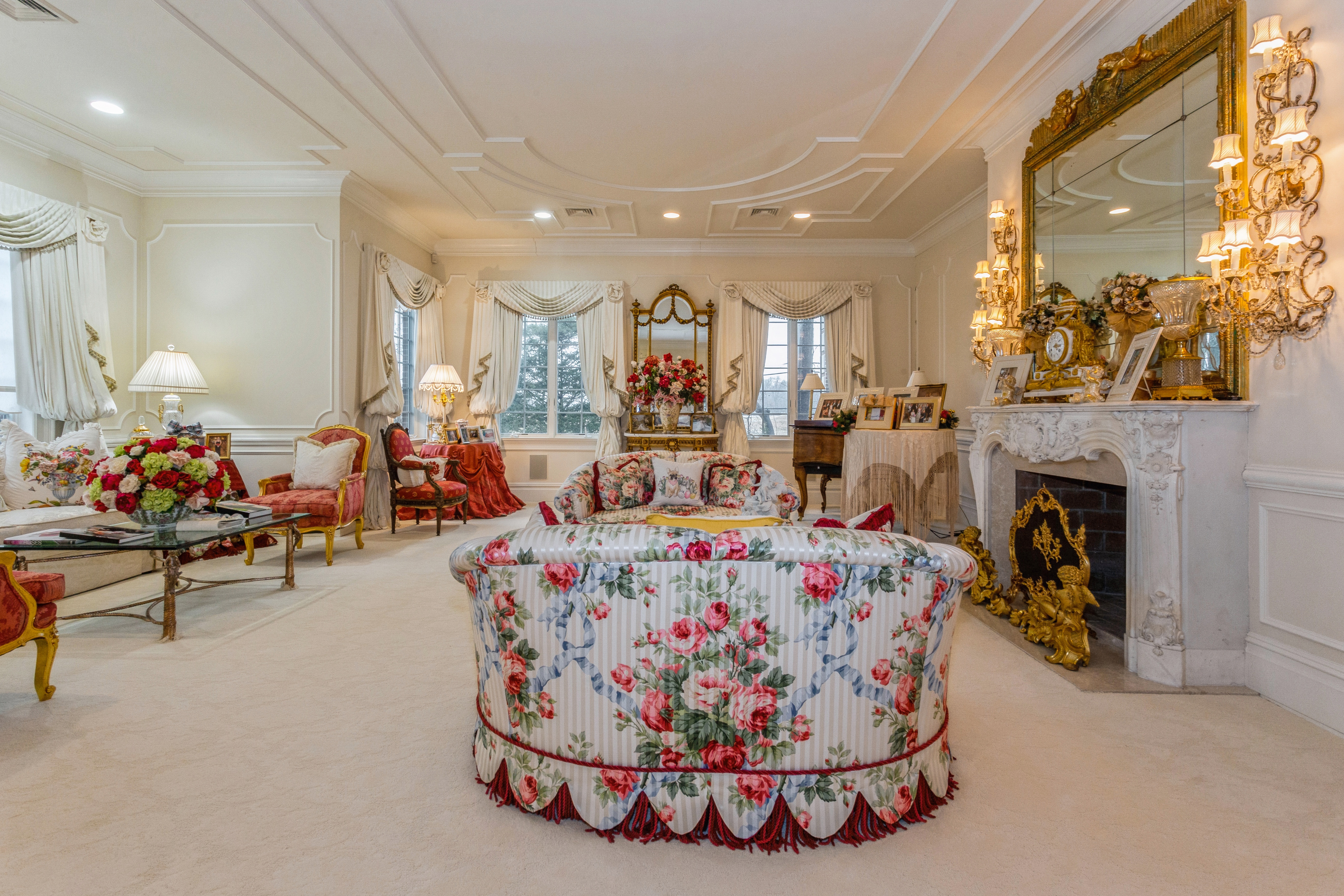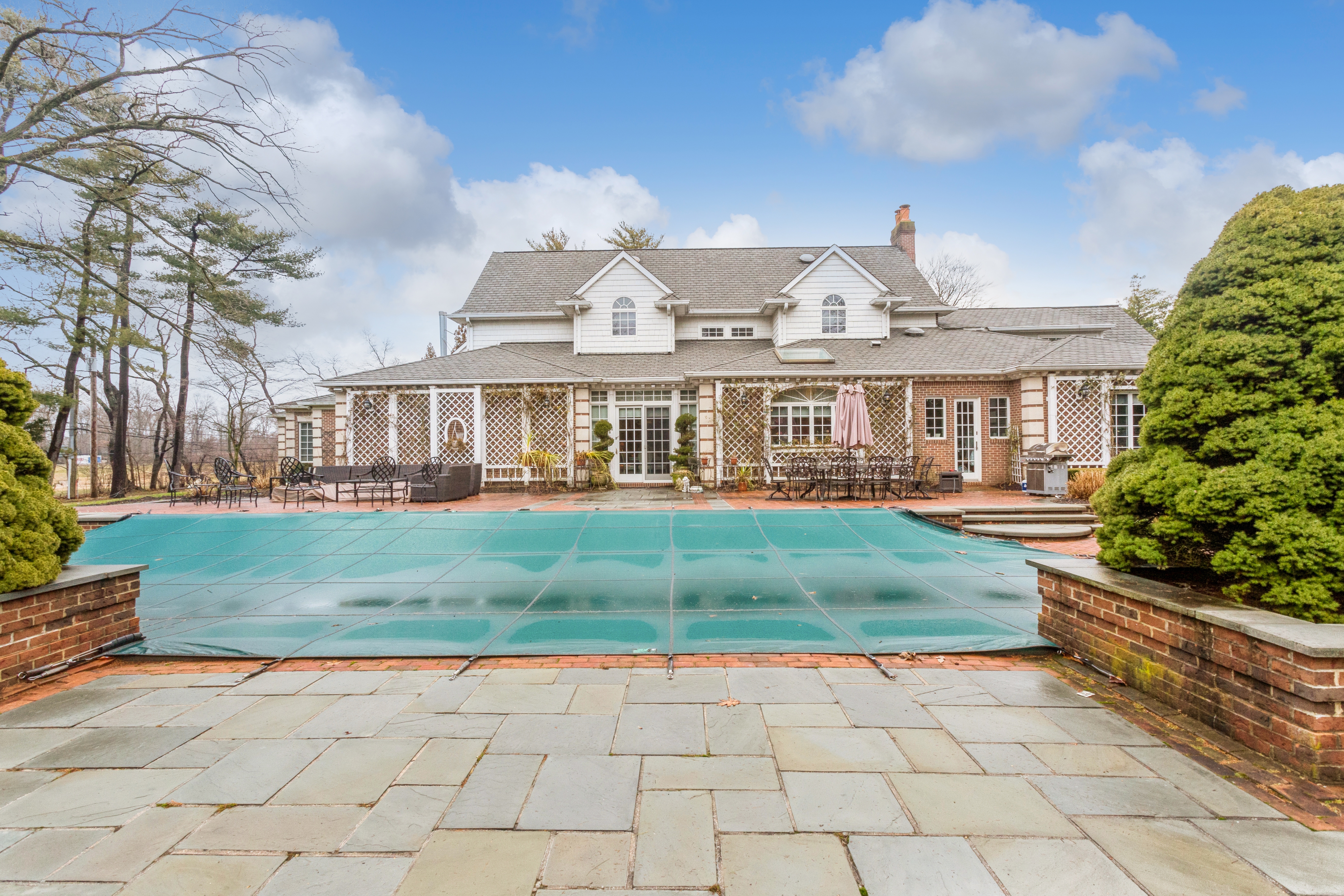 Built to Perfection with 314 Feet Frontage of Stunning Golf Course Views - This majestic brick Georgian Colonial on 2+ beautifully landscaped acres is a masterpiece of opulent design and luxury living. This sophisticated home is located in the most desired private location "on the hill" with breath-taking sunsets and rolling golf course views. Offering 10,000+ square feet of luxurious living space, this manor includes seven bedrooms, six full baths, and three powder rooms. Every detail was thoughtfully selected and quality crafted, from the tile, carpeting, and inlaid wood floors to the exquisite ceiling trim work and three ornate fireplaces. Upon entry you will find a dramatic 2-story grand entrance with circular staircase, a spacious family room appointed with rich woodwork and detail evident with the built-ins, custom coffered ceiling and fireplace enhancing it's warm and inviting ambiance. Adjoining is a banquet-size formal dining room, and an elegant formal living room with fireplace that has fairway views as long as the eye can see. The gourmet kitchen has a large center island that opens to a welcoming breakfast room. The north wing hosts the lavish primary en suite with fireplace, 2 separate full baths and 3 spacious walk-in closets. An additional large en suite bedroom, gym, laundry/mud room with full-sized refrigerator and freezer, and 2-car garage complete the north wing. The south wing hosts 2 powder rooms, a serene family room, back staircase to the second floor, and an additional two-car garage. The second floor brings you to 2 en suite bedrooms, 3 additional bedrooms, a hall full bath, and vast storage space. The basement level includes a second laundry room, storage space, and limitless possibilities. Outside features a 60x20 heated in-ground pool, expansive blue-stone patio and breathtaking fairway views making this ideal for relaxing and entertaining. Just twenty miles east of Manhattan, this magnificent home is mere minutes from golf courses, schools, stores, restaurants, and parks.