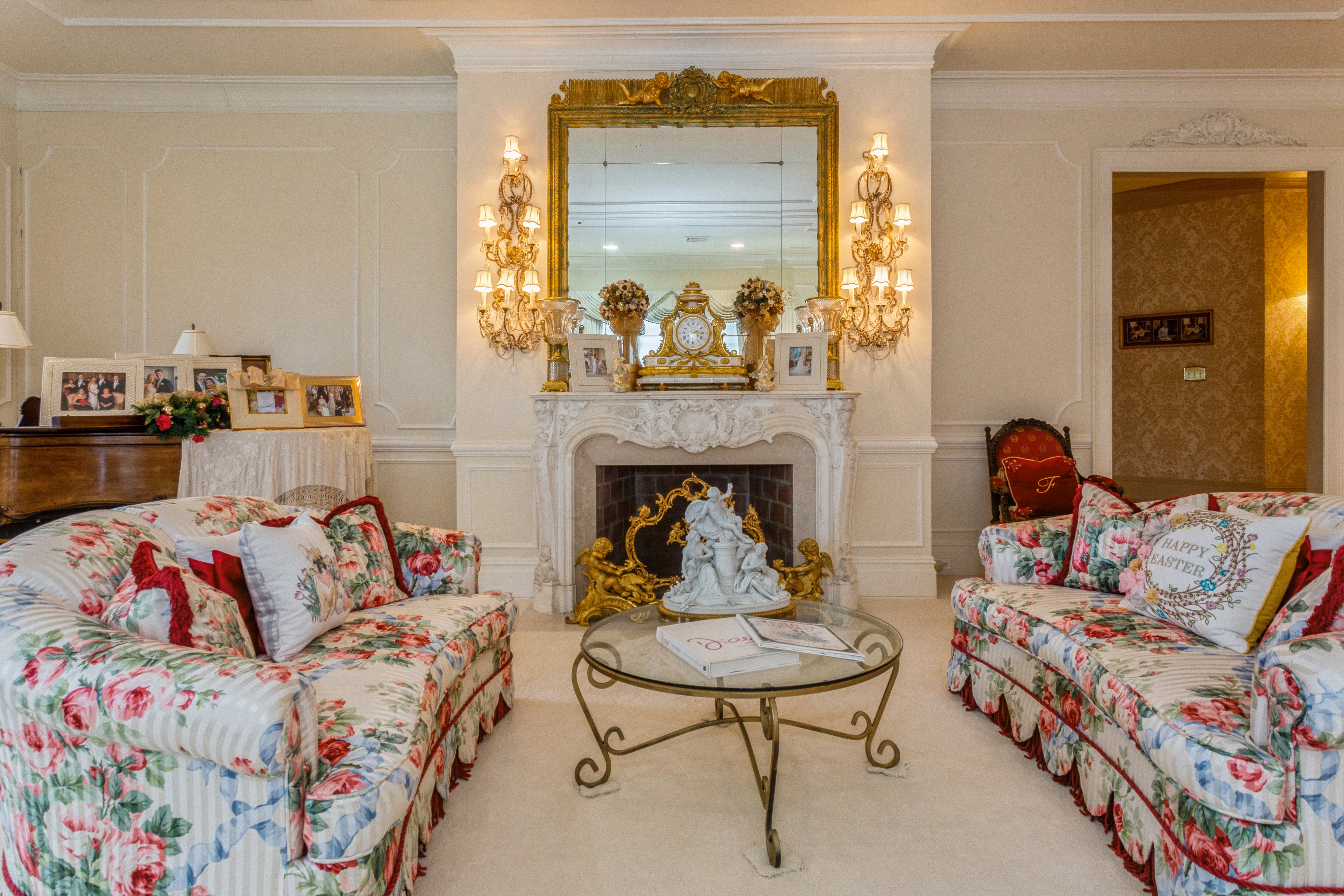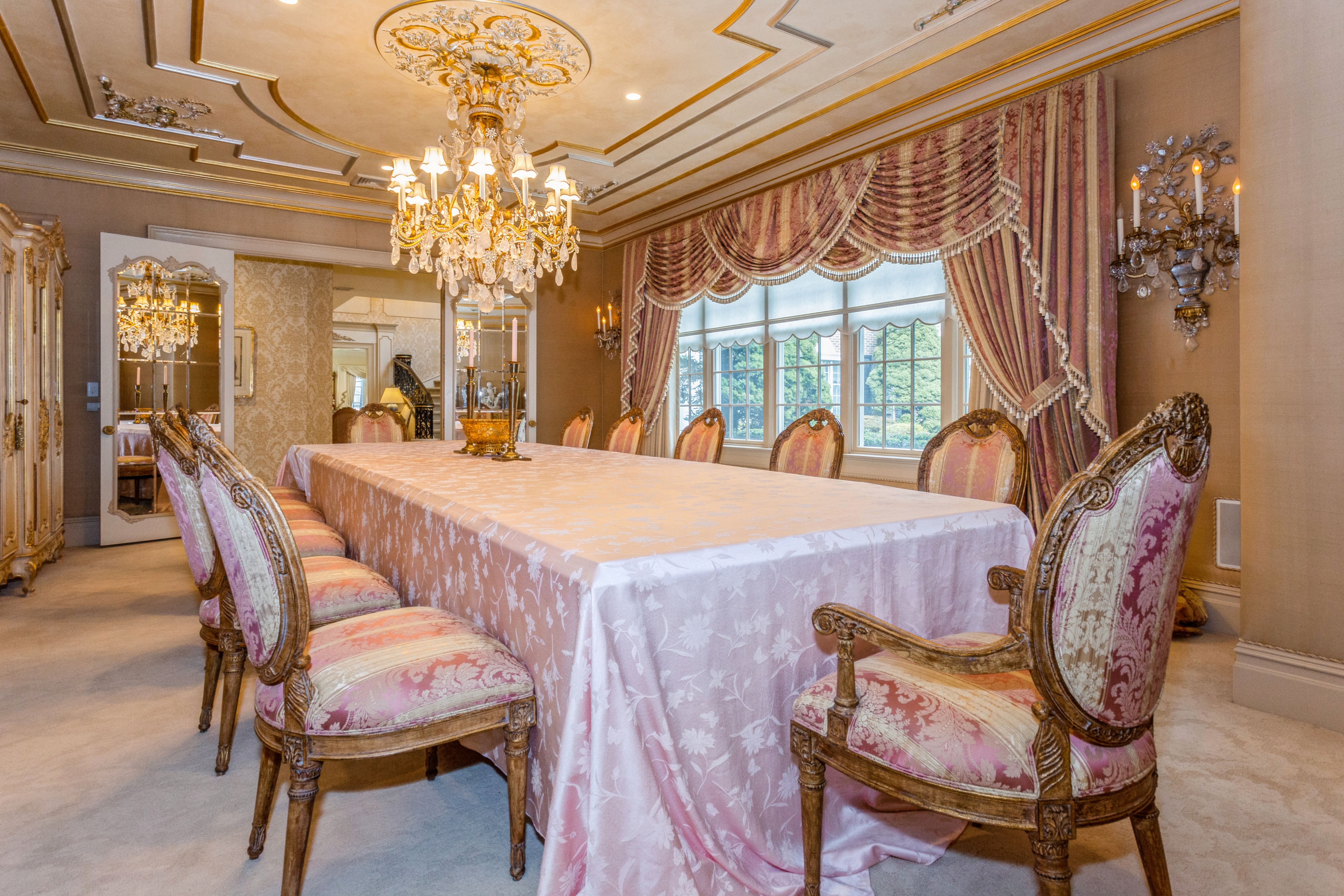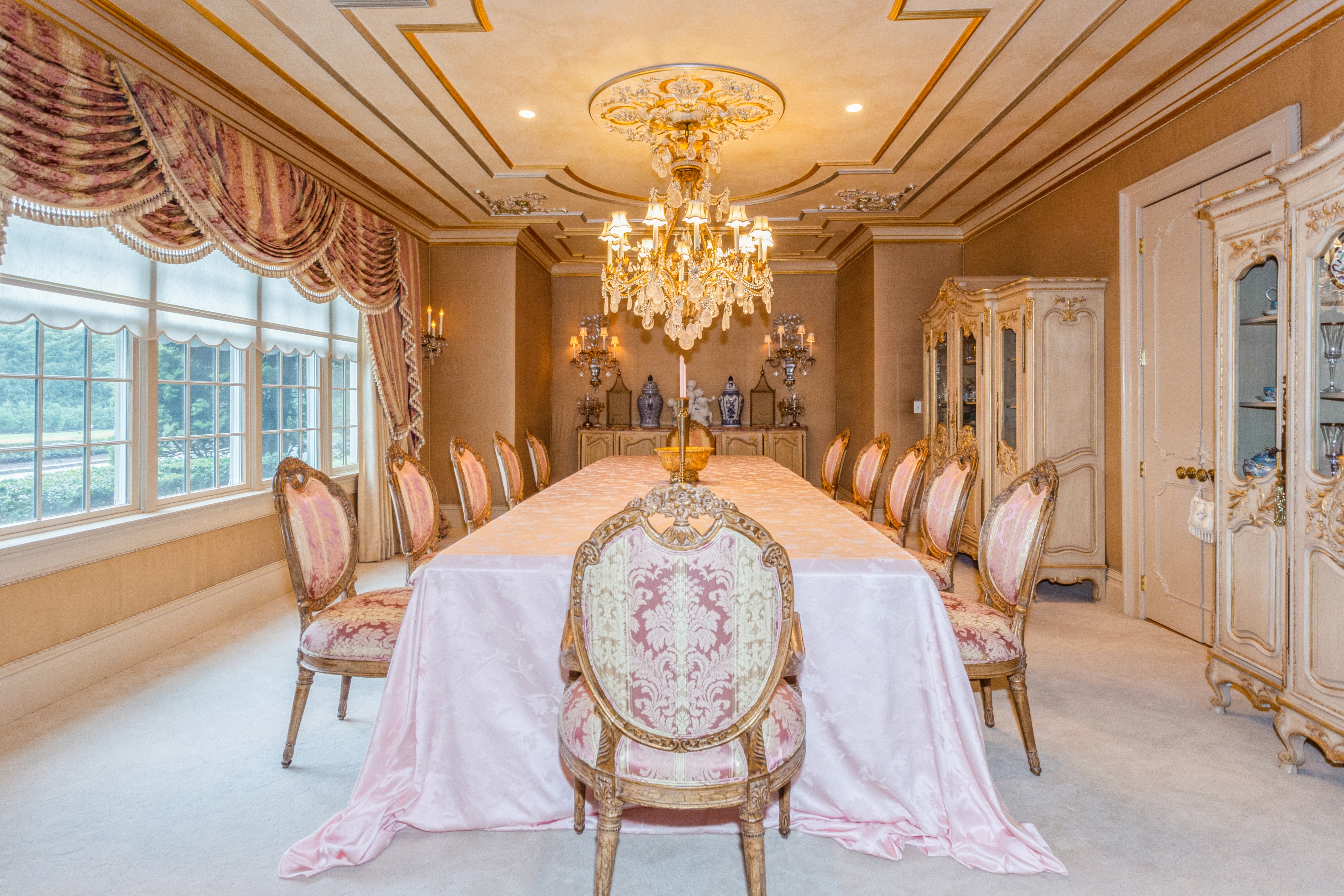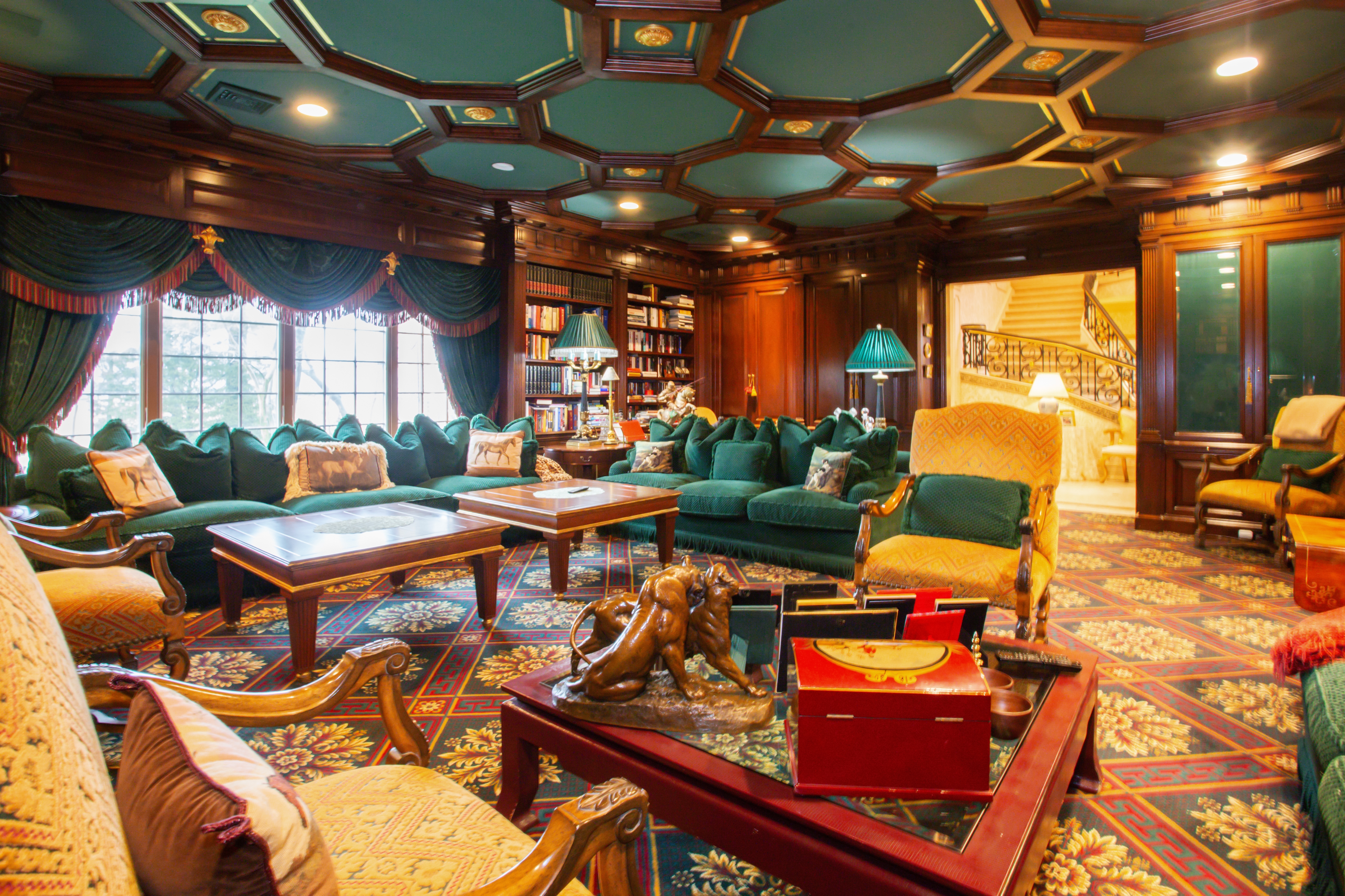 Built to Perfection with 314 Feet Frontage of Stunning Golf Course Views - This majestic brick Georgian Colonial on 2+ beautifully landscaped acres is a masterpiece of opulent design and luxury living. This sophisticated home is located in the most desired private location "on the hill" with breath-taking sunsets and rolling golf course views. Offering 10,000+ square feet of luxurious living space, this manor includes seven bedrooms, six full baths, and three powder rooms. Every detail was thoughtfully selected and quality crafted, from the tile, carpeting, and inlaid wood floors to the exquisite ceiling trim work and three ornate fireplaces. Upon entry you will find a dramatic 2-story grand entrance with circular staircase, a spacious family room appointed with rich woodwork and detail evident with the built-ins, custom coffered ceiling and fireplace enhancing it's warm and inviting ambiance. Adjoining is a banquet-size formal dining room, and an elegant formal living room with fireplace that has fairway views as long as the eye can see. The gourmet kitchen has a large center island that opens to a welcoming breakfast room. The north wing hosts the lavish primary en suite with fireplace, 2 separate full baths and 3 spacious walk-in closets. An additional large en suite bedroom, gym, laundry/mud room with full-sized refrigerator and freezer, and 2-car garage complete the north wing. The south wing hosts 2 powder rooms, a serene family room, back staircase to the second floor, and an additional two-car garage. The second floor brings you to 2 en suite bedrooms, 3 additional bedrooms, a hall full bath, and vast storage space. The basement level includes a second laundry room, storage space, and limitless possibilities. Outside features a 60x20 heated in-ground pool, expansive blue-stone patio and breathtaking fairway views making this ideal for relaxing and entertaining. Just twenty miles east of Manhattan, this magnificent home is mere minutes from golf courses, schools, stores, restaurants, and parks.
