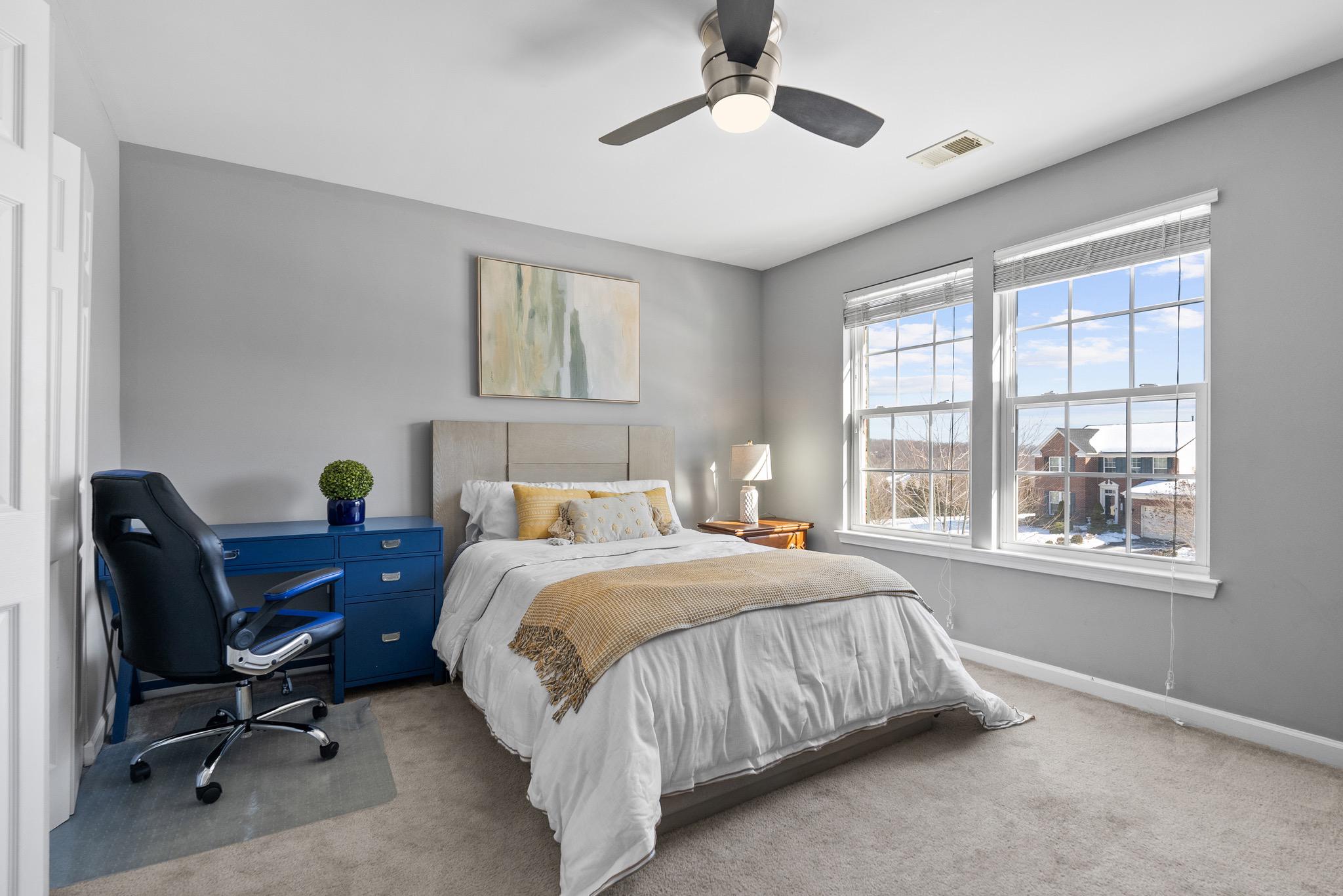 OPEN SUN 1-3 PM! Set on a sprawling 1.45 Acres, this beautiful 3,748 SF brick colonial is ready for you to move right in. Some standout features of the home include: solid oak floors on the main level, main level bedroom with en-suite full bathroom, finished basement, fully remodeled kitchen (2020), soaring ceilings, luxurious Primary Suite, and attached 2-car garage. ● MAIN LEVEL: Enter into a grand, 2-story foyer flooded with natural light and enjoy an easy flowing floor plan on the main level. The kitchen-dining-living rooms are all connected at the back of the home, making a perfect space for socializing and entertaining. The entire rear wall of the home is windows, bringing a peaceful serenity to the space overlooking the large lot backing to woods. Featuring quartz countertops, stainless appliances, newer cabinetry, a peninsula with seating and a proper pantry, this kitchen is a chef’s dream! In addition to the bedroom with en-suite full bath, the main level also features a flexible front room (currently used as office but can be a formal living room or formal dining room), access to the large 2-car garage, access to the newly finished basement, and an opportunity to add a rear deck off the dining area. ● The UPPER LEVEL features a beautiful primary suite along with 3 ample-sized bedrooms and a full hallway bath. The Primary Suite receives tons of natural light through large windows and also offers peaceful views of the rear lot & woods. The en-suite bathroom features a large soaking tub with separate spacious shower and dual sinks. The extra-large walk-in closet is a real cherry on top! ● LOWER LEVEL: The current owners recently finished the walk-out basement, adding an additional 1,200 finished SF of living space - including a large rec room area, a half bathroom, and a bonus room (office, gym, media room, guest room…). ● SYSTEMS: Almost all systems and appliances have been updated recently: Roof 2018, HVAC 2017, Kitchen appliances 2020 (except microwave 2024), W/D est. 2020. ● COMMUNITY: The HOA Community, Vistas at Gallahan, was built in 2009 by Ryan Homes. The total monthly community fee is $165, which includes both HOA and Deferred Water & Sewer payments. The HOA portion is $56.67/months (payable quarterly) and covers all community landscaping, grounds improvement and professional management by local firm, H&E Management Associates. The deferred water & sewer portion is $108.37/mo (payable annually to Gallahan Farm Water & Sewer) and has only 7 years remaining.