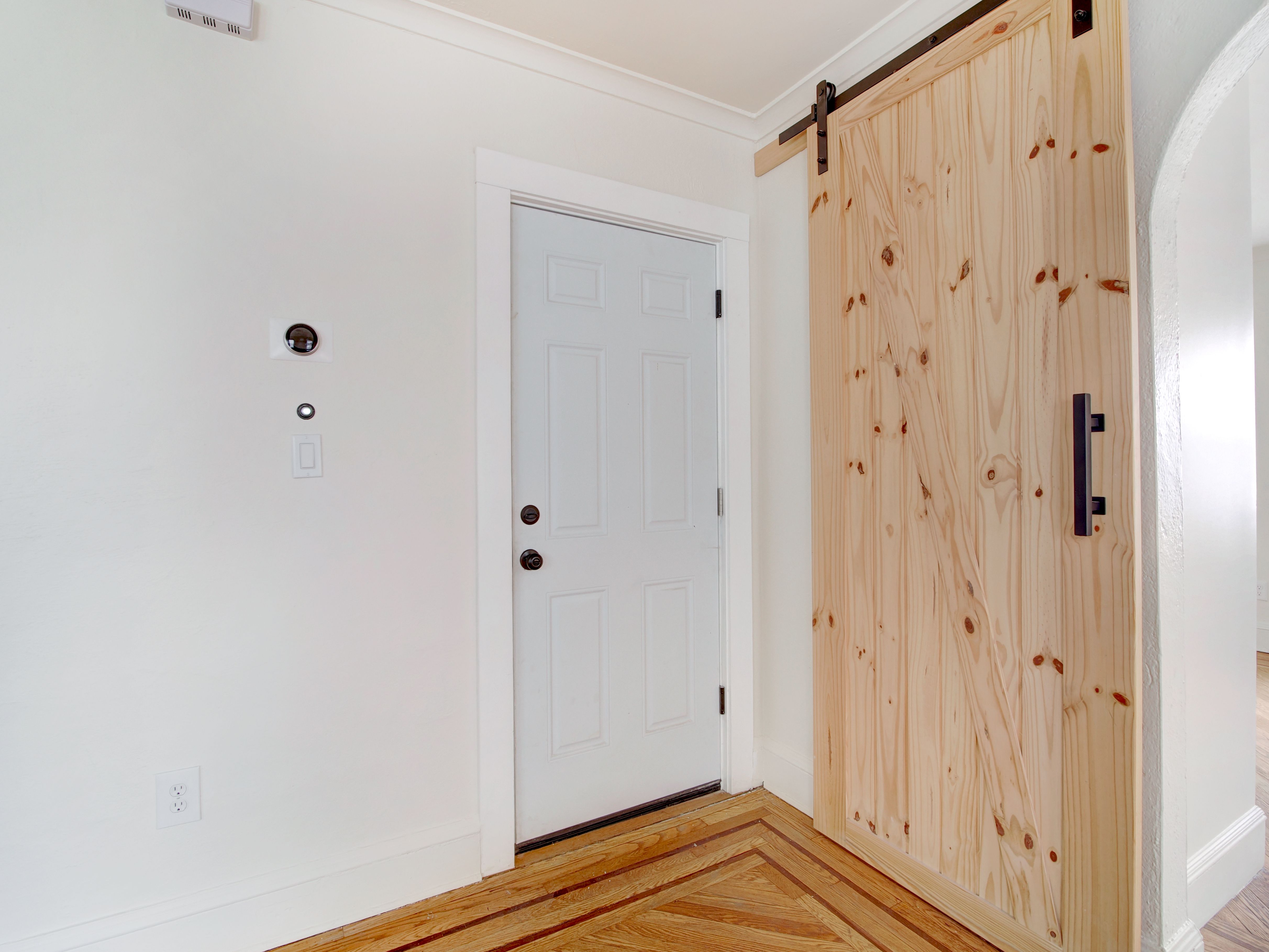 Renovated with historic charm preserved in a great location in the heart of Bloomfield. This spacious apartment has two generously sized bedrooms which can accommodate queen or king size beds. The open floor plan living room and kitchen will be an entertainers delight. The updated kitchen features a stainless steel appliance set and contemporary cabinetry and quartz counters. You will love all the counter space for meal prep and the in-unit is a big bonus, too. The neighborhood is close to Bloomfield Center, local parks and easy access to public transportation and the GSP. Parking for one car is included. Pets are considered with pet rent.
