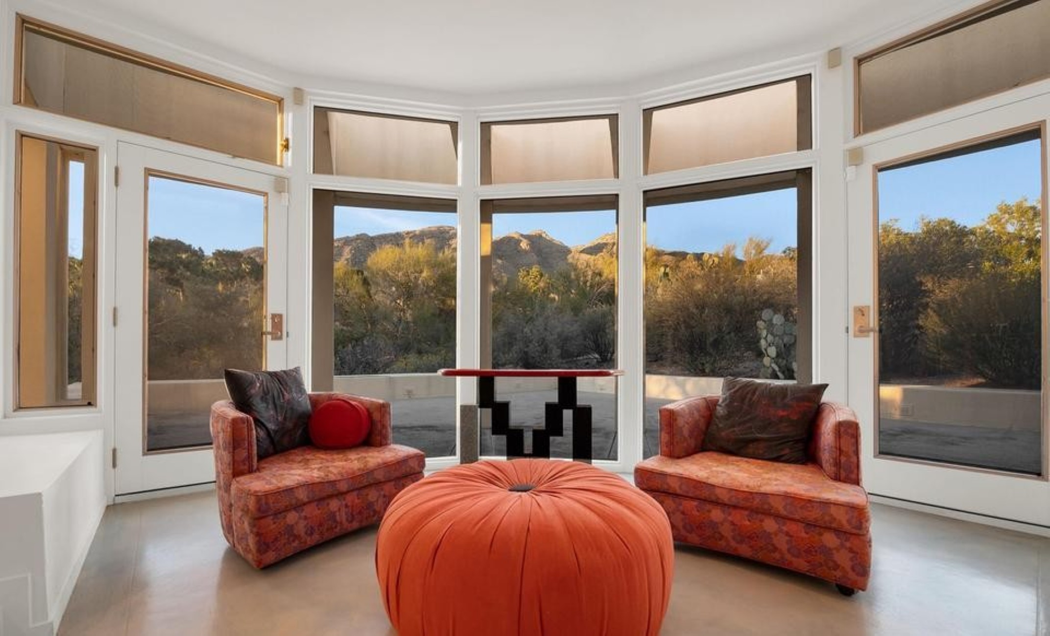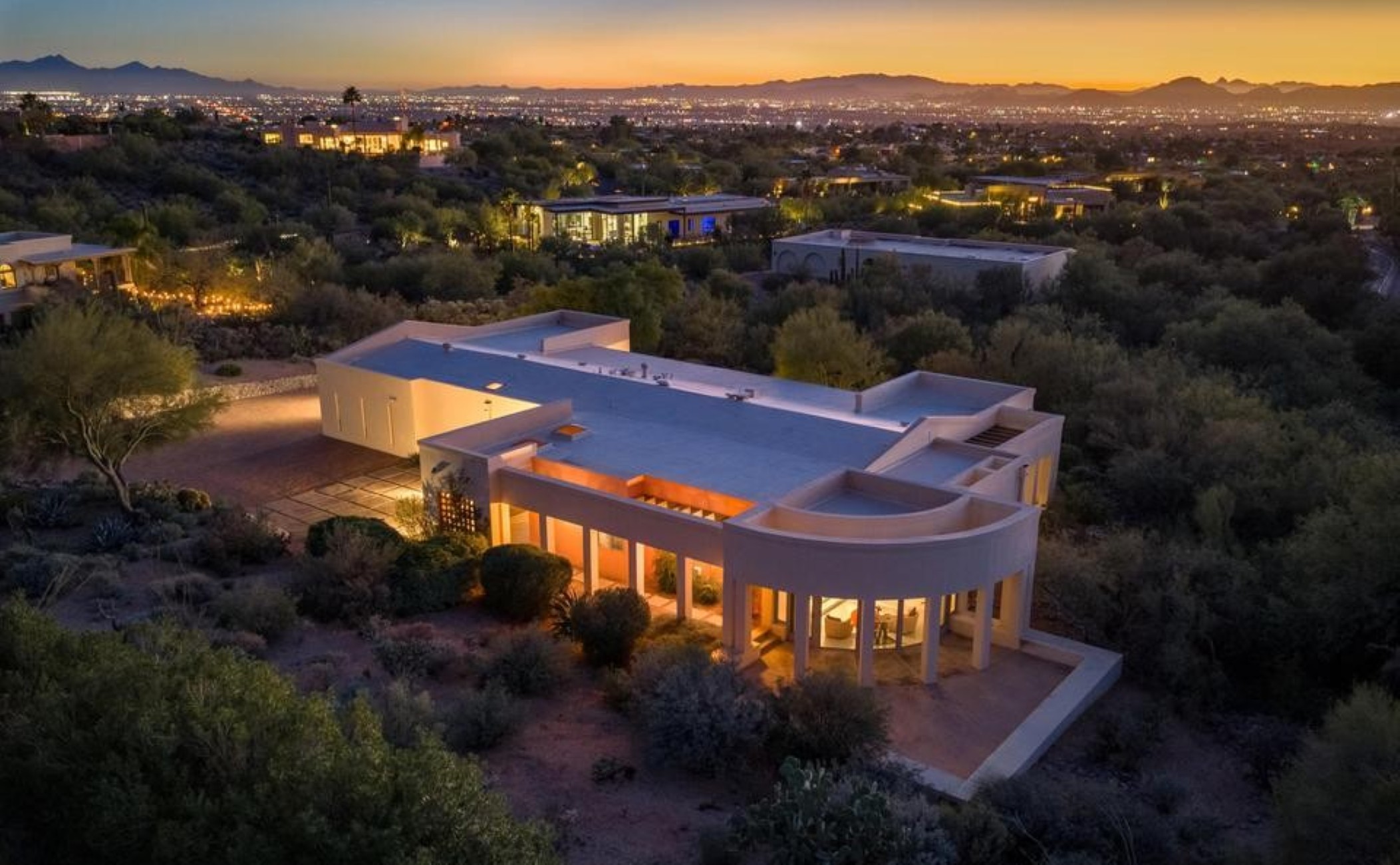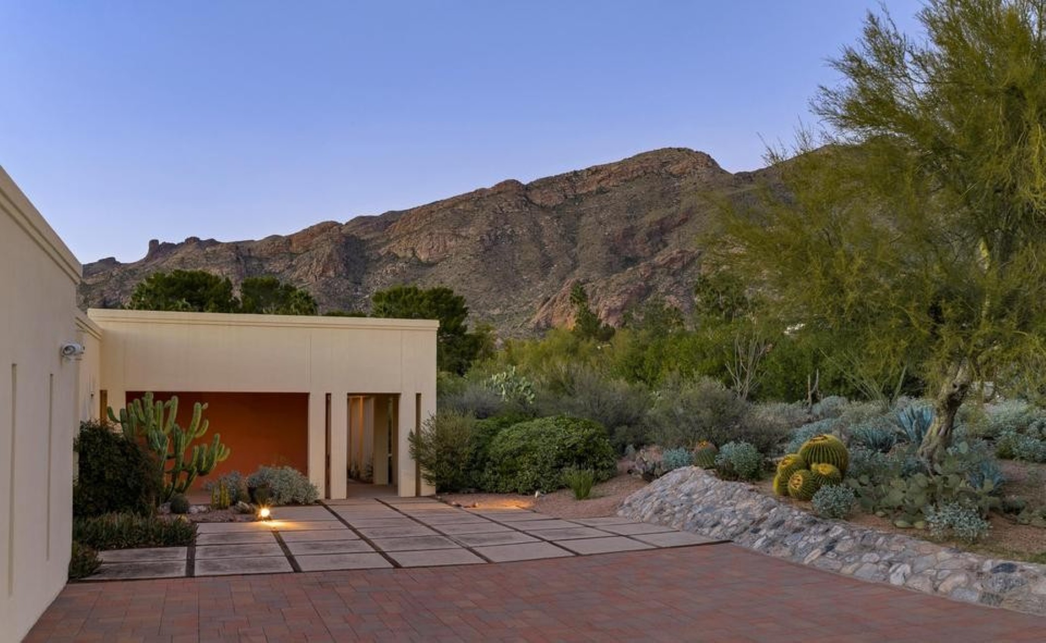 Privately situated on a 1.3-acre cul-de-sac lot within 24-hour guard-gated Skyline Country Club, this one-level, architecturally distinctive foothills residence offers sunset and up-close Catalina Mountain views in a convenient foothills location. This low-maintenance, lock-and-leave desert retreat is framed by mature natural desert landscaping. With a quiet cul-de-sac location adjacent to a greenbelt, the property maintains a sense of seclusion while maintaining convenient access to Tucson's best amenities. Upon arrival, you are greeted by an impressive motor court lined with pavers. The home is thoughtfully designed with generous living spaces, walls of glass, and abundant natural light, creating an airy, sophisticated feel perfect for entertaining. The interior features a split-bedroom floor plan with a spacious living room, formal dining room, powder room, and a sitting room with a curved wall of windows designed to capture the spectacular Catalina Mountain Views to the north. The floor plan includes a large primary suite, a private guest suite, an additional bedroom, and a dedicated office with custom built-ins. The spacious cook's kitchen in the heart of the home features a center island, ample cabinet storage, a gas cooktop, a stainless steel refrigerator, and a bright breakfast area with a door to a covered patio. The laundry room with a sink is adjacent to the kitchen. Just outside is a large storage room with air conditioning and an oversized two-car garage. The property has a new main water line and water heater. Convenient Foothills location near two Whole Foods Markets, and just minutes from La Encantada's fine dining and shopping. Convenient to the University of Arizona.The nearby "the Loop", Tucson's nationally recognized 133-mile connected bike path. Skyline Country Club offers memberships that include golf, tennis, pickleball, workout facilities, special events, and more. Just minutes from the Coronado National Forest, enjoy easy access to hiking and biking. Highly-rated Catalina Foothills District #16 schools, including Sunrise Drive Elementary school with an optional Chinese Immersion program. Close to Basis Charter School and private schools: Castlehill Country Day School, Pusch Ridge Christian Academy, The Gregory School, and Salpointe Catholic High School.