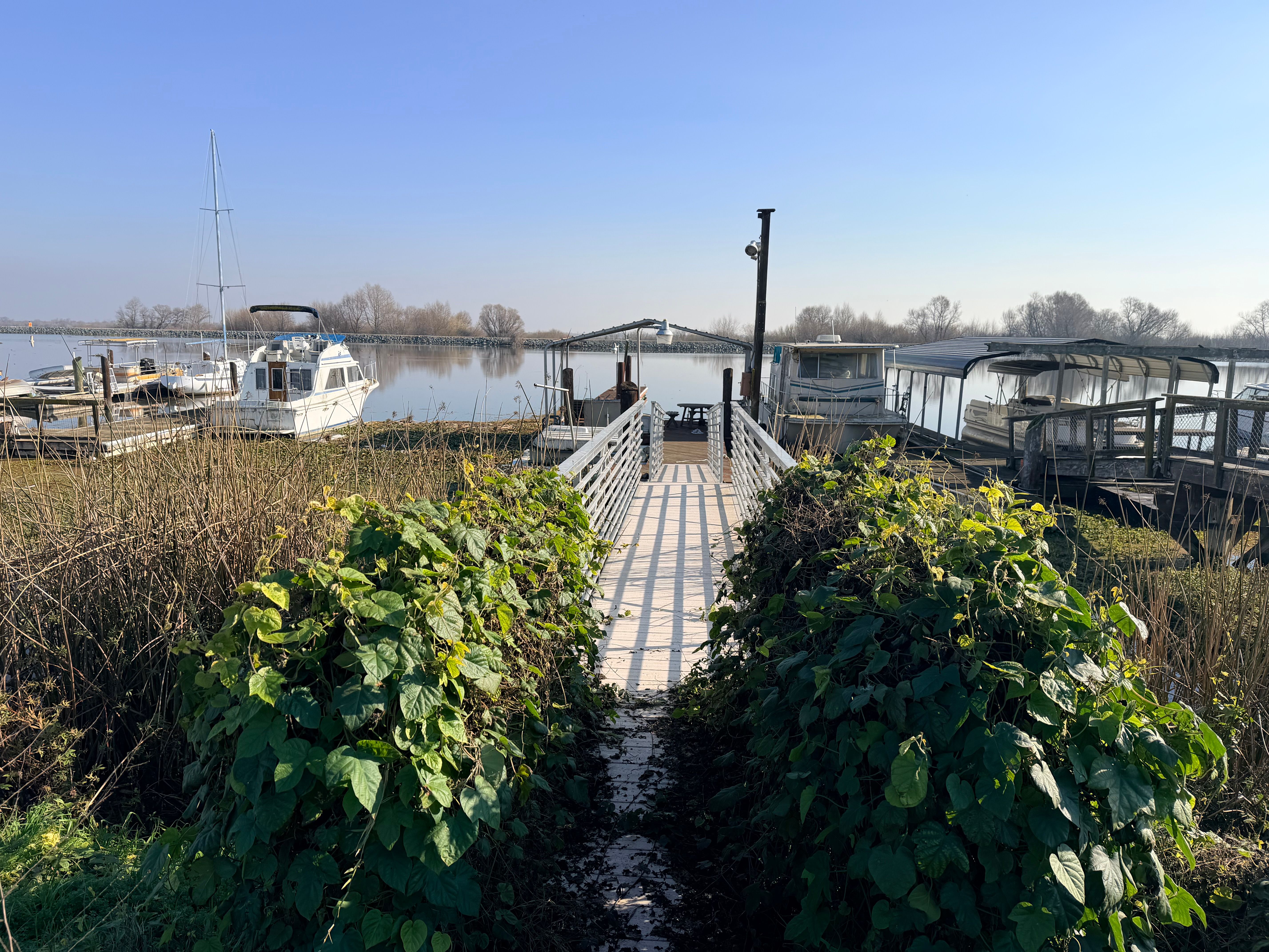 Experience serene waterfront living at the quiet end of Windsweep Road in this beautiful home. Featuring three spacious bedrooms, including a top-floor private primary suite with a generously sized bathroom and ample closet space, the layout is designed for both comfort and functionality. The carpeted upper level offers an additional ensuite bedroom, creating a peaceful and private retreat. On the main floor, a well-placed bedroom sits opposite a sophisticated living room centered around a charming wood-burning stove, for a warm and inviting gathering space. The opposite wing of the main level showcases a gourmet kitchen with eat-in dining, perfect for casual meals or entertaining, or if you prefer, step outside onto the expansive wrap-around deck and take in stunning Delta views while dining al fresco. The ground level includes a large garage with workbenches and additional rooms offering abundant storage and flexible use. An elevator on this level gives easy access to the main floor. Along the waterfront side, enjoy a covered hot tub area, a spacious yard that meets the water’s edge, a covered berth for a large boat, and a long private dock ideal for all your watercraft and recreational gear. Easy and close access to moving water. Come see what dreams are made of!