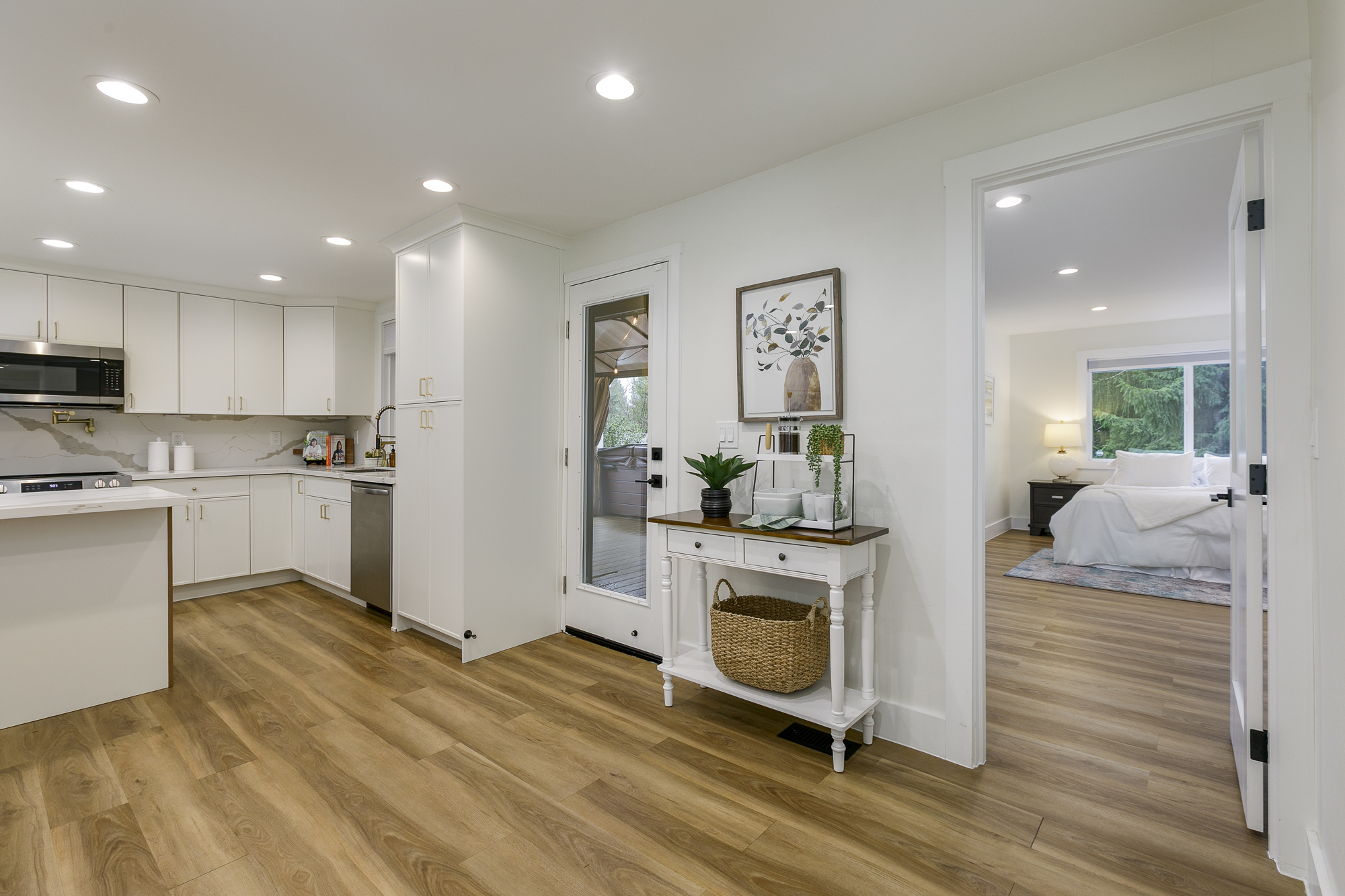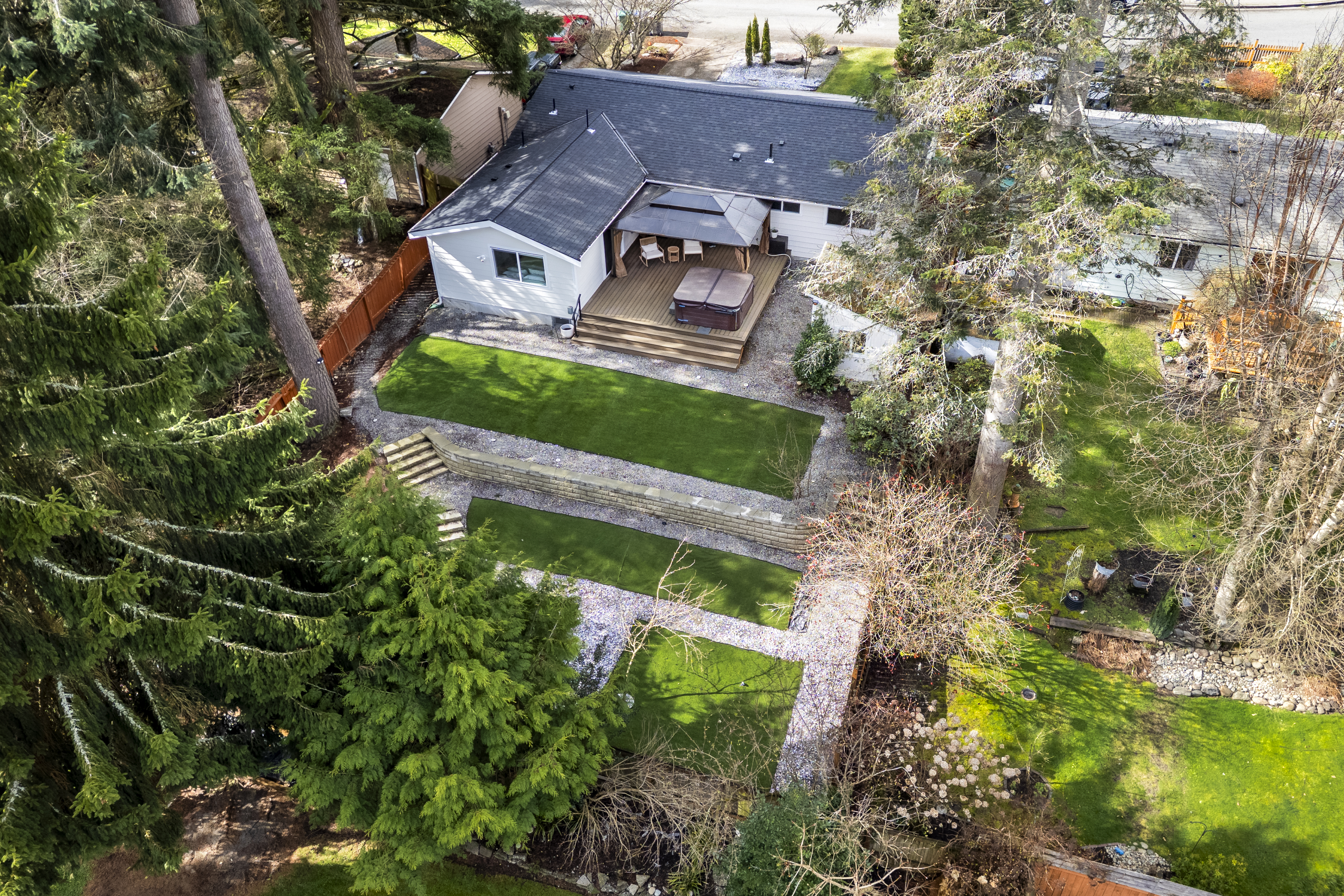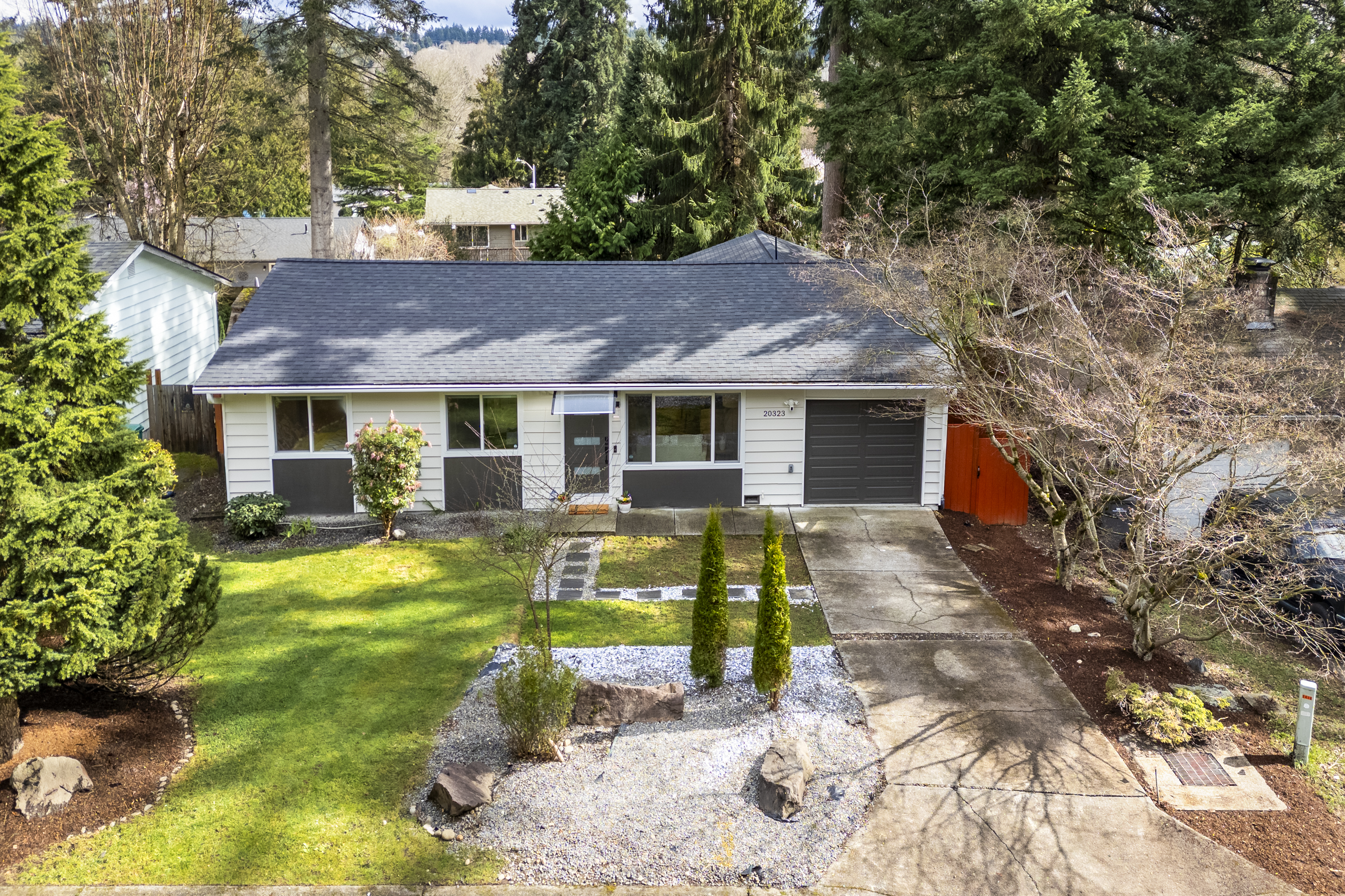 Thoughtfully remodeled rambler in Bothell’s desirable Thrasher’s Corner! This move-in-ready home has been completely reimagined with careful attention to detail and quality upgrades throughout. The home now offers 4 bedrooms and a comfortable, efficient layout designed for easy everyday living. The beautifully updated smart kitchen connects naturally with the dining and living areas, while spa-inspired bathrooms feature elegant finishes and multi-head shower systems. Extensive improvements including new roof, new water piping and new HVAC provide both style and peace of mind. Step outside to a gorgeous entertainment deck with hot tub, perfect for relaxing evenings or gathering with friends. The tiered backyard creates multiple outdoor areas to enjoy, and the private, detached, 94-sqft studio provides an ideal work-from-home setup or creative studio. Enjoy convenient single-level living just minutes from I-405, I-5, UW Bothell, Northshore schools, parks, dining and shopping. A home where the quality of the remodel and thoughtful details truly shine in person.