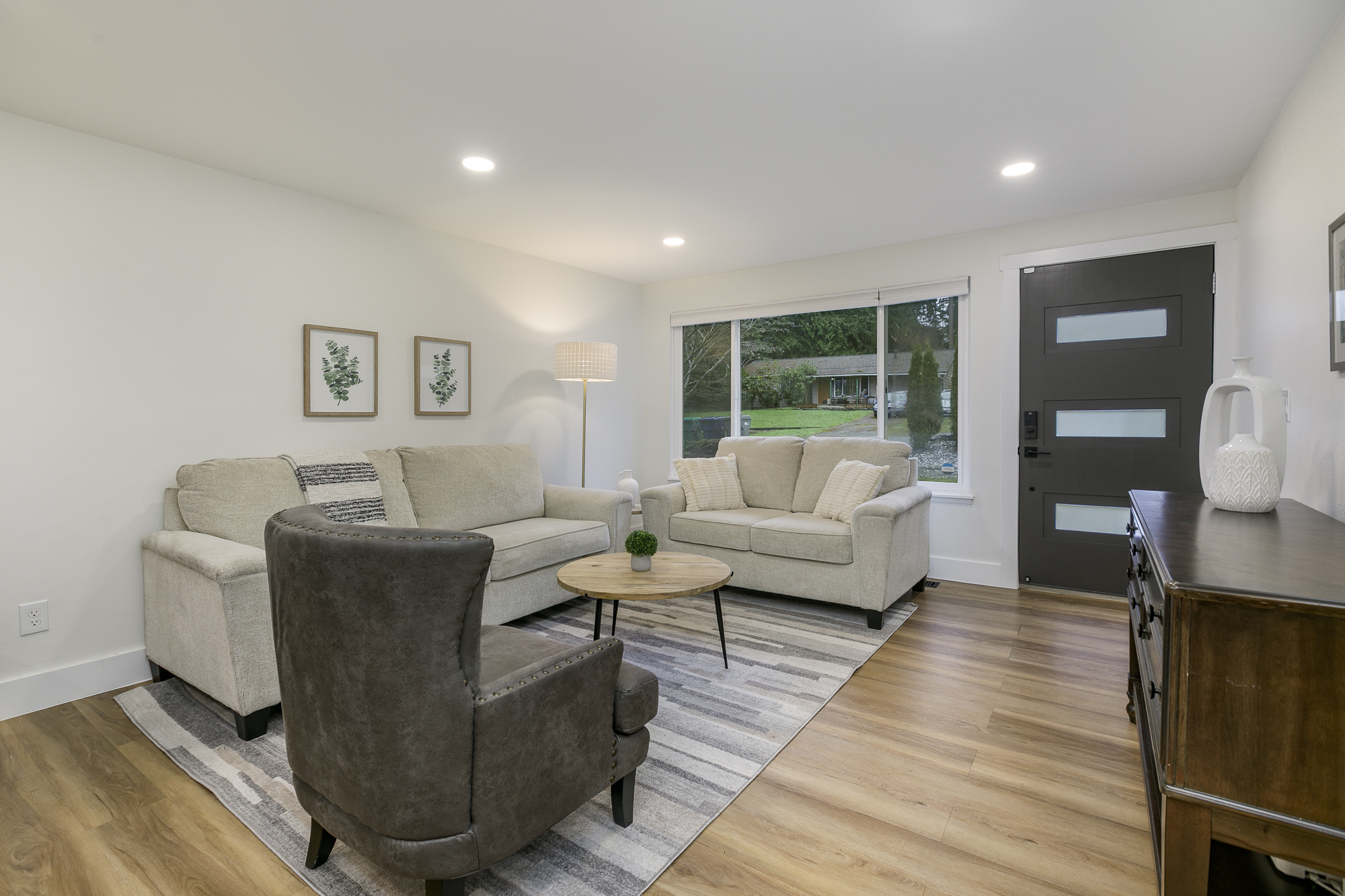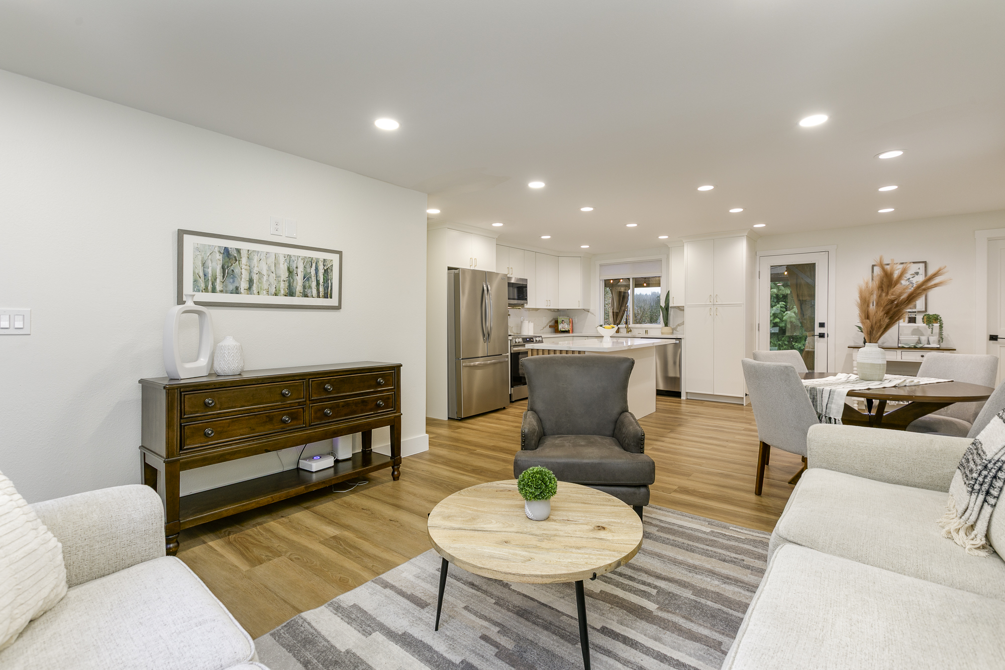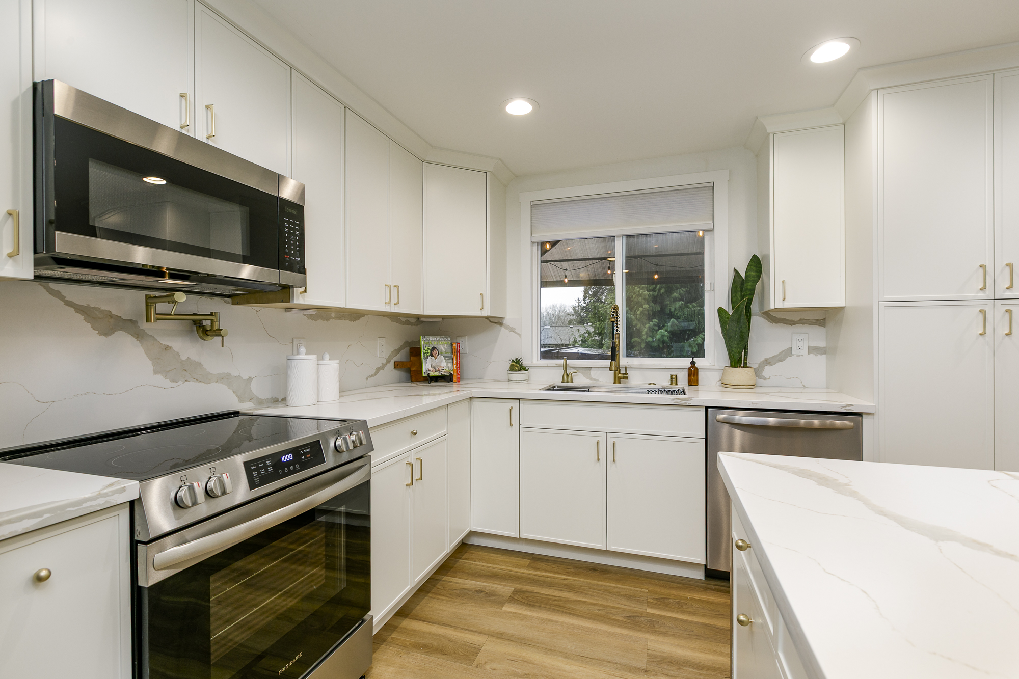 Thoughtfully remodeled rambler in Bothell’s desirable Thrasher’s Corner! This move-in-ready home has been completely reimagined with careful attention to detail and quality upgrades throughout. The home now offers 4 bedrooms and a comfortable, efficient layout designed for easy everyday living. The beautifully updated smart kitchen connects naturally with the dining and living areas, while spa-inspired bathrooms feature elegant finishes and multi-head shower systems. Extensive improvements including new roof, new water piping and new HVAC provide both style and peace of mind. Step outside to a gorgeous entertainment deck with hot tub, perfect for relaxing evenings or gathering with friends. The tiered backyard creates multiple outdoor areas to enjoy, and the private, detached, 94-sqft studio provides an ideal work-from-home setup or creative studio. Enjoy convenient single-level living just minutes from I-405, I-5, UW Bothell, Northshore schools, parks, dining and shopping. A home where the quality of the remodel and thoughtful details truly shine in person.
