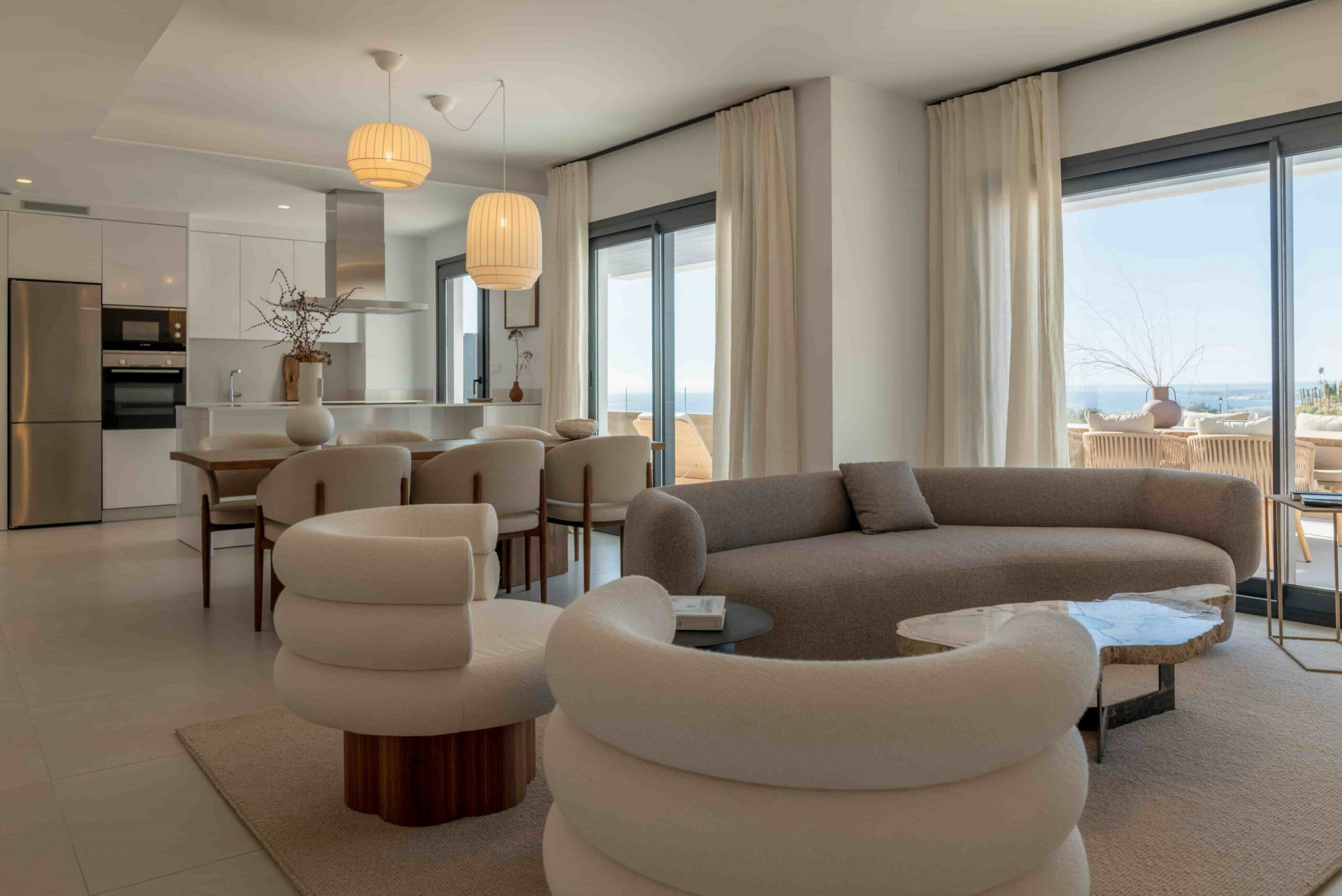Perched in the tranquil hills above Marbella, this brand-new, fully furnished penthouse in Los Altos de Los Monteros offers a perfect combination of contemporary design, spectacular views, and effortless move-in convenience.Recently delivered and never lived in, the property is completely furnished and beautifully styled, allowing you to move in immediately and begin enjoying the Mediterranean lifestyle from day one. The development has been created by a renowned developer with more than 80 years of experience on the Costa del Sol, known for building high-quality residential communities in some of the region’s most desirable locations.Spread across two levels, the penthouse has been thoughtfully designed to maximize space, light, and the breathtaking coastal surroundings. The main level features three comfortable bedrooms and two modern bathrooms, including a spacious master suite. The bright open-plan living and dining area seamlessly connects with a fully equipped contemporary kitchen, creating a welcoming space ideal for both relaxing and entertaining. Large windows frame panoramic views of the Mediterranean Sea, filling the home with natural light and enhancing the sense of openness.Upstairs, the property truly shines. A private rooftop solarium offers an exceptional outdoor living space where you can lounge, dine, and entertain while enjoying uninterrupted sea views. The highlight is the private plunge pool, perfect for cooling off on warm summer days while watching the sun set over the coastline — the sunsets from here are simply spectacular.Residents also enjoy a range of excellent community amenities, including a heated indoor swimming pool, a fully equipped gym, and a stylish coworking area, ideal for those who work remotely or want a comfortable place to focus outside the home. The property also includes private underground parking, adding convenience and security.Located in the exclusive residential area of Los Altos de Los Monteros, the penthouse benefits from a peaceful hillside setting known for its natural surroundings and sweeping coastal views. Despite the tranquility, the property is only a short drive from the vibrant lifestyle of Marbella.Beautiful sandy beaches such as Playa de Los Monteros are just minutes away, along with several renowned golf courses and the charming historic centre of Marbella with its lively squares, restaurants, and boutiques. The famous marina and nightlife of Puerto Banús can also be reached within a short drive.Combining modern architecture, generous outdoor living space, premium communal facilities, and breathtaking sea views, this penthouse presents an outstanding opportunity to own a turn-key contemporary home in one of Marbella’s most scenic hillside locations.