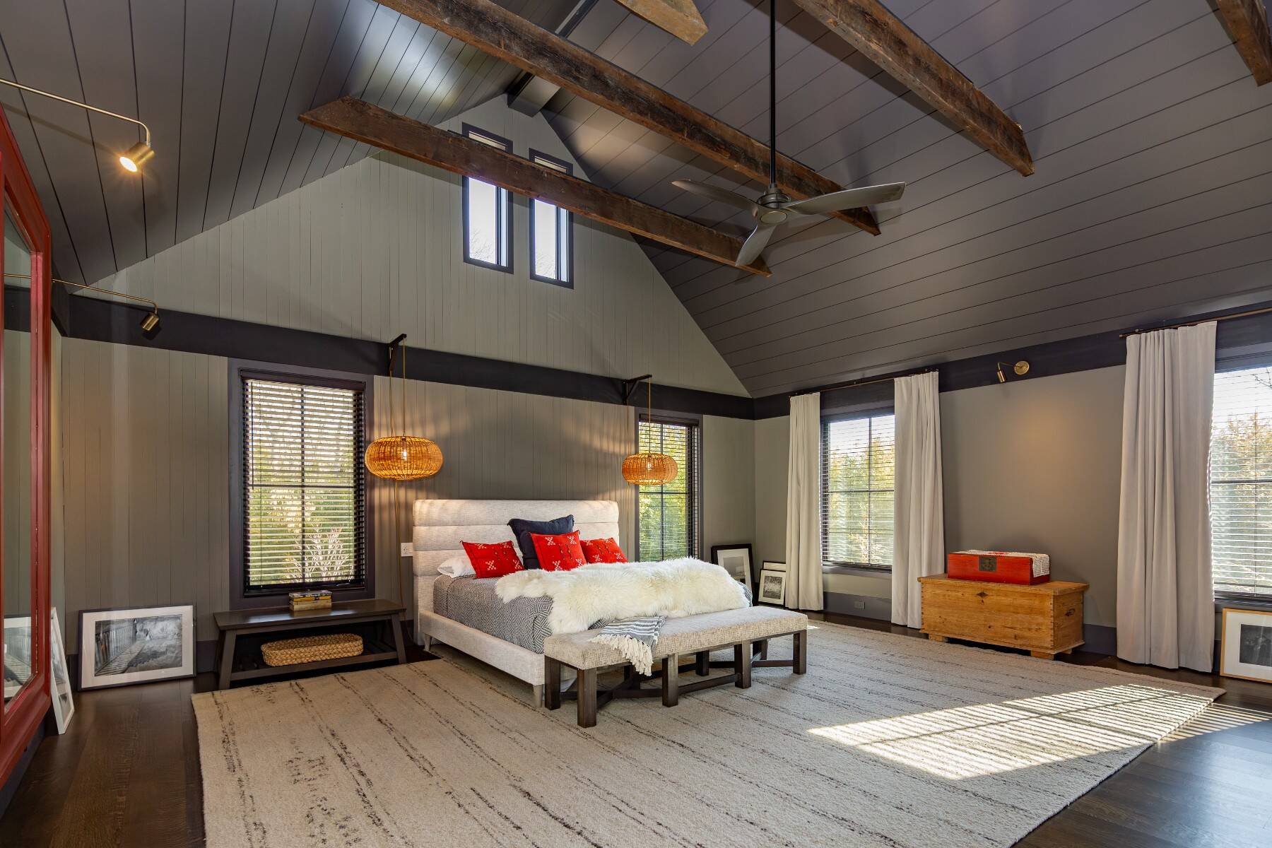 Discover a newly completed 2025 modern residence, quietly set far back from the road for exceptional privacy. Thoughtfully designed, the home features three generously scaled primary suites and a striking great room with balcony, oriented toward serene views of the 100-foot pool, spa, and brick-lined terrace. A covered porch and outdoor dining area invite relaxed gatherings framed by the natural landscape. Inside, a spacious chef's kitchen anchors the main level with Thermador appliances, complemented by a large living room, ensuite guest bedroom. Every space has been crafted for comfort, flow, and effortless living, ensuring an elevated experience throughout your stay. Sustainable features include a greenhouse, garage with electric vehicle charging, and geothermal and solar energy systems. Perfectly positioned for quick access to Bridgehampton's ocean beaches and Sag Harbor's boutiques and restaurants, this modern retreat offers the best of the Hamptons in one tranquil setting. Please call with questions or to make an appointment to view this great property! [[Rental Registration # Pending]]