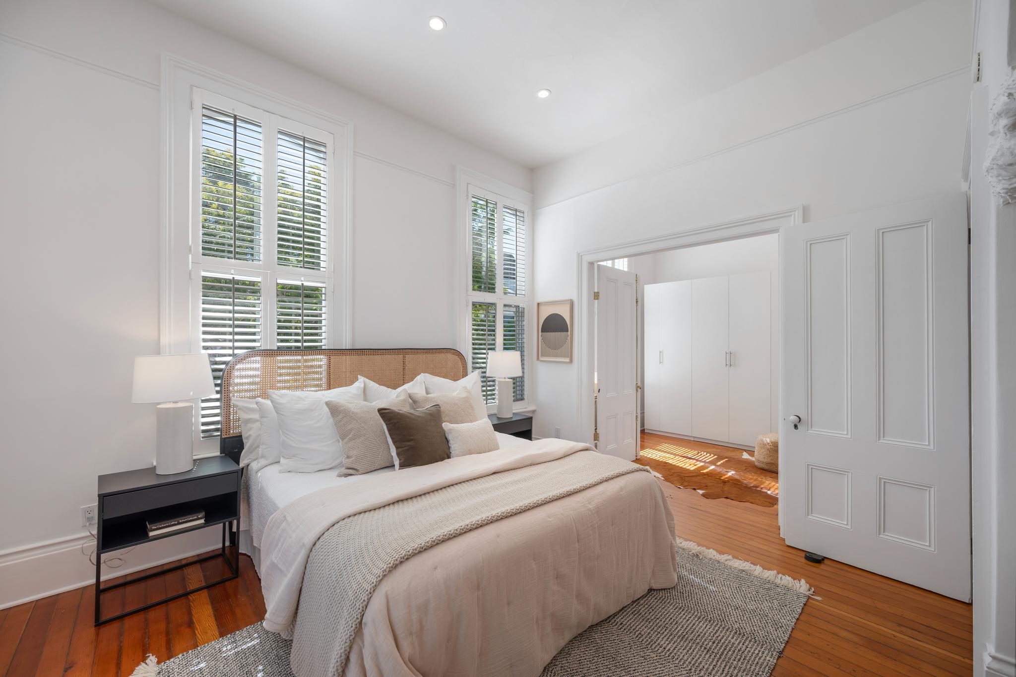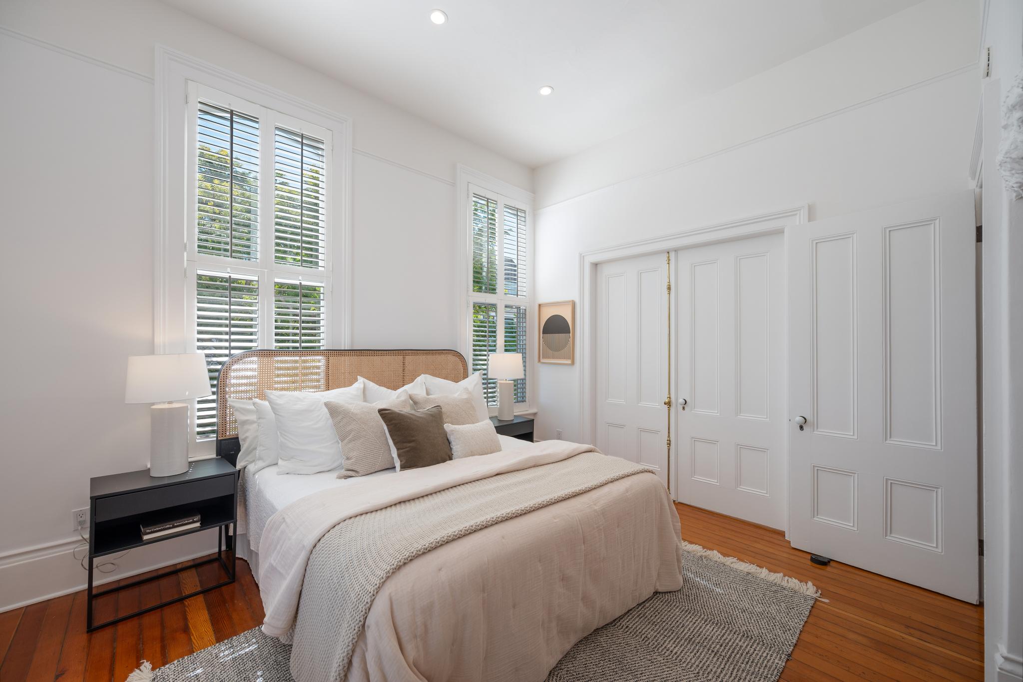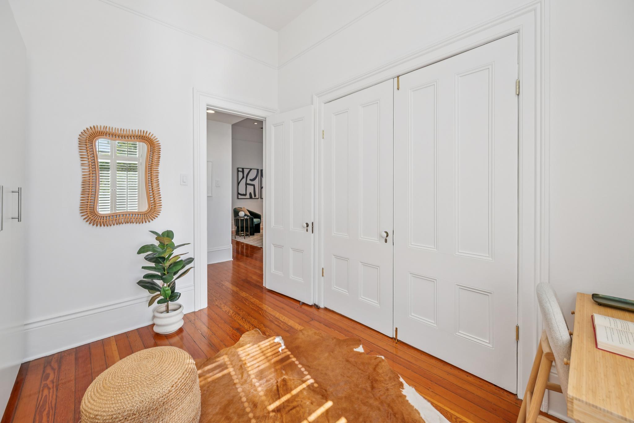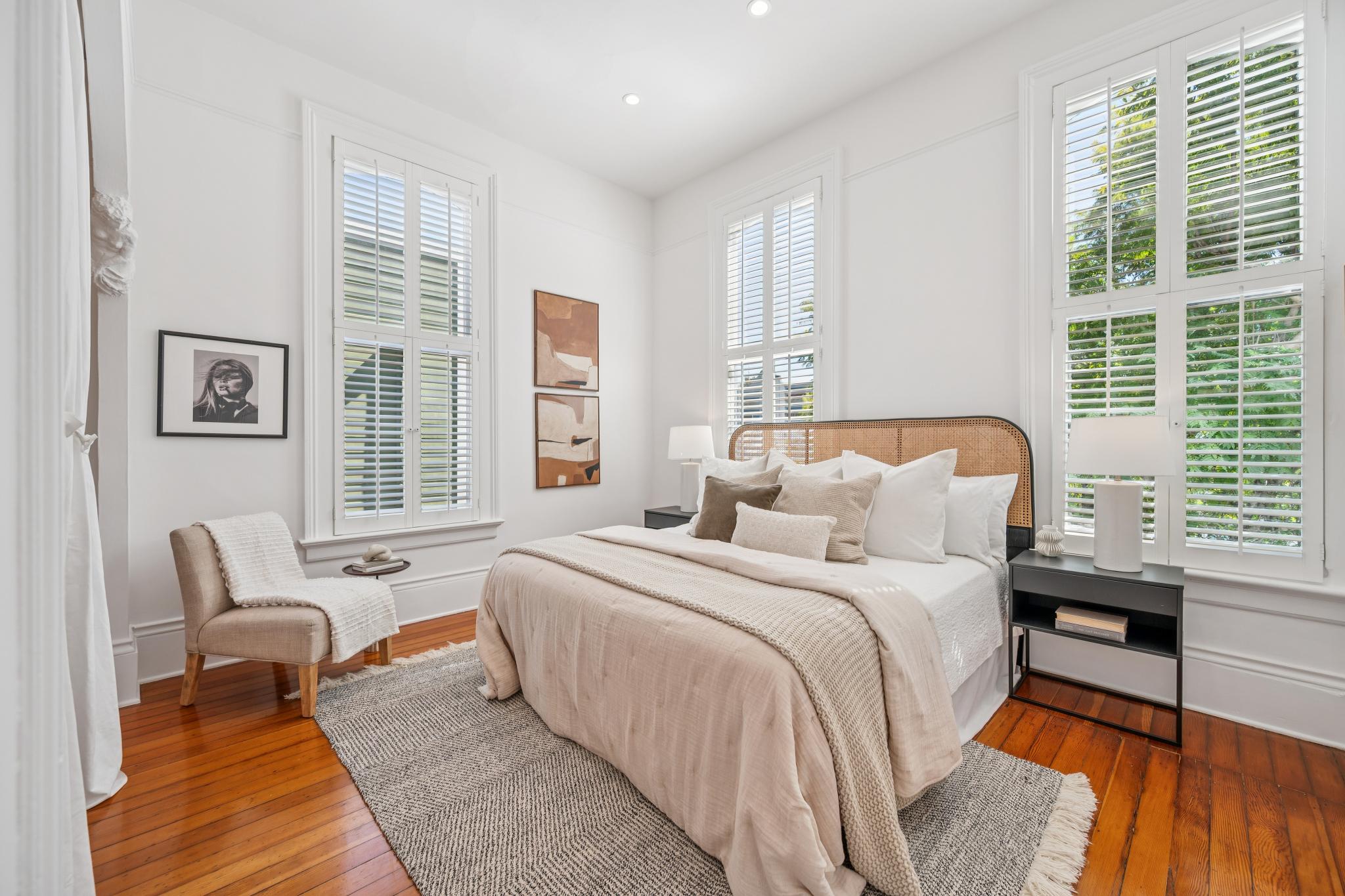The living room and bedrooms retain their vintage charm with soaring 10+ ft ceilings and detailed molding, giving the home an uplifting sense of scale. The versatile primary suite features abundant closets and opens seamlessly through classic doors to a flexible office or dressing room. Lighting throughout the home has been stylishly updated with recessed lights and Lutron dimmers.