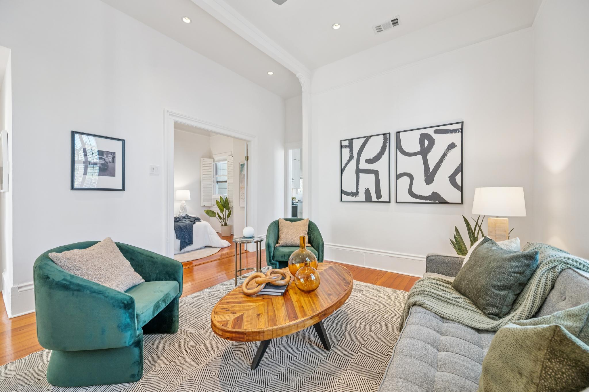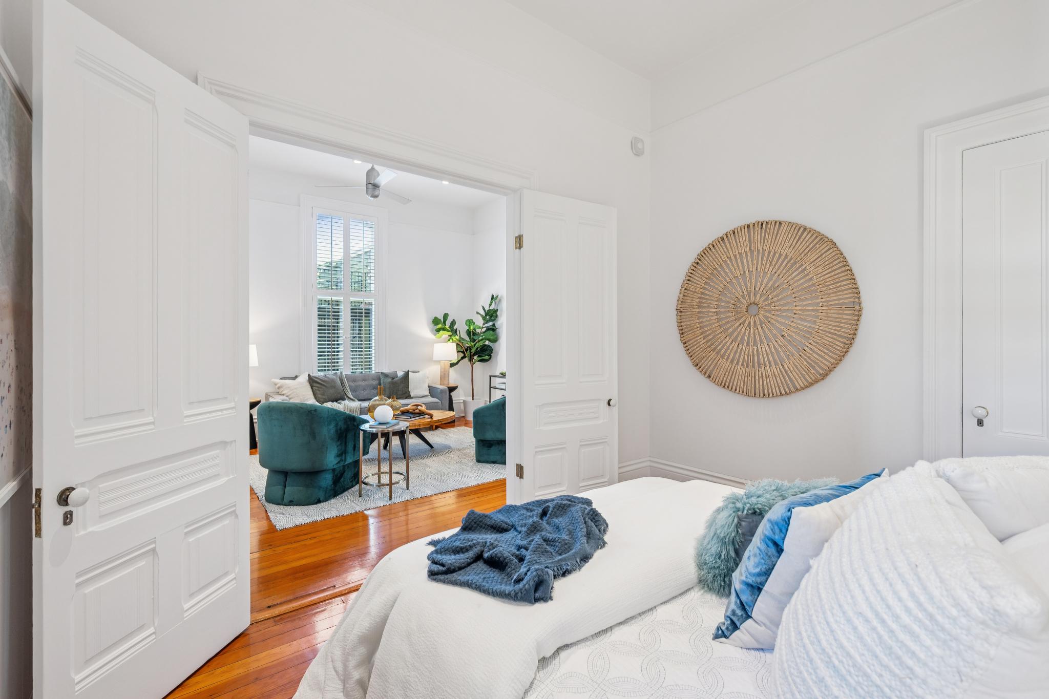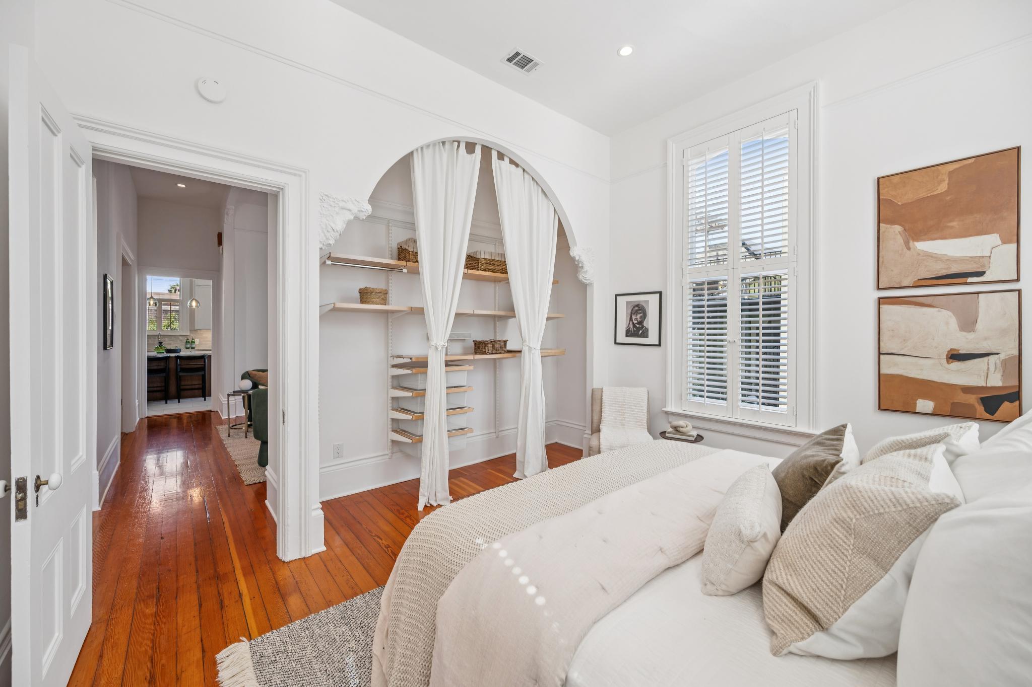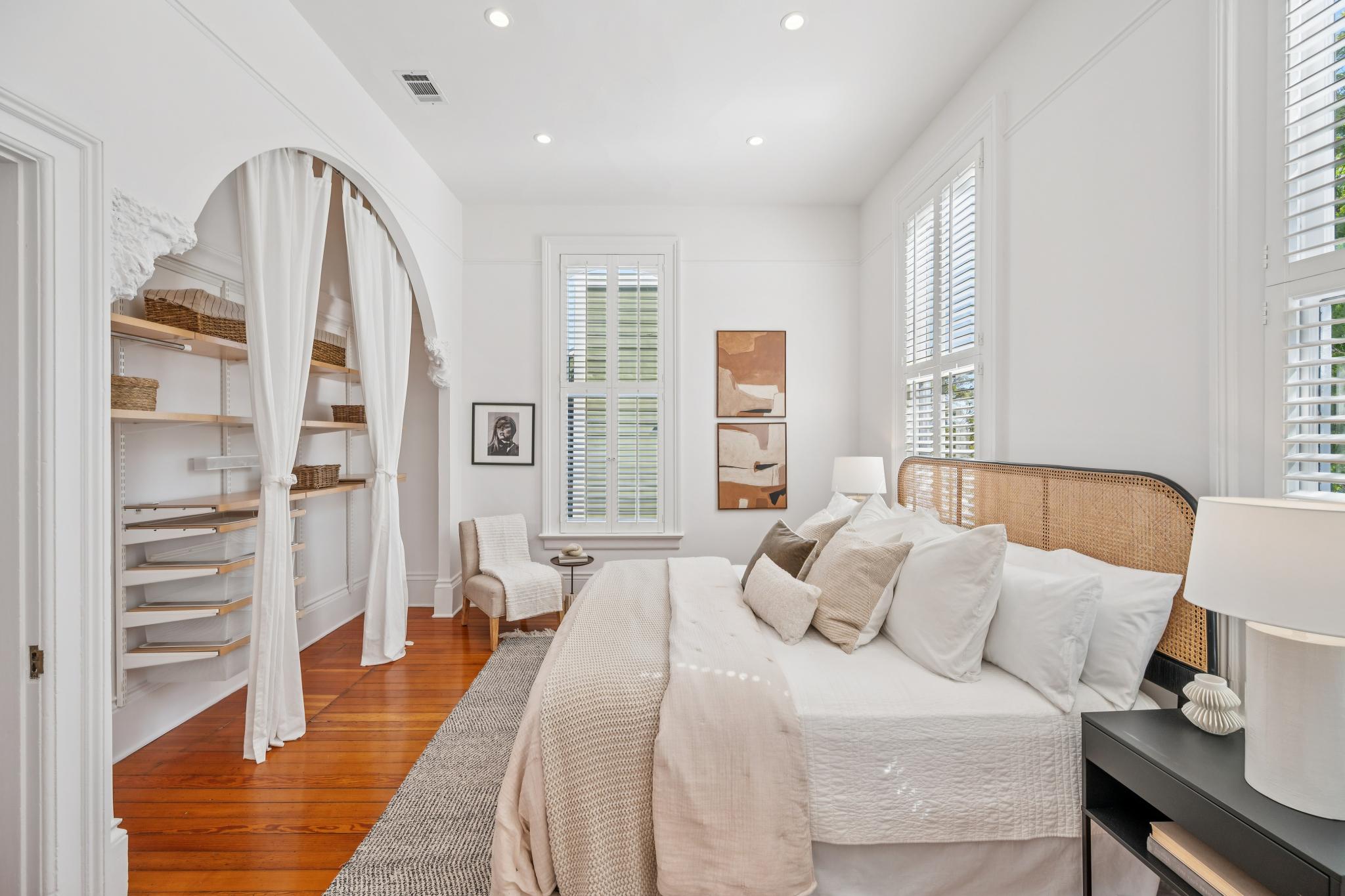 The living room and bedrooms retain their vintage charm with soaring 10+ ft ceilings and detailed molding, giving the home an uplifting sense of scale. The versatile primary suite features abundant closets and opens seamlessly through classic doors to a flexible office or dressing room. Lighting throughout the home has been stylishly updated with recessed lights and Lutron dimmers.