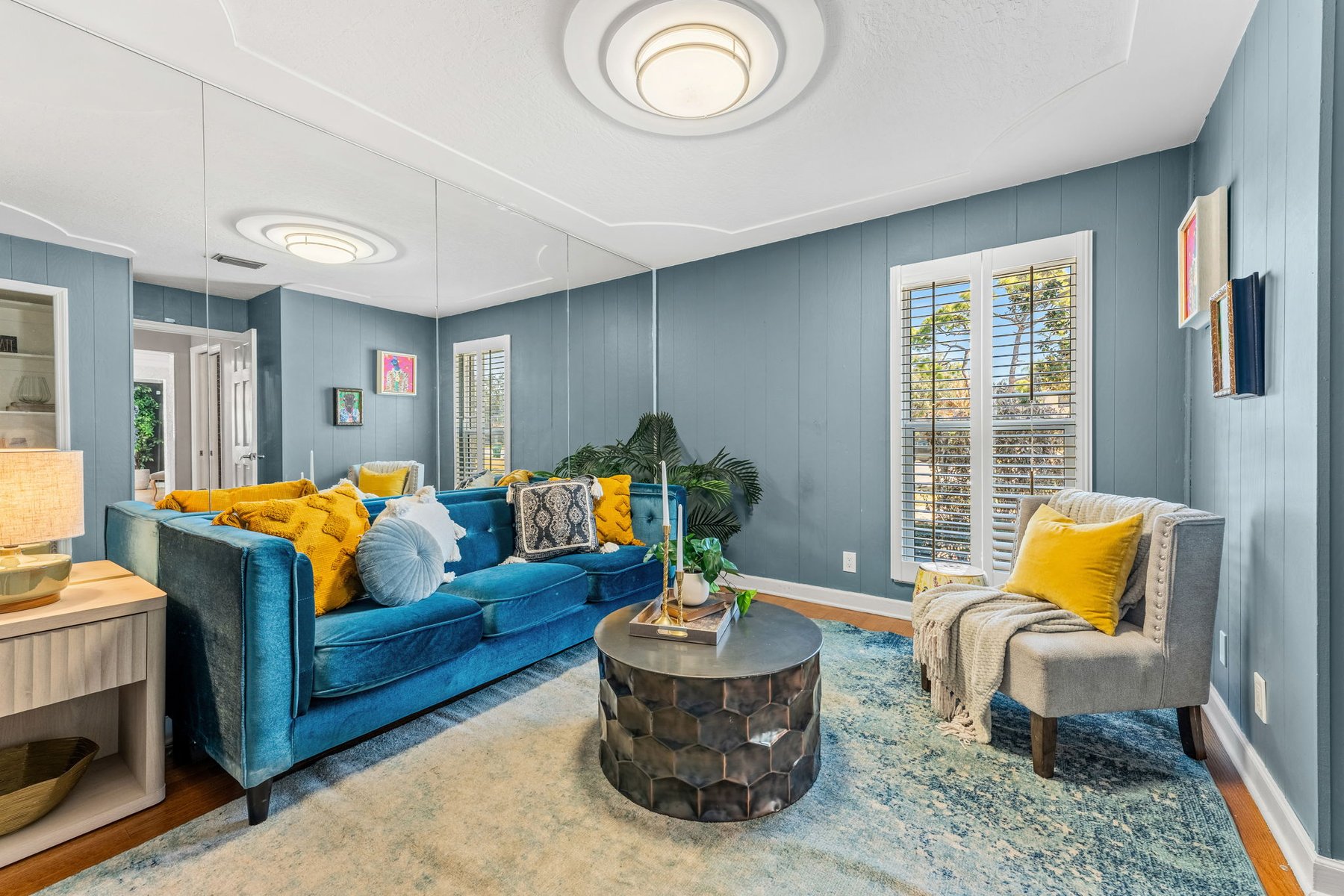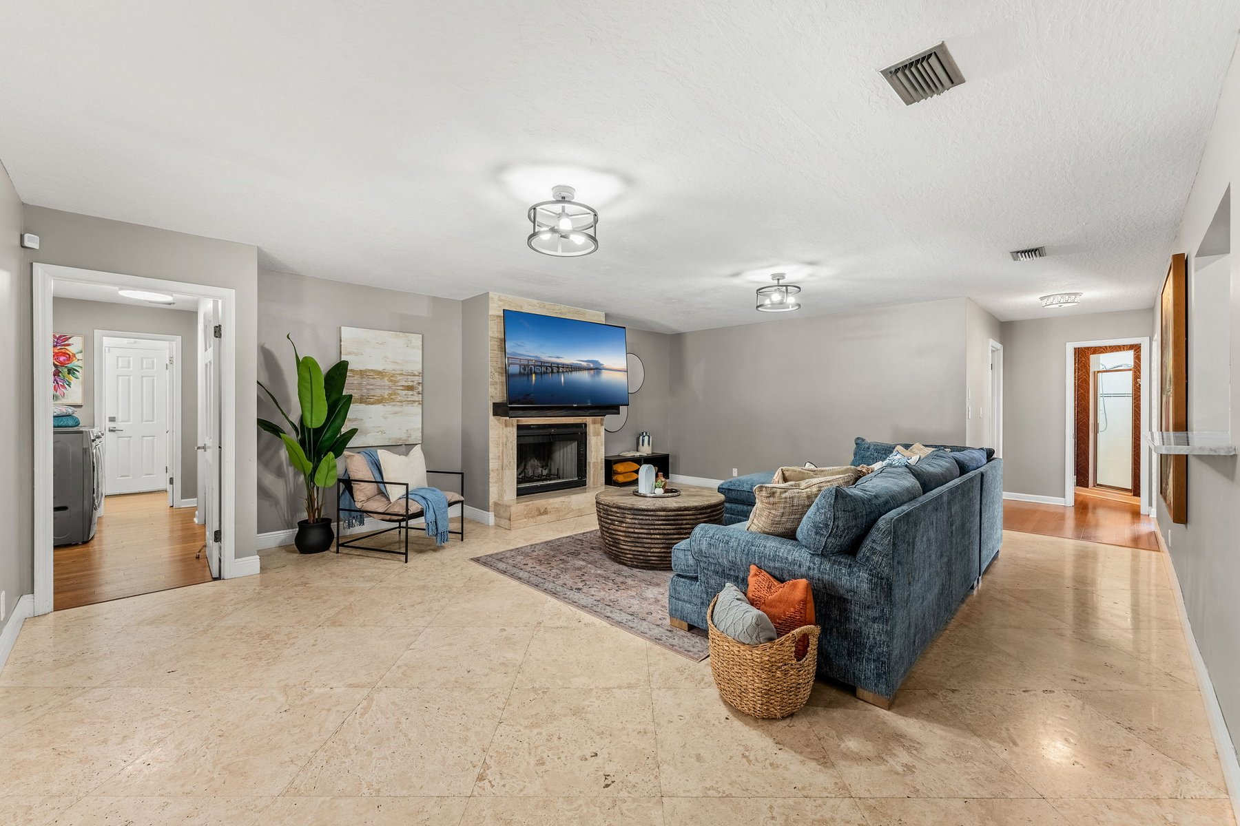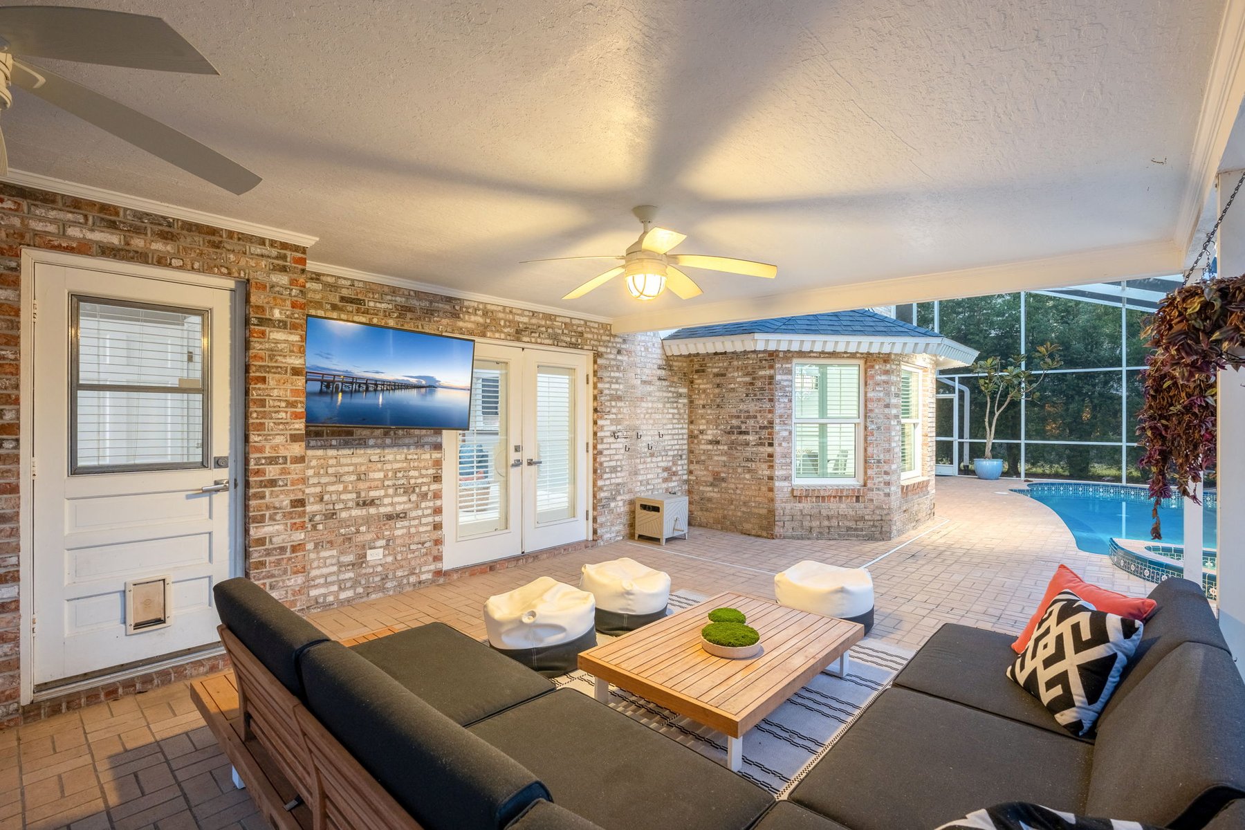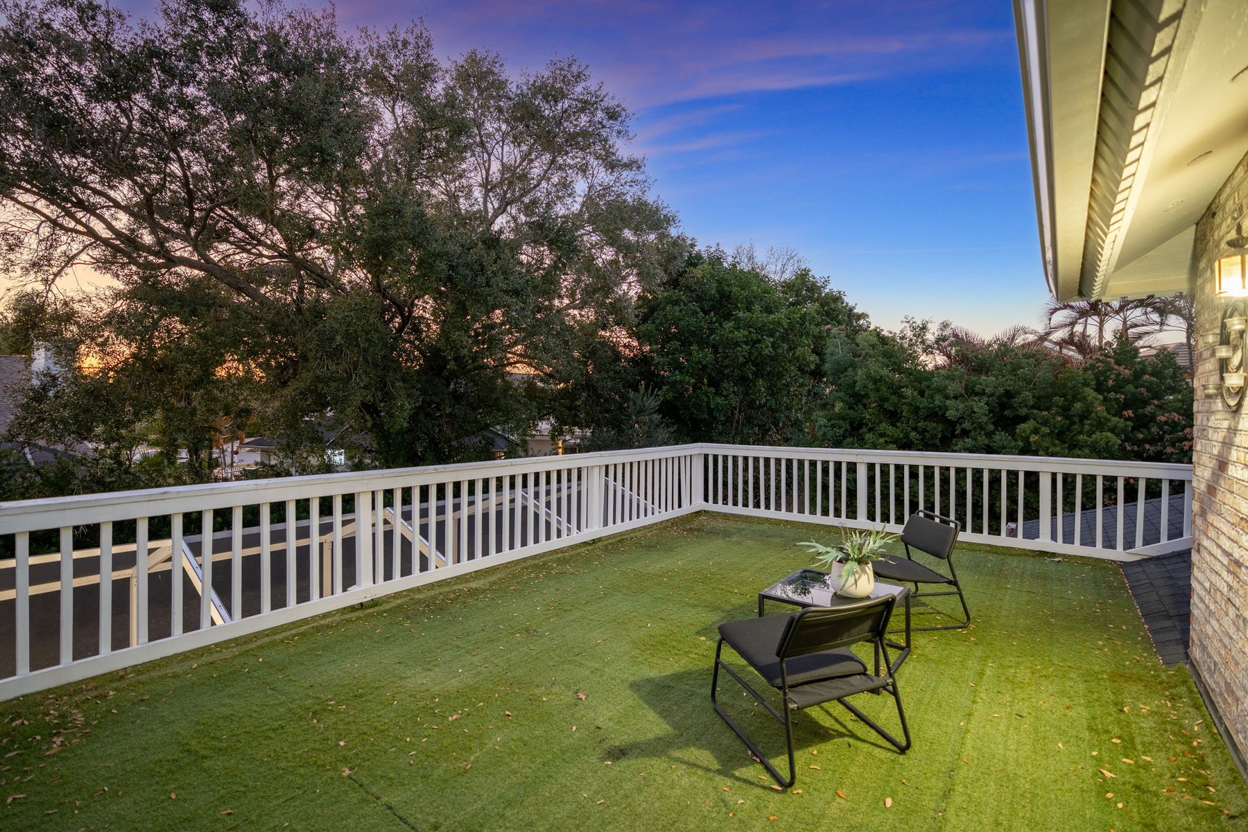 Located on a quiet cul-de-sac in Woodbridge at Suntree, this two-story brick French Provincial home sits directly adjacent to the 18th hole of Suntree Country Club. Offering 3,487 square feet, 5 bedrooms, and 5 full baths, the home blends timeless architecture with extensive 2022 updates throughout.Designed with family living and entertaining in mind, the home features hardwood floors, a wood-burning fireplace, and multiple gathering spaces that flow seamlessly to the expansive covered lanai and screened pool with gas-heated spa. The fully modernized kitchen showcases marble countertops, double wall ovens, an induction cooktop, butler's pantry, and an impressive entertainment extension complete with a 200-bottle wine refrigerator and keg fridge.Upstairs, the primary suite offers four custom closets and direct access to a private rooftop deck with panoramic views. Two additional upstairs suites provide flexibility for growing families or multigenerational living, while a first-floor guest bedroom adds convenience.Major improvements include hurricane impact windows and doors (2022), dual-zone HVAC, foam-insulated attic spaces, a 2015 roof with wind mitigation upgrades, and new professional landscaping (2024).Located within Woodbridge's signature covered bridge community and minutes from parks, shopping, and major commuter routes. Approximately 10 minutes to the beach, 15 minutes to Melbourne Orlando International Airport, and about 45 minutes to Orlando International Airport, this is a true family home in one of Suntree's most desirable neighborhoods.