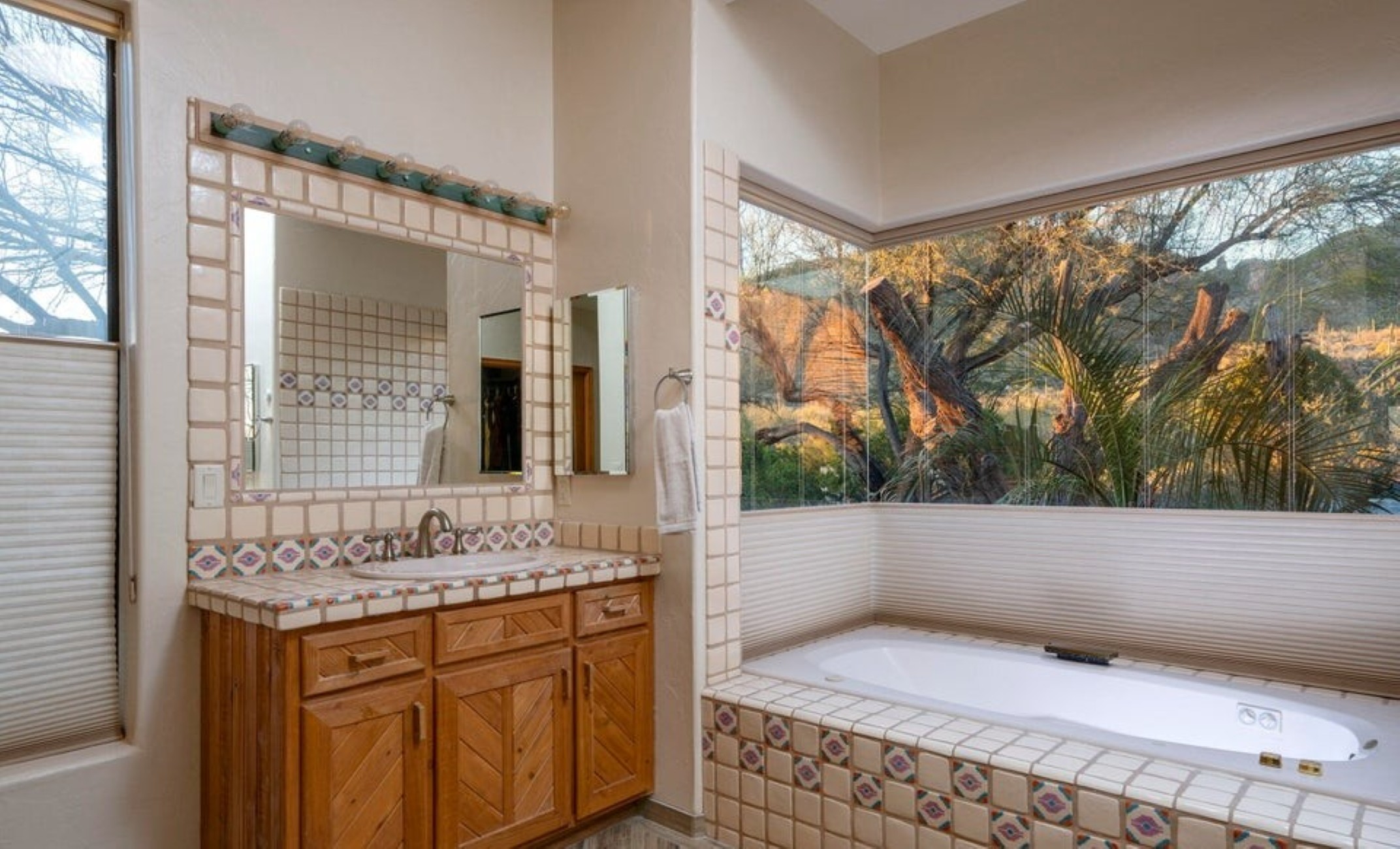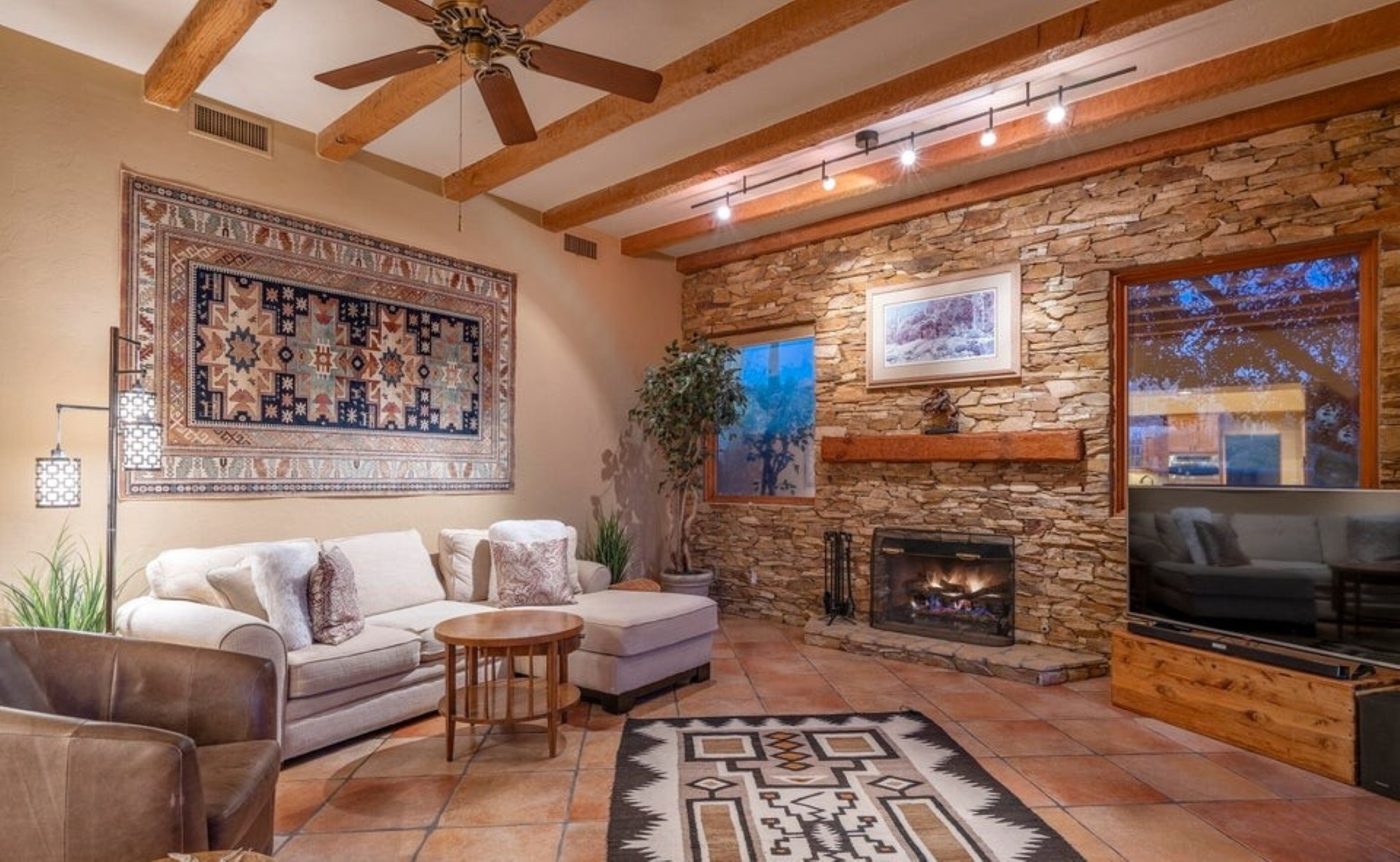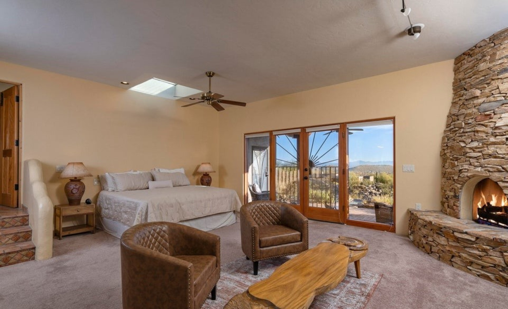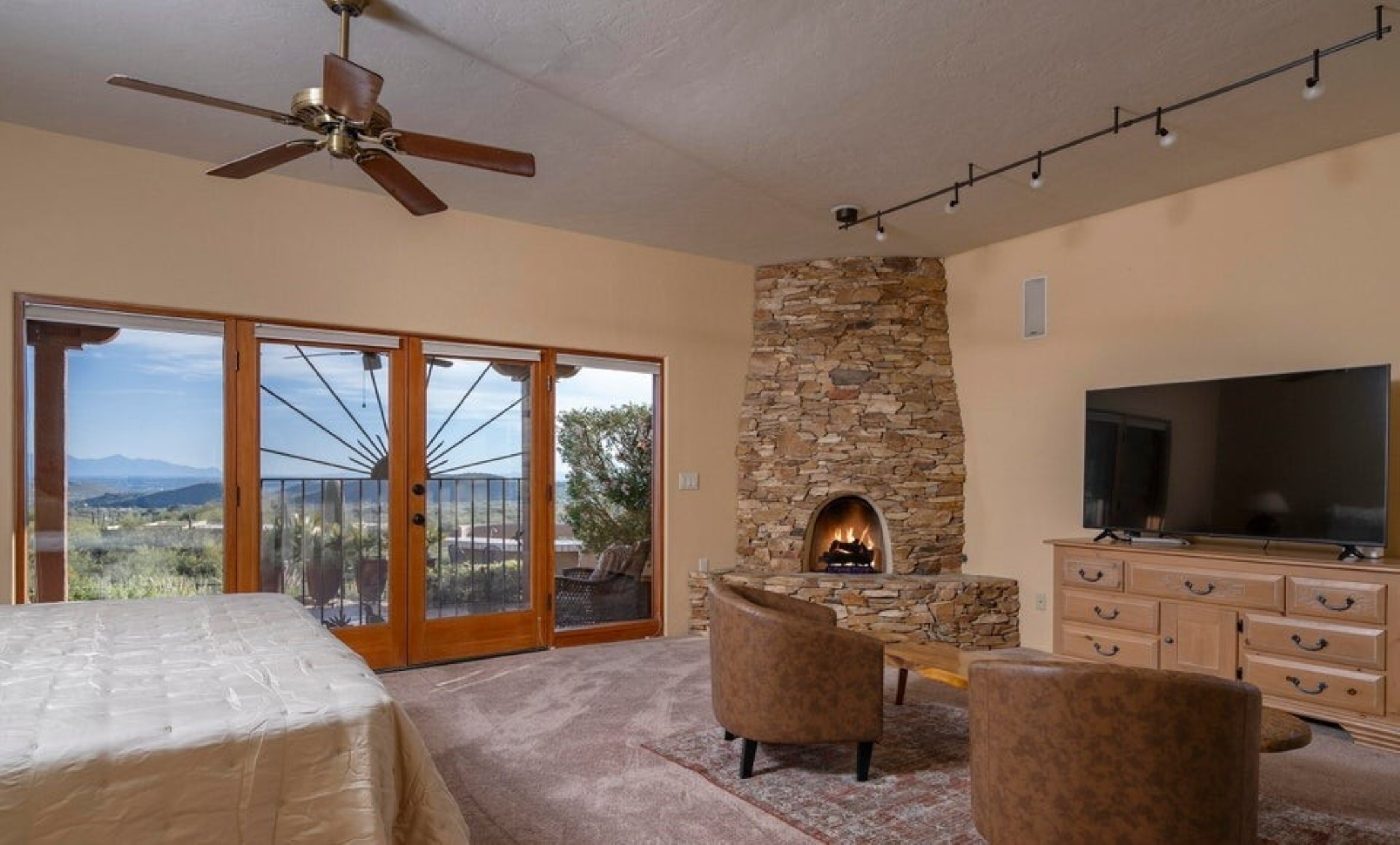 For those who value views and privacy above all, this custom home in gated Canyon View Estates delivers. Set on an elevated 1.38-acre homesite--one of only three on the street with a north/south exposure--at approximately 2,700 feet above sea level, this Catalina Foothills residence captures truly spectacular views of the city, mountains, Tucson's iconic sunsets, & the Ventana Canyon golf course. Canyon View Estates is located in the highly sought-after Catalina Foothills School District #16 and is within walking distance of Canyon View Elementary & Esperero Canyon Middle School. This location provides a remarkable combination of natural beauty, views, privacy, and proximity to Tucson's finest amenities. A circular driveway laid with one-of-a-kind native stone leads to a charming, gated courtyard with lush landscaping and a tranquil water feature. Upon entry, a dramatic wall of windows frames a stunning elevated view overlooking the city, creating an unforgettable first impression.The home features a desirable split-bedroom floor plan with four bedrooms, three bathrooms, and a den/office, offering comfortable separation between the owner's suite and the guest bedrooms. Throughout the home, warm architectural details--including stacked stone accents, wood-beamed ceilings, skylights, custom wood doors, wood-encased windows, and four fireplaces--create an atmosphere that exudes warmth, charm, and quality. The remodeled kitchen is positioned to capture views and features granite counters, a butcher-block center island beneath a large skylight, two sinks, stainless steel appliances, custom cabinetry to the ceiling with lit glass-front display cabinets, a custom copper hood vent, and a built-in breakfast bar. A bright breakfast nook just off the kitchen provides the perfect setting for casual dining with a view. The kitchen opens seamlessly to the family room, where a stacked-stone fireplace creates a warm focal point and french doors provide direct access to the backyard. Living spaces are designed for both everyday living and entertaining. The living room includes a wet bar with custom cabinetry and a generous dining area ideal for large gatherings. The spacious owner's suite enjoys mountain views, a gas fireplace, a skylight above the bed for star-filled nights, and a private covered patio with spectacular city, mountain, and sunset views. The owner's bathroom features wood-look tile flooring, dual vanities, a jetted soaking tub with a corner window framing remarkable views, a separate shower, and a large walk-in closet with custom built-ins.A separate bedroom wing includes three additional bedrooms and two bathrooms, including a remodeled Jack-and-Jill bath with dual sinks and a custom tile shower.The resort-style backyard features a PebbleTec pool and spa, water feature, expansive covered patio, artificial turf, and lush landscaping throughout. From its elevated vantage point, the outdoor living spaces enjoy sensational city, mountain, and sunset views. Designed for both everyday enjoyment and entertaining, the backyard includes a built-in bar area near the wood-burning outdoor fireplace--perfect for gatherings large and small.The additional land provides a natural privacy buffer and potential future expansion. The adjacent seasonal creek also enhances the sense of space and privacy.Additional highlights include custom wrought iron screen doors throughout, an oversized three-car garage with epoxy floors, built-in cabinetry and workshop area, a laundry room with sink and storage, and HVAC replaced in 2024 with smart thermostats.Ideally located just minutes from Sabino Canyon Recreation Area, Canyon Ranch Wellness Resort, Ventana Canyon Country Club, and everyday conveniences, including Whole Foods, Bashas', restaurants, cafés, and shops. Canyon View Elementary and Esperero Canyon Middle School are within walking distance.