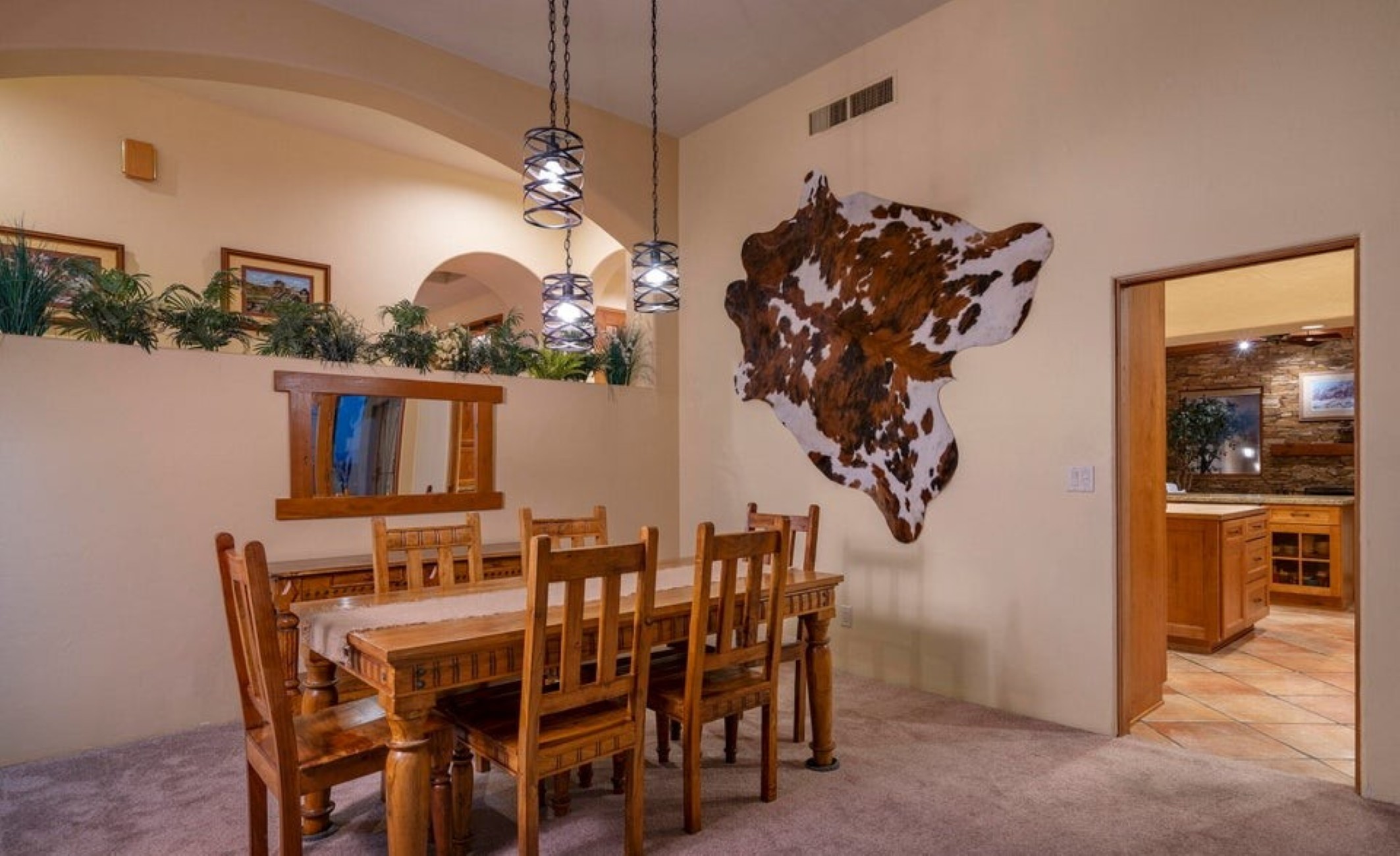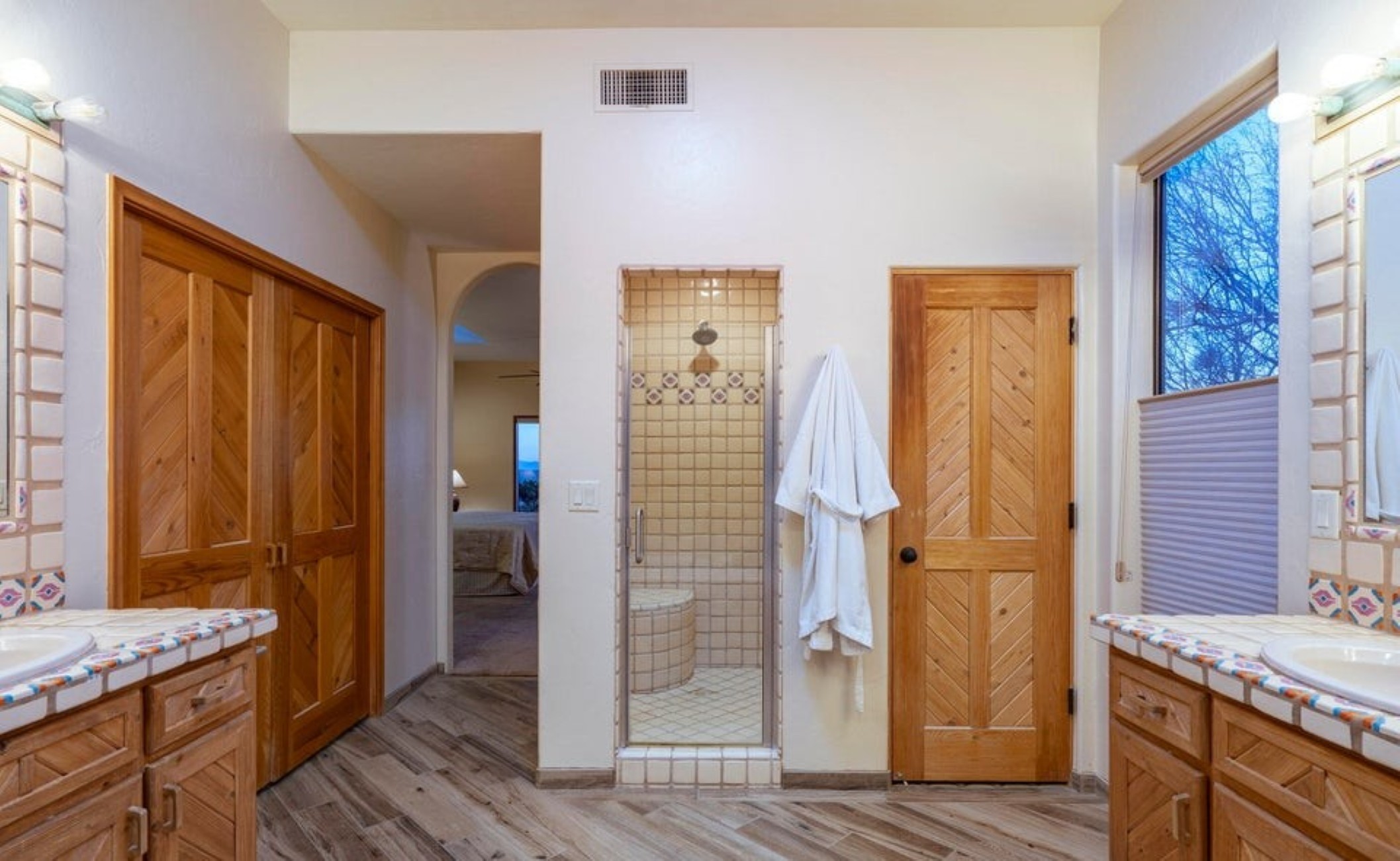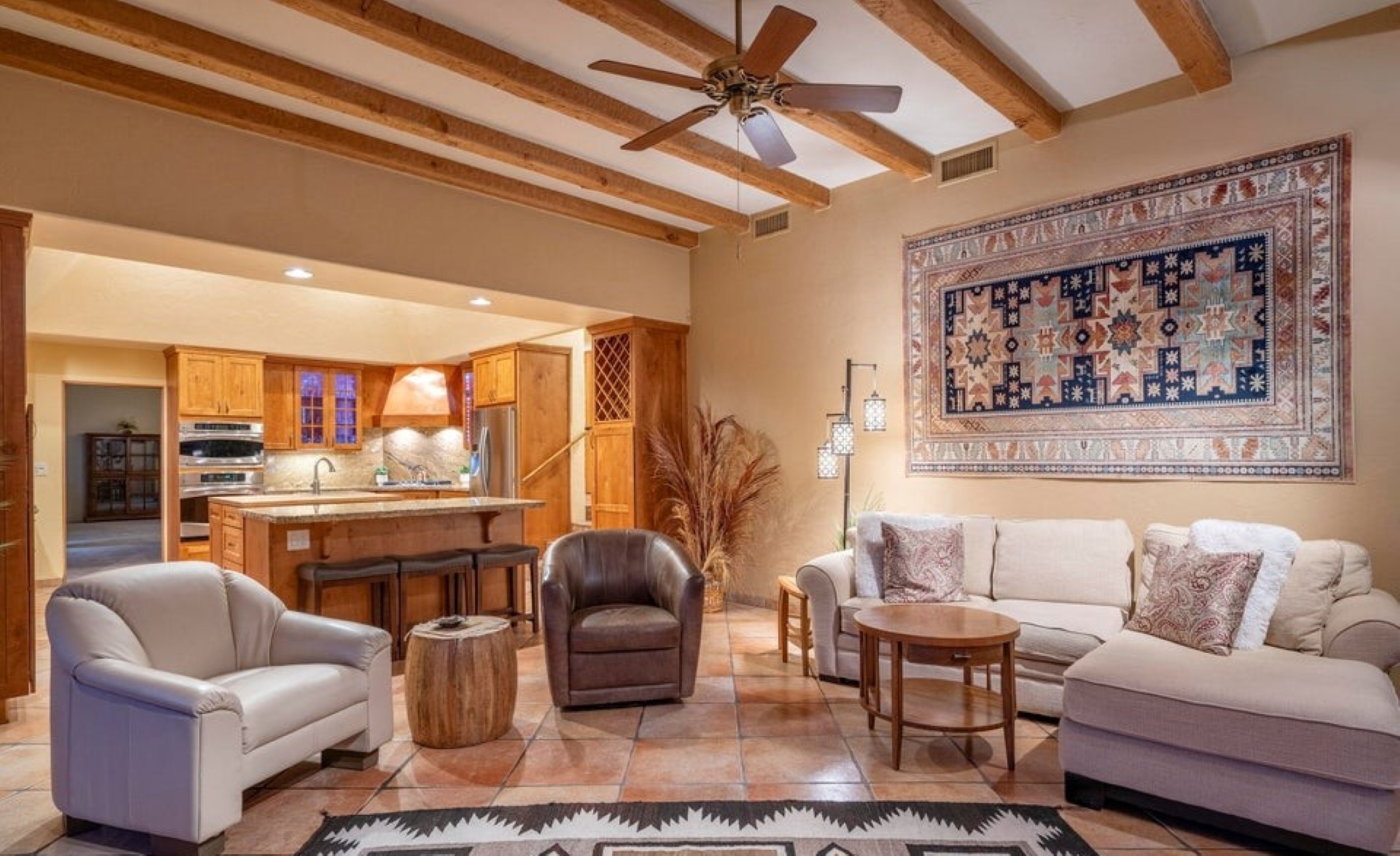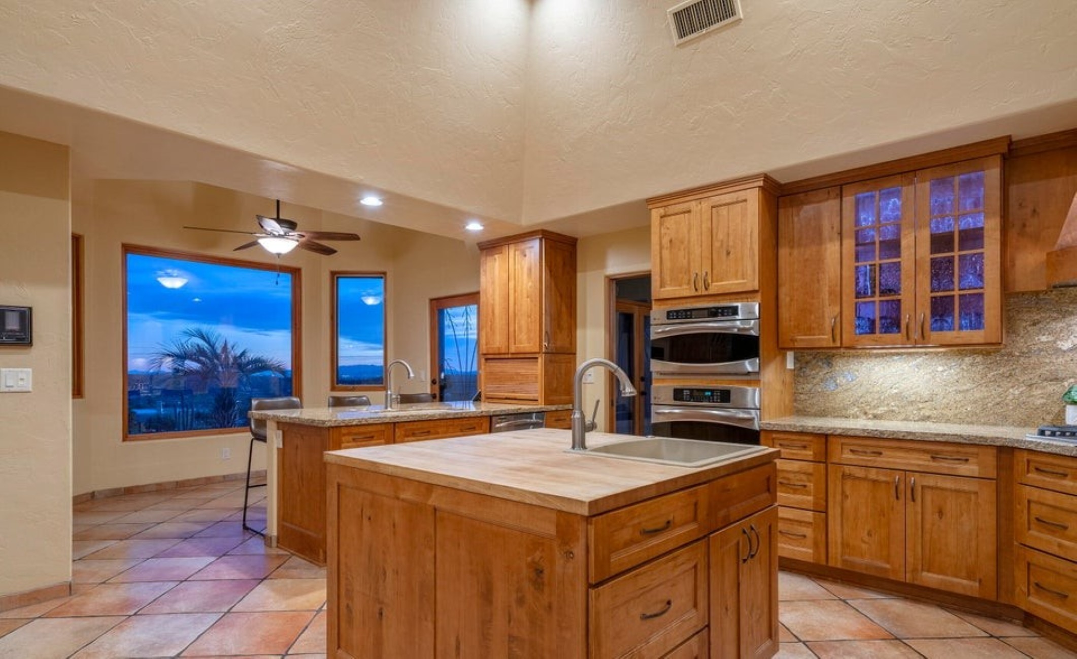 For those who value views and privacy above all, this custom home in gated Canyon View Estates delivers. Set on an elevated 1.38-acre homesite--one of only three on the street with a north/south exposure--at approximately 2,700 feet above sea level, this Catalina Foothills residence captures truly spectacular views of the city, mountains, Tucson's iconic sunsets, & the Ventana Canyon golf course. Canyon View Estates is located in the highly sought-after Catalina Foothills School District #16 and is within walking distance of Canyon View Elementary & Esperero Canyon Middle School. This location provides a remarkable combination of natural beauty, views, privacy, and proximity to Tucson's finest amenities. A circular driveway laid with one-of-a-kind native stone leads to a charming, gated courtyard with lush landscaping and a tranquil water feature. Upon entry, a dramatic wall of windows frames a stunning elevated view overlooking the city, creating an unforgettable first impression.The home features a desirable split-bedroom floor plan with four bedrooms, three bathrooms, and a den/office, offering comfortable separation between the owner's suite and the guest bedrooms. Throughout the home, warm architectural details--including stacked stone accents, wood-beamed ceilings, skylights, custom wood doors, wood-encased windows, and four fireplaces--create an atmosphere that exudes warmth, charm, and quality. The remodeled kitchen is positioned to capture views and features granite counters, a butcher-block center island beneath a large skylight, two sinks, stainless steel appliances, custom cabinetry to the ceiling with lit glass-front display cabinets, a custom copper hood vent, and a built-in breakfast bar. A bright breakfast nook just off the kitchen provides the perfect setting for casual dining with a view. The kitchen opens seamlessly to the family room, where a stacked-stone fireplace creates a warm focal point and french doors provide direct access to the backyard. Living spaces are designed for both everyday living and entertaining. The living room includes a wet bar with custom cabinetry and a generous dining area ideal for large gatherings. The spacious owner's suite enjoys mountain views, a gas fireplace, a skylight above the bed for star-filled nights, and a private covered patio with spectacular city, mountain, and sunset views. The owner's bathroom features wood-look tile flooring, dual vanities, a jetted soaking tub with a corner window framing remarkable views, a separate shower, and a large walk-in closet with custom built-ins.A separate bedroom wing includes three additional bedrooms and two bathrooms, including a remodeled Jack-and-Jill bath with dual sinks and a custom tile shower.The resort-style backyard features a PebbleTec pool and spa, water feature, expansive covered patio, artificial turf, and lush landscaping throughout. From its elevated vantage point, the outdoor living spaces enjoy sensational city, mountain, and sunset views. Designed for both everyday enjoyment and entertaining, the backyard includes a built-in bar area near the wood-burning outdoor fireplace--perfect for gatherings large and small.The additional land provides a natural privacy buffer and potential future expansion. The adjacent seasonal creek also enhances the sense of space and privacy.Additional highlights include custom wrought iron screen doors throughout, an oversized three-car garage with epoxy floors, built-in cabinetry and workshop area, a laundry room with sink and storage, and HVAC replaced in 2024 with smart thermostats.Ideally located just minutes from Sabino Canyon Recreation Area, Canyon Ranch Wellness Resort, Ventana Canyon Country Club, and everyday conveniences, including Whole Foods, Bashas', restaurants, cafés, and shops. Canyon View Elementary and Esperero Canyon Middle School are within walking distance.