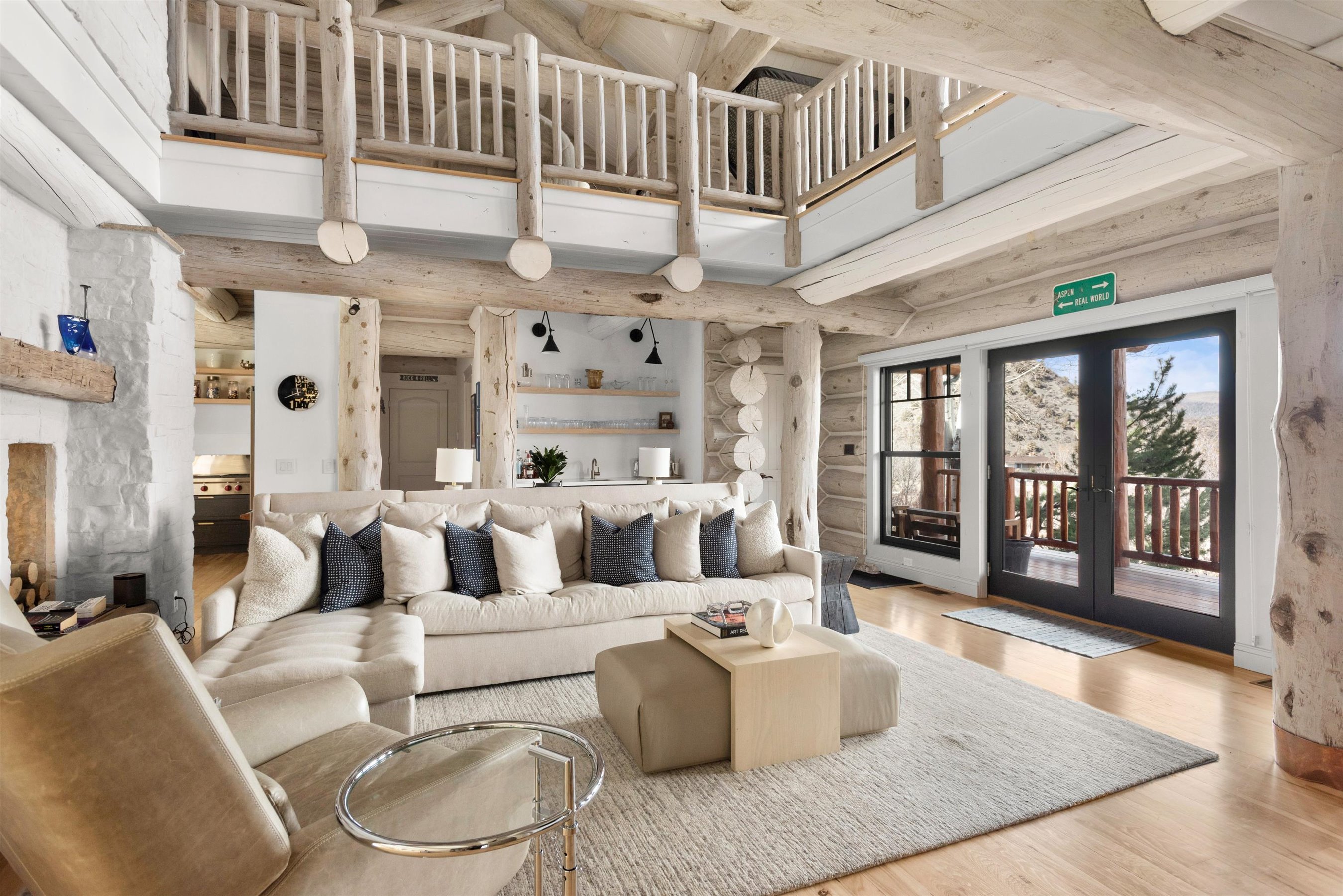 Known as “Satisfaction Ridge,” this beautifully reimagined log home sits on over two private acres in Brush Creek Village, offering sweeping valley views and a peaceful mountain setting just 15 minutes to downtown Aspen or Snowmass Base Village.The 5-bedroom, 4-bath residence spans 4,343 square feet and features a light whitewashed log interior that brightens the traditional cabin aesthetic while preserving its classic mountain character. Vaulted ceilings, exposed beams, and a dual-sided gas fireplace anchor the main living spaces, while the kitchen opens seamlessly to the backyard through floor-to-ceiling sliding glass doors.Outdoor entertaining areas include a terraced lawn, built-in grill, fire pit, outdoor dining area, and hot tub — all positioned to take in the surrounding mountain scenery.With over two acres of privacy, panoramic views, and convenient access to both Aspen and Snowmass, the property offers a rare balance of seclusion and accessibility.