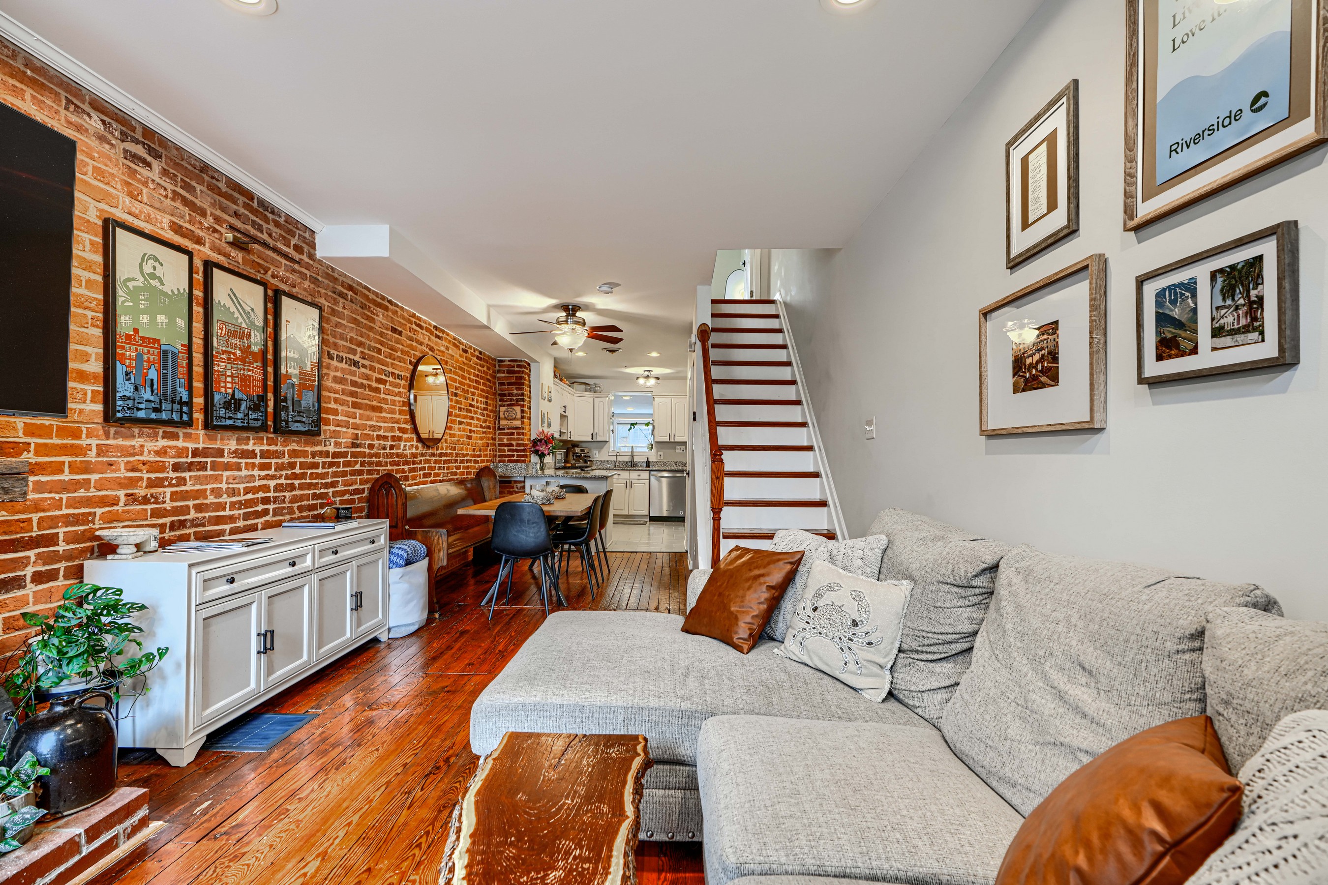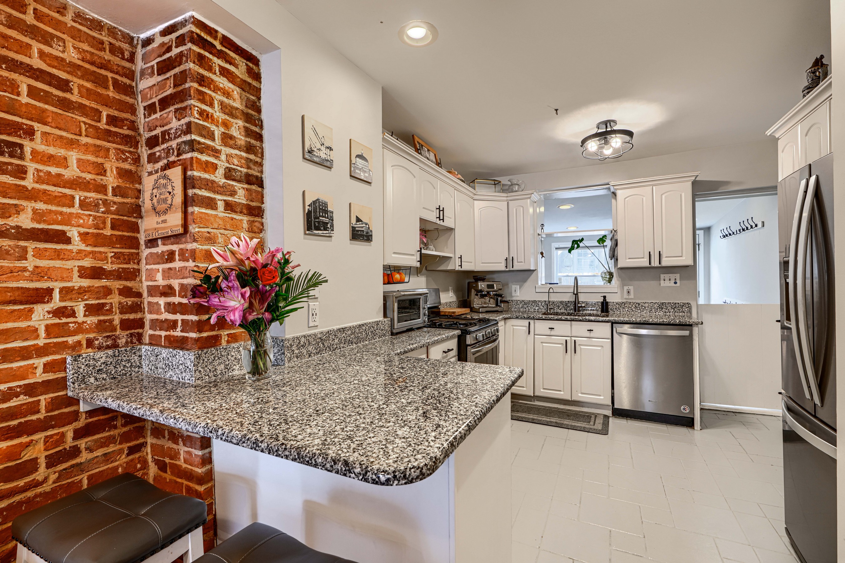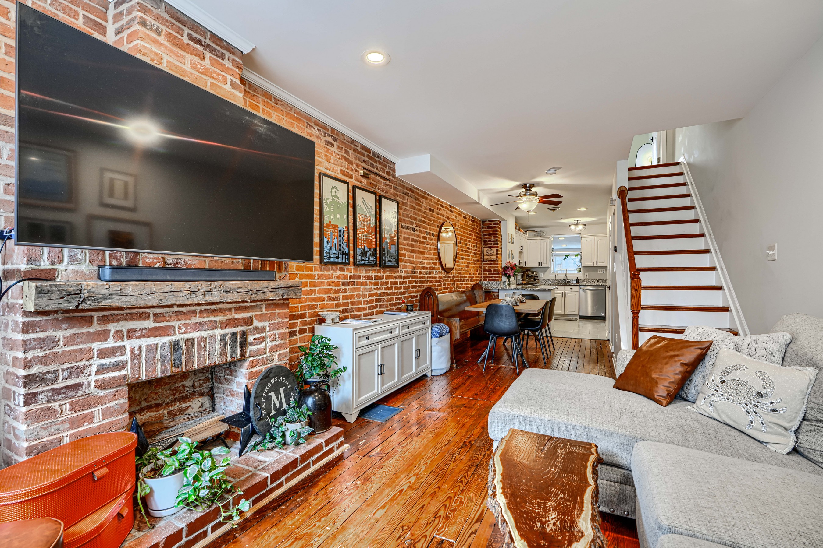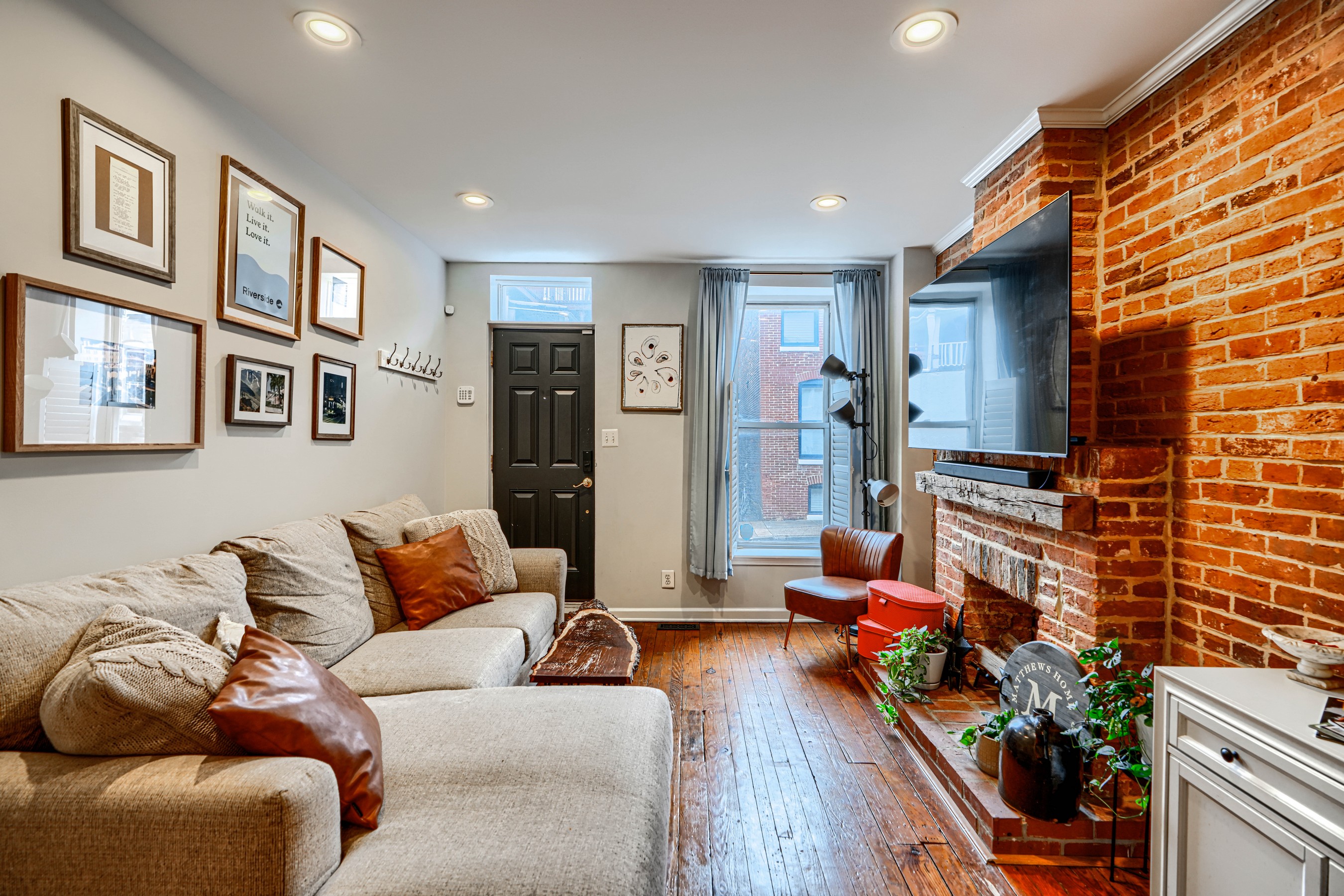 She's small but mighty! This charming 2BR/1.5BA Riverside rowhome has stunning rooftop views of the iconic Domino Sugar sign. Sweeping vistas of the harbor and city give a 360-degree view of downtown from sunrise to sunset! Steps from the waterfront, this rare gem is walking distance to Federal Hill, Riverside Park, and all that Locust Point has to offer! Fully updated with exposed brick, granite counters, stainless steel appliances, reverse-osmosis water filter, and front-loading W/D on the upper level. Bonus in-home office off the kitchen. Fireplace is decorative only. New water heater in 2025.