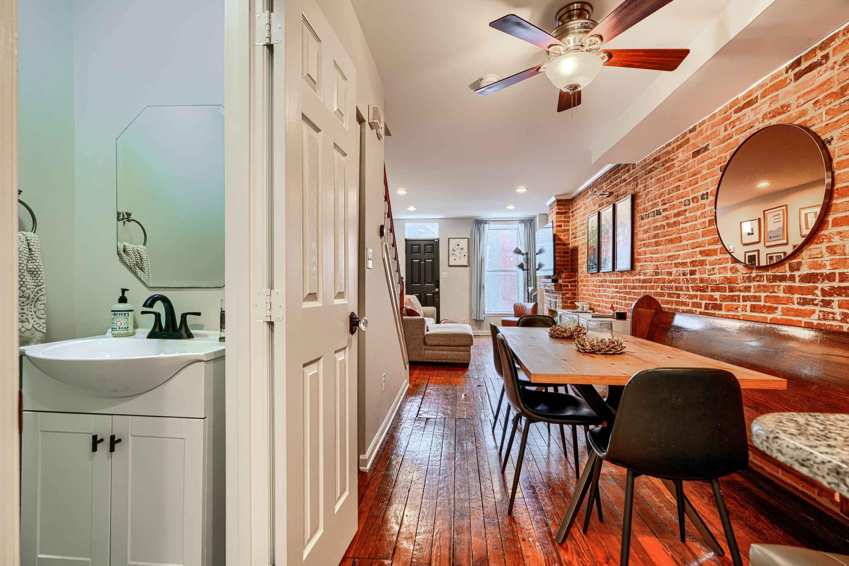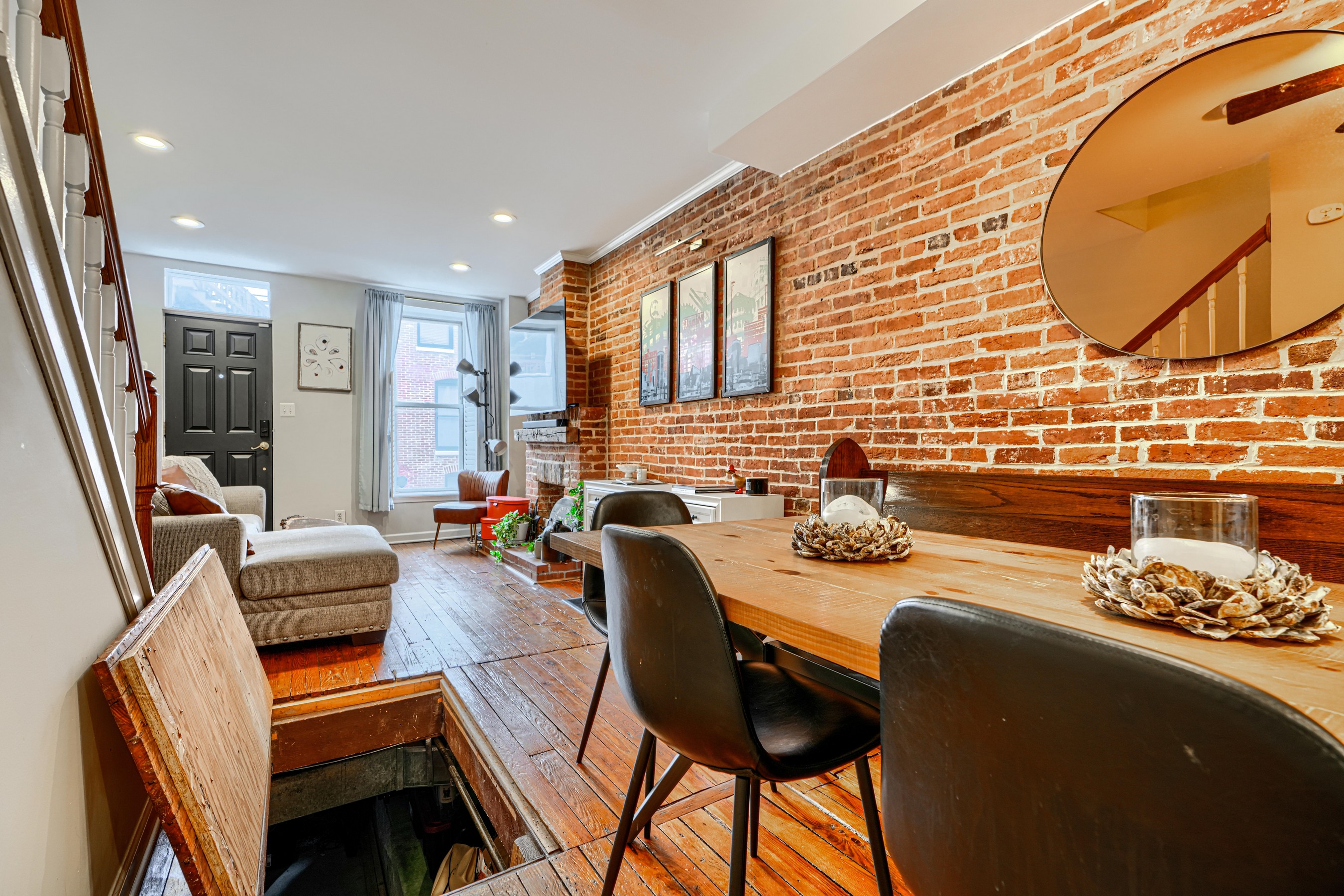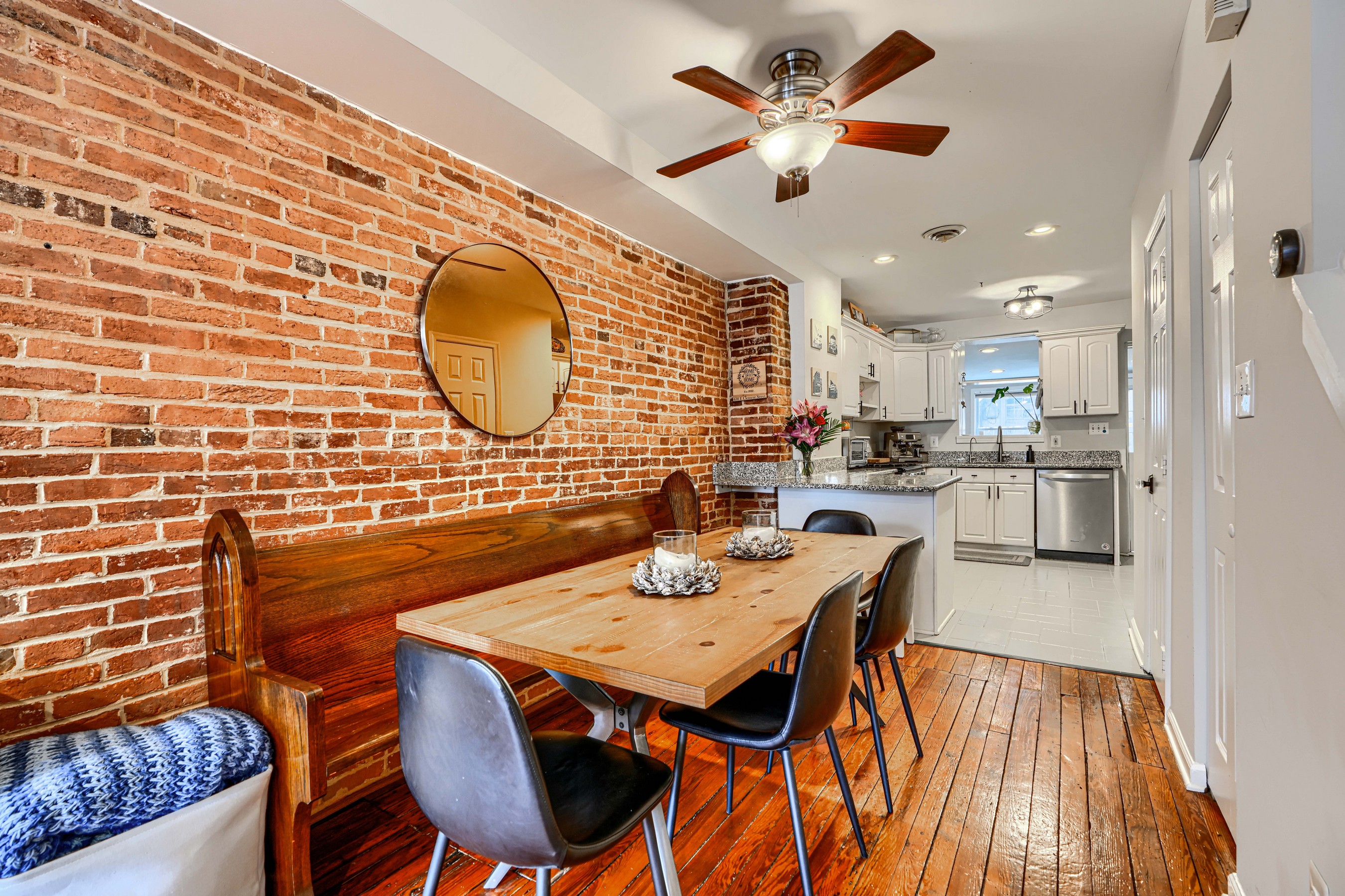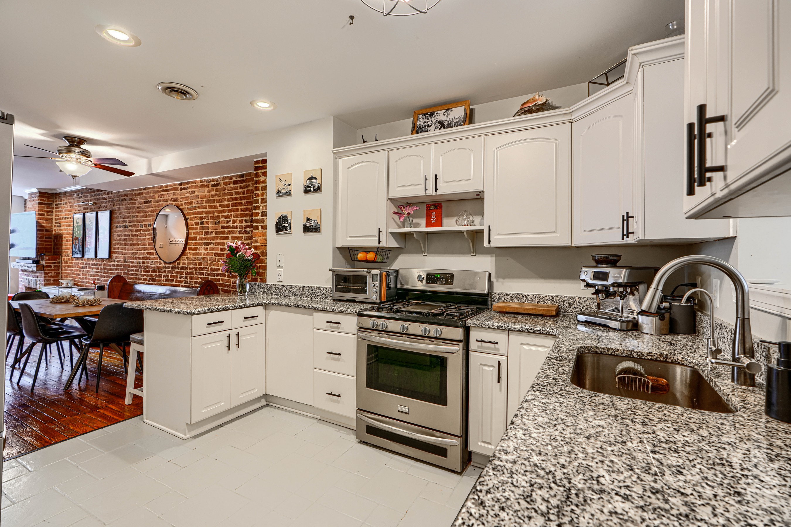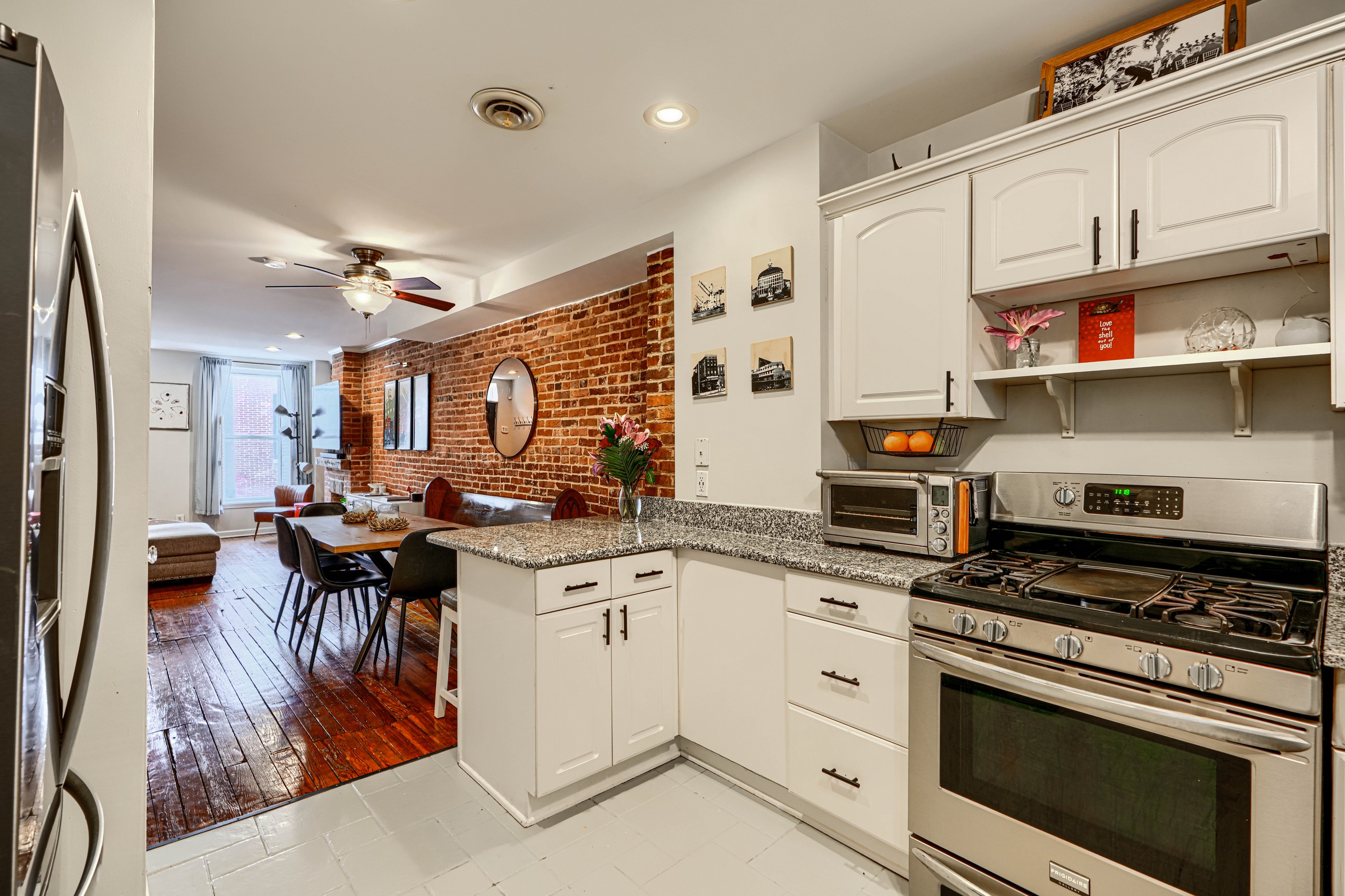 She's small but mighty! This charming 2BR/1.5BA Riverside rowhome has stunning rooftop views of the iconic Domino Sugar sign. Sweeping vistas of the harbor and city give a 360-degree view of downtown from sunrise to sunset! Steps from the waterfront, this rare gem is walking distance to Federal Hill, Riverside Park, and all that Locust Point has to offer! Fully updated with exposed brick, granite counters, stainless steel appliances, reverse-osmosis water filter, and front-loading W/D on the upper level. Bonus in-home office off the kitchen. Fireplace is decorative only. New water heater in 2025.