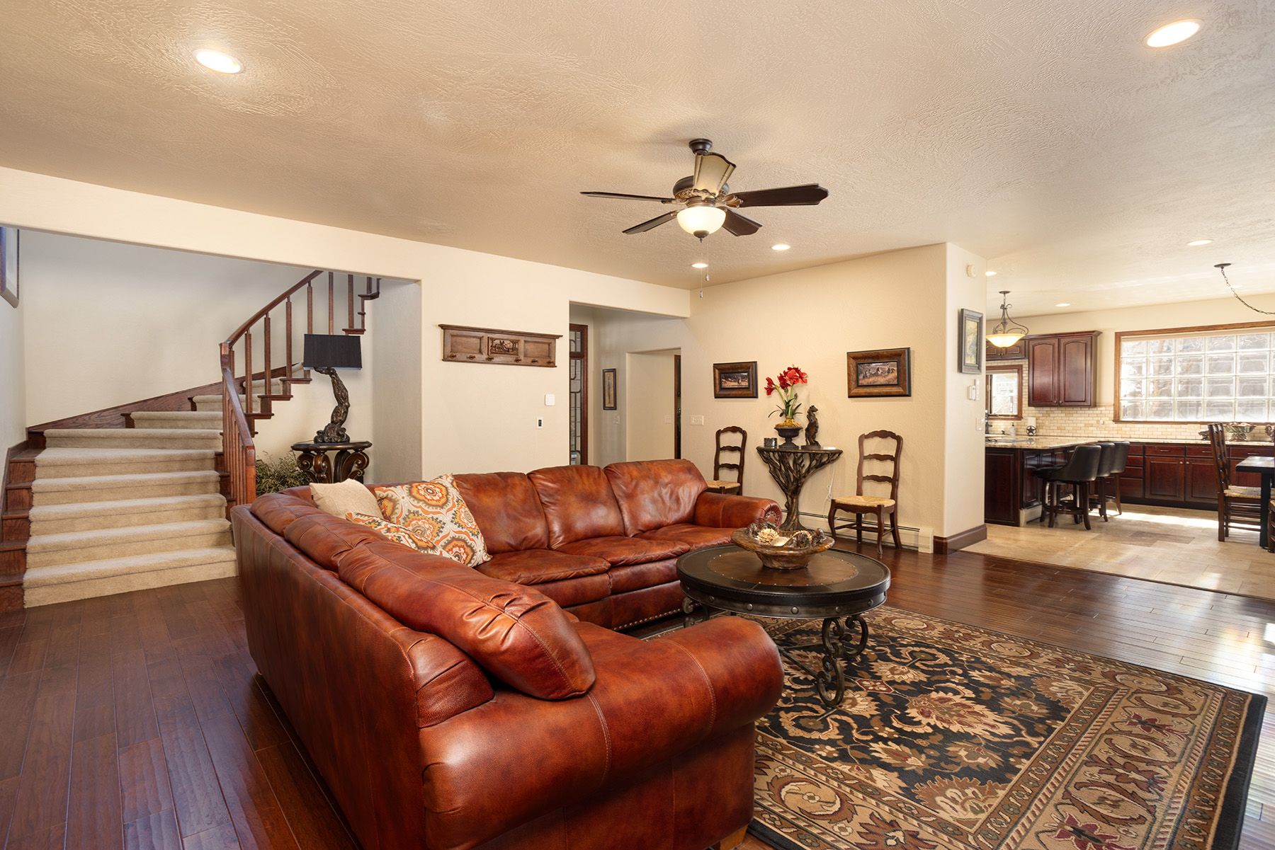 Experience the ultimate Dalton Ranch lifestyle in this spacious quality built home set in the Animas Valley with stunning views along the 6th hole of the Dalton Ranch Golf Club. Featuring two spacious living areas which are separated by a double sided stacked stone fireplace with base board radiant heat creating warmth and ambiance throughout the home. One of the living spaces serves as a dedicated entertainment room featuring a convenient wet bar, making it the perfect setting for hosting friends and family. An abundance of windows bring in natural light and showcase the scenic golf course setting. The spacious kitchen features granite slab counter tops, travertine tile flooring, a full side by side Sub-Zero refrigerator and freezer offering so much space for cooking and gathering. Beautiful wood flooring flows throughout much of the home. A convenient main level primary suite, the totally remodeled bathroom includes a walk-in shower and lots of built-in storage. Upstairs, a versatile loft area provides additional flexible space ideal for a reading nook, home office, or lounge. The upper level includes three bedrooms, one bedroom with a private ensuite totally remodeled bathroom featuring double sinks and a large walk-in shower. The two additional bedrooms share an ¾ bathroom nearby. Ductless air conditioning in every room downstairs, upstairs has ducted air conditioning except for the upstairs ensuite which has it own split unit for extra comfort. Several thoughtful improvements were completed in 2017, including main level all new wood flooring and new travertine tile, new granite counters and most appliances, all new bathrooms, ductless air conditioning throughout the home, epoxy flooring in the garage and a new roof. The oversized heated garage offers plenty of room for storage, a work area, or space for a golf cart—perfect for enjoying the golf course lifestyle. With peaceful golf course views and a large covered wrap around Trex deck, this property offers the perfect place to relax outdoors, entertain guests, and enjoy watching golfers pass by while taking in the beautiful surroundings. Thoughtfully designed with wonderful indoor and outdoor gathering spaces, this home embodies the relaxed Colorado lifestyle in one of the area’s most desirable communities just north of Durango. Living in Dalton Ranch means easy access to the clubhouse at Dalton Ranch Golf Course, where membership options provide golf, swimming, tennis, pickleball, fitness center. and scheduled social activities. Just across the road you’ll find the relaxing Durango Hot Springs Resort & Spa, along with convenient stops like PJ's Gourmet Market and Trimble Hardware.