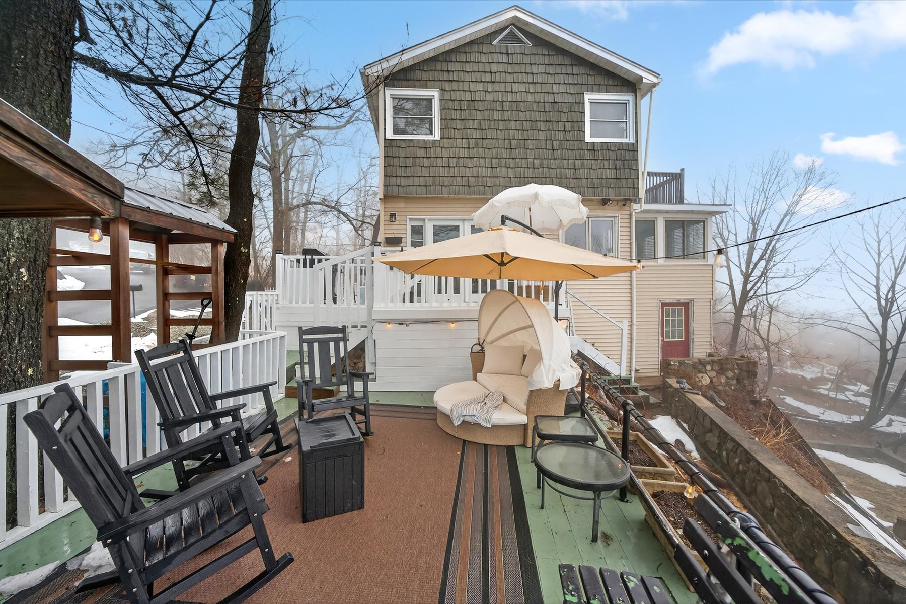 173 Brook Trail captures the essence of this authenticity with its stone fireplace, sunroom office with sweeping views, stargazing balcony and expansive deck space for grilling, lounging and recharging in the Swedish outdoor sauna. Complete with 3 bedrooms, a remodeled kitchen with quartz countertops, recent upgrade of central air and spilt units, and a brand-new furnace (just installed this March) the house is move-in ready or turn-key as a STR, which it is currently permitted for. Included in the sale is neighboring 179 Brook Trail. Previously home to a seasonal cottage that was recently removed, the .65 acre-property has an existing well and septic. Architectural plans for a proposed new home are available.