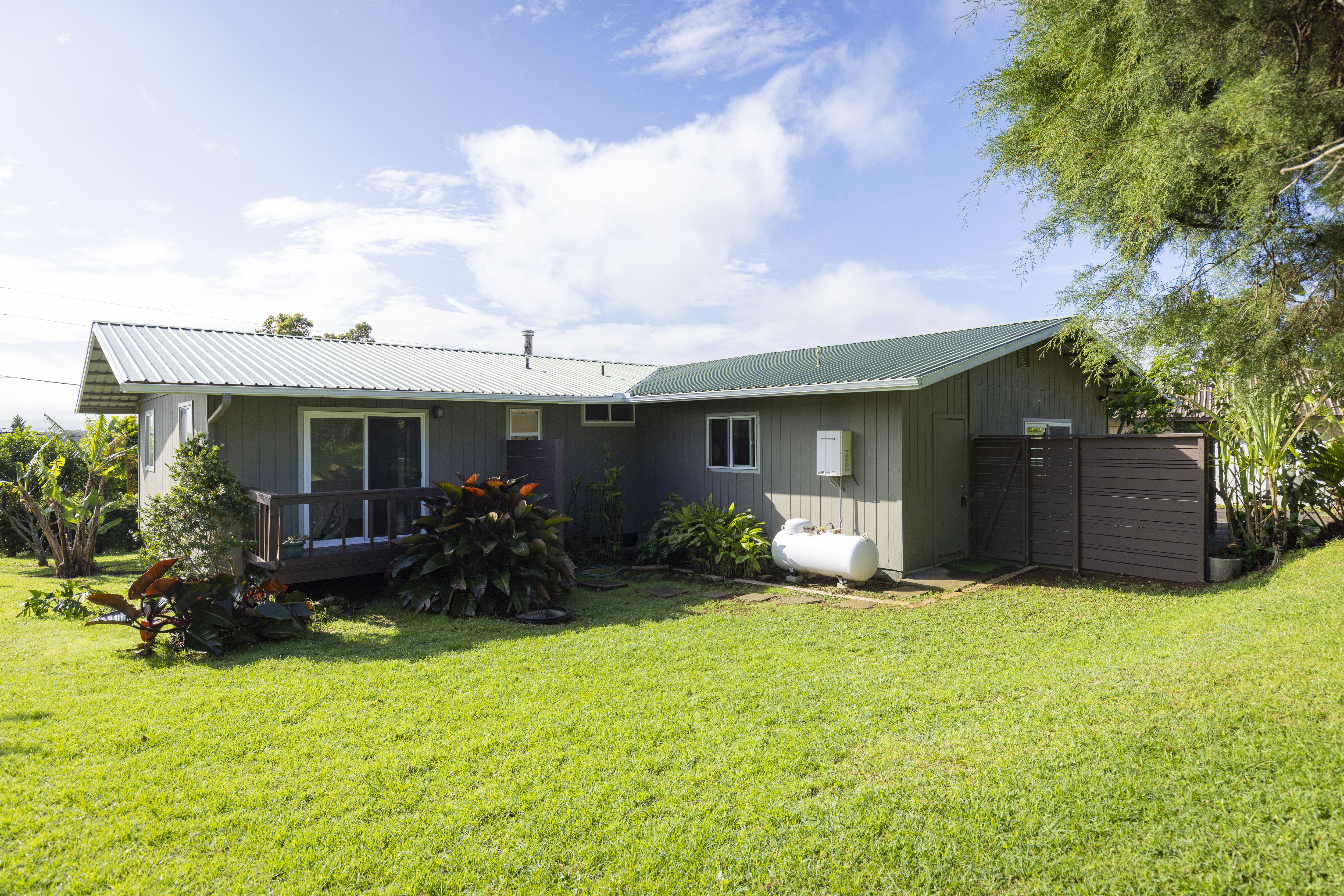 Located on Kipahele Street in Waimea on Hawaiʻi Island, this fee simple property offers flexible living space, mountain views, and a spacious yard on a 12,141 square foot lot. The main residence provides 1,144 square feet of interior living area with three bedrooms and two bathrooms. Large sliding doors in two of the bedrooms open directly to the partially covered lanai, creating an easy indoor outdoor connection and framing views of Mauna Kea or the surrounding garden.The lanai looks across a private backyard designed for quiet outdoor time, gardening, or gatherings. Mature landscaping includes native ʻōhiʻa trees, banana plants, and tropical ornamental plantings that add color and shade throughout the property. The outdoor space offers room for garden beds, seating areas, or additional landscape design while enjoying the cool upcountry climate that makes Waimea a sought after location on Hawaiʻi Island.A 480 square foot converted garage expands the usable space with one bedroom, one bathroom, and its own kitchen. Separate access allows for a range of living arrangements such as extended household use, guest space, or a private work or hobby area. The layout supports both privacy and independence depending on how the space is used.Established plantings and mature trees help create natural privacy while maintaining views toward Mauna Kea.Waimea is known for its open landscapes, ranching heritage, weekly markets, and access to schools, dining, and daily services. From this location, residents can reach the Kohala Coast beaches, Waimea town center, and outdoor recreation areas while returning home to a peaceful residential setting.This property combines flexible interior space, established landscaping, and mountain views in a cherished community on Hawaiʻi Island.*un-permitted improvements: converted garage including kitchen and bath was added prior to seller's ownership and does not match county records.