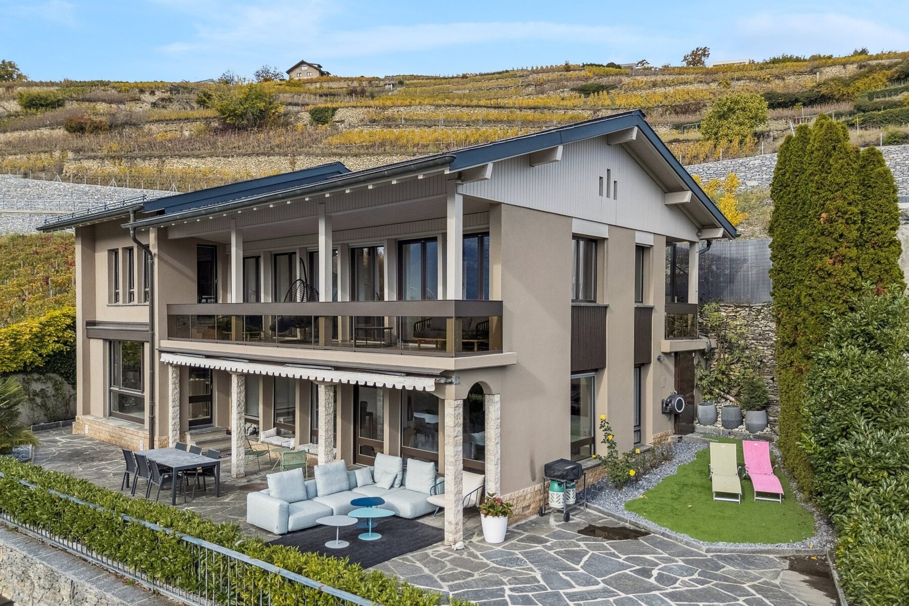 Views over the castles and the town of Sion Project offering 2 additional bedrooms and a swimming pool! Completely renovated Solar panels South-facing, optimal brightness Spacious terrace and balcony A few minutes' walk from the town center A large garage and carport built of natural stone complete this property.