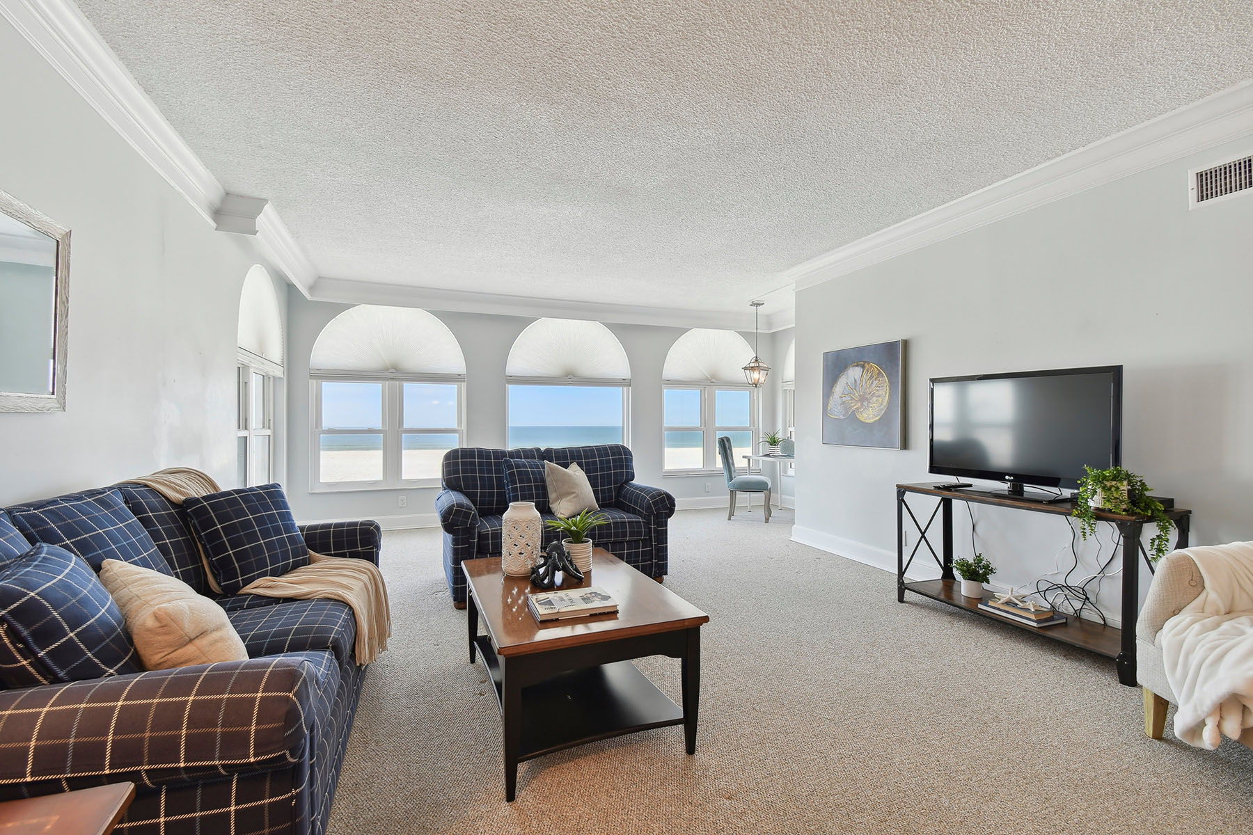 Live the coastal lifestyle you've been dreaming of in this elegantly upgraded beachfront condominium in prestigious Beau Monde on St. Pete Beach. Unit #206 combines privacy, sophistication and resort-style amenities, making it the ideal full-time residence or seasonal escape. Go through a custom wrought-iron gated entry into an open-concept living space with soaring 10-foot ceilings and expansive hurricane-impact arched windows fitted with custom Hunter Douglas shades. The airy layout seamlessly connects the spacious living and dining areas, creating an environment for entertaining or relaxing beachside. The kitchen features high-end stainless steel appliances, marble countertops, a generous breakfast bar and abundant prep space, ideal for home cooks and entertainers alike. The primary suite offers panoramic views of St. Pete's iconic sugar sand beaches, a large walk-in closet, and an en-suite bath complete with granite counters and a beautifully tiled walk-in shower. Thanks to the unit's west-facing orientation, enjoy breathtaking sunsets from almost every room. Key features include direct beach access, private (covered) top-floor parking spot, dedicated storage closet, hurricane shutters and custom Hunter-Douglas window treatments, and a successfully passed milestone inspection including a recent $2 million building-wide update (2017). Residents of Beau Monde enjoy exclusive access to an array of upscale amenities including a heated beachfront saltwater swimming pool, fully equipped (will be new as of 2026) fitness center and sauna, tennis and pickleball courts, clubroom, shuffleboard, on-site manager, multiple indoor and outdoor sitting areas, a call-box for added security and a unique open-air atrium. Conveniently just minutes from Gulf Boulevard's top-rated restaurants, beach bars and boutique shopping. St. Pete Beach offers a vibrant lifestyle with year-round sunshine and entertainment opportunities. The building's rental policy allows 90-day minimums with an on-site property manager, ideal for homeowners looking for flexible use or long-term investment potential. Whether you're seeking an iconic beachfront home or a high-end vacation condominium, unit #206 is a rare opportunity to own a slice of Florida's Gulf Coast paradise.