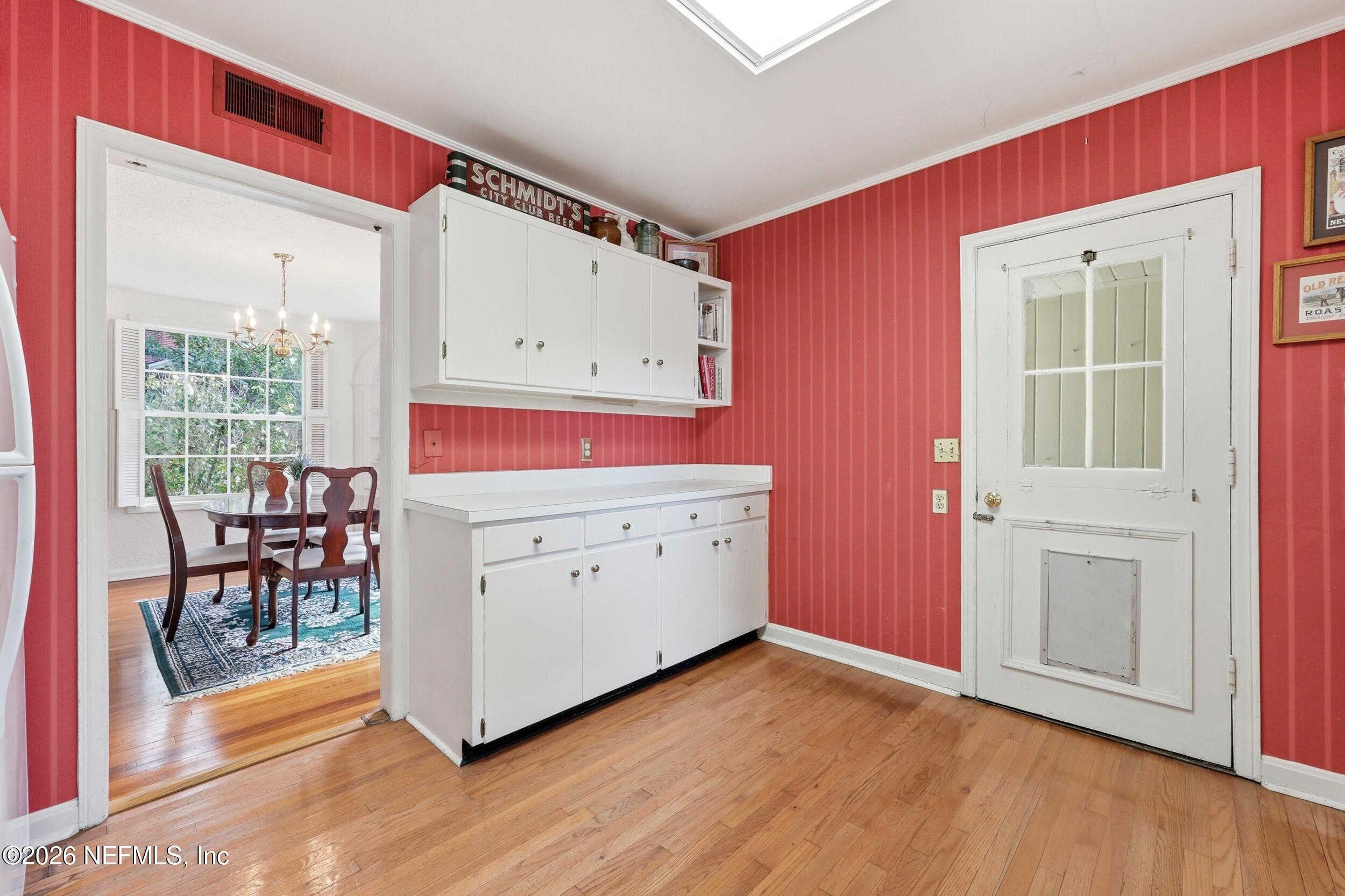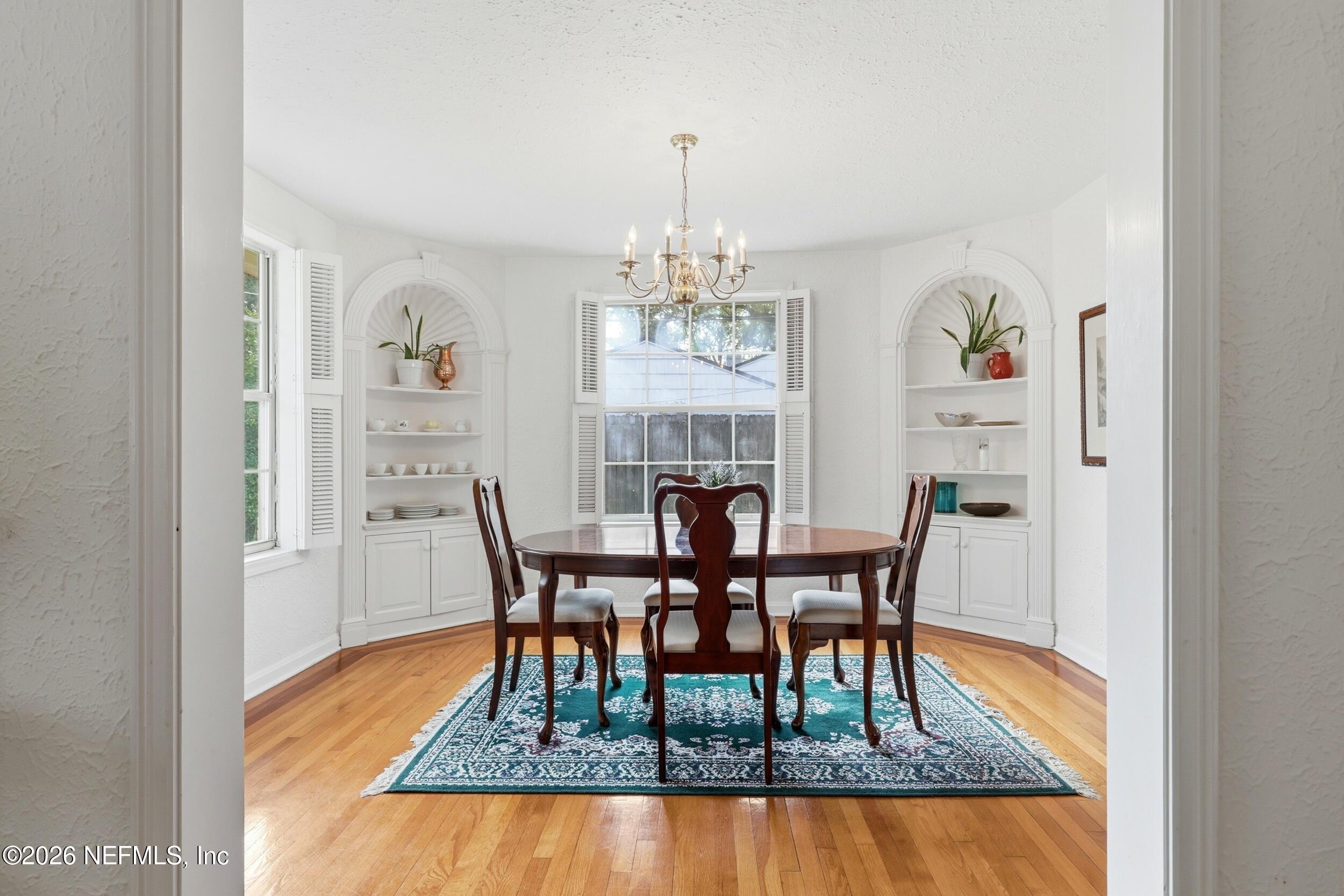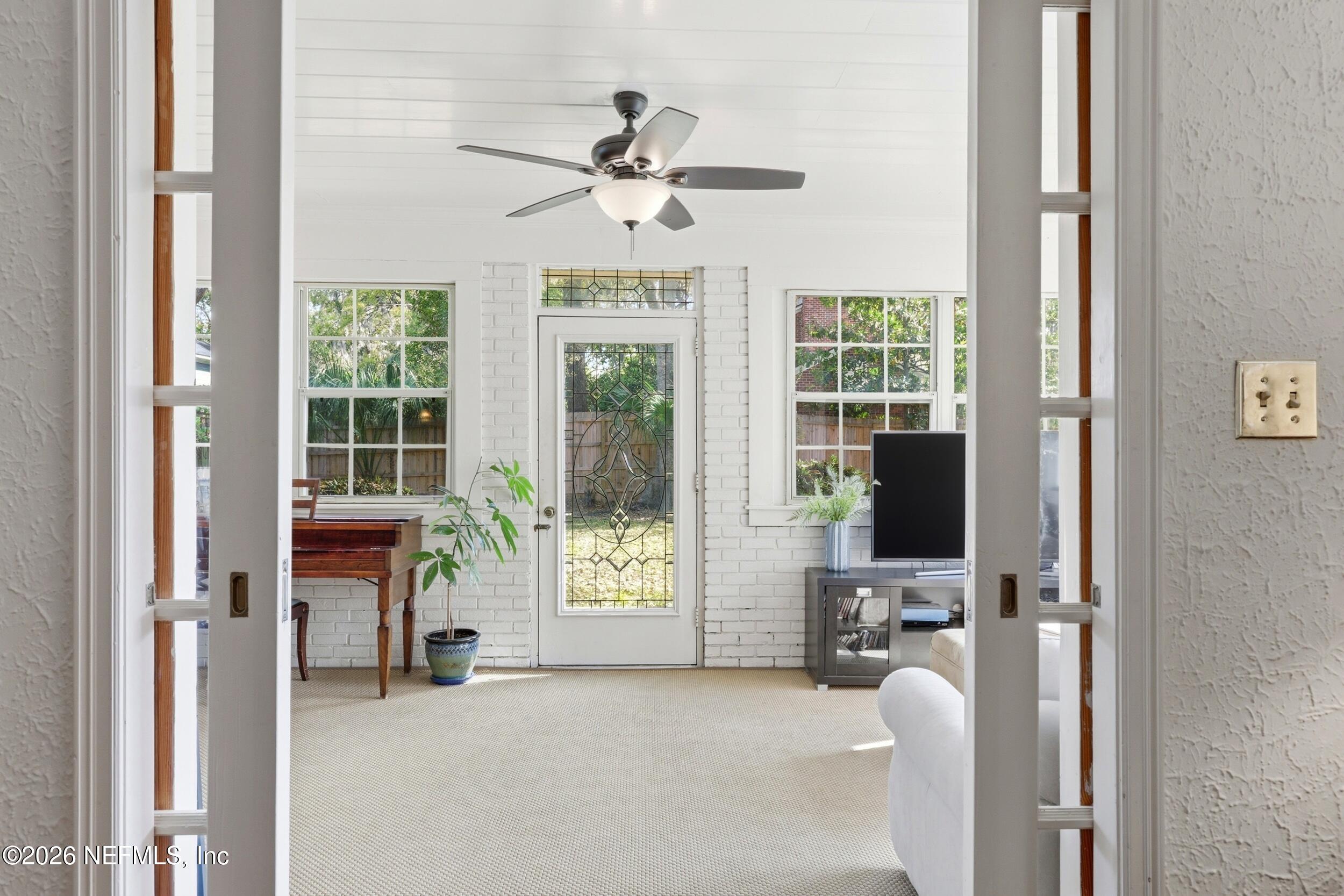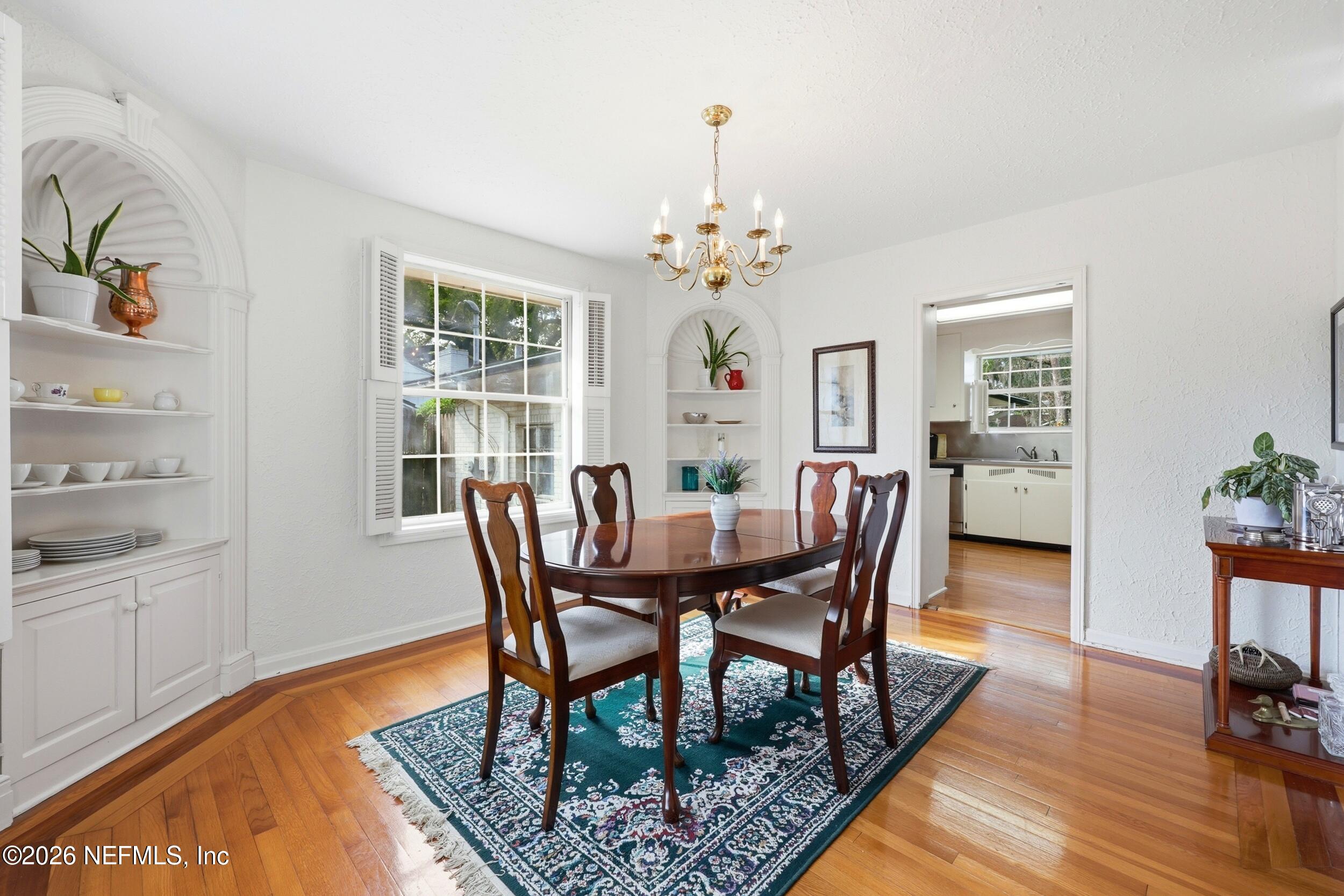 Nestled in the heart of Ortega Terrace, this one-story painted brick home blends classic character with comfortable living. Offering 1,808 sq ft, this 3-bedroom, 2-bath home is ready for new owners. A welcoming foyer opens to a spacious living room with a cozy fireplace, perfect for gathering and entertaining. The formal dining room showcases originally built-in corner cabinets. The inviting den overlooks the private backyard and provides direct outdoor access, creating an ideal space for relaxing or hosting guests. Beautiful oak flooring runs throughout the home. A convenient breezeway connects the house to a one-car garage with additional storage. Perfect for a buyer who is looking to put their own touches on the home.