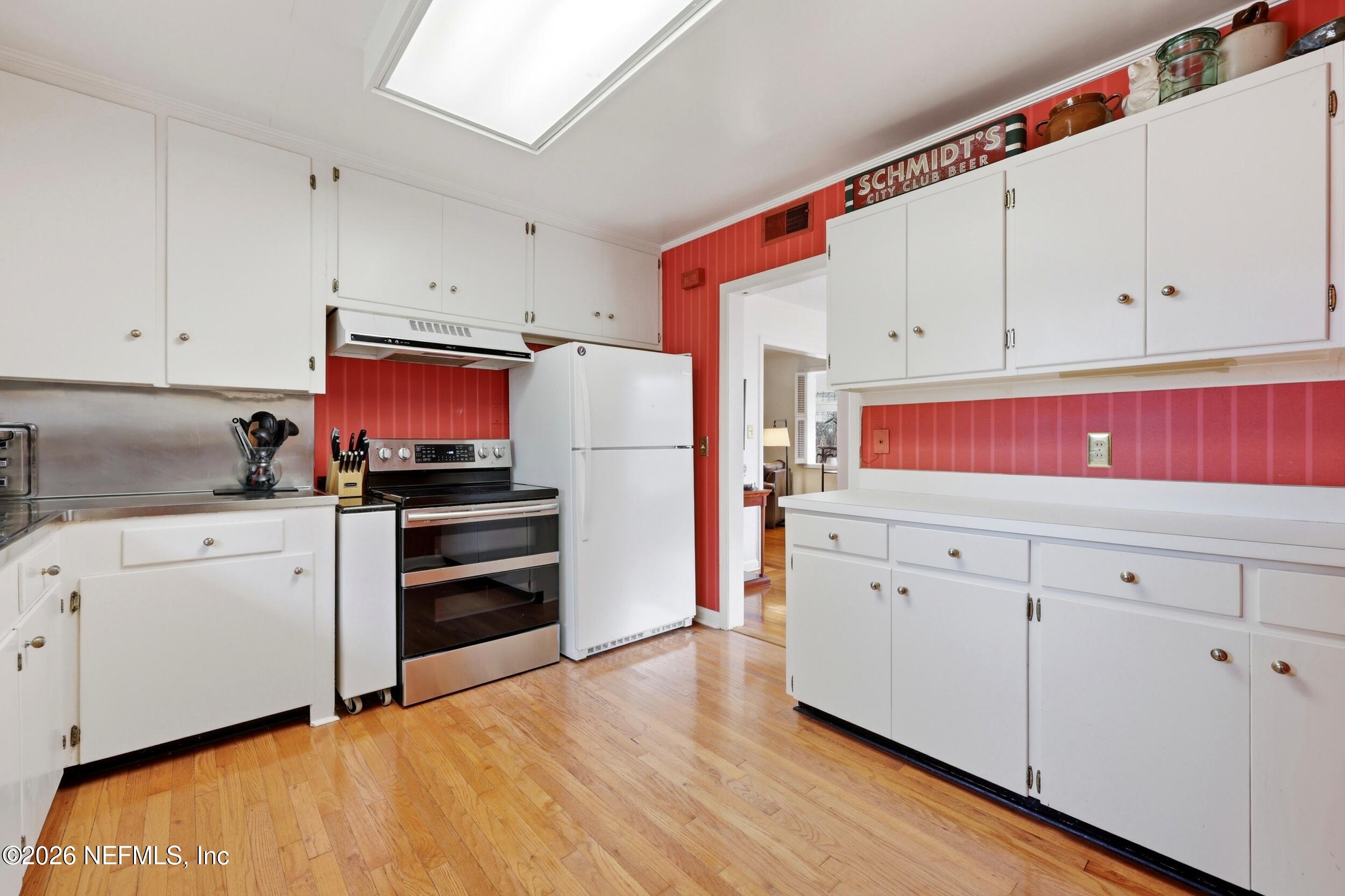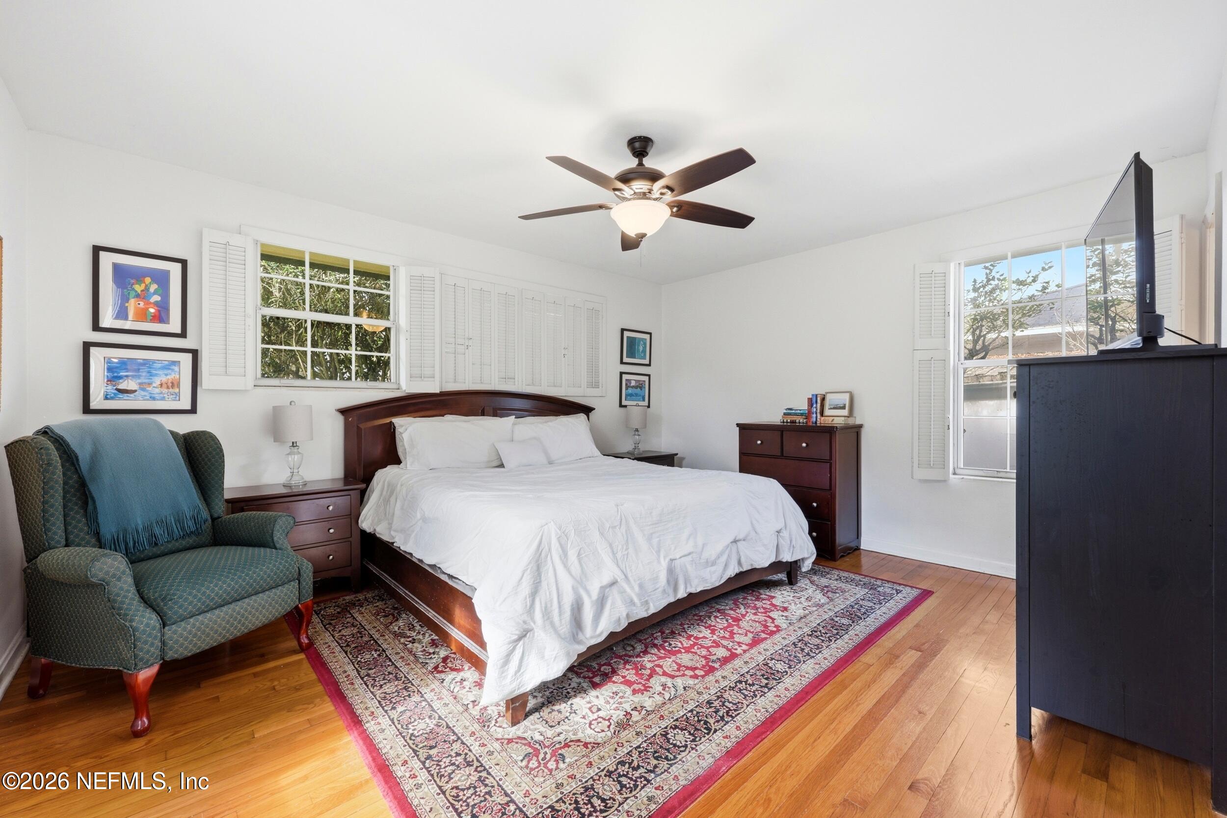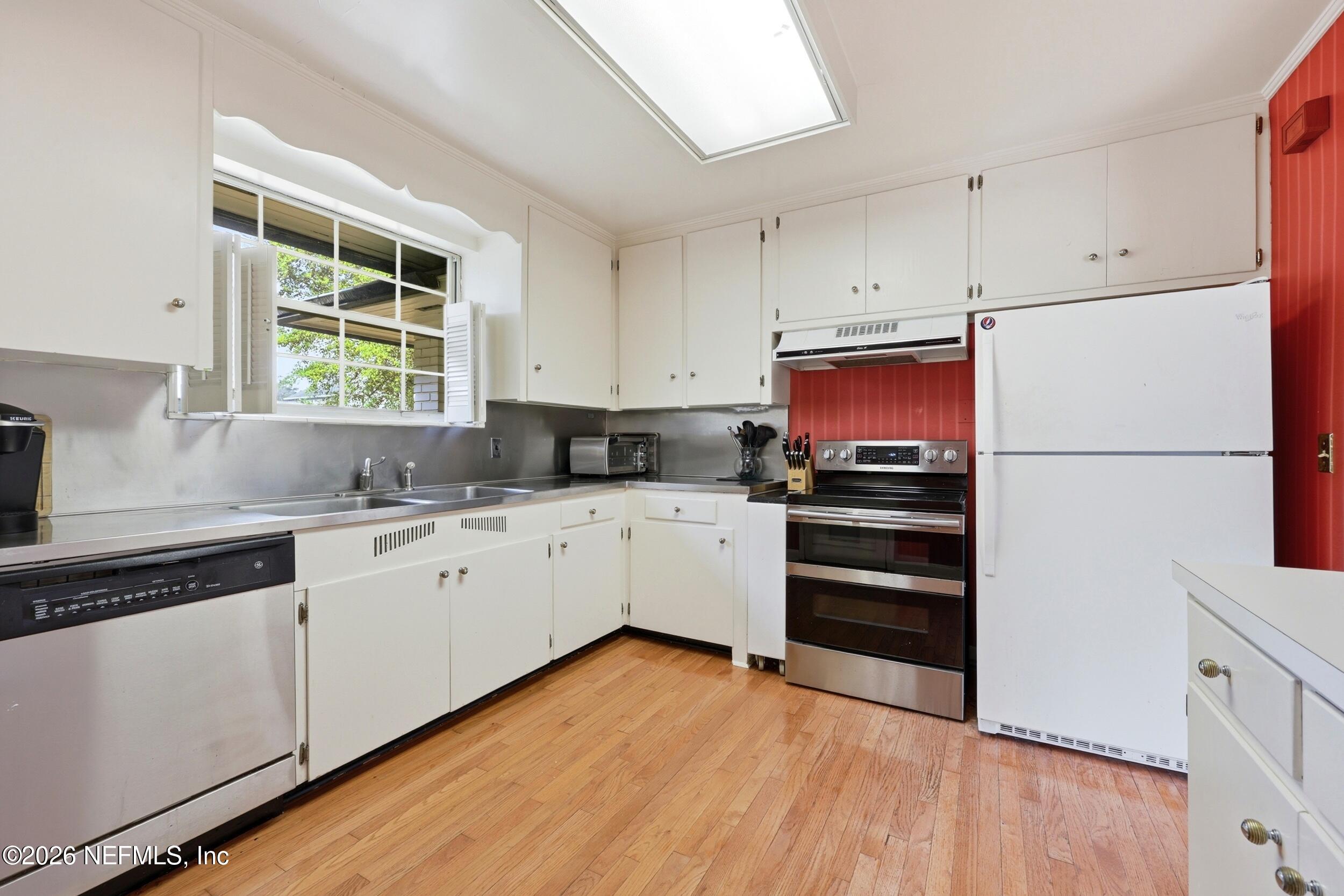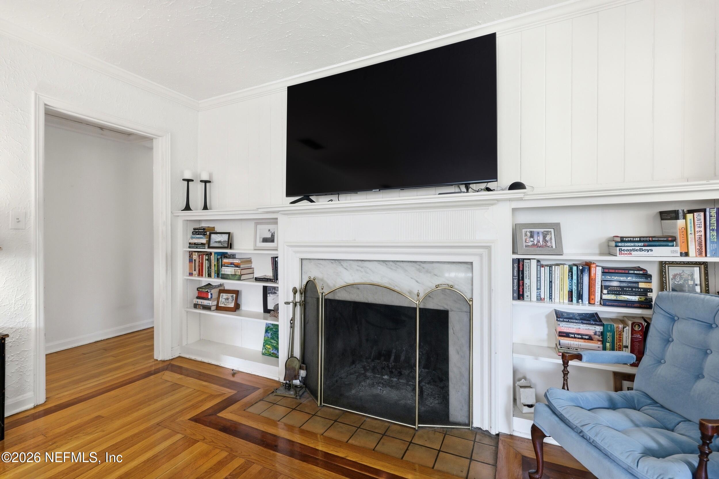 Nestled in the heart of Ortega Terrace, this one-story painted brick home blends classic character with comfortable living. Offering 1,808 sq ft, this 3-bedroom, 2-bath home is ready for new owners. A welcoming foyer opens to a spacious living room with a cozy fireplace, perfect for gathering and entertaining. The formal dining room showcases originally built-in corner cabinets. The inviting den overlooks the private backyard and provides direct outdoor access, creating an ideal space for relaxing or hosting guests. Beautiful oak flooring runs throughout the home. A convenient breezeway connects the house to a one-car garage with additional storage. Perfect for a buyer who is looking to put their own touches on the home.