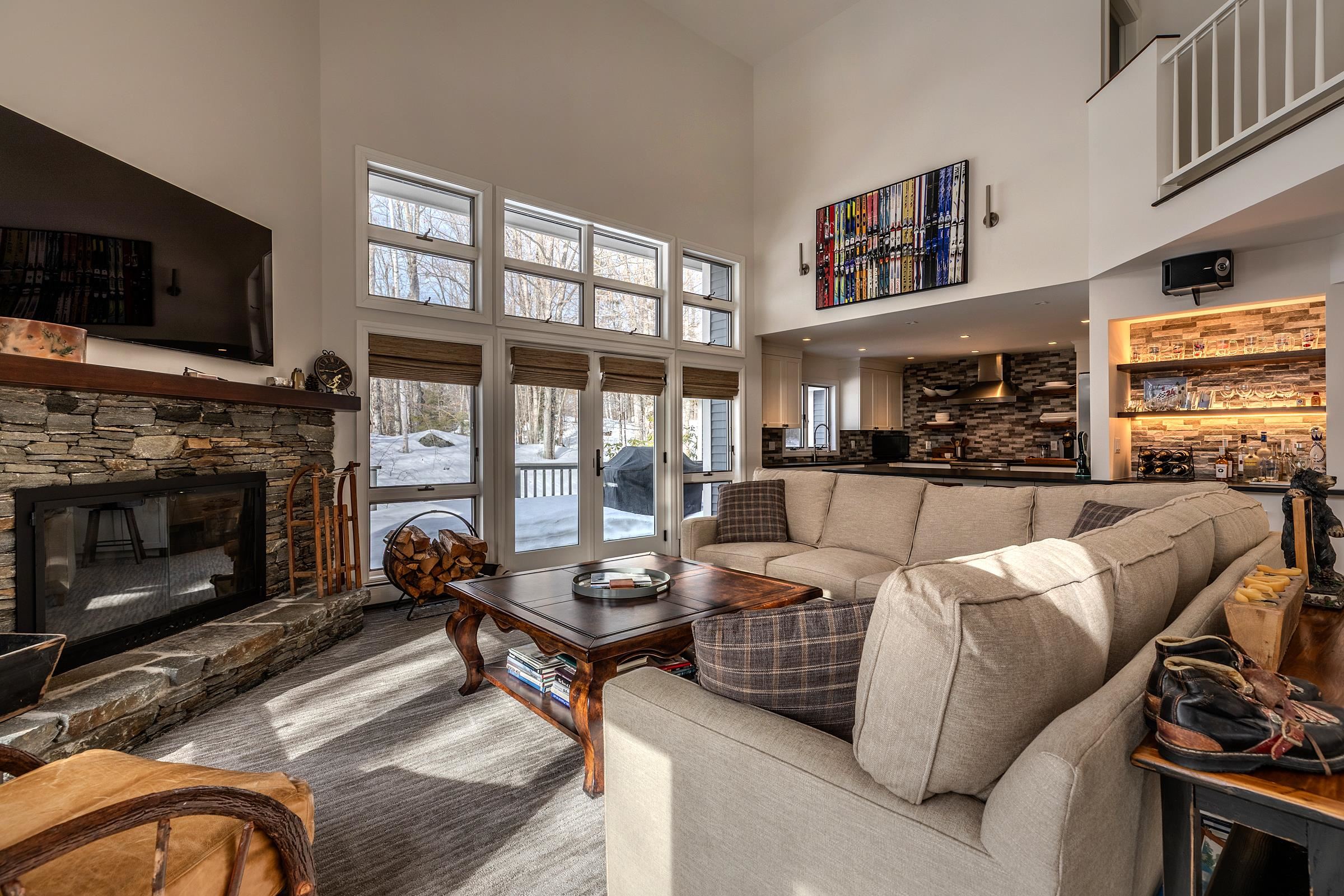 Welcome to this exceptional Stratton contemporary, perfectly positioned just minutes from the Stratton base lodge while nestled in a quiet and private neighborhood setting. Meticulously maintained and thoughtfully updated, this home offers the ideal blend of comfort, sophistication, and mountain lifestyle living. Designed for both relaxation and entertaining, the open-concept floor plan creates a seamless flow throughout the main living spaces, ensuring everyone can gather with ease. Two spacious living areas provide wonderful flexibility for hosting family and guests, making this home perfect for year-round enjoyment. The beautifully updated kitchen reflects the owners' careful attention to detail and craftsmanship, offering a wonderful space to cook, gather, and entertain. Expansive windows throughout the home fill the interior with natural light while capturing seasonal winter views of Stratton Mountain. At day's end, retreat to the luxurious primary suite, offering a private and serene sanctuary. Two additional upper-level bedrooms feature newly added ensuite amenities, providing comfort and privacy for family and visitors alike. The lower level expands the home's versatility with a generous family room, a world-class ski tuning room - easily convertible to a home gym - along with a bathroom, two bonus rooms, and the utility area. Recent exterior improvements further elevate the property and include a new roof, fresh exterior paint, a beautifully renovated garage, and a redesigned driveway. This house is equipped with a Generac Generator, there's radiant heat in the primary bathroom and don't forget the covered wood shed to keep your firewood dry. This remarkable Stratton property offers move-in ready convenience and an exceptional mountain lifestyle just moments from the slopes. Showings begin Saturday, March 14th from 1:00-4:00 PM.