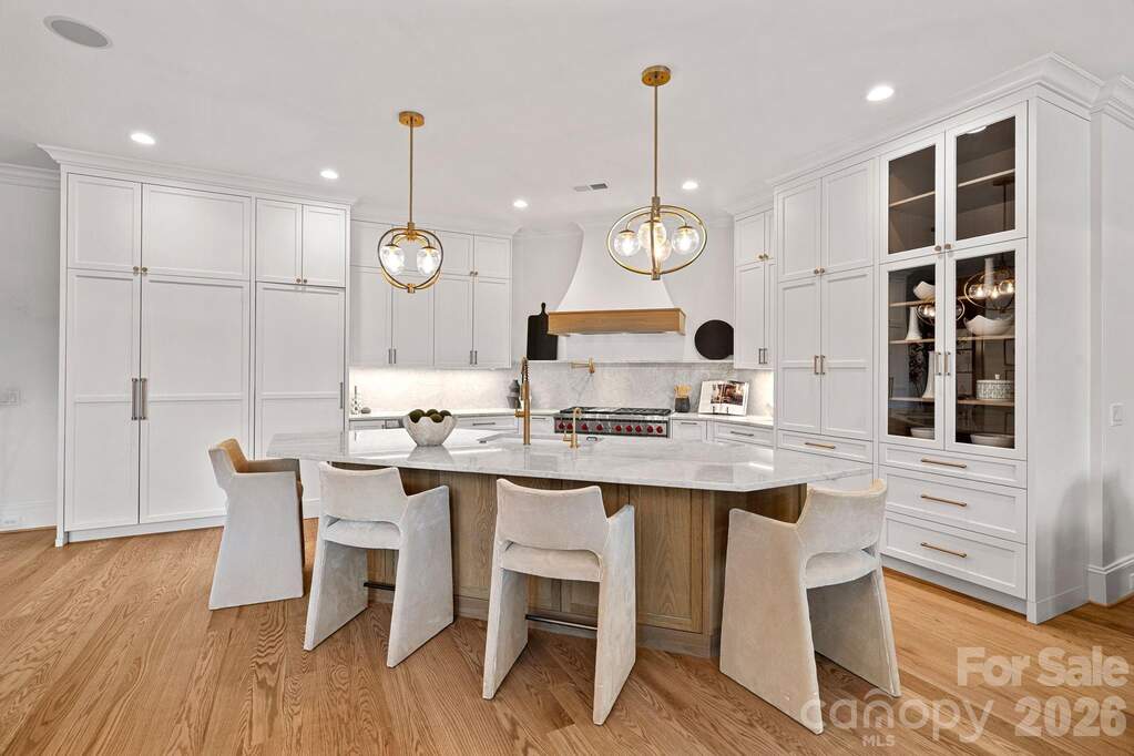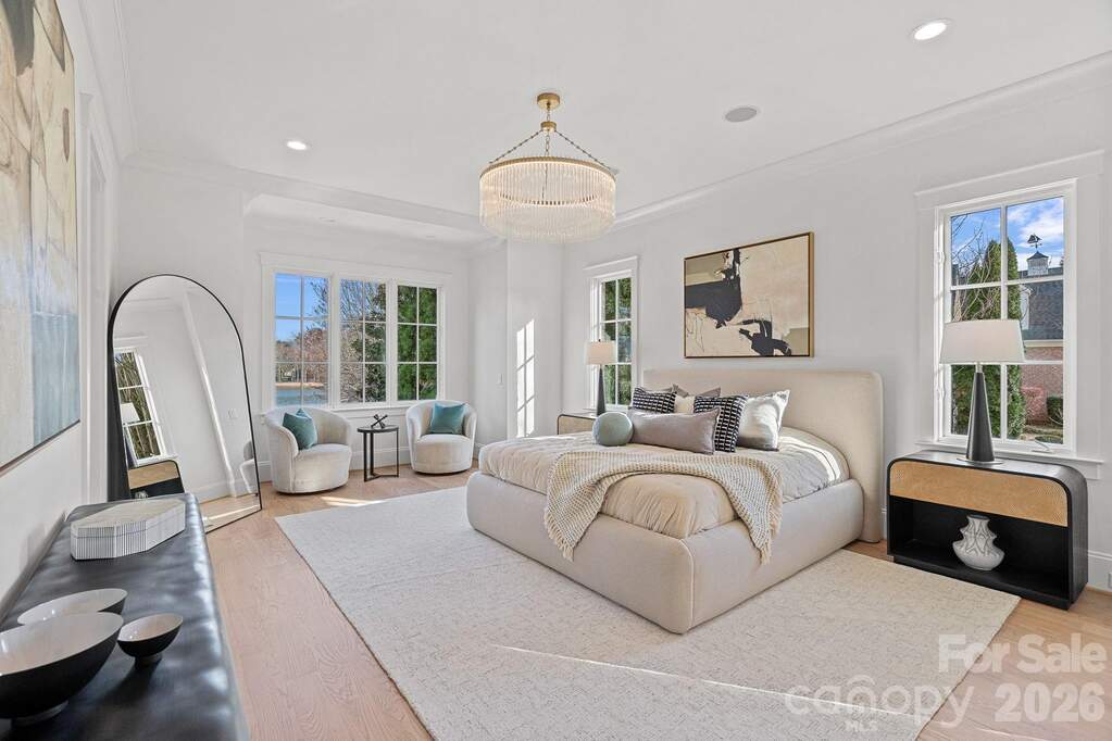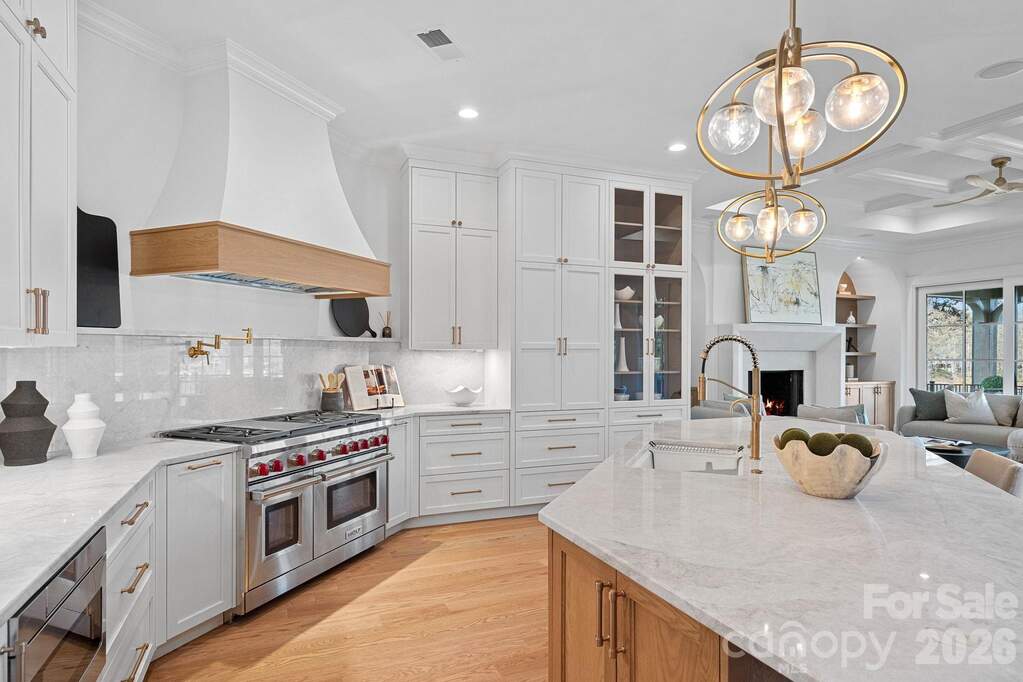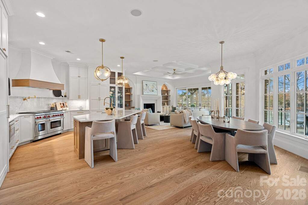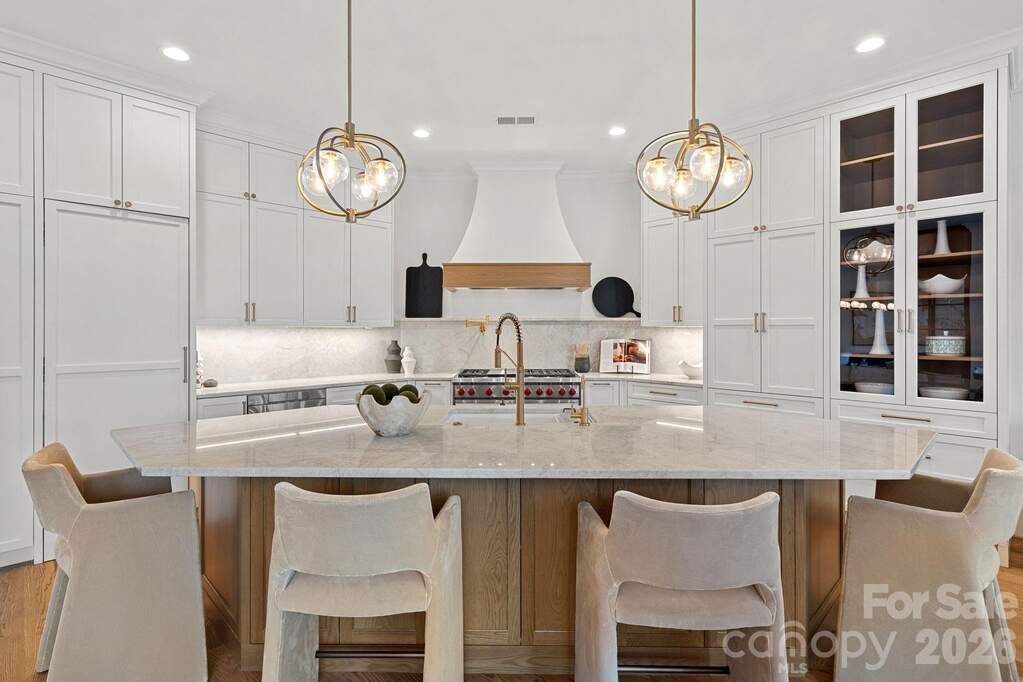 Witness the ultimate transformation of waterfront living in this four-bedroom estate that lives as a five-bedroom, all with en suites. Masterfully reconstructed by Cypress Builders in 2026, no original detail was left untouched in this premier estate. Located in a highly sought-after neighborhood at The Point, every inch of this property has been reimagined with high-end designer finishes by award winning Michelle McKoy Designs. The exterior sets a sophisticated tone with a fresh exterior palette, leading to a modern Optima iron double front door. The renovation integrated state-of-the-art systems throughout, including 2 NEW furnaces, NEW whole house humidifier, 2 NEW water heaters and more, ensuring the home functions as flawlessly as it looks. The main level is a masterclass in modern luxury, anchored by new 5-inch oak hardwood flooring and a grand staircase featuring modern iron balusters and a high end sputnik chandelier. The chef's kitchen serves as the heart of the home, boasting floor-to-ceiling custom cabinetry, Taj Mahal Quartzite countertops with matching backsplash, and a massive white oak island anchored by chic global pendants. This culinary space is equipped with professional-grade Sub-Zero and Wolf appliances, including a commercial 48-inch gas range and a hidden Scullery featuring Miraggio Cove quartz counters, stylish floor to ceiling cabinets, an icemaker, beverage refrigerator and a second dishwasher. The open-concept flow continues into a surround-sound wired great room featuring illuminated white oak arched built-ins, a bespoke mantle surrounding the fireplace, and a stone-covered balcony offering sweeping lake views through large sliding doors. The primary wing is a private sanctuary, featuring a spacious suite with a Maxim LED ring chandelier and direct access to the exterior stone patio. A true retreat, the ensuite offers radiant heated tile floors, dual white oak vanities, and a palatial glass shower. A sleek soaking tub anchored by an artfully tiled feature wall creates a designer focal point, leading into a massive custom closet that features a private laundry area and is beautifully illuminated by a designer chandelier. Functionality meets style in the secondary spaces, including a dedicated dog wash room with stylish tile and a full drop zone area. The upper level expands the living space with three additional ensuite bedrooms-each featuring stylish lighting, custom vanities and curated tile work-alongside a media room and an upper-level laundry suite. This media room is professionally wired with full surround sound speakers and features a leathered granite wet bar and beverage refrigerator for effortless entertaining. The lake level is designed for high-end entertaining, featuring a lounge that leads to an executive office clad in custom walnut paneling and an aged brass Sputnik lighting fixture. The heart of this level is a massive, open-concept space that seamlessly integrates a billiard area, a wine room, and a family room wired for surround sound with a modern gas fireplace. Serving this entire area is a secondary kitchen with Miraggio Cove quartz counters, custom cabinetry, and stainless appliances including a beverage fridge, ice maker, dishwasher, and microwave drawer. A serving window and door provide easy access to the covered patio and pool deck. Completing the lake level is a flex space/guest suite offering lake views, a walk-in closet, and a full bath with a herringbone-tiled shower and frameless glass door. Two expansive storage areas provide ample space for lakeside essentials. The transition to the outdoors is seamless, leading to a massive patio with a heated inground pool and spa with new equipment and flagstone coping. The property's lakeside amenities are unparalleled, featuring a private composite dock with a seating area, boat lift, dual jet ski ramps, and a stacked stone seawall with a lakeside fire pit, all situated on a wide, picturesque cove.