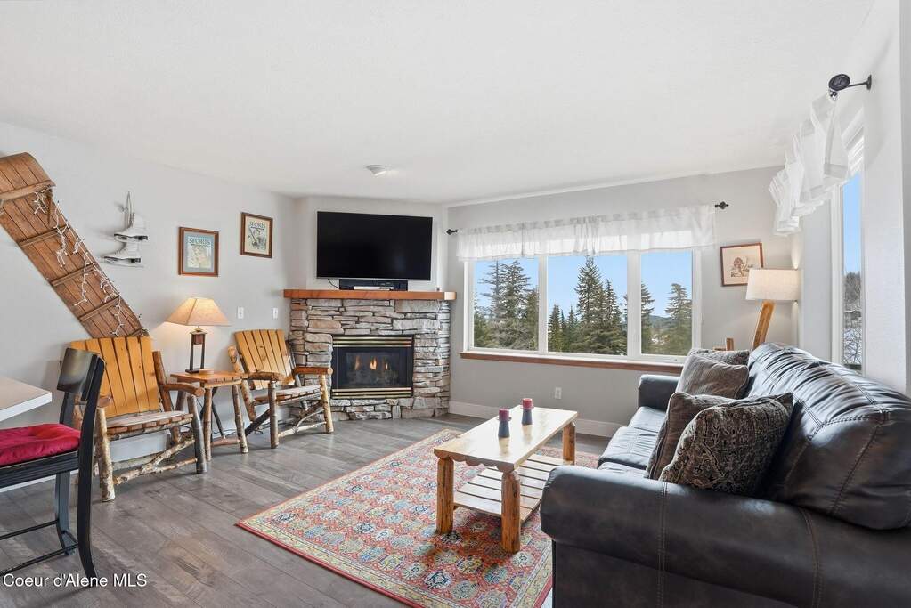 Enjoy true ski-in, ski-out living in this beautifully appointed second-floor mountain condo, offering an exceptional opportunity for both personal enjoyment and strong rental income potential--with the option to include all furnishings for a seamless, turnkey experience. This spacious residence blends comfort, functionality, and classic alpine charm. The thoughtfully designed open floor plan creates inviting living spaces ideal for relaxing or entertaining. A bright, open kitchen features a generous breakfast bar and flows seamlessly into the main living area, where a striking stone-accented gas fireplace and towering picture windows frame stunning panoramic views of the mountains and Lake Pend Oreille. A dedicated dining area enhances the home's open layout, while the spacious primary suite features a private en suite bath, complemented by two additional generously sized bedrooms. Additional highlights include an attached two-car garage, a private storage closet in the garage for the unit, a dedicated personal ski locker, and a private hot tub perfectly positioned to take in scenic slope views. Ideally situated just minutes from the Schweitzer lifts and village and within easy reach of downtown Sandpoint, this exceptional condo offers the perfect balance of mountain adventure, convenience, and investment potential.