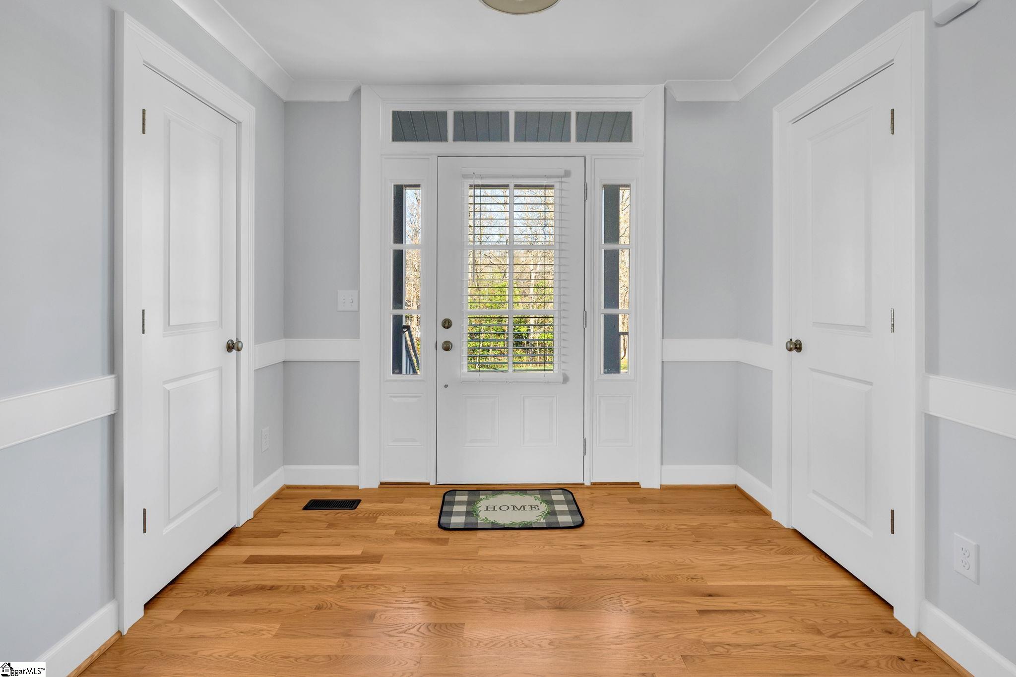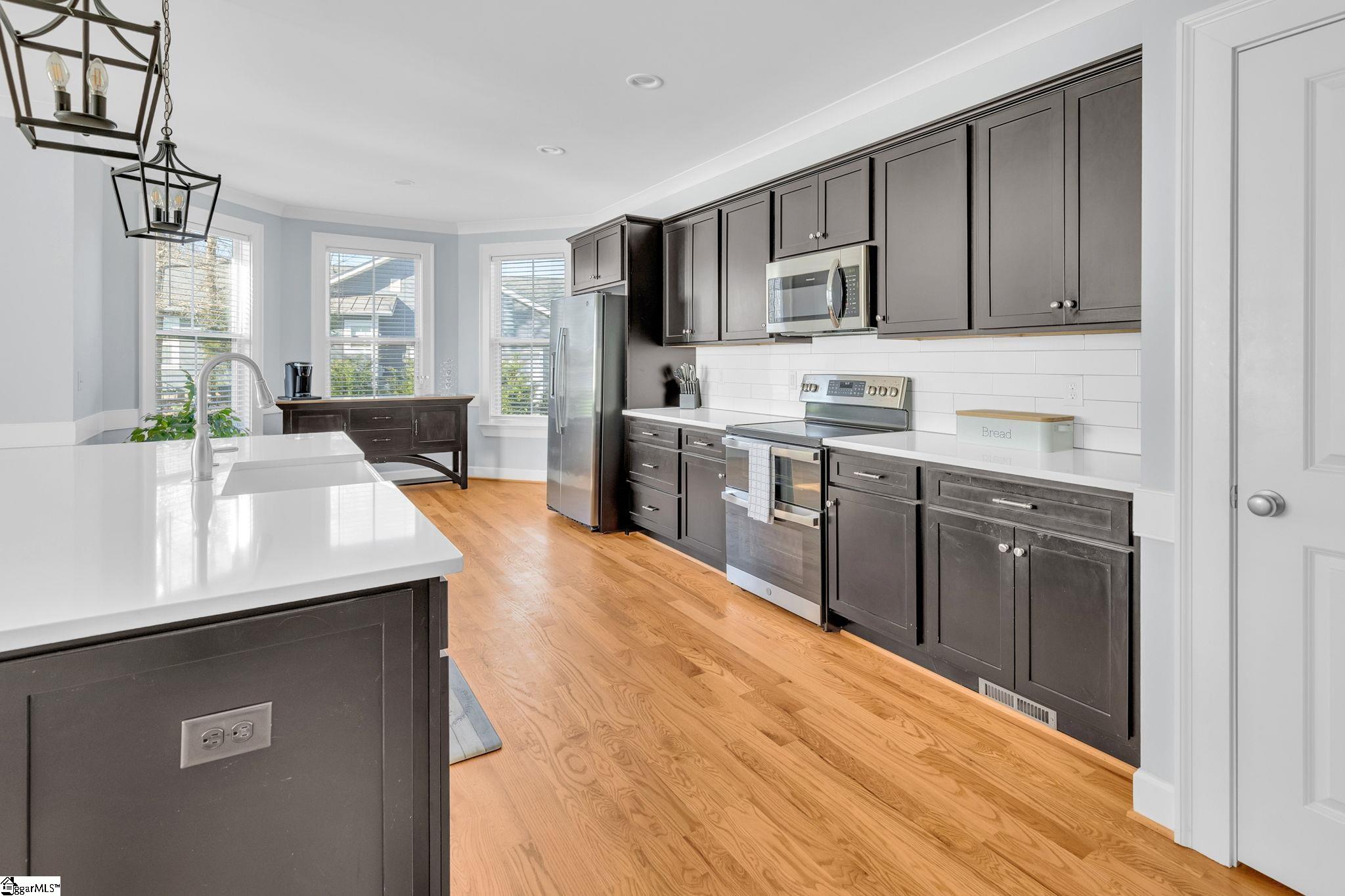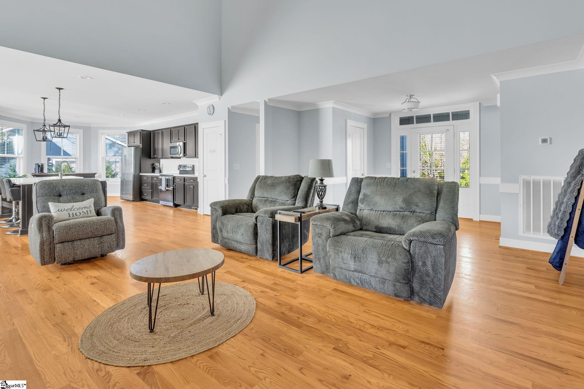 Welcome to 112 Lipizzaner Court in Pelzer, a custom-built home located in the desirable Saddlehorn community, where peaceful rural living meets an equestrian lifestyle. Situated on a 0.73-acre lot, this property offers over 2,800 sq ft, 4 bedrooms, and 3 bathrooms. The exterior features striking Iron Gray Masonite siding and an impressive 40-foot rocking chair front porch overlooking peaceful wooded views. Inside, a welcoming foyer opens to a bright open-concept living area with cathedral ceilings, hardwood floors, oversized windows, and a sleek black fireplace with custom wood mantel. Stylish sliding barn doors enhance the home's modern farmhouse design. The kitchen is beautifully appointed with black shaker cabinets, white quartz countertops, and a spacious island with ceramic farmhouse sink, brushed nickel fixtures, and bar seating. A breakfast area sits just off the kitchen, while the dining room provides access to a large screened porch with vaulted ceilings, perfect for relaxing and enjoying sunset views. The primary suite features vaulted ceilings and a spa-inspired bath with dual vanities, a tiled walk-in shower with seating, rainfall and wall shower heads, and a large walk-in closet. Two additional bedrooms share a full bath on the main level. Upstairs offers a fourth bedroom, recreation room, and full bath, providing flexible space for guests or a home office. The backyard includes side privacy fencing and rear white iron fencing with views of neighboring horse pastures, plus a patio ideal for entertaining. There is ample room for a pool, and a pool company has already evaluated potential placement (details available). Additional features include a 2-car garage, storage shed, and low HOA dues of $675/year. Residents of Saddlehorn enjoy 75+ acres of horse pastures, a stocked fishing pond, and scenic walking trails, creating a tranquil yet active lifestyle. Saddlehorn offers community pastures and stables for horses, and recreational pond and trails along the creek and pastures.